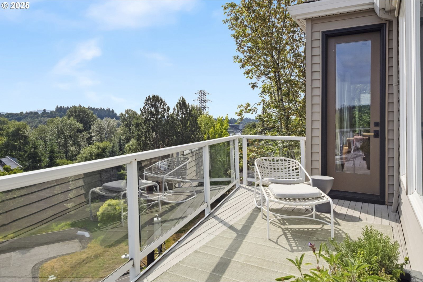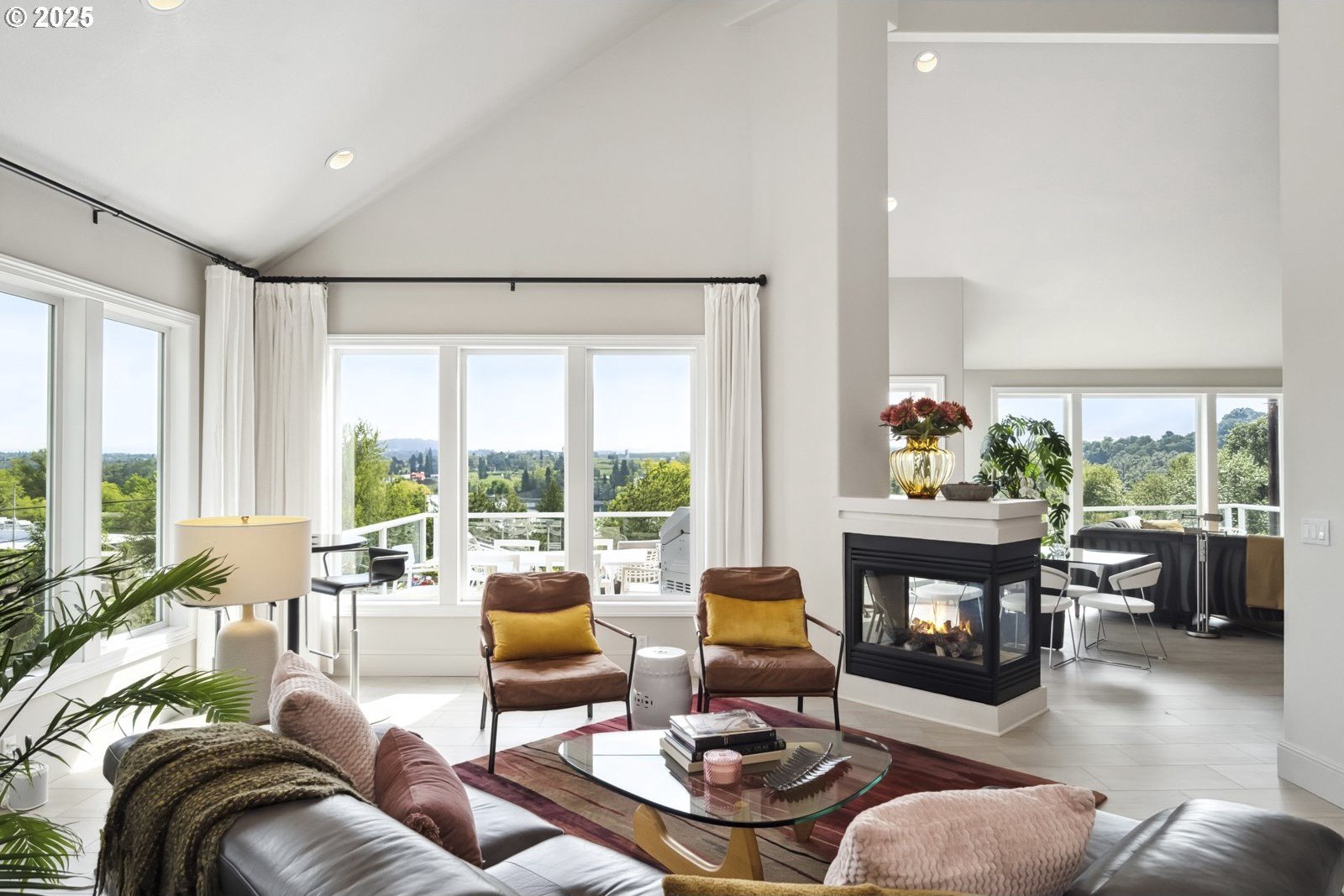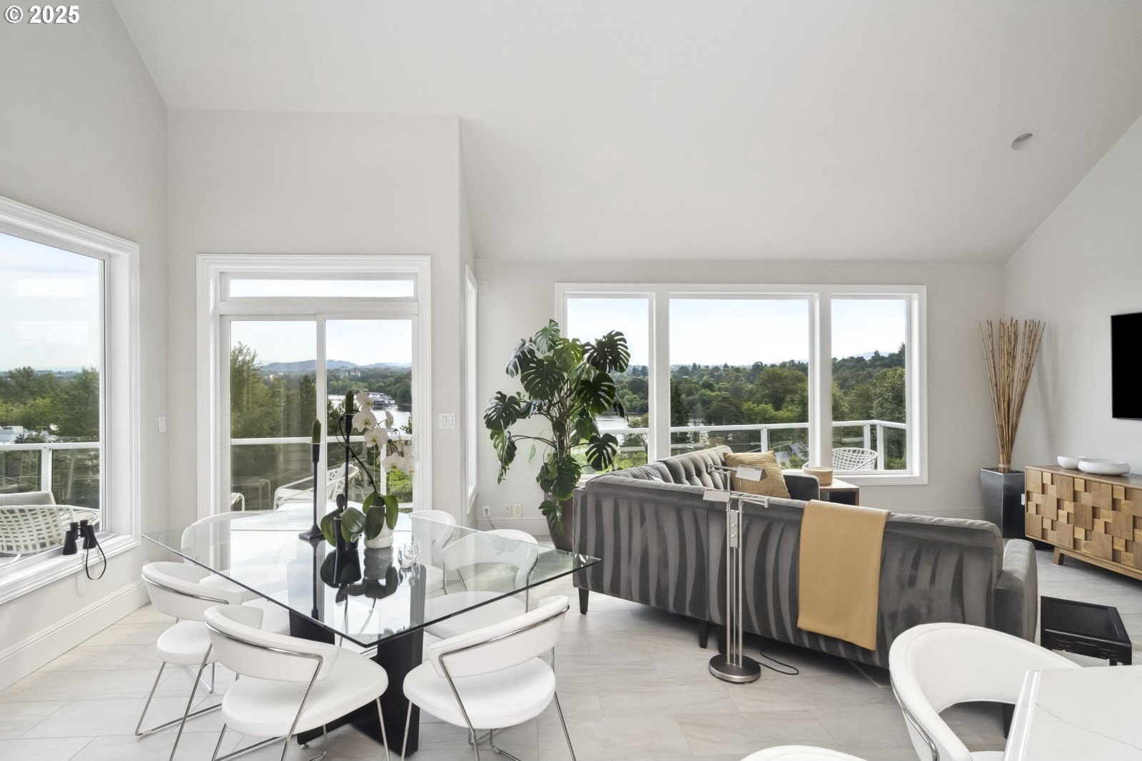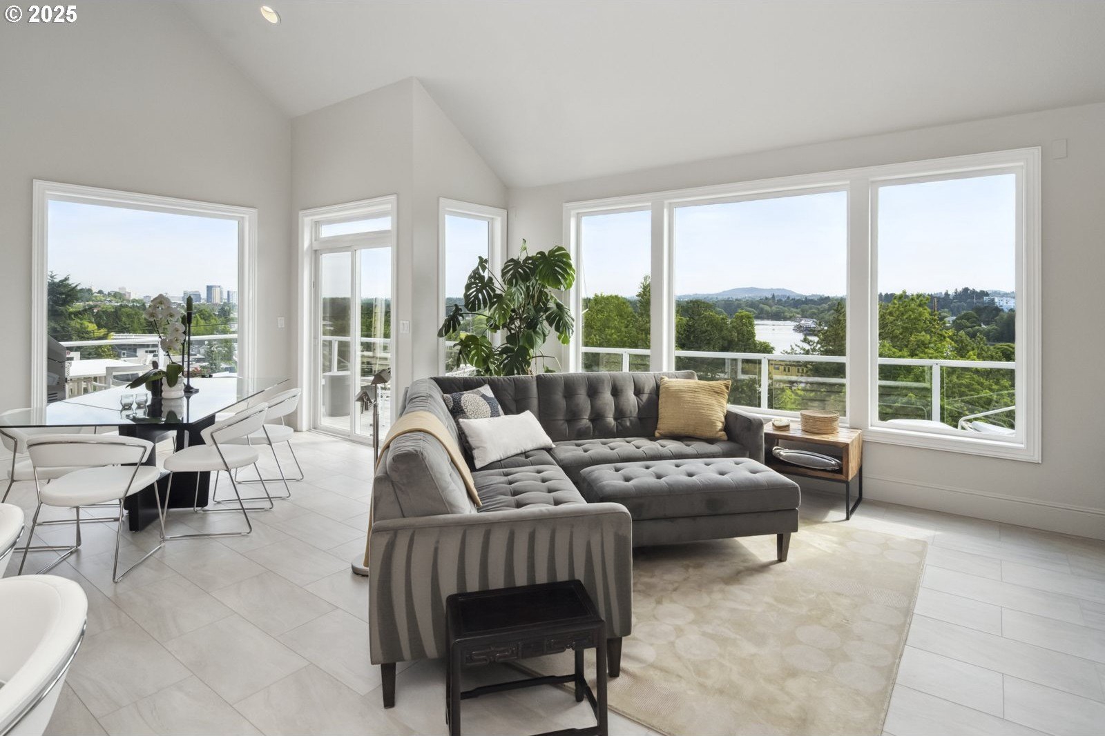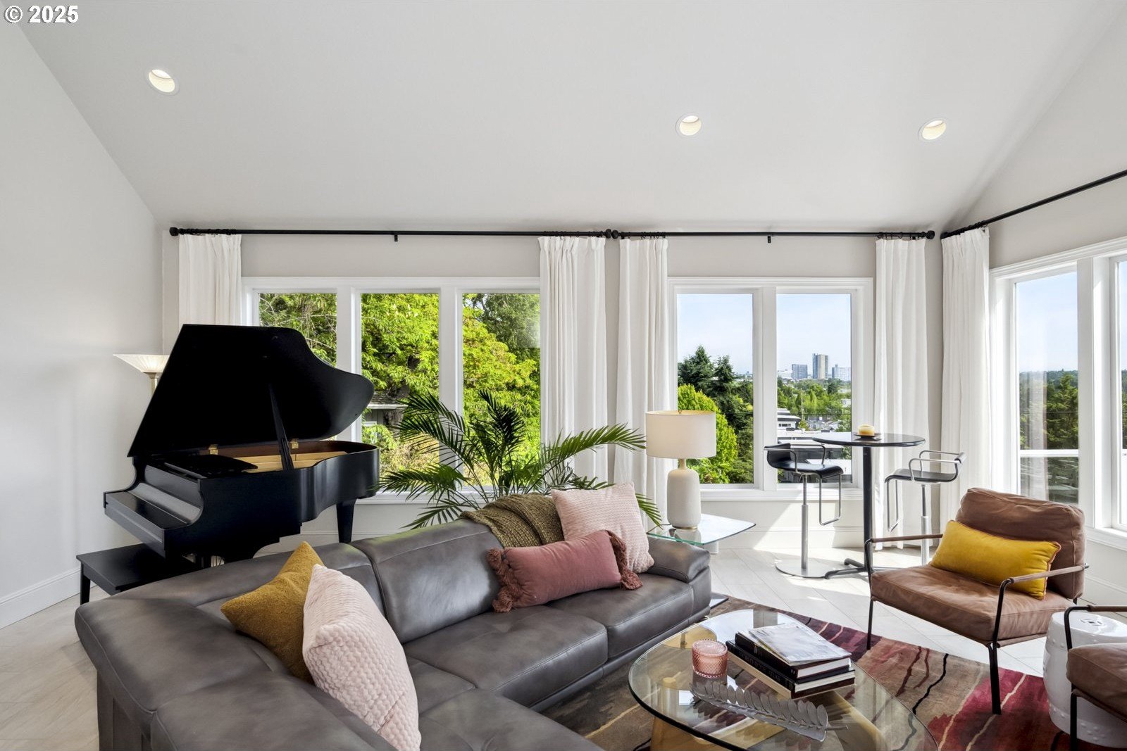 Stunning views, high ceilings and abundant natural light take center stage at this exceptional Portland home. Perched just above Portland’s South Waterfront, this exceptional residence offers sweeping views of downtown, Mt. Hood, and the Willamette River. An entertainer’s dream, the open floorplan is both luxurious and comfortable, offering seamless flow through expansive living areas designed for effortless hosting and everyday enjoyment. The gourmet kitchen is a showstopper with new quartz countertops, backsplash, and updated lighting. A cozy gas fireplace adds warmth and ambiance to the living room, while new flooring, paint and finishes throughout elevate every detail. Off the main level, you will find an expansive back deck, perfect for enjoying a sunset cocktail or summertime entertaining. The main-level primary suite offers true one-level living and includes a spacious walk-in closet with custom organizers and nearby laundry. Downstairs, you’ll find three additional bedrooms, two full bathrooms, a large recreation room with projector screen, and an Italian-inspired wine room for a touch of European charm. On the lowest level, a fully permitted 1-bedroom, 1-bath ADU with its own private entrance offers ideal space for guests, multi-generational living, or rental income (currently rented at $1950). Recent upgrades include new garage doors, brand new boiler and air conditioning and elegant linen drapery panels. An attached three-car garage and low-maintenance front yard complete this rare opportunity to live in a tucked away street overlooking Johns Landing and South Waterfront. Experience luxury, comfort, and convenience all in one breathtaking home.