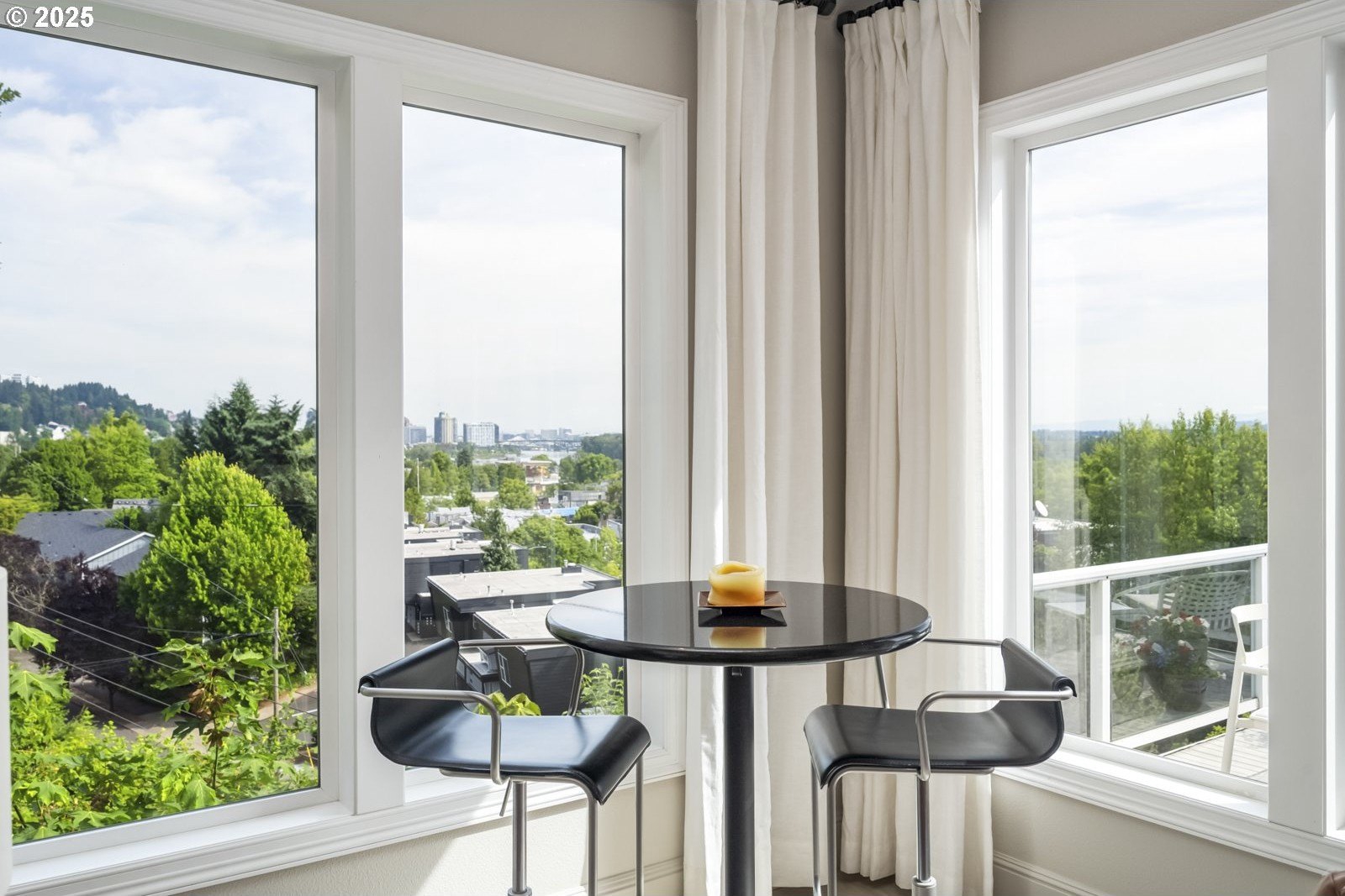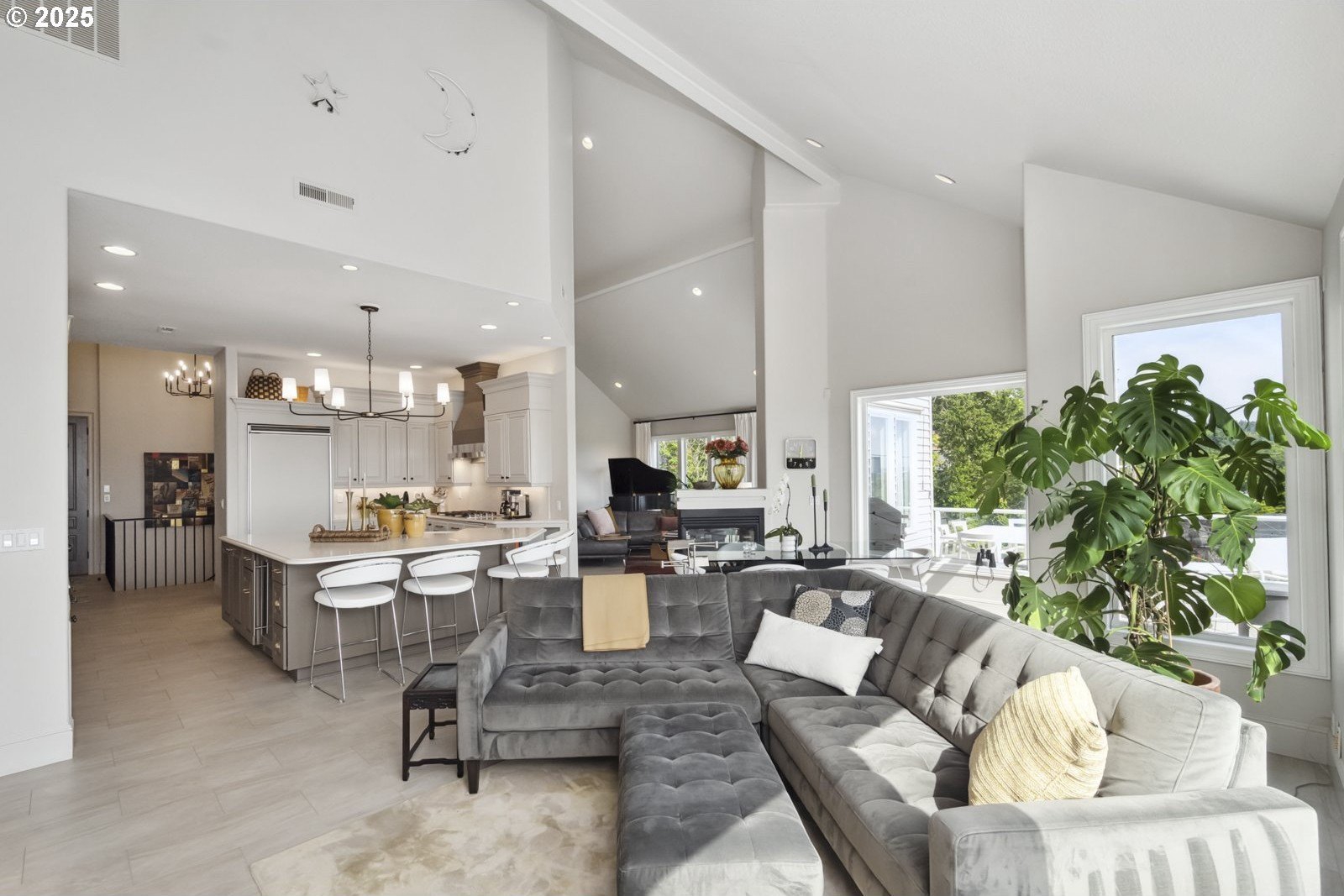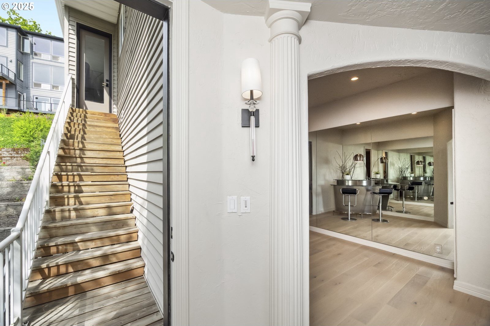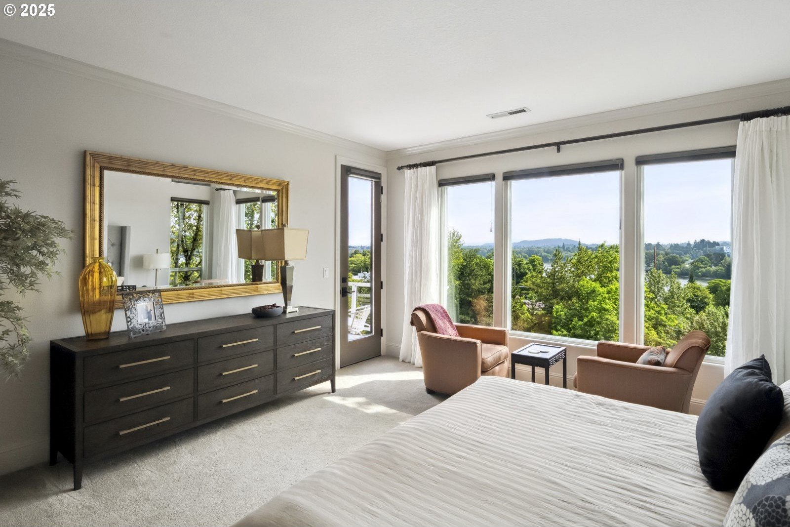 Stunning views, high ceilings and abundant natural light take center stage at this exceptional Portland home. Perched just above Portland’s South Waterfront, this exceptional residence offers sweeping views of downtown, Mt. Hood, and the Willamette River. An entertainer’s dream, the open floorplan is both luxurious and comfortable, offering seamless flow through expansive living areas designed for effortless hosting and everyday enjoyment. The gourmet kitchen is a showstopper with new quartz countertops, backsplash, and updated lighting. A cozy gas fireplace adds warmth and ambiance to the living room, while new flooring, paint and finishes throughout elevate every detail. Off the main level, you will find an expansive back deck, perfect for enjoying a sunset cocktail or summertime entertaining. The main-level primary suite offers true one-level living and includes a spacious walk-in closet with custom organizers and nearby laundry. Downstairs, you’ll find three additional bedrooms, two full bathrooms, a large recreation room with projector screen, and an Italian-inspired wine room for a touch of European charm. On the lowest level, a fully permitted 1-bedroom, 1-bath ADU with its own private entrance offers ideal space for guests, multi-generational living, or rental income (currently rented at $1950). Recent upgrades include new garage doors, brand new boiler and air conditioning and elegant linen drapery panels. An attached three-car garage and low-maintenance front yard complete this rare opportunity to live in a tucked away street overlooking Johns Landing and South Waterfront. Experience luxury, comfort, and convenience all in one breathtaking home.