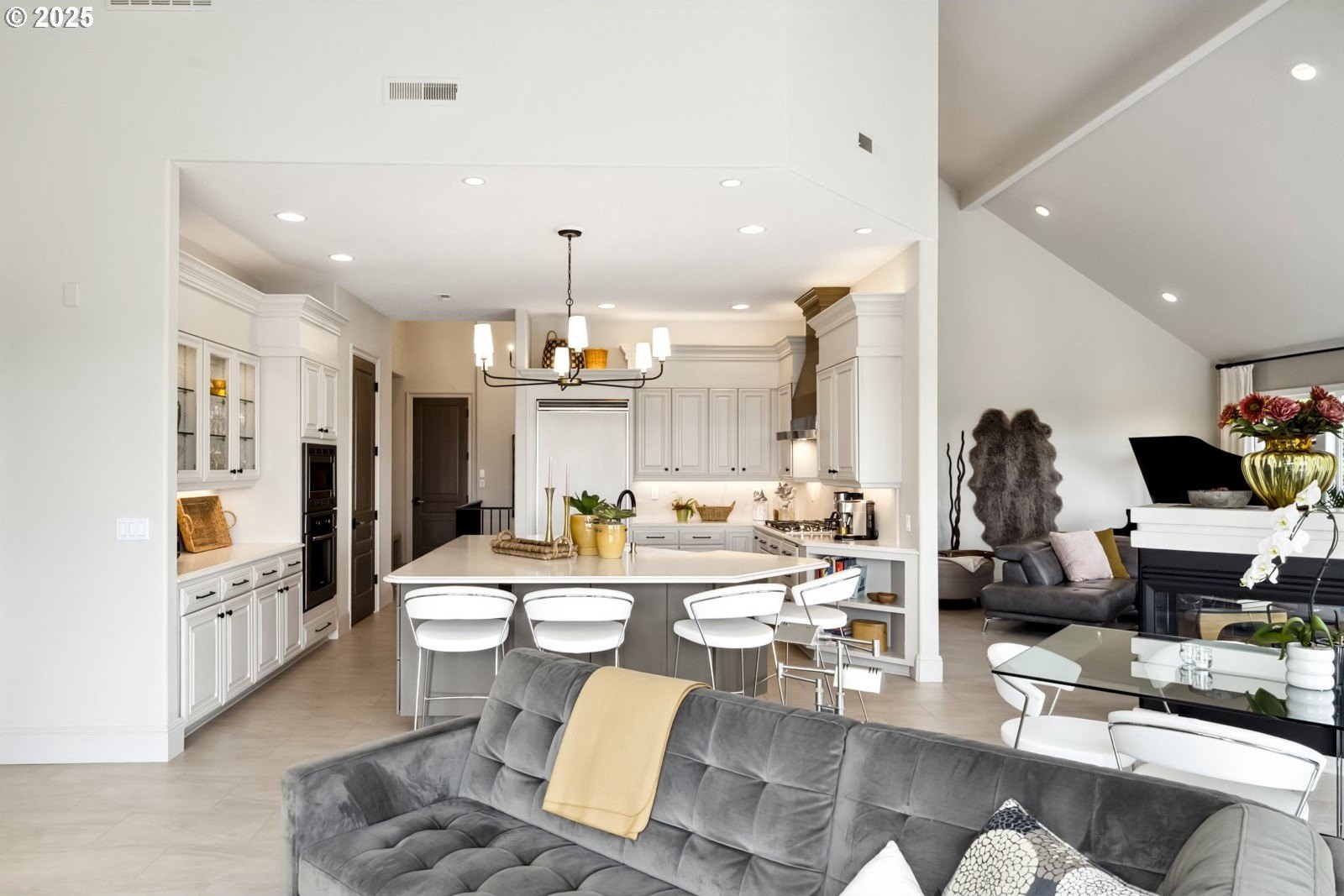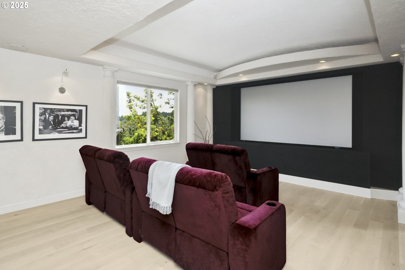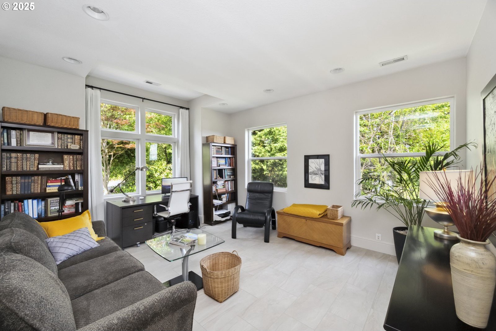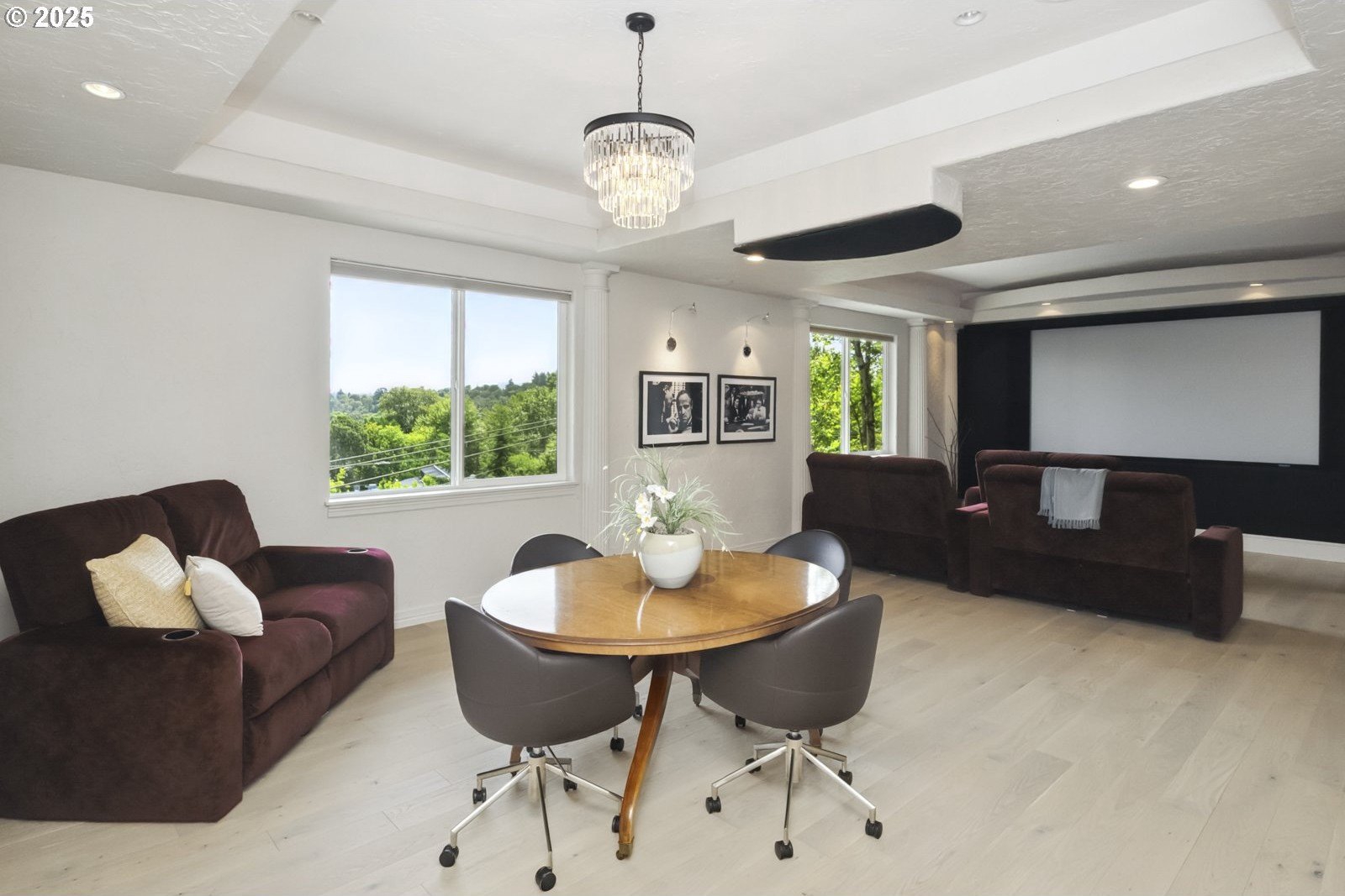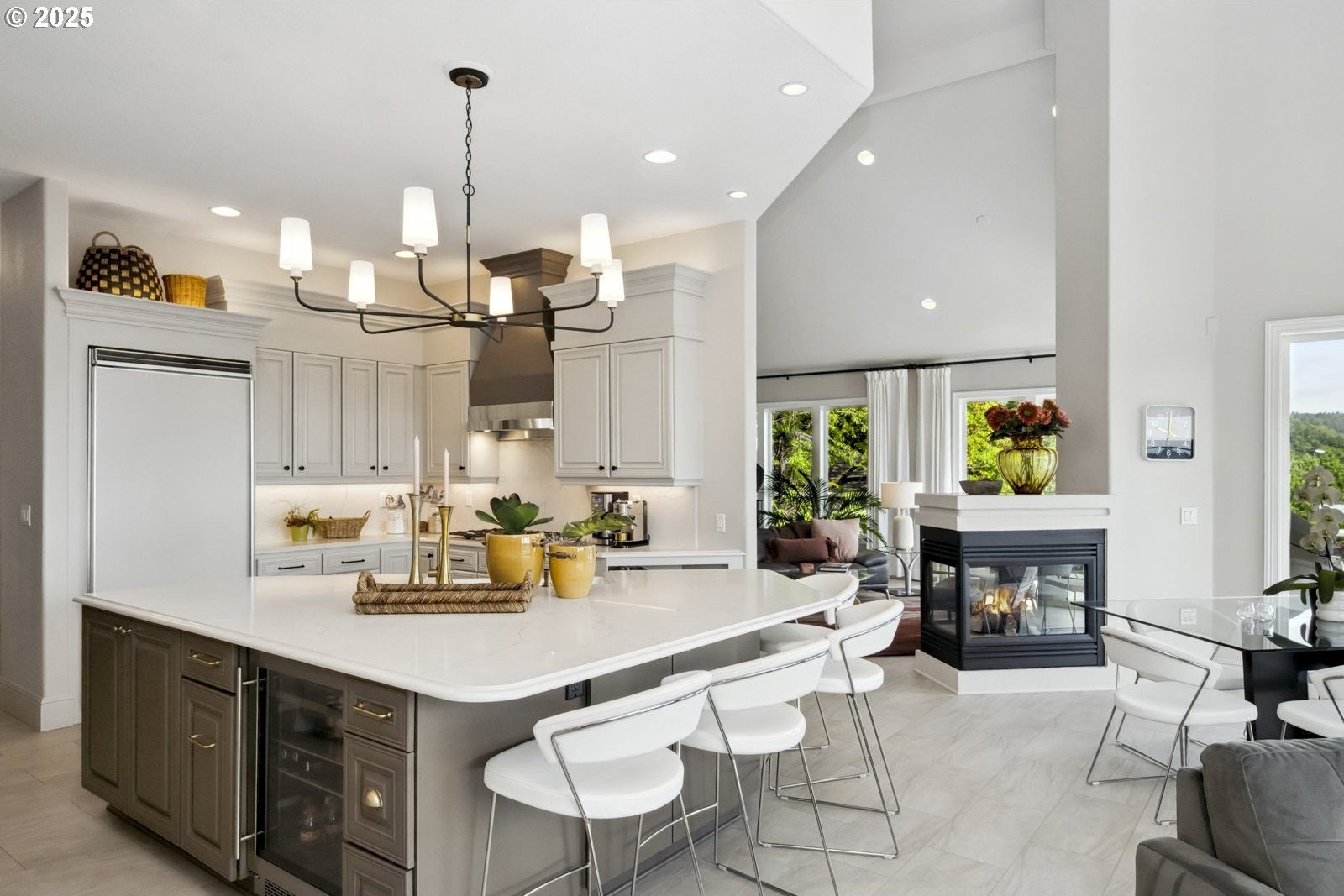 Stunning views, high ceilings and abundant natural light take center stage at this exceptional Portland home. Perched just above Portland’s South Waterfront, this exceptional residence offers sweeping views of downtown, Mt. Hood, and the Willamette River. An entertainer’s dream, the open floorplan is both luxurious and comfortable, offering seamless flow through expansive living areas designed for effortless hosting and everyday enjoyment. The gourmet kitchen is a showstopper with new quartz countertops, backsplash, and updated lighting. A cozy gas fireplace adds warmth and ambiance to the living room, while new flooring, paint and finishes throughout elevate every detail. Off the main level, you will find an expansive back deck, perfect for enjoying a sunset cocktail or summertime entertaining. The main-level primary suite offers true one-level living and includes a spacious walk-in closet with custom organizers and nearby laundry. Downstairs, you’ll find three additional bedrooms, two full bathrooms, a large recreation room with projector screen, and an Italian-inspired wine room for a touch of European charm. On the lowest level, a fully permitted 1-bedroom, 1-bath ADU with its own private entrance offers ideal space for guests, multi-generational living, or rental income (currently rented at $1950). Recent upgrades include new garage doors, brand new boiler and air conditioning and elegant linen drapery panels. An attached three-car garage and low-maintenance front yard complete this rare opportunity to live in a tucked away street overlooking Johns Landing and South Waterfront. Experience luxury, comfort, and convenience all in one breathtaking home.