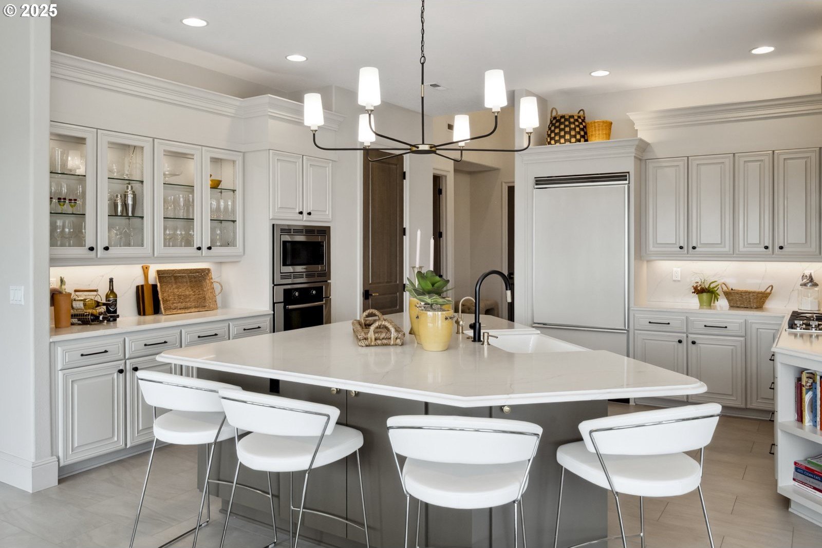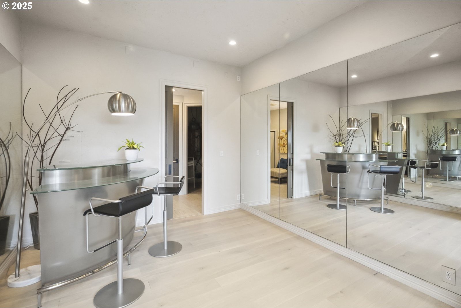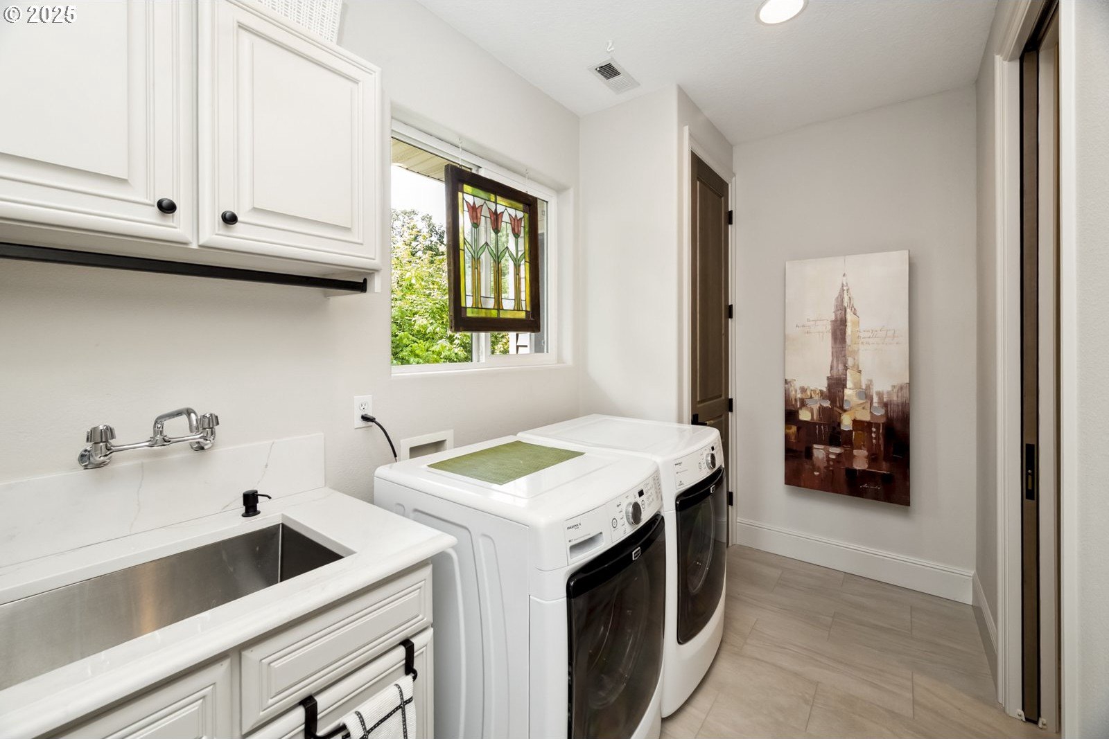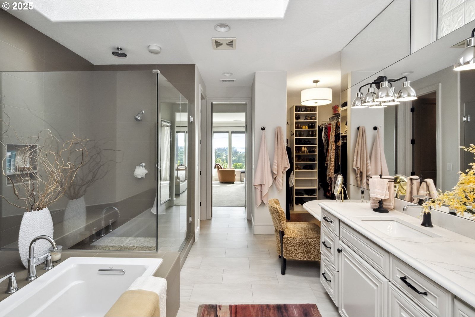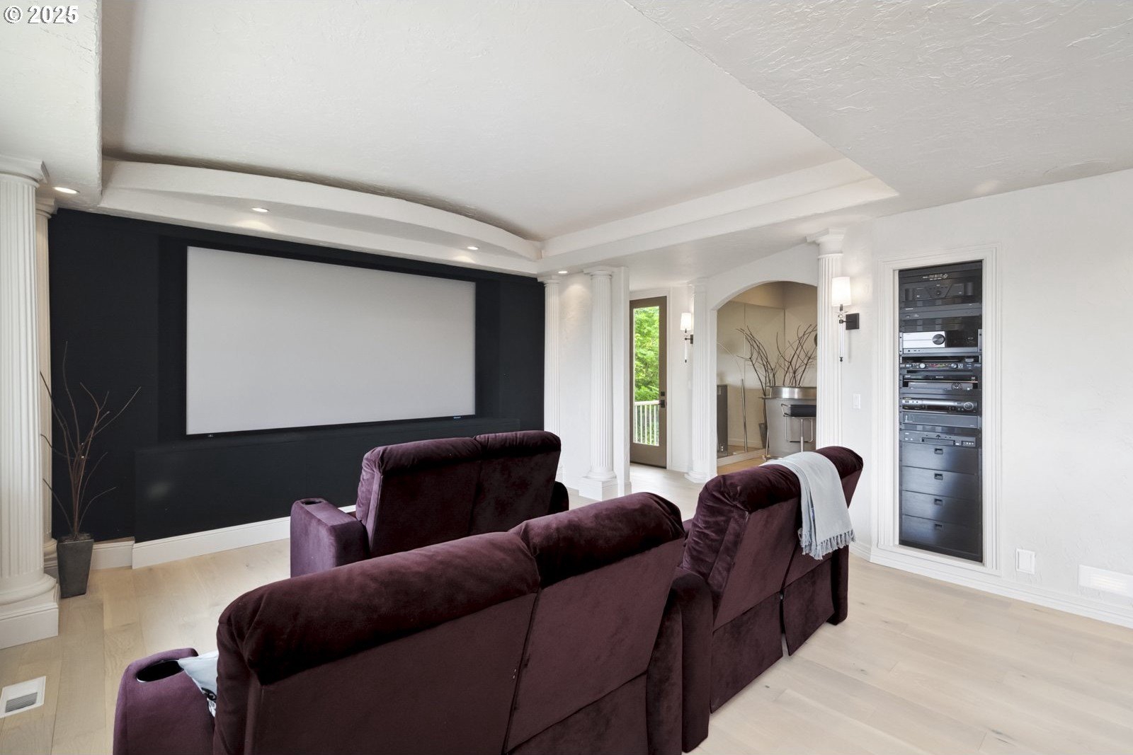 Stunning views, high ceilings and abundant natural light take center stage at this exceptional Portland home. Perched just above Portland’s South Waterfront, this exceptional residence offers sweeping views of downtown, Mt. Hood, and the Willamette River. An entertainer’s dream, the open floorplan is both luxurious and comfortable, offering seamless flow through expansive living areas designed for effortless hosting and everyday enjoyment. The gourmet kitchen is a showstopper with new quartz countertops, backsplash, and updated lighting. A cozy gas fireplace adds warmth and ambiance to the living room, while new flooring, paint and finishes throughout elevate every detail. Off the main level, you will find an expansive back deck, perfect for enjoying a sunset cocktail or summertime entertaining. The main-level primary suite offers true one-level living and includes a spacious walk-in closet with custom organizers and nearby laundry. Downstairs, you’ll find three additional bedrooms, two full bathrooms, a large recreation room with projector screen, and an Italian-inspired wine room for a touch of European charm. On the lowest level, a fully permitted 1-bedroom, 1-bath ADU with its own private entrance offers ideal space for guests, multi-generational living, or rental income (currently rented at $1950). Recent upgrades include new garage doors, brand new boiler and air conditioning and elegant linen drapery panels. An attached three-car garage and low-maintenance front yard complete this rare opportunity to live in a tucked away street overlooking Johns Landing and South Waterfront. Experience luxury, comfort, and convenience all in one breathtaking home.