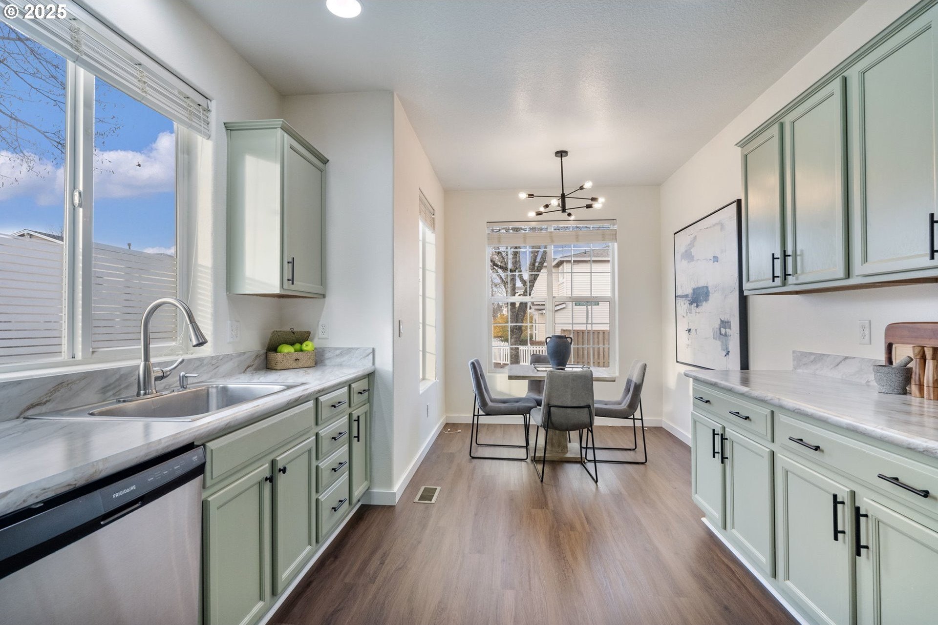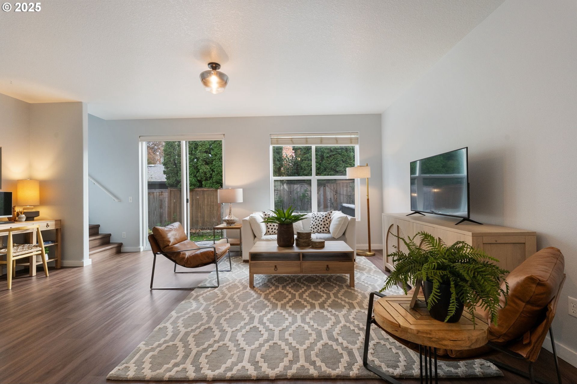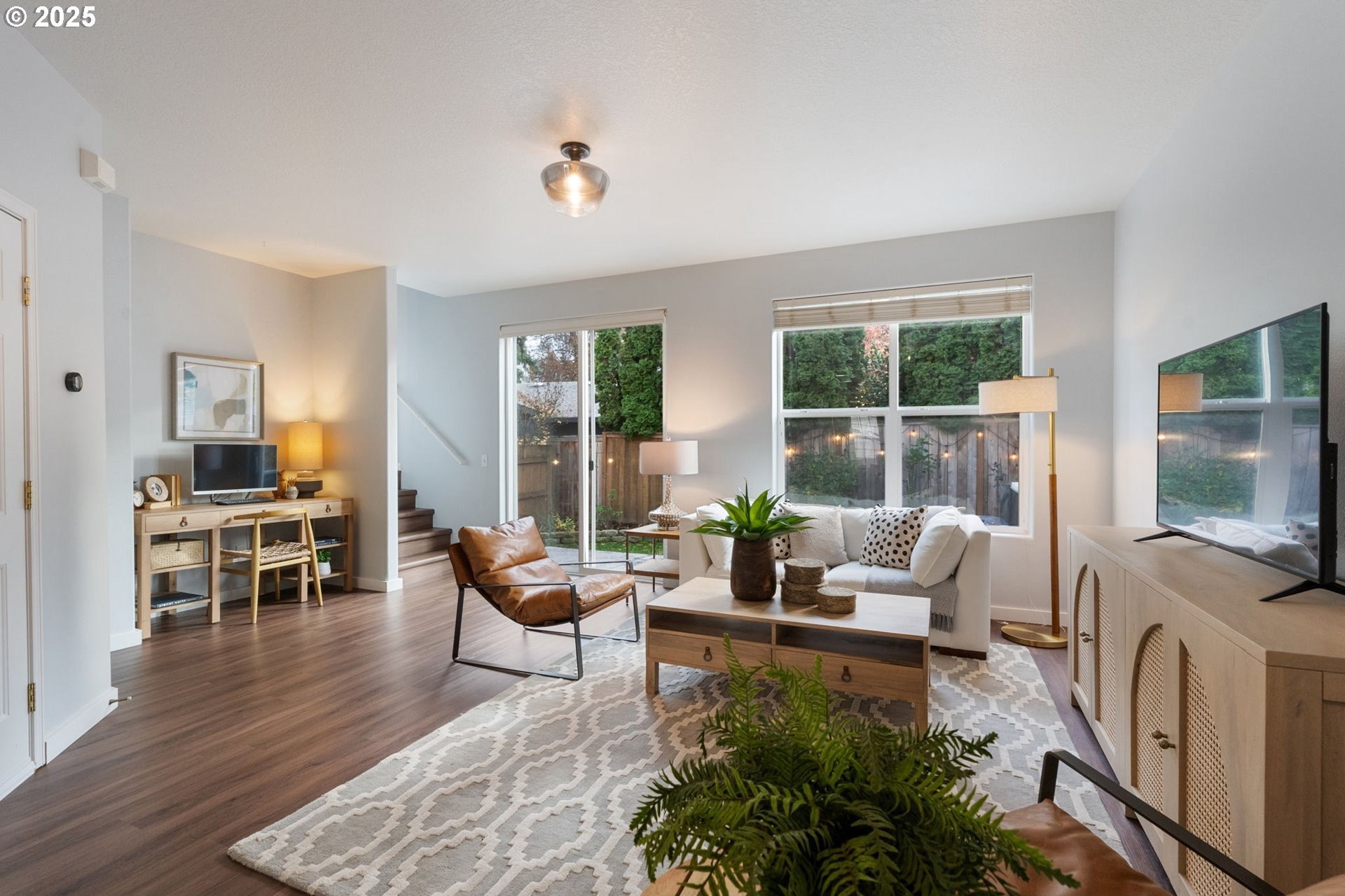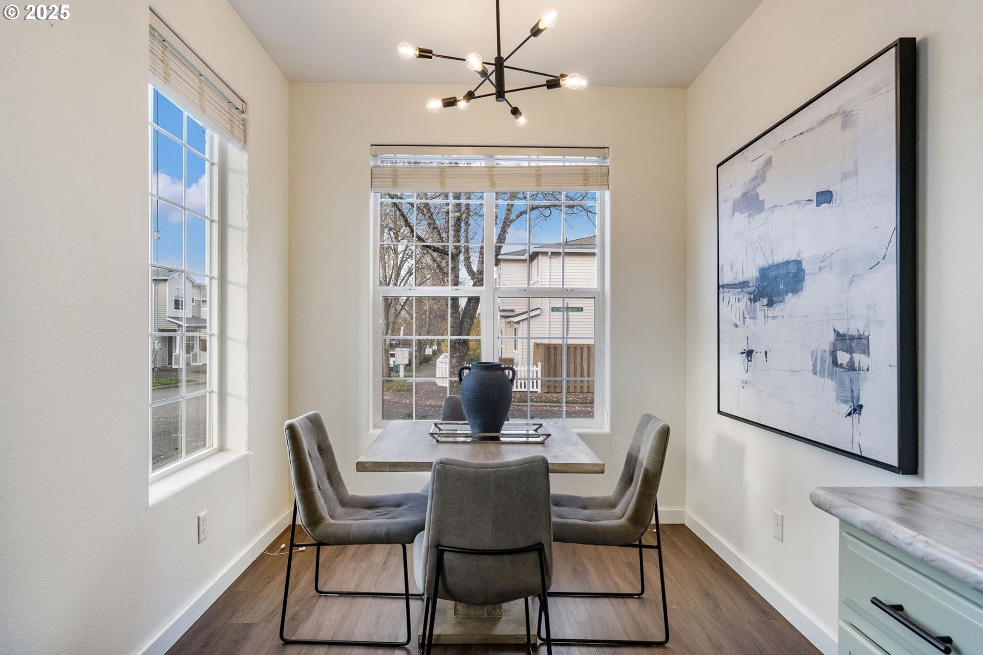 Welcome to this beautifully updated and cozy home in the heart of Beaverton! This home has many tasteful and fresh updates throughout. The charming kitchen has professionally painted solid wood cabinetry, stainless steel appliances with a light and bright dining area. Enjoy a spacious great room perfect for family gatherings and an appointed space for a home office or additional eating area. The primary ensuite has a full bathroom and walk in closet. There are two more true bedrooms up with a second bath. The outdoor extended living area is fully fenced with decorative stamped patio and a new hot tub for unwinding and relaxing evenings. This home sits on a corner lot, no common wall providing more light, functional space and privacy. Close to Intel, Nike and walkable to cafes, restaurants and shopping. Don't miss out on this lovely ready to move in and love it home!