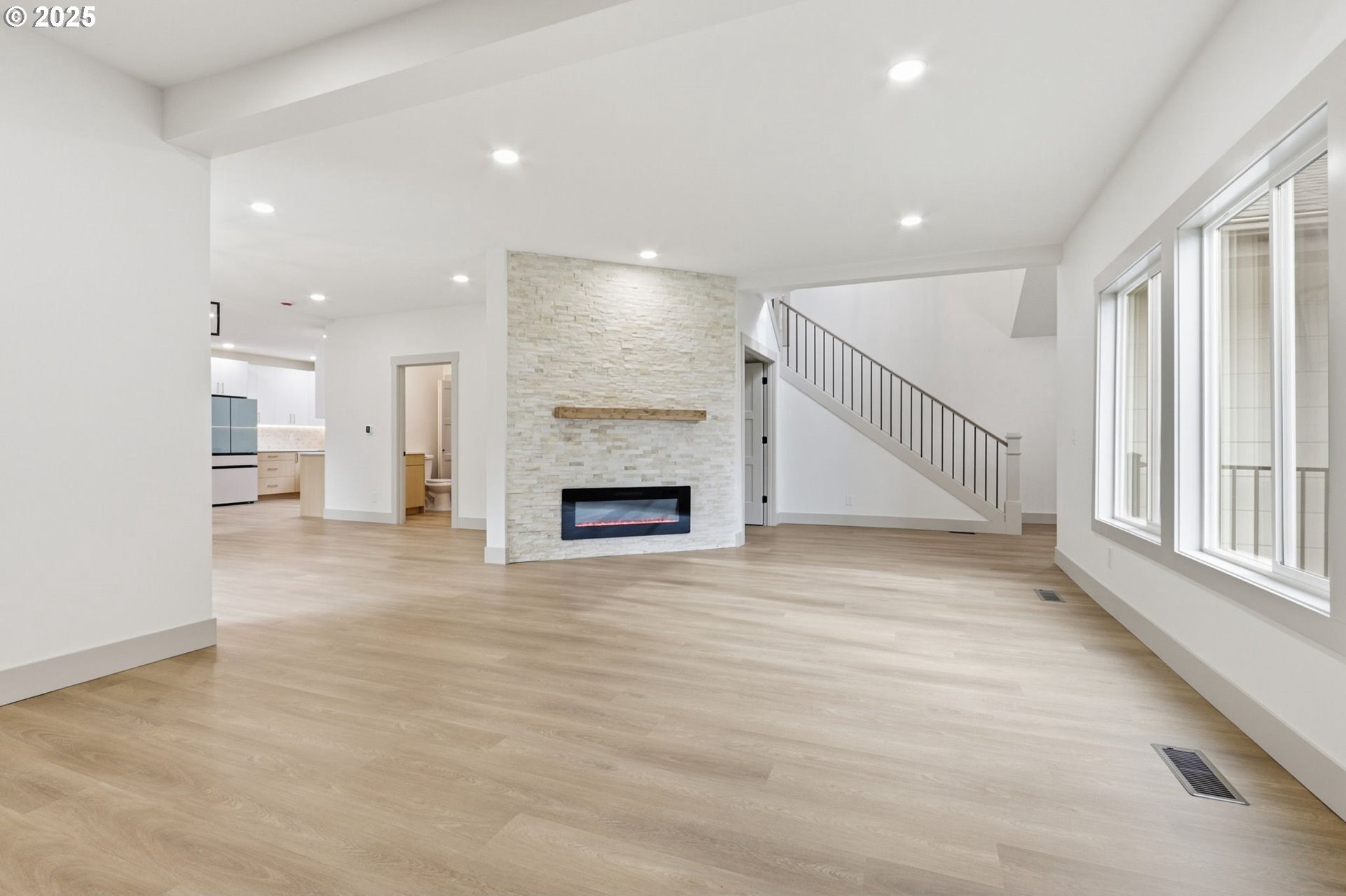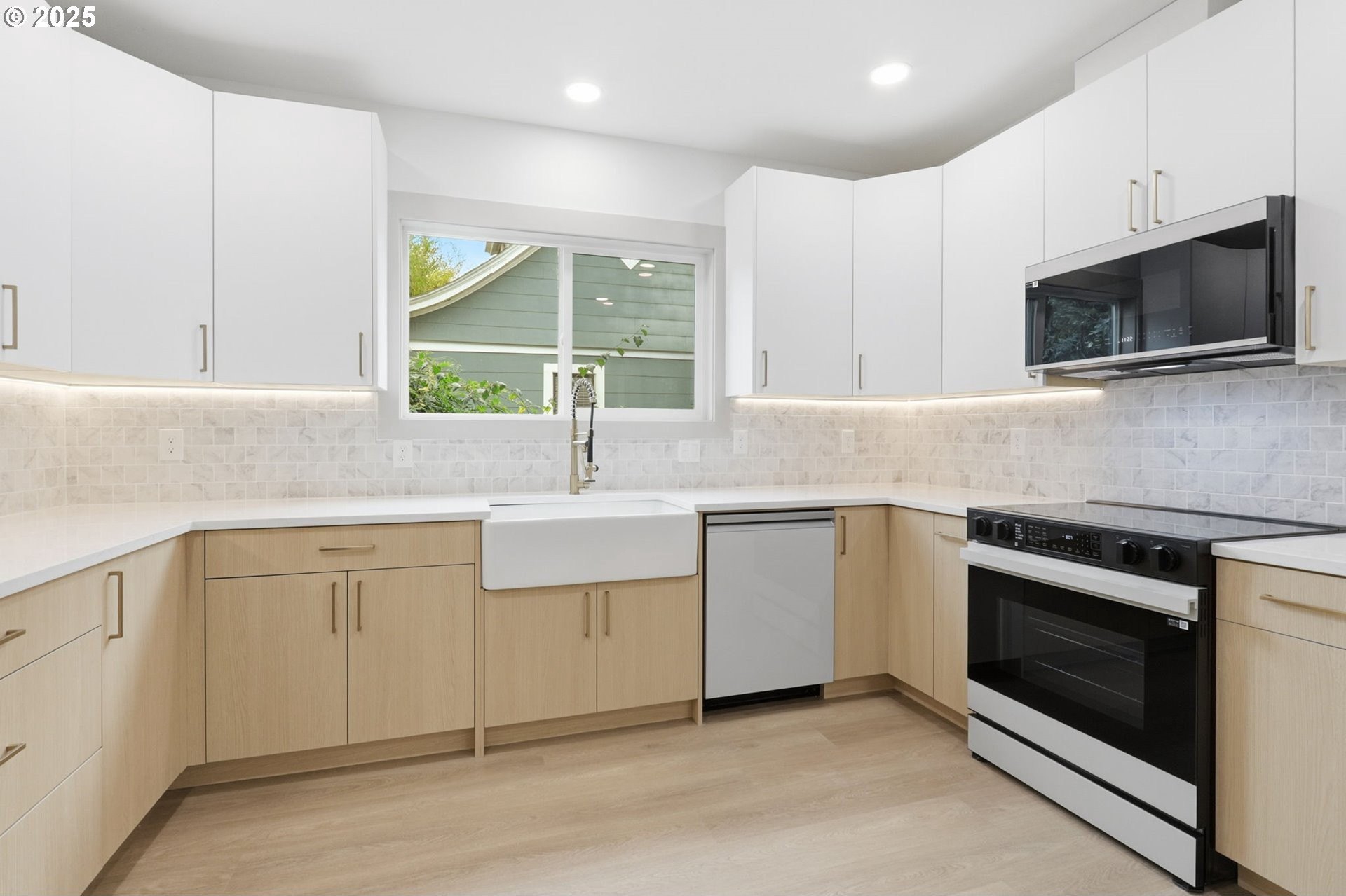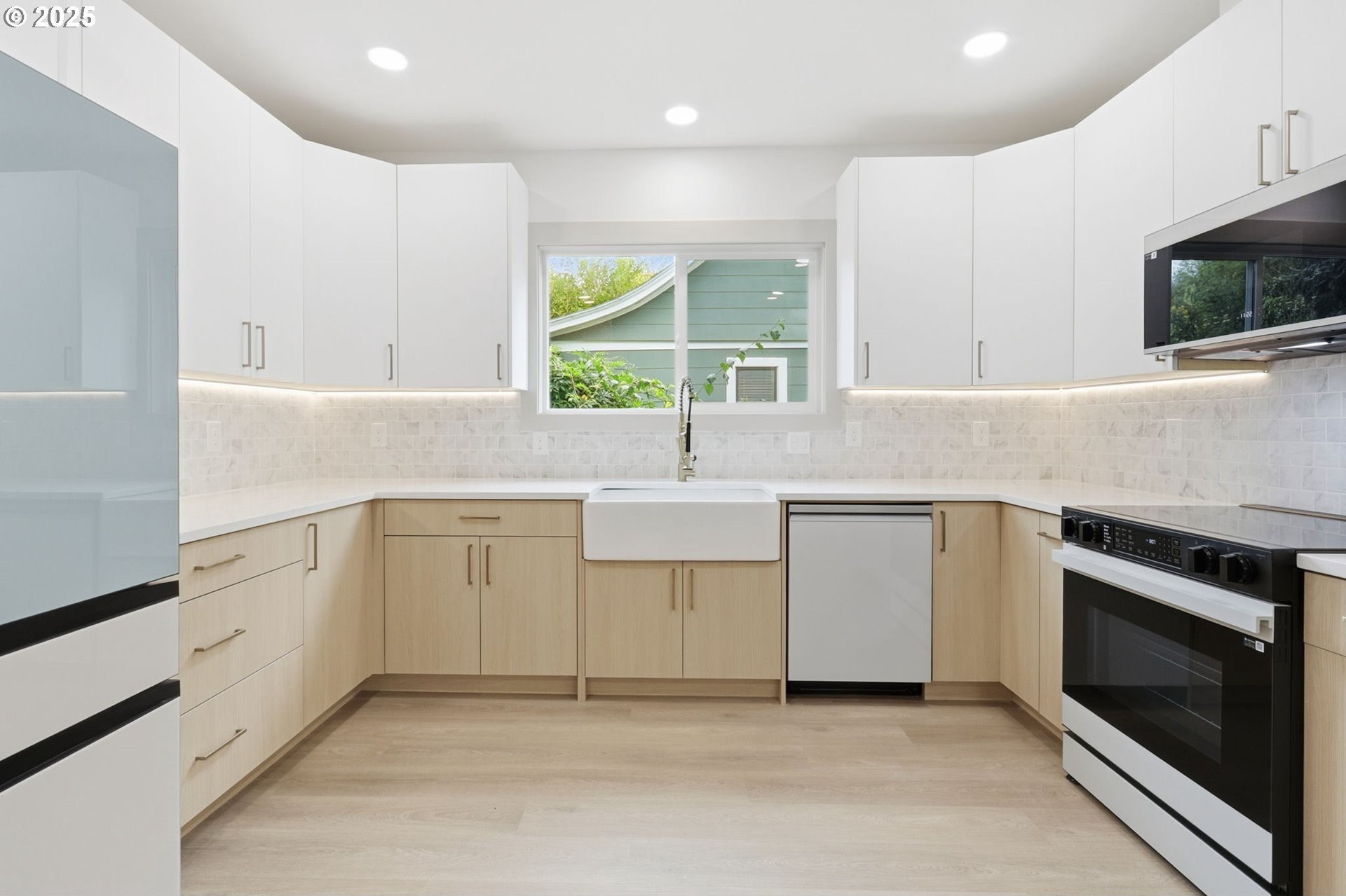 This stunning 5-bedroom, 4.5-bath Victorian home is perfectly situated in the heart of Irvington, just down the street from Irving Park and walking distance to Whole Foods, new seasons market, local cafes, parks, and public transit. Blending timeless character with modern luxury, it features a chef’s kitchen with quartz counters, custom cabinetry, designer lighting, and premium appliances opening to a bright dining area with oversized windows and a spacious living room with a beautiful fireplace. A private office or library offers the ideal workspace. Upstairs, a light-filled nook or library with French doors leads to a private balcony, alongside two bedrooms and two full baths including a secondary primary suite. The fully finished basement offers a separate entrance, kitchen, bedroom, bath, laundry hookups, and a cozy living room with fireplace—perfect for guests, in-laws, or rental potential. Enjoy a brand-new lawn, oversized concrete patio, detached updated garage, and no HOA.