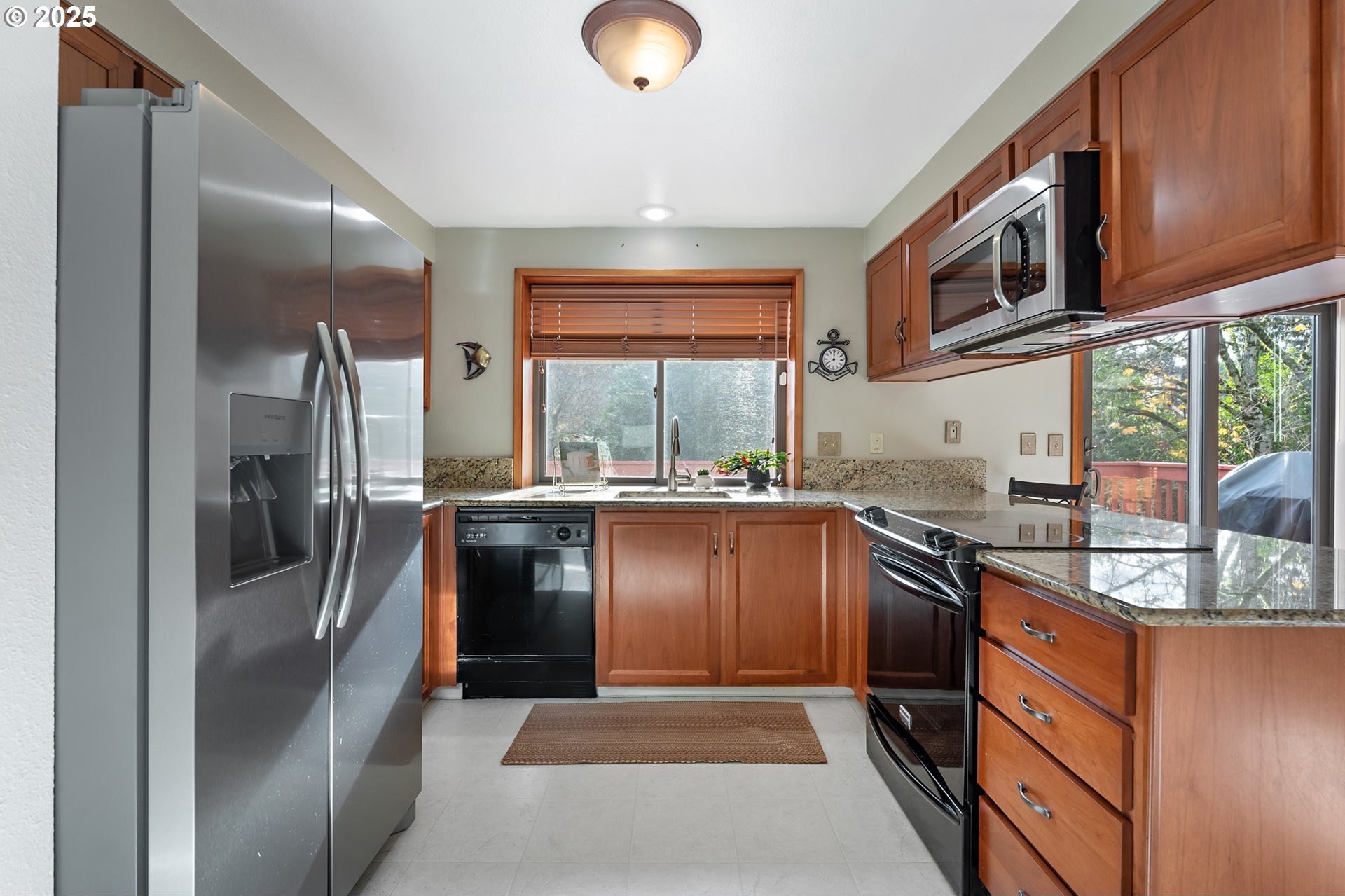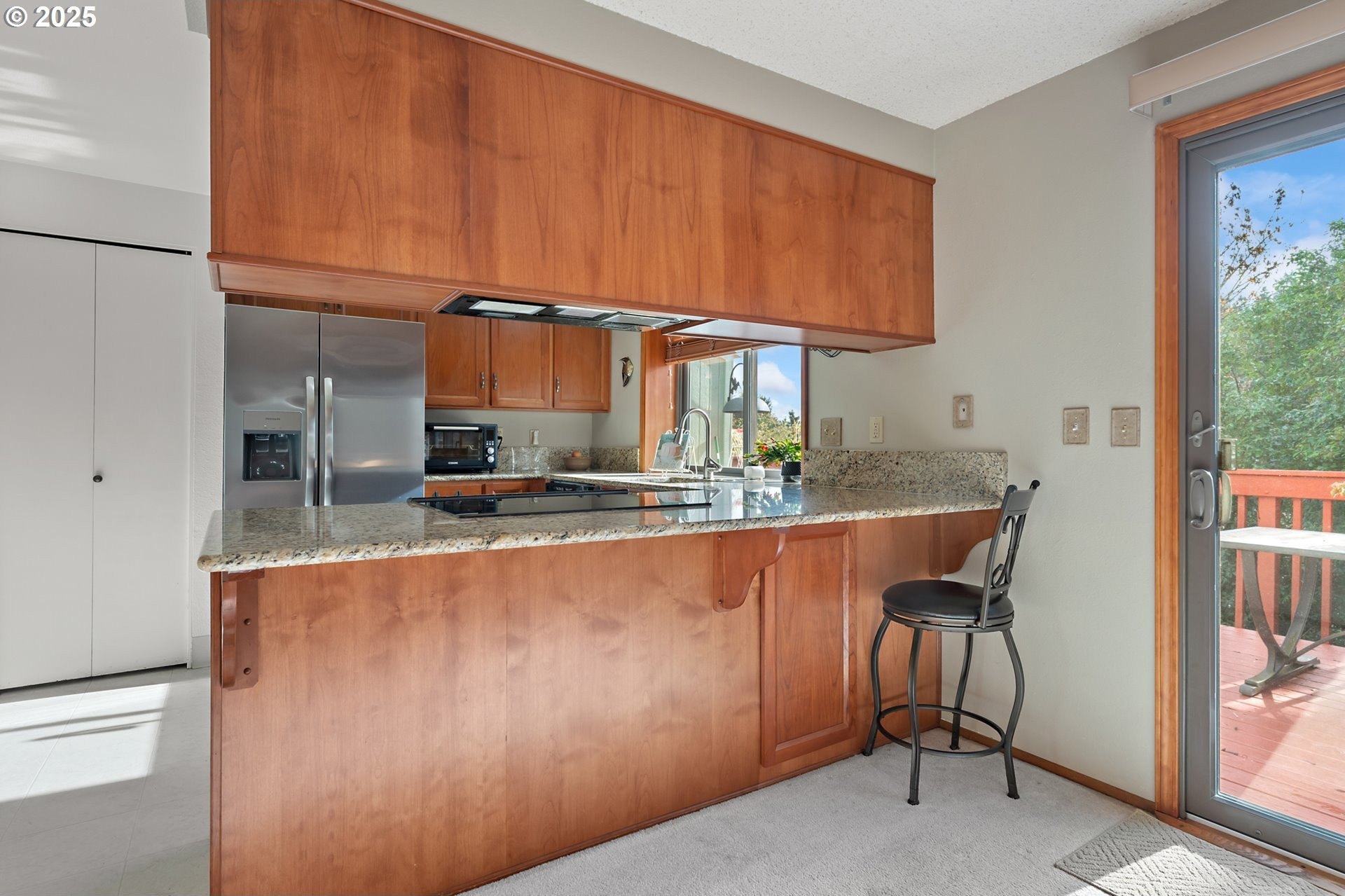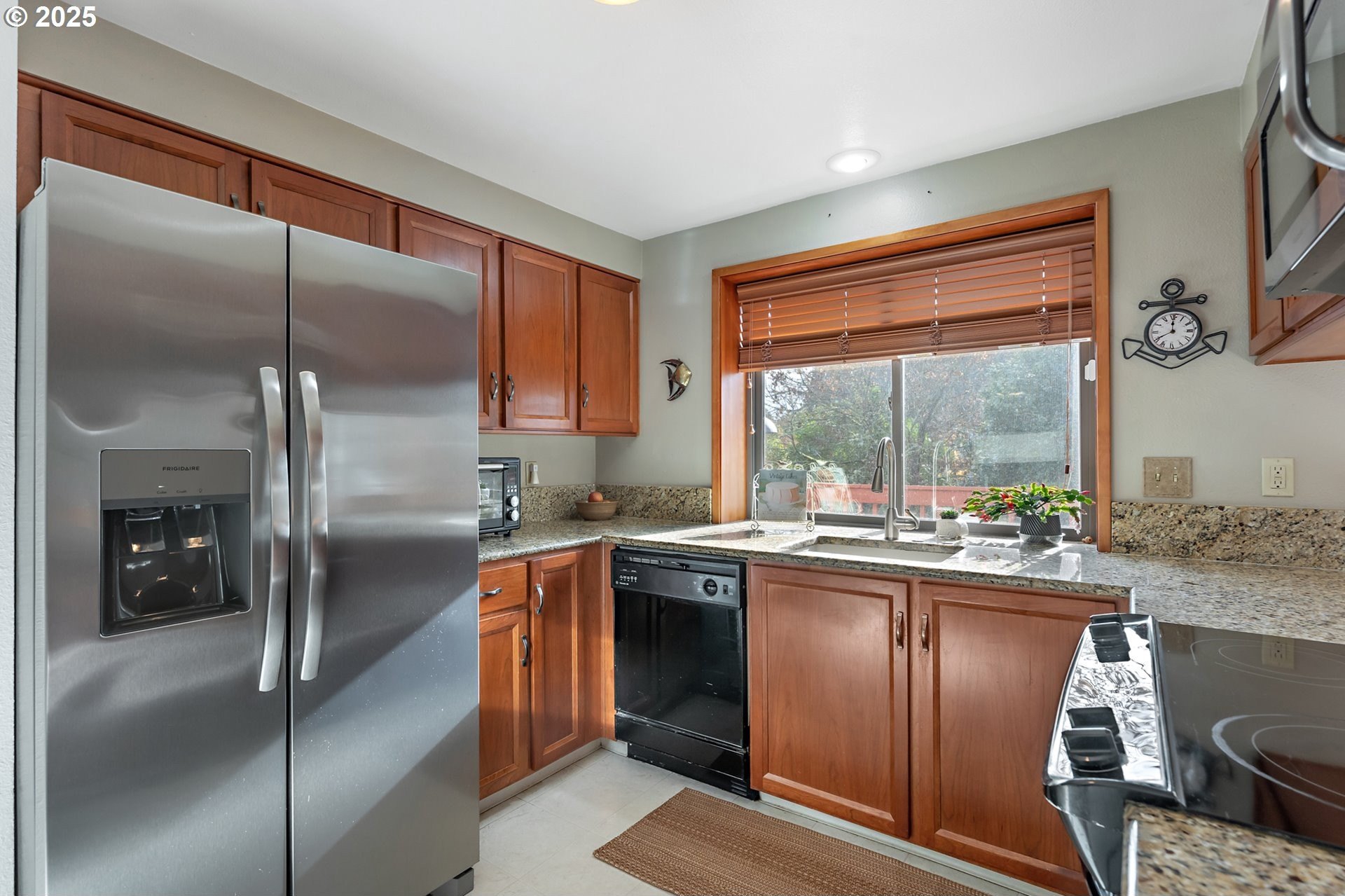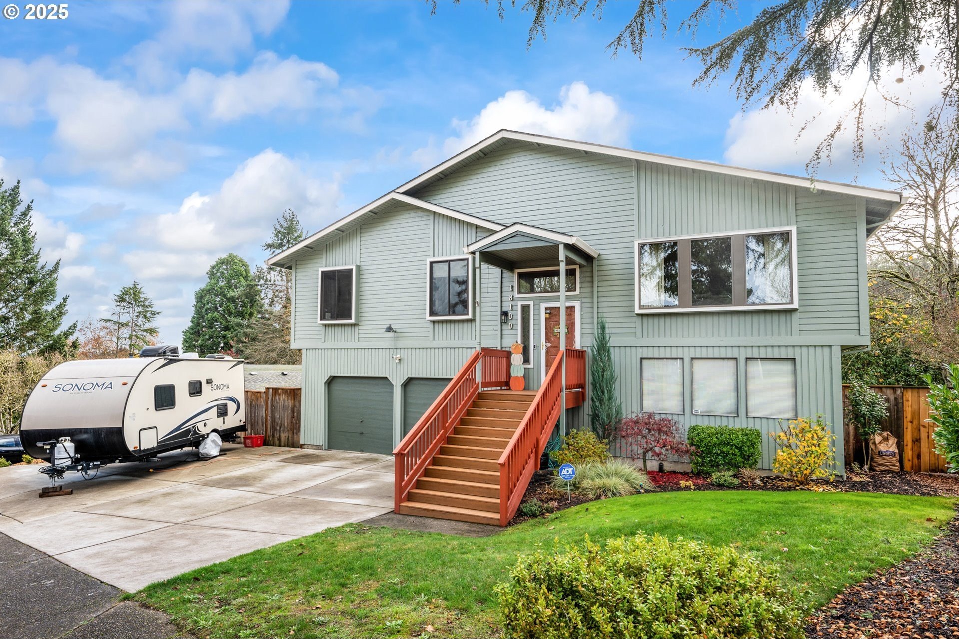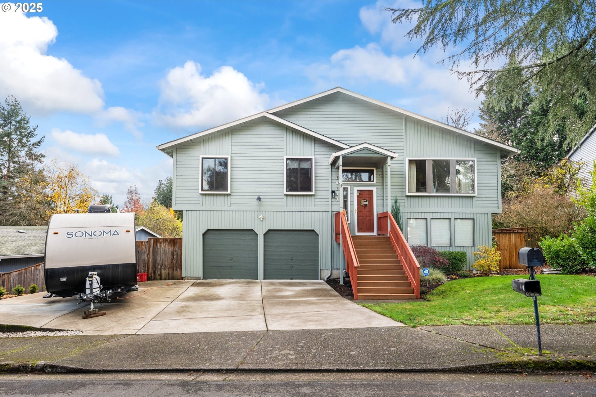 Beautiful home. $60K in paid off solar panels, save around $300 a month on electric bill! Newer heat pump with central A/C for year around comfort. Spacious living room, complete with a cozy gas fireplace. The updated kitchen includes a pantry, eat bar, granite counters, stainless steel appliances, and a new refrigerator—all opening to the dining room with a ceiling fan and a slider leading to the large, newly stained deck in excellent condition. Generous sized primary suite w/jetted tub. Spacious family room downstairs with slider to second deck. Office could be used as craft or bonus room. Utility room with built-ins & nook with desk. Vinyl windows, new exterior paint, newer water heater, well maintained roof. Beautiful fenced in backyard with shed & garden. 3 car tandem garage with tons of storage. Very well maintained home waiting for you!