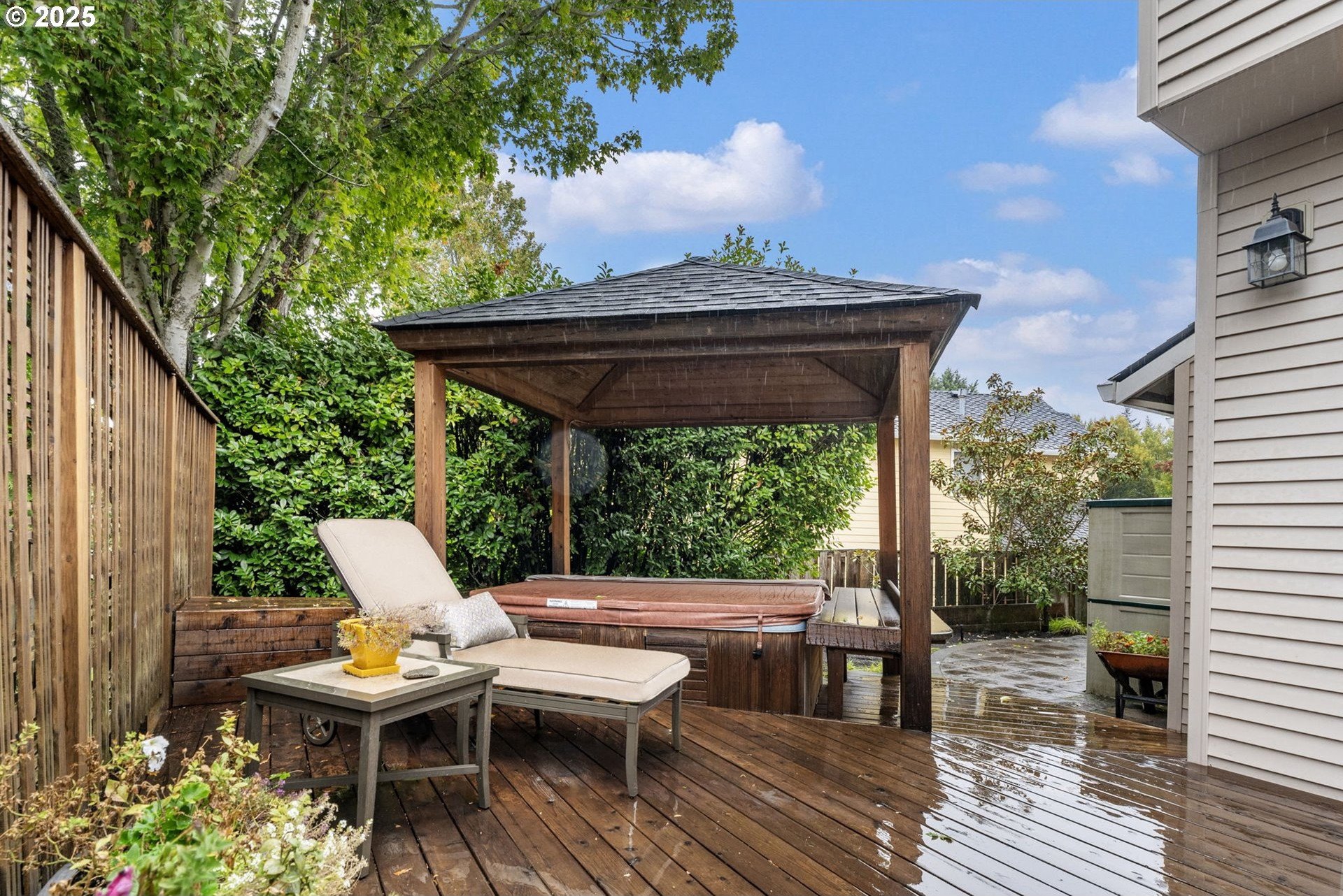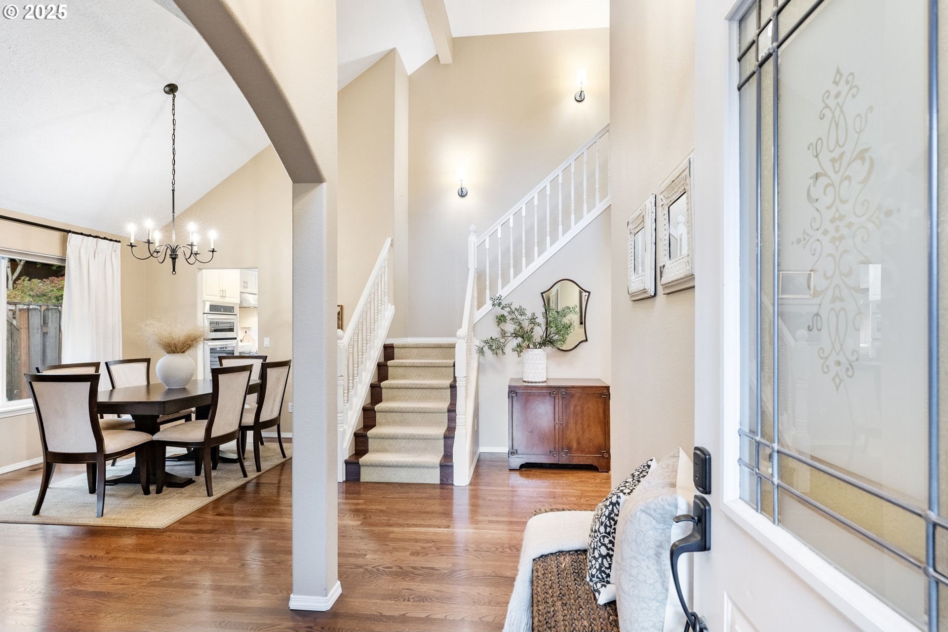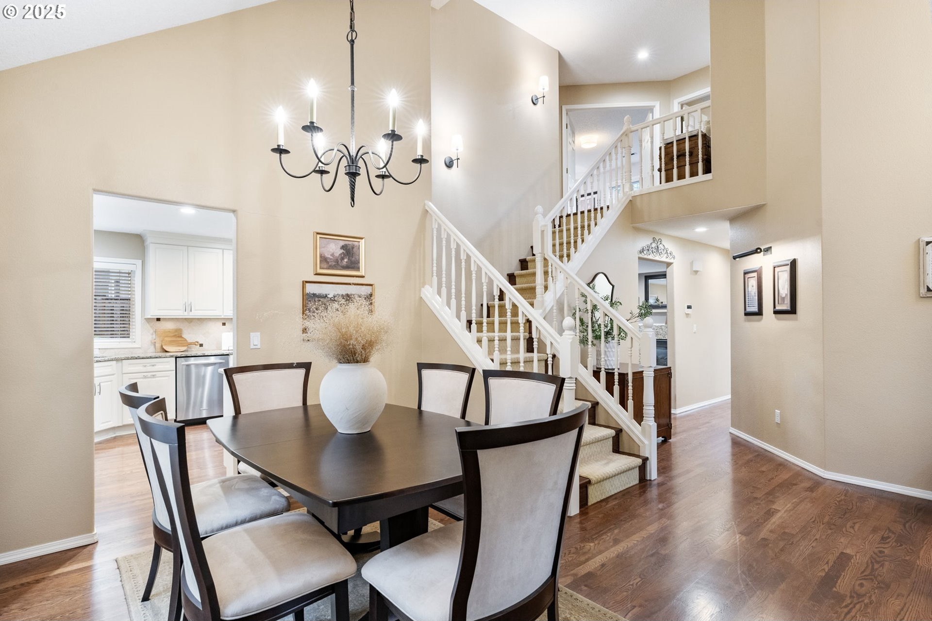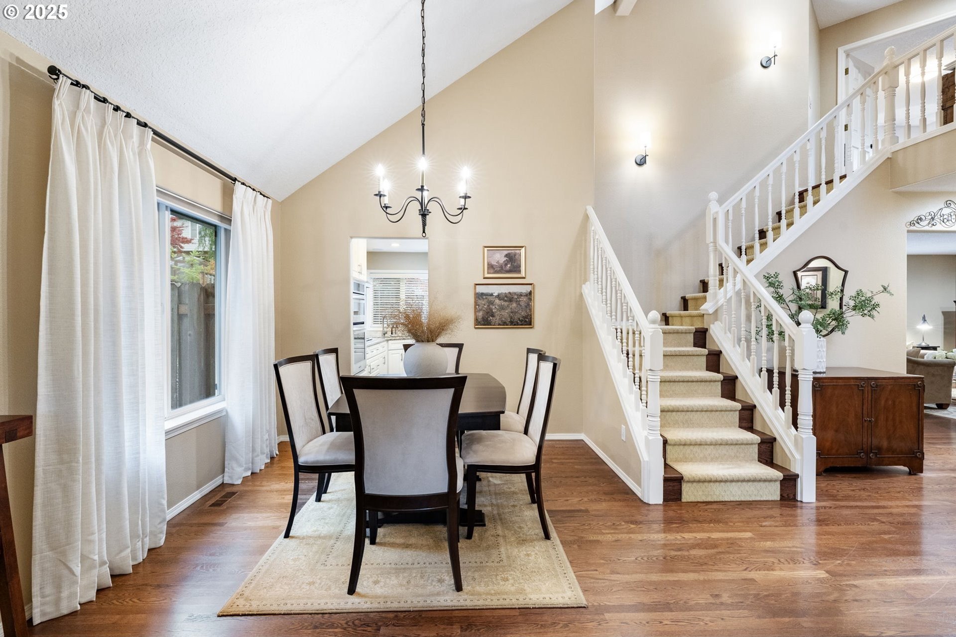 Meticulously designed traditional home in Burntwood West. Step inside to an inviting living room with vaulted ceilings, new designer curtains, and a grand staircase. Rich dark hardwoods flow throughout the main level, complemented by soaring 10-foot ceilings and abundant natural light that create an airy, welcoming atmosphere. The remodeled kitchen features granite countertops, stainless steel appliances, and ample storage and entertaining space. Gather in the cozy great room around the gas fireplace for a perfect blend of comfort and style. Upstairs, the primary suite impresses with high ceilings and a designer-finished bathroom showcasing marble floors, counters, and a stunning walk-in shower. The secondary bathroom has been recently updated with marble floors and a beautiful new vanity, while the additional bedrooms offer generous space and exceptional storage. The laundry room has also been renovated with timeless tile floors & cafe curtains. Outdoors, enjoy a large entertainer’s deck with a recently serviced hot tub—ideal for relaxing, hosting, or simply taking in the surroundings. The spacious yard provides plenty of room to play, garden, and gather. The home has been meticulously maintained and thoughtfully updated with a new roof, new carpets, modern light fixtures throughout, and beautifully remodeled main spaces. Perfectly situated on a quiet cul-de-sac, this home offers easy access to downtown Beaverton’s popular restaurants, nearby walking trails, and wonderful schools.