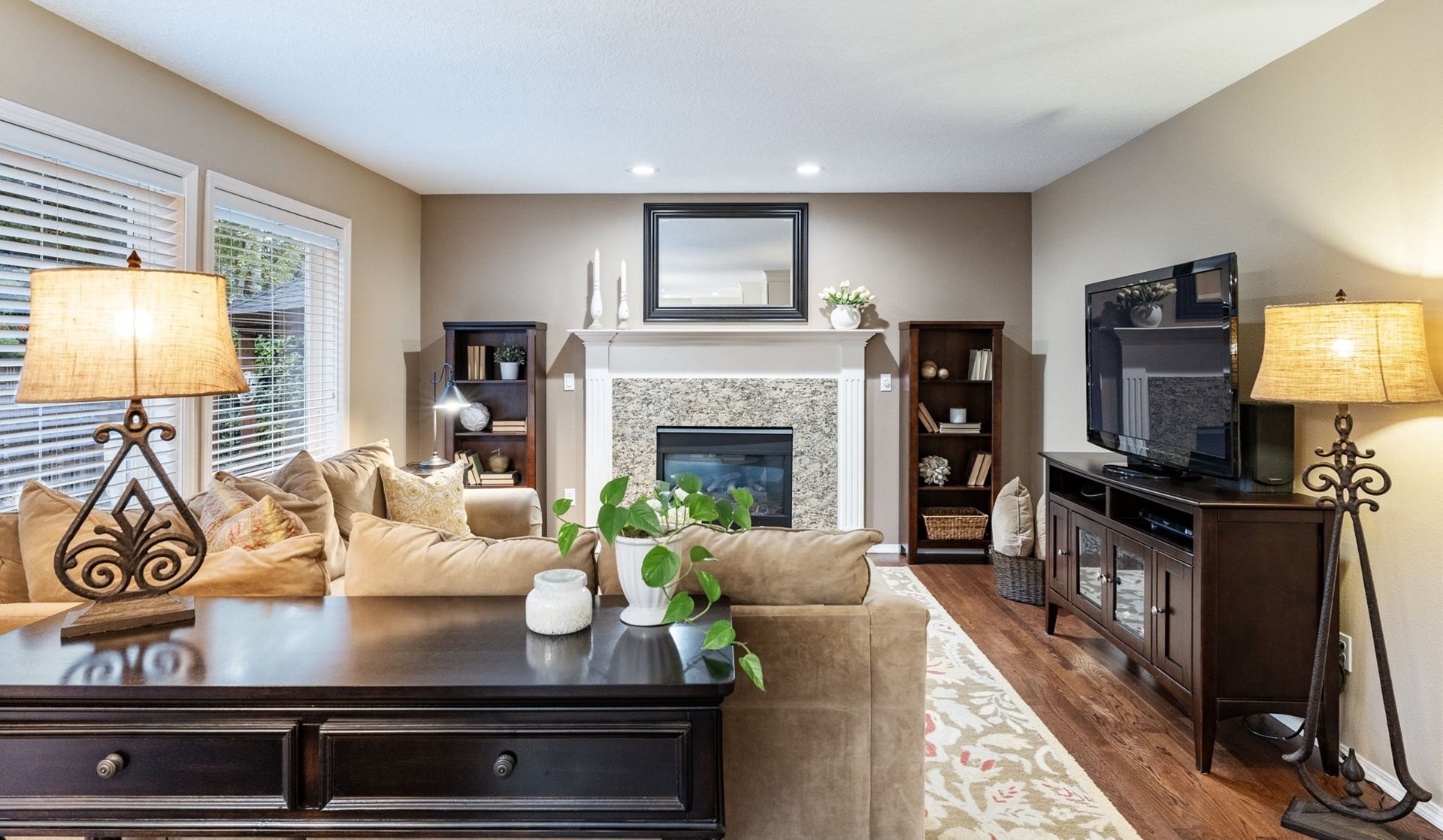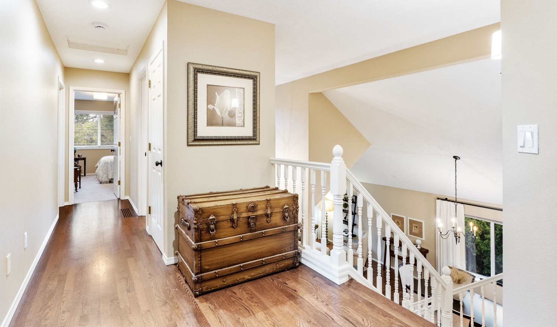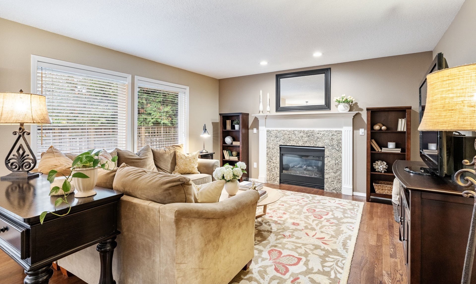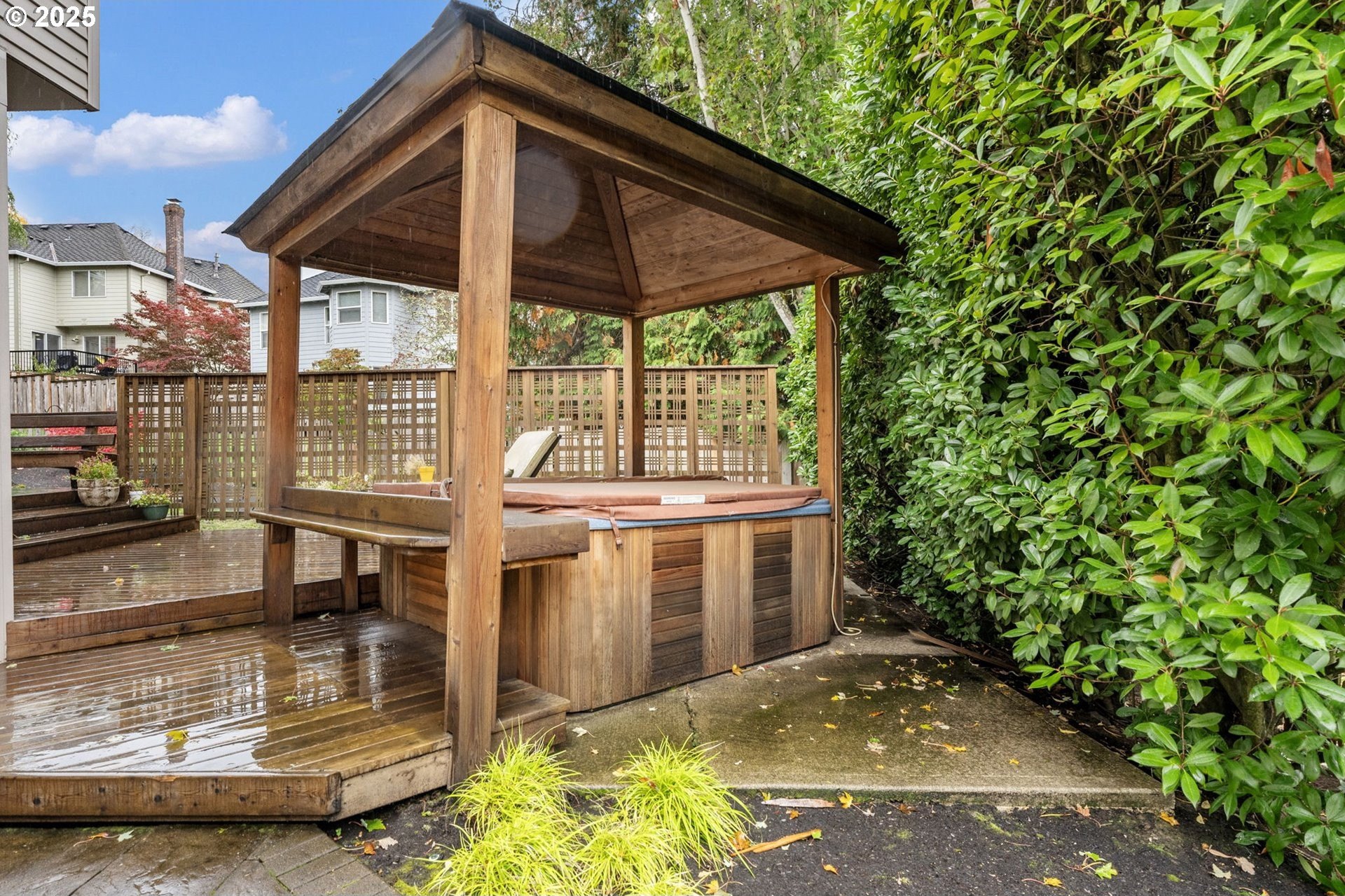 Meticulously designed traditional home in Burntwood West. Step inside to an inviting living room with vaulted ceilings, new designer curtains, and a grand staircase. Rich dark hardwoods flow throughout the main level, complemented by soaring 10-foot ceilings and abundant natural light that create an airy, welcoming atmosphere. The remodeled kitchen features granite countertops, stainless steel appliances, and ample storage and entertaining space. Gather in the cozy great room around the gas fireplace for a perfect blend of comfort and style. Upstairs, the primary suite impresses with high ceilings and a designer-finished bathroom showcasing marble floors, counters, and a stunning walk-in shower. The secondary bathroom has been recently updated with marble floors and a beautiful new vanity, while the additional bedrooms offer generous space and exceptional storage. The laundry room has also been renovated with timeless tile floors & cafe curtains. Outdoors, enjoy a large entertainer’s deck with a recently serviced hot tub—ideal for relaxing, hosting, or simply taking in the surroundings. The spacious yard provides plenty of room to play, garden, and gather. The home has been meticulously maintained and thoughtfully updated with a new roof, new carpets, modern light fixtures throughout, and beautifully remodeled main spaces. Perfectly situated on a quiet cul-de-sac, this home offers easy access to downtown Beaverton’s popular restaurants, nearby walking trails, and wonderful schools.