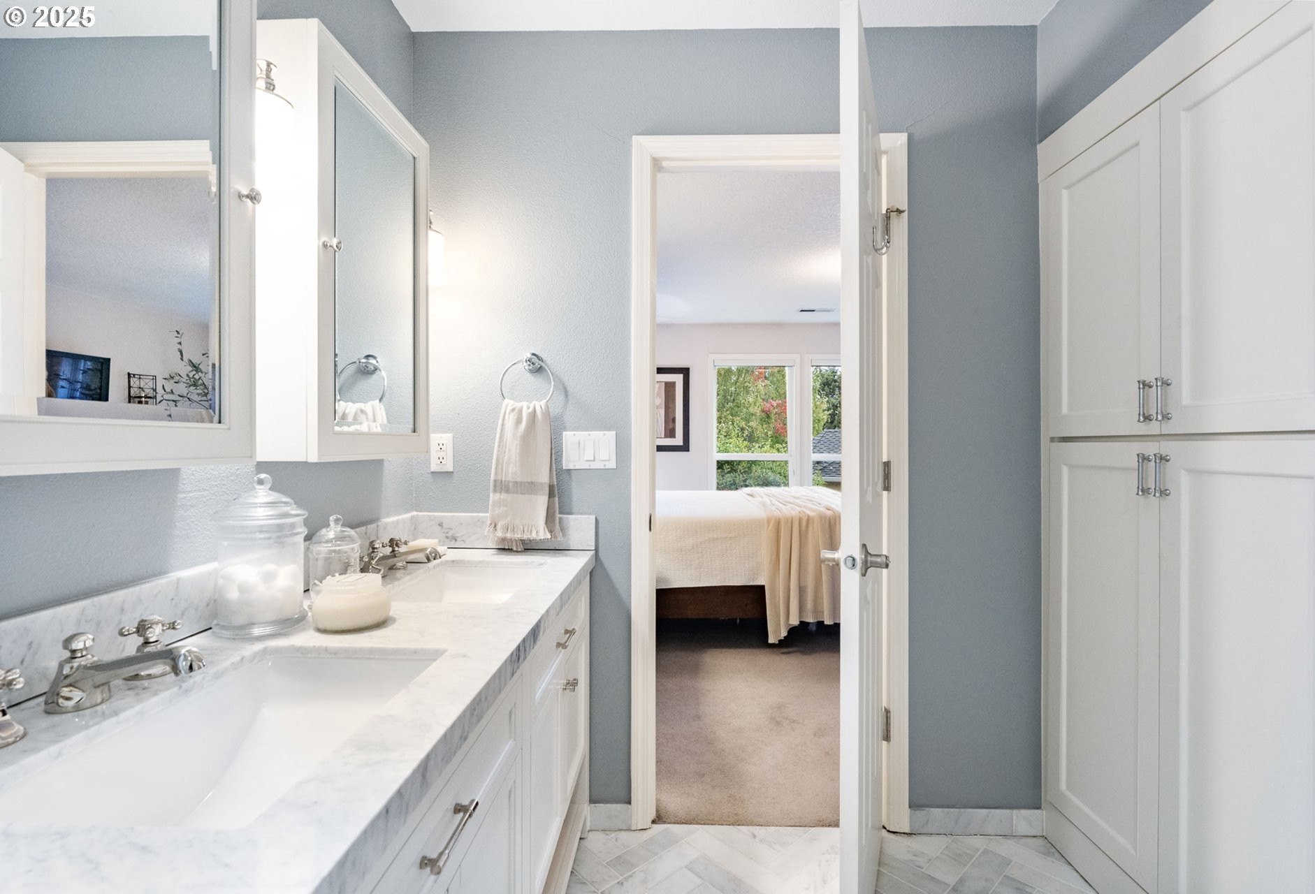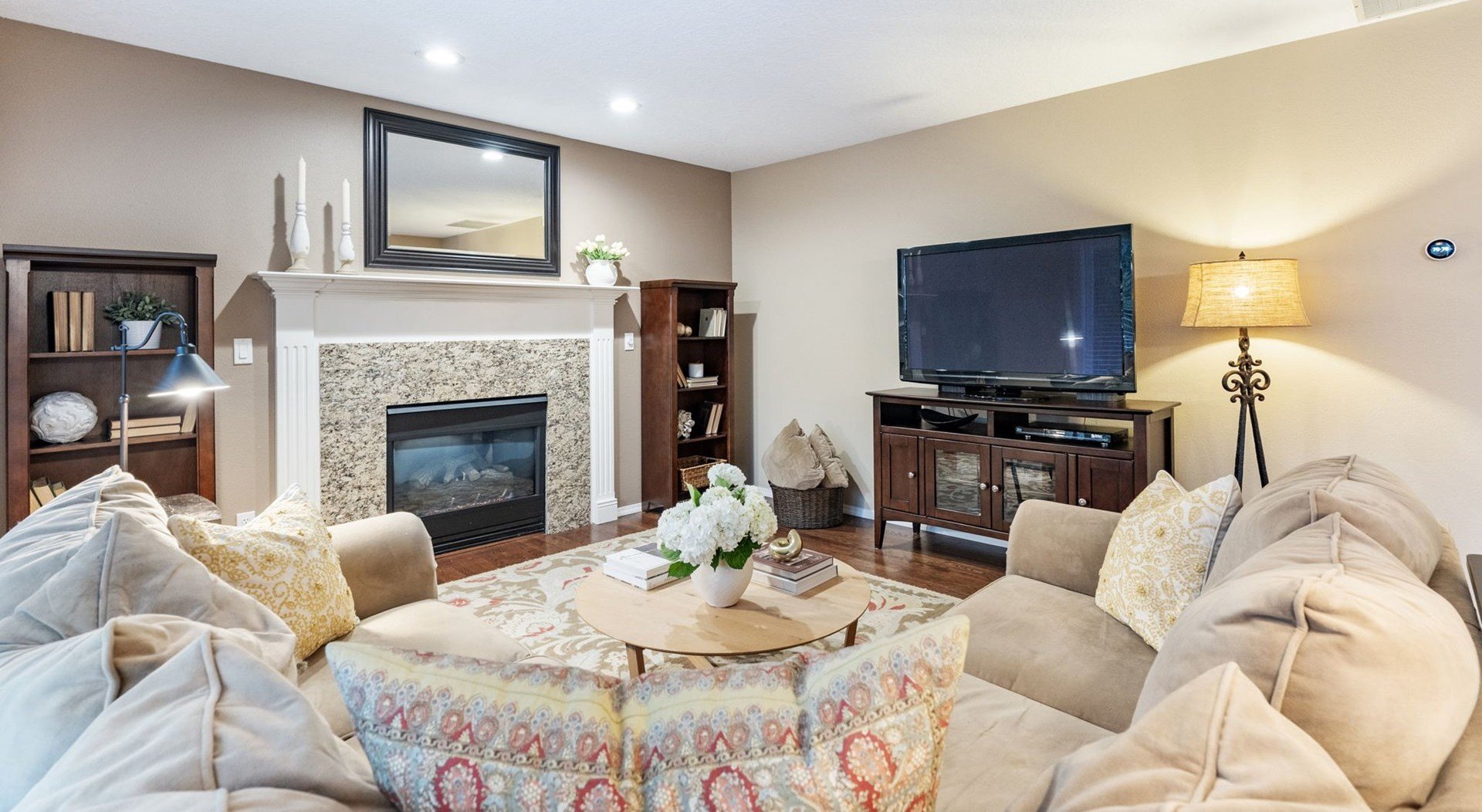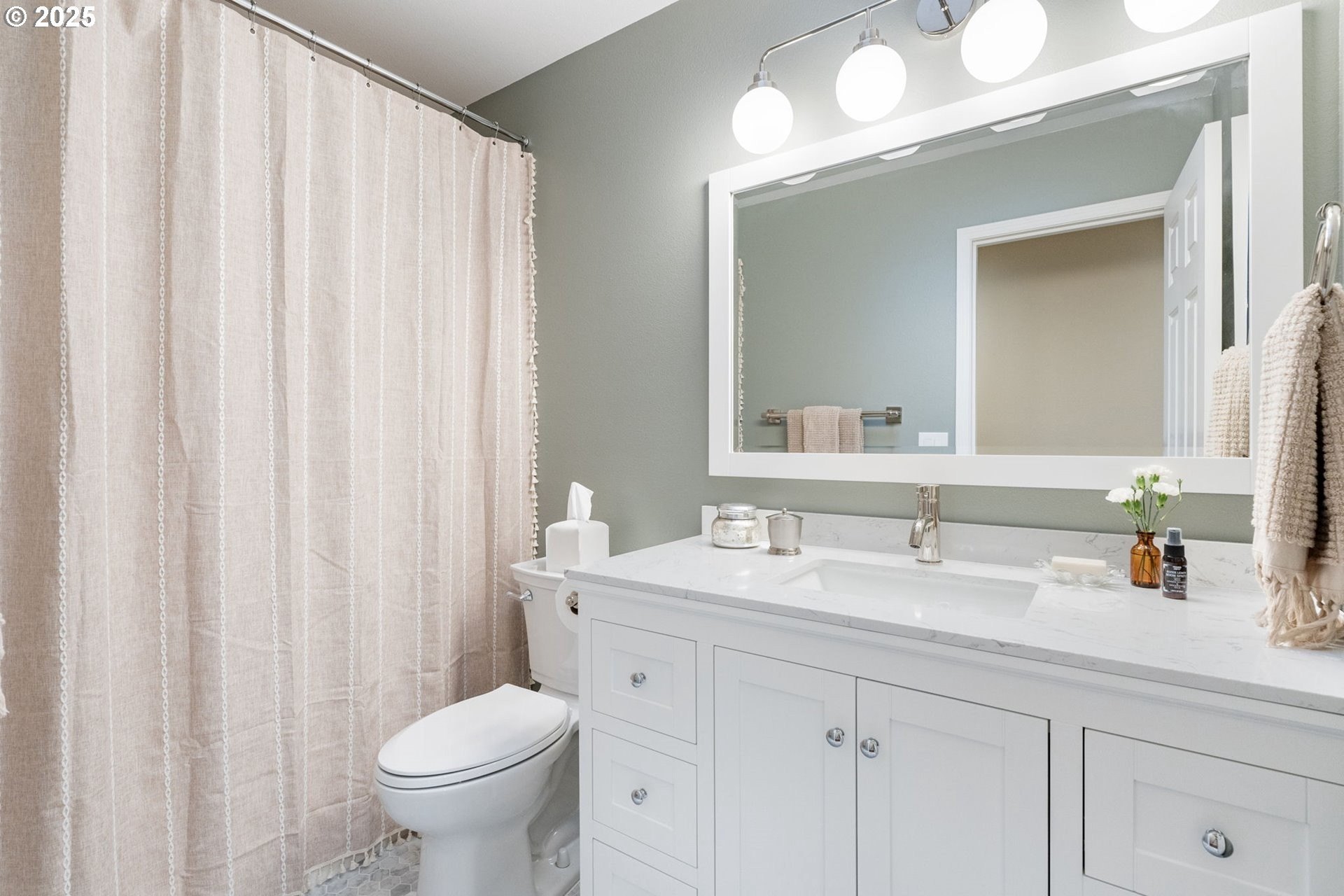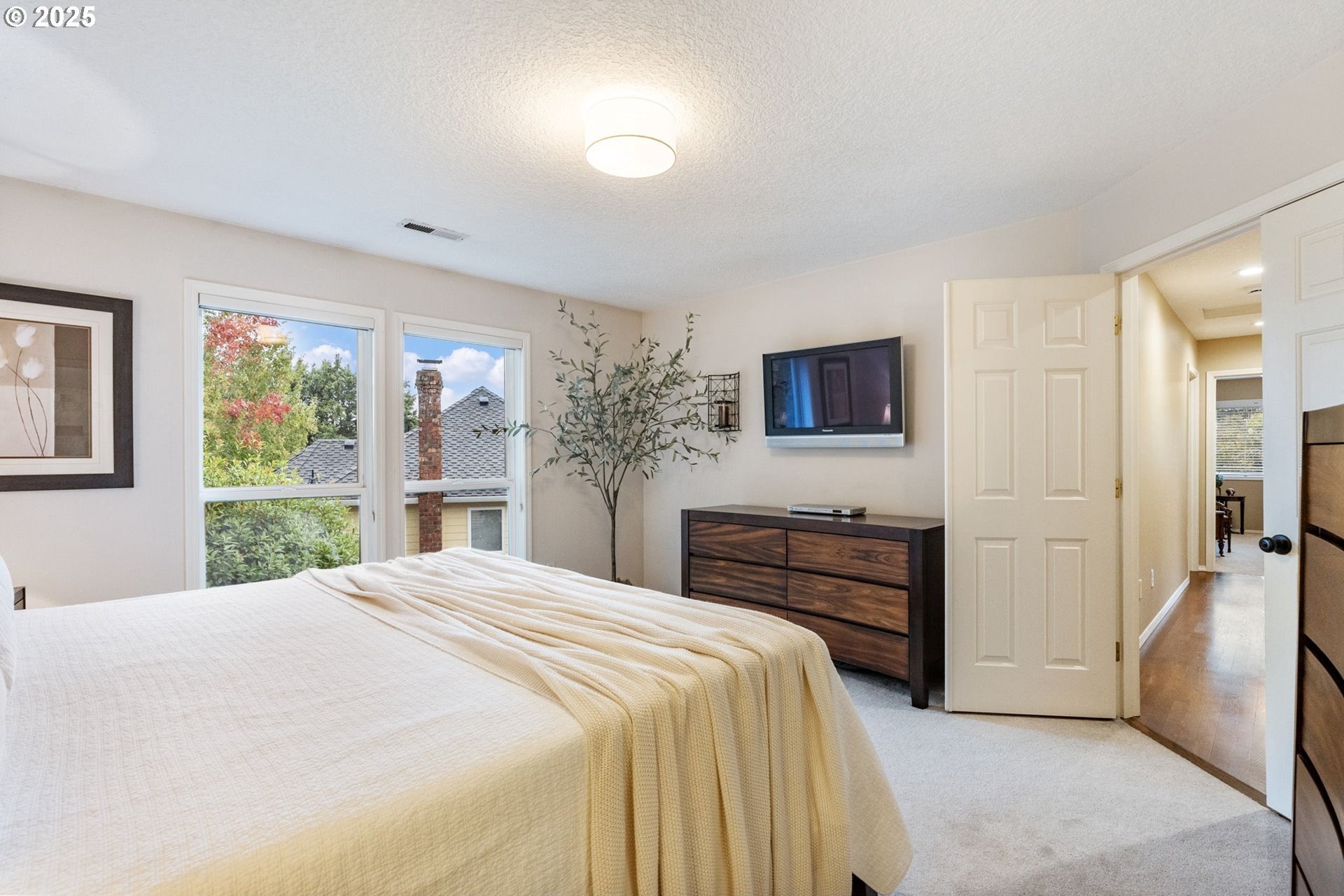 Meticulously designed traditional home in Burntwood West. Step inside to an inviting living room with vaulted ceilings, new designer curtains, and a grand staircase. Rich dark hardwoods flow throughout the main level, complemented by soaring 10-foot ceilings and abundant natural light that create an airy, welcoming atmosphere. The remodeled kitchen features granite countertops, stainless steel appliances, and ample storage and entertaining space. Gather in the cozy great room around the gas fireplace for a perfect blend of comfort and style. Upstairs, the primary suite impresses with high ceilings and a designer-finished bathroom showcasing marble floors, counters, and a stunning walk-in shower. The secondary bathroom has been recently updated with marble floors and a beautiful new vanity, while the additional bedrooms offer generous space and exceptional storage. The laundry room has also been renovated with timeless tile floors & cafe curtains. Outdoors, enjoy a large entertainer’s deck with a recently serviced hot tub—ideal for relaxing, hosting, or simply taking in the surroundings. The spacious yard provides plenty of room to play, garden, and gather. The home has been meticulously maintained and thoughtfully updated with a new roof, new carpets, modern light fixtures throughout, and beautifully remodeled main spaces. Perfectly situated on a quiet cul-de-sac, this home offers easy access to downtown Beaverton’s popular restaurants, nearby walking trails, and wonderful schools.