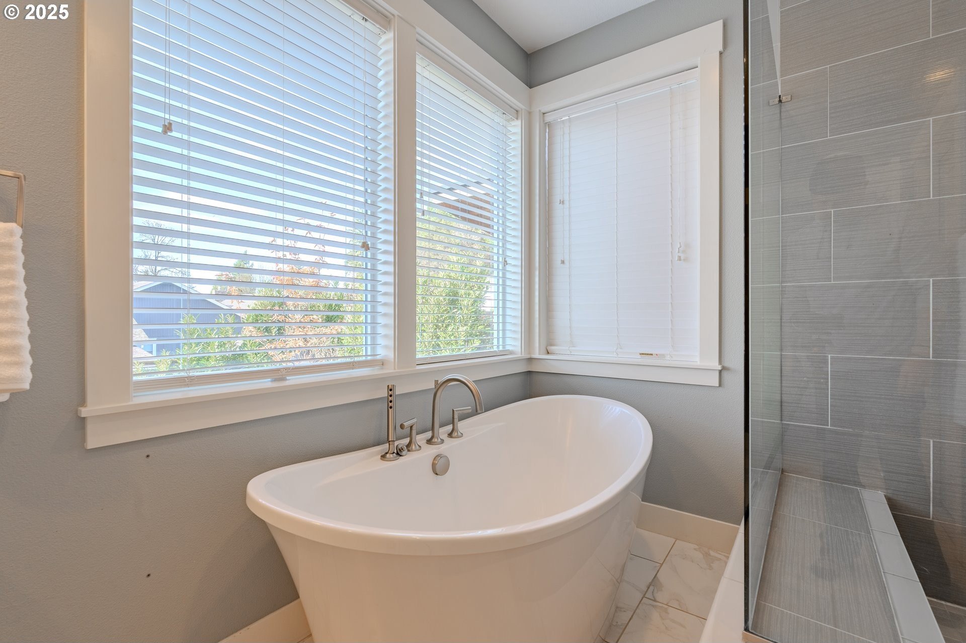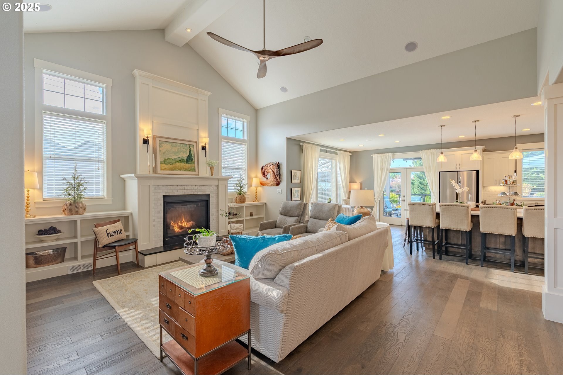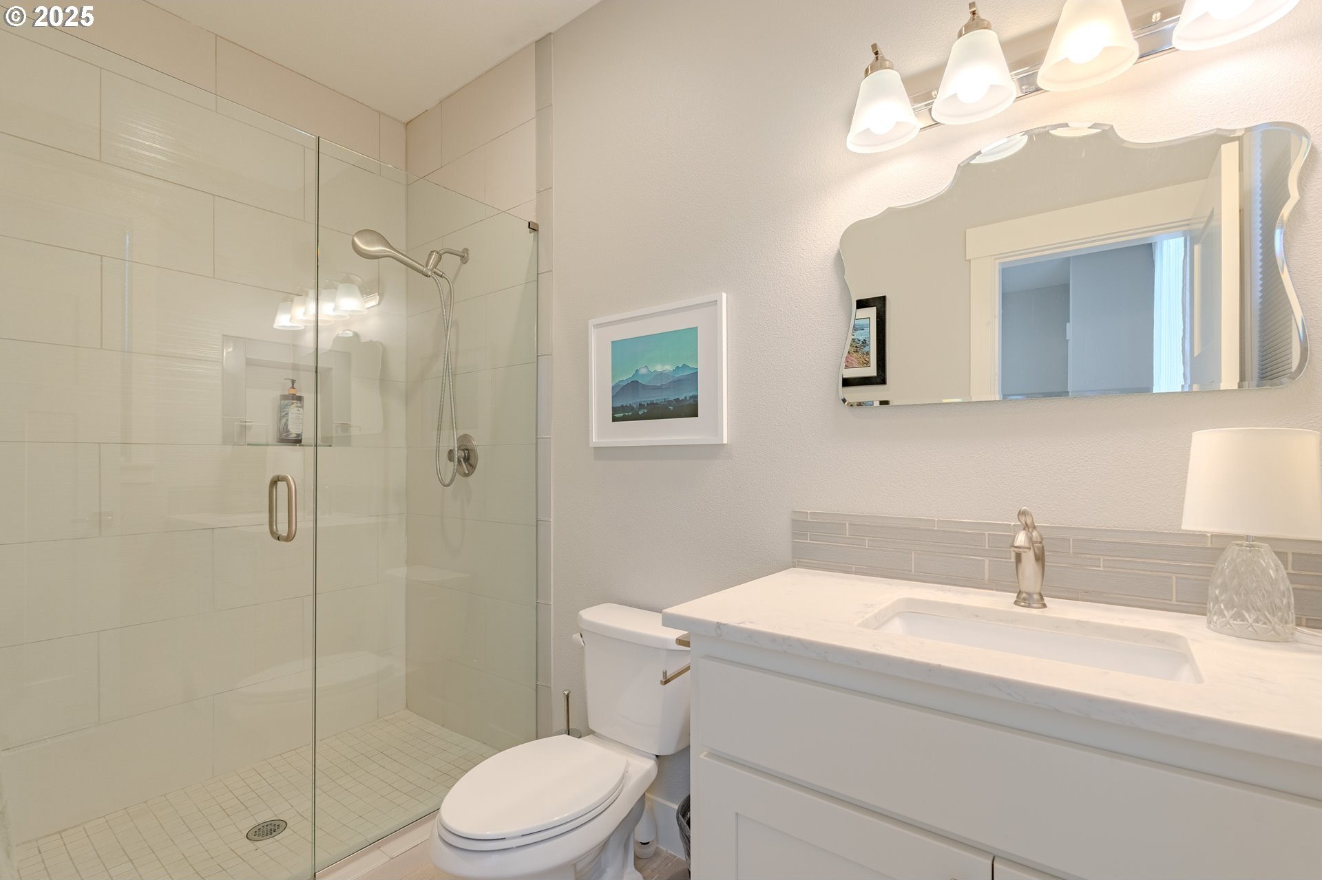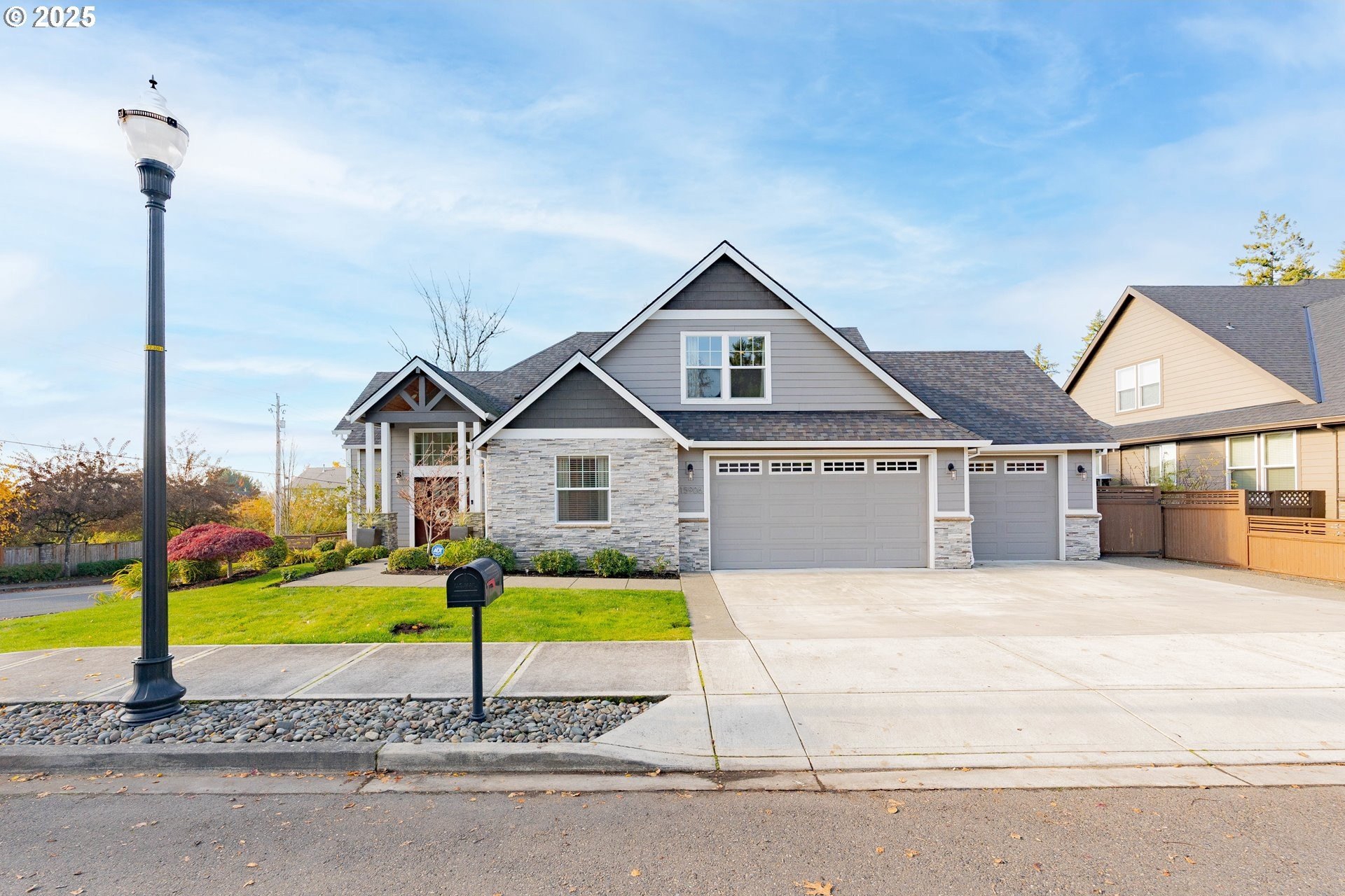 Every inch of this exceptional residence speaks to quality, craftsmanship, and custom design. From the moment you step inside, the attention to detail is undeniable—vaulted ceilings and abundant south-facing windows fill the home with light, while engineered hardwood floors, recessed lighting, and layers of quartz and honed granite create a timeless, elegant atmosphere. The kitchen is truly a showpiece, featuring an oversized slab quartz island with built-ins and a prep sink, locally crafted cabinetry with pull-outs, under-mount sinks, pot filler, and stunning slab surfaces. The dining area offers trey ceilings with ambient lighting and chair railing, while the living room centers around a Montigo gas fireplace with solid Carrera tile and coordinating built-ins. Wired speakers in the living and bonus rooms, plus a TV in the living area (included), elevate the entertainment experience. The luxurious primary suite feels like a retreat with a deep soaking tub, floor-to-ceiling tile, and oversized walk-in shower. Every bathroom is finished with high-end tile work, including Italian tile flooring in the powder room. Upstairs includes a bonus room, third bedroom, and full bath. A fully permitted attached ADU offers a private entrance, HVAC, kitchenette, bedroom, and bath—ideal for guests, multi-generational living, or rental income. Outdoor living shines with a 28x14 covered TimberTech deck, fire pit, garden beds with sprinklers, mature landscaping with custom boulders, and a fully fenced yard with apple and pear trees. A 10x20 shed with dual barn doors provides excellent storage. Located just 1.5 miles from Legacy Salmon Creek Hospital and Washington State University Vancouver, this home also resides in the Skyview High School boundary—home to Clark County’s only College Prep Magnet STEM program partnering with Stanford and Penn State. A true blend of luxury, location, and lifestyle.
