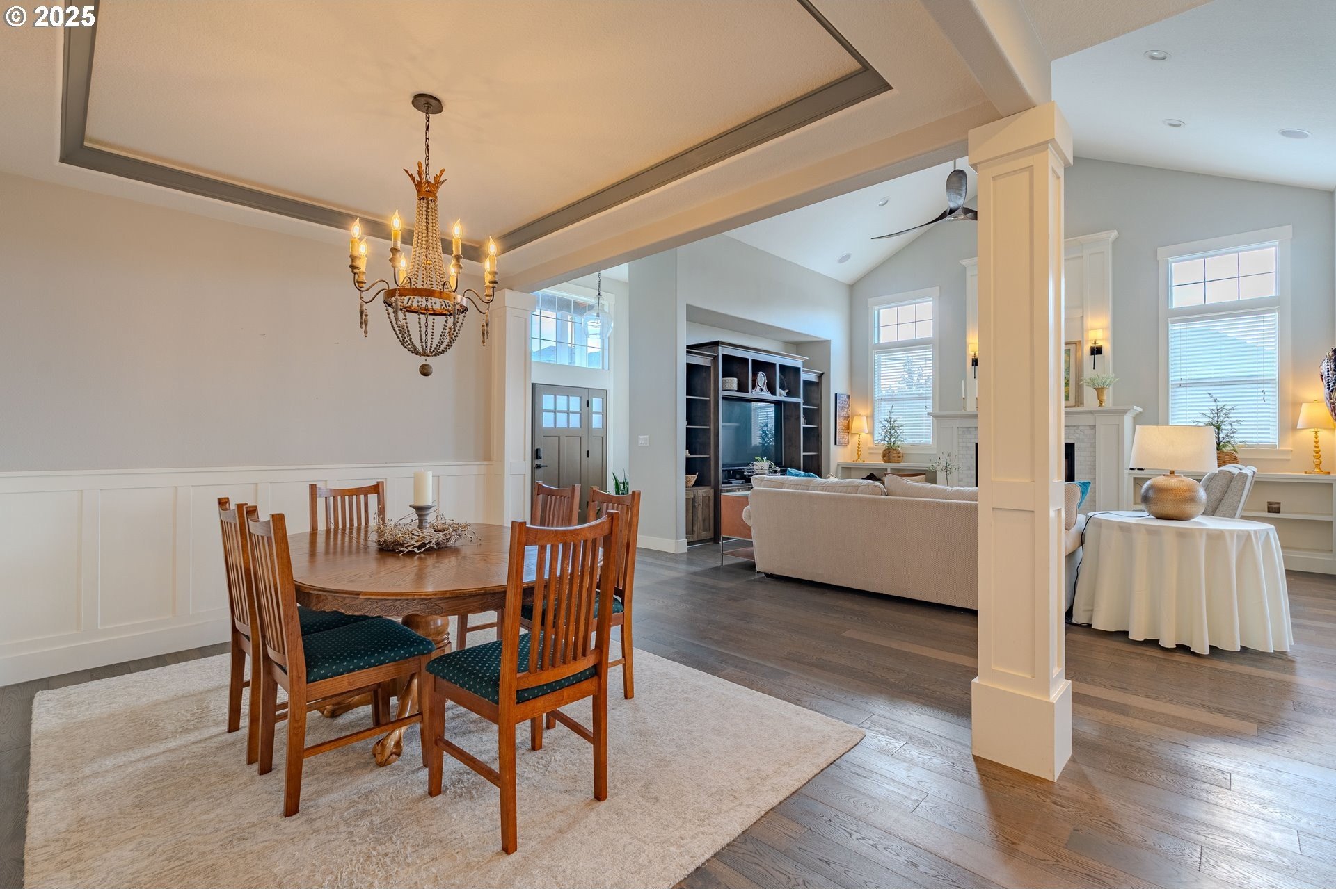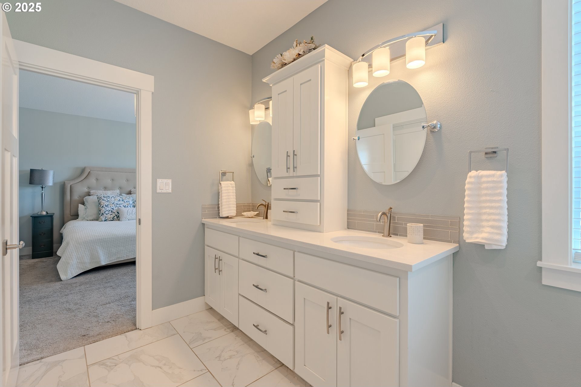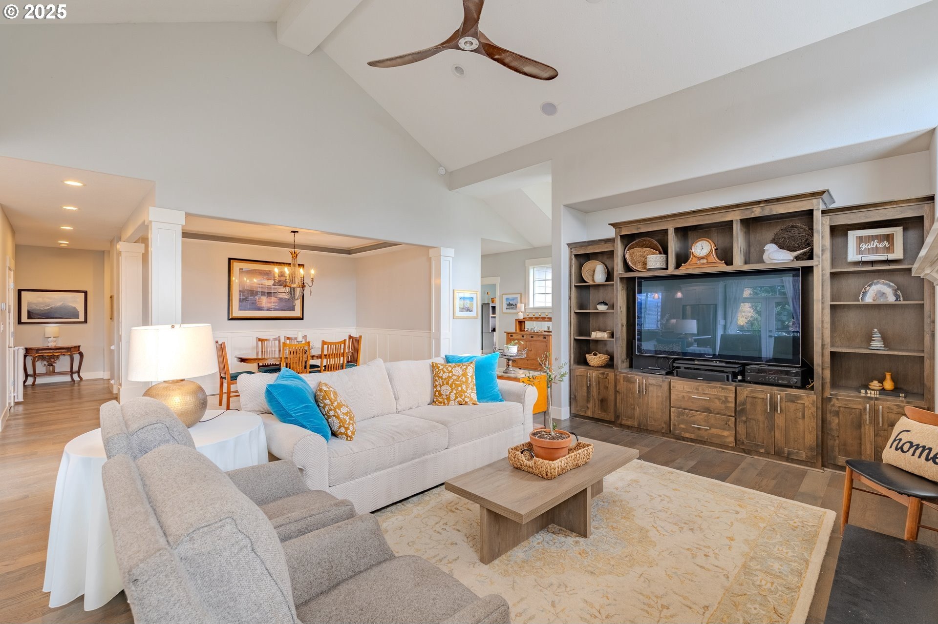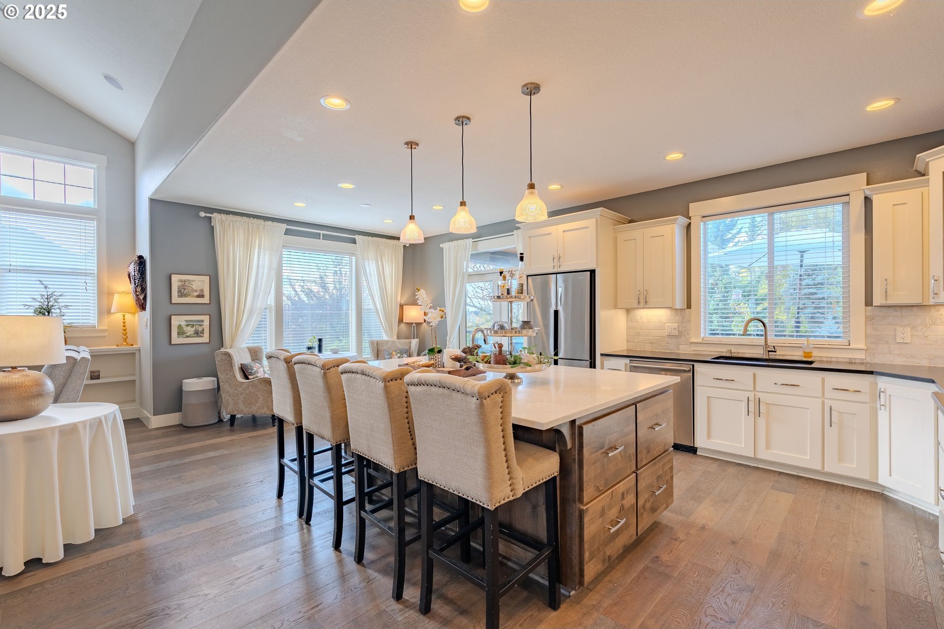 Every inch of this exceptional residence speaks to quality, craftsmanship, and custom design. From the moment you step inside, the attention to detail is undeniable—vaulted ceilings and abundant south-facing windows fill the home with light, while engineered hardwood floors, recessed lighting, and layers of quartz and honed granite create a timeless, elegant atmosphere. The kitchen is truly a showpiece, featuring an oversized slab quartz island with built-ins and a prep sink, locally crafted cabinetry with pull-outs, under-mount sinks, pot filler, and stunning slab surfaces. The dining area offers trey ceilings with ambient lighting and chair railing, while the living room centers around a Montigo gas fireplace with solid Carrera tile and coordinating built-ins. Wired speakers in the living and bonus rooms, plus a TV in the living area (included), elevate the entertainment experience. The luxurious primary suite feels like a retreat with a deep soaking tub, floor-to-ceiling tile, and oversized walk-in shower. Every bathroom is finished with high-end tile work, including Italian tile flooring in the powder room. Upstairs includes a bonus room, third bedroom, and full bath. A fully permitted attached ADU offers a private entrance, HVAC, kitchenette, bedroom, and bath—ideal for guests, multi-generational living, or rental income. Outdoor living shines with a 28x14 covered TimberTech deck, fire pit, garden beds with sprinklers, mature landscaping with custom boulders, and a fully fenced yard with apple and pear trees. A 10x20 shed with dual barn doors provides excellent storage. Located just 1.5 miles from Legacy Salmon Creek Hospital and Washington State University Vancouver, this home also resides in the Skyview High School boundary—home to Clark County’s only College Prep Magnet STEM program partnering with Stanford and Penn State. A true blend of luxury, location, and lifestyle.