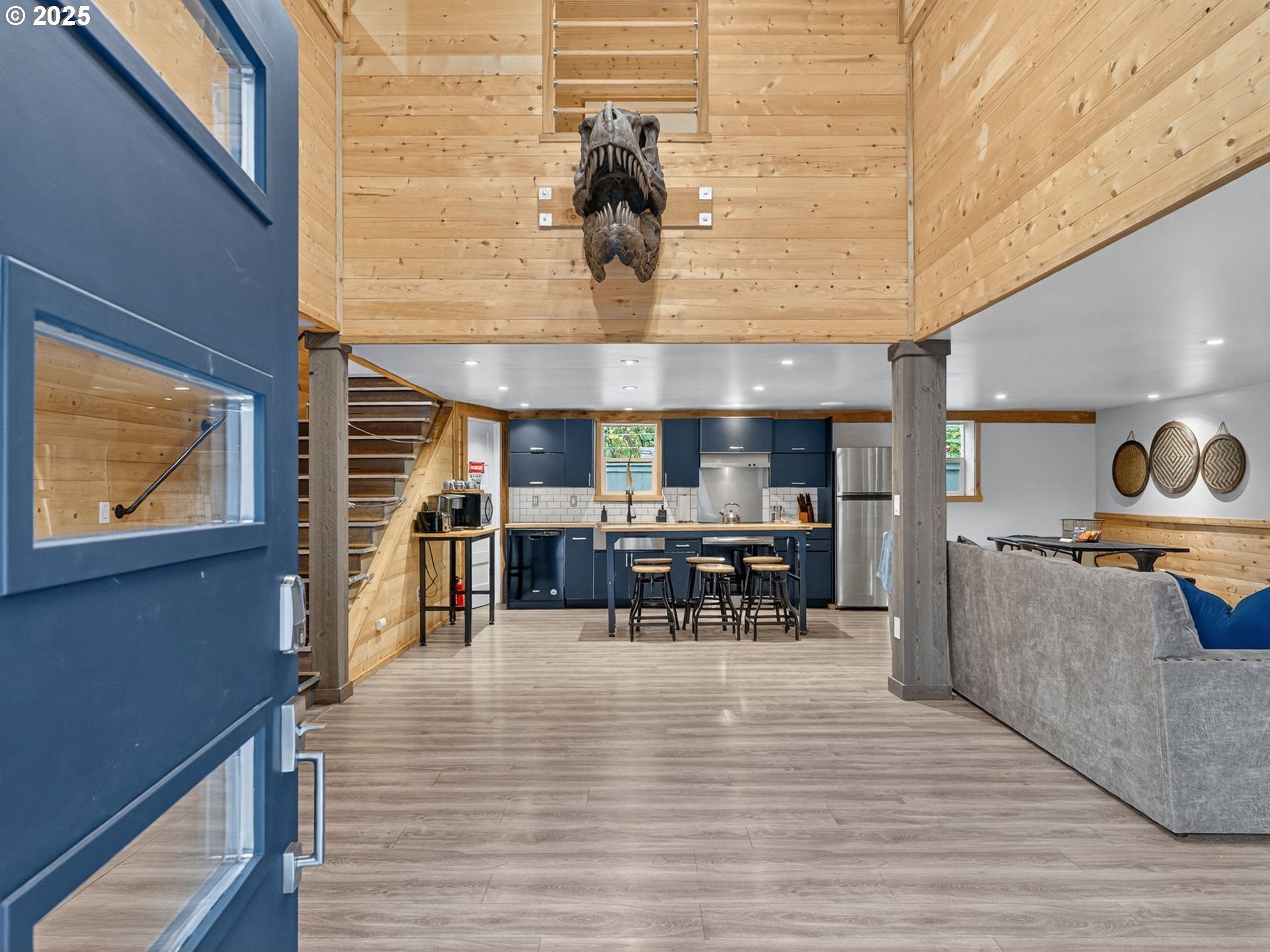A Jurassic-Inspired Sanctuary on 2.03 Acres Above the Columbia Gorge! Welcome to Jurassic Retreat, where dramatic natural beauty & modern comfort meet in a setting that feels carved from another era—complemented by a successful short-term rental track record. Nestled along the lush hills of Washougal, this one-of-a-kind property evokes the spirit of a prehistoric oasis: soaring evergreens, primeval ferns, layered rock formations & the steady hush of nature forming a backdrop worthy of a cinematic landscape. The home itself is a stunning retreat, blending warm Northwest architecture with curated updates & expansive windows that frame your private “Jurassic valley.” Features 4 beds/2 baths, vaulted-high ceilings, beamed ceilings, French doors & natural light that pours across open living spaces, illuminating rich textures & seamless indoor–outdoor flow. The kitchen boasts modern appliances including dishwasher, microwave, range, fridge, along with generous counter space & eating area. The bedrooms are serene escapes, each capturing its own slice of the surrounding wilderness, while the bathrooms offer comfort and style with updated finishes. The 4th bedroom on the main can flex as a den, office, game room or workspace. Mud room & laundry with washer/dryer included. A filtration system runs from the well to the reservoir supplying the home. Outdoors, the magic continues with mossy paths, wildlife & a towering canopy that gives each moment a cinematic feel. Enjoy a private hot tub, deck and plenty of space for kids & entertainment, plus a secure smart lock check-in system. This secluded gem is only minutes from modern thrills—kayaking & windsurfing along the Columbia, world-class hiking & waterfalls in the Gorge, local wineries & breweries, charming downtown Washougal shops & easy access to Vancouver & Portland amenities. A rare fusion of artistry, privacy, convenience & primeval beauty—this is a truly immersive, storybook haven.