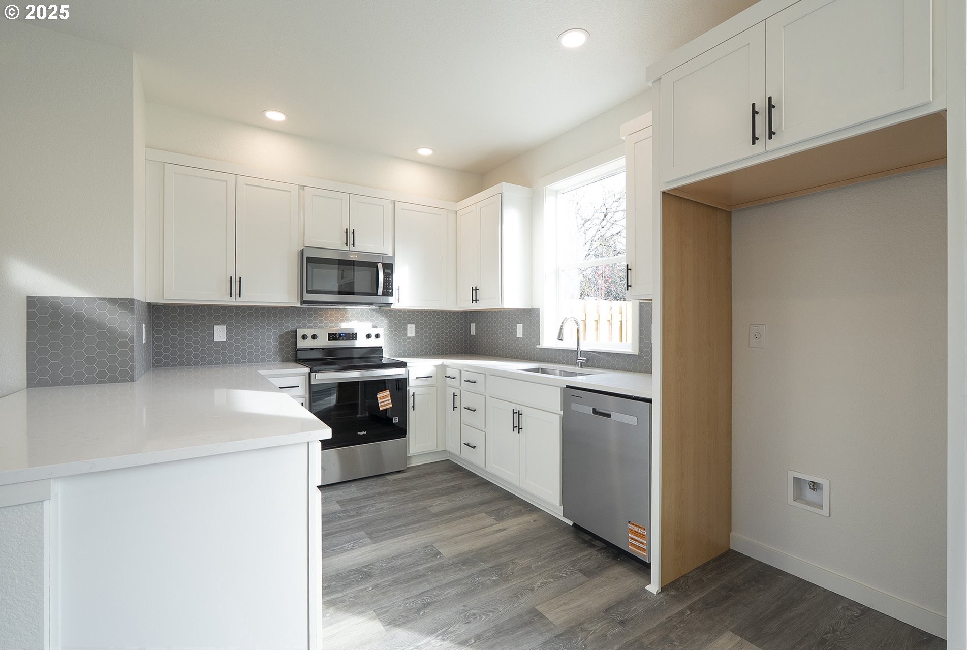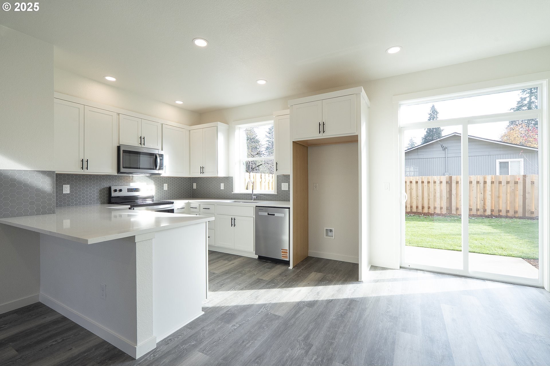 OPEN HOUSE SUNDAY NOVEMBER 23rd from 1:30 to 3:30 pm. Beautiful brand new home with large fenced yard and 10 YEAR PROPERTY TAX ABATEMENT available. The MAXIMUM INCOME is $124,100. If you make less than $124,100 per year this is the perfect way to get a nicer home for lower payments. Typically property taxes are $900 to $1,200 per year! All the bedrooms upstairs have vaulted ceilings. Primary bedroom has a walk in closet and a full bathroom. The first floor has 9 foot ceilings with luxury vinyl plank floors. The kitchen comes with a stylish hood vent, quartz countertops with an eat bar and stainless steel appliances. For a limited time, the home also comes with a refrigerator, window coverings and a washer/dryer.