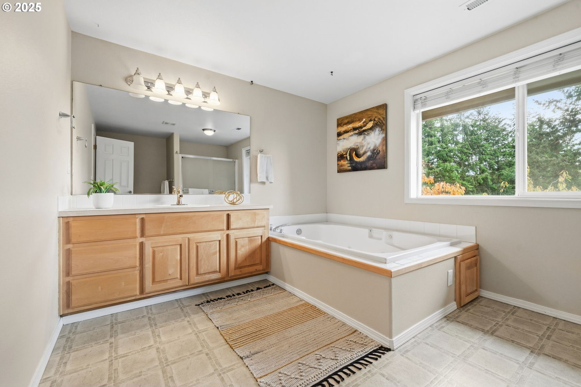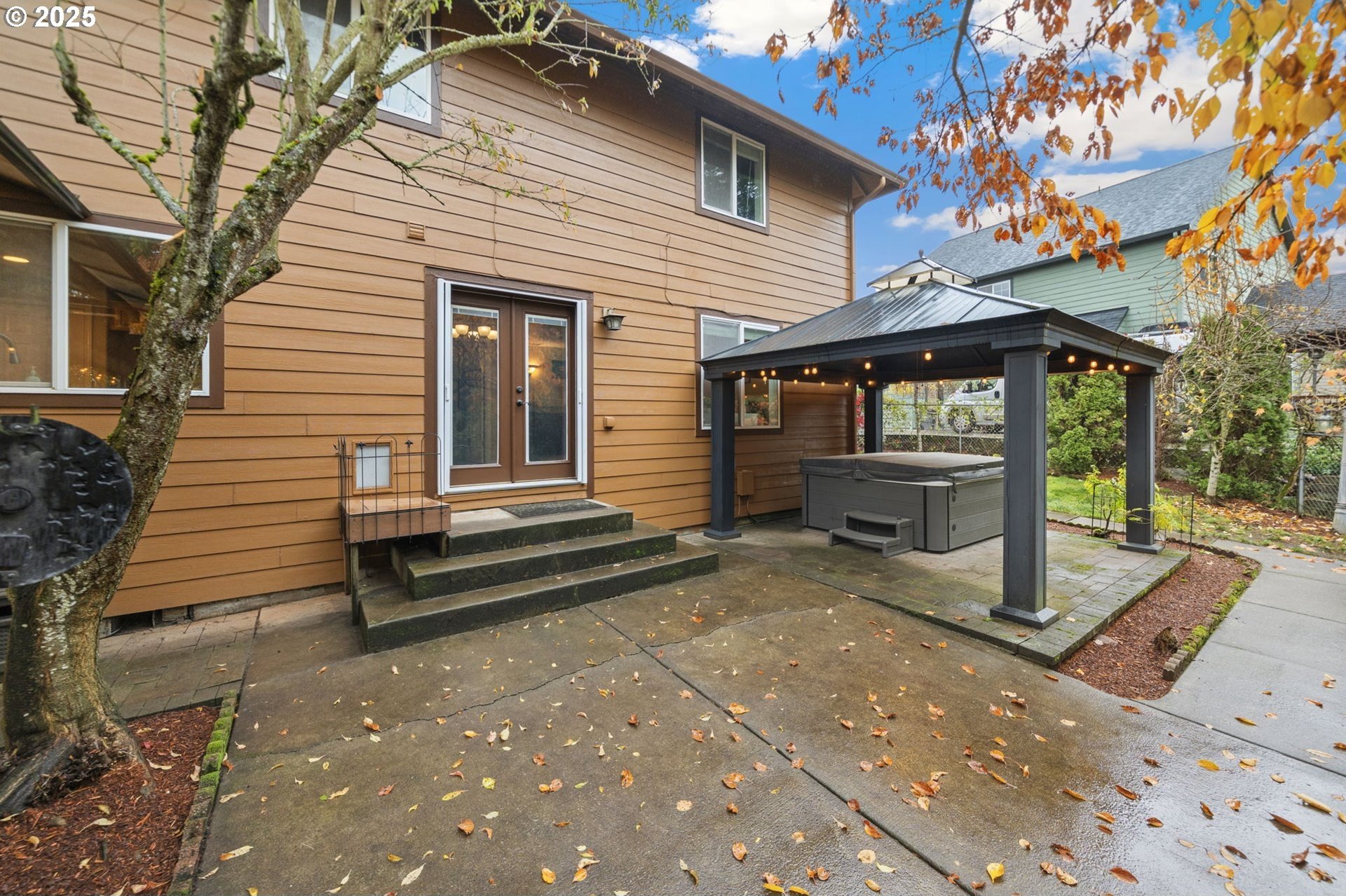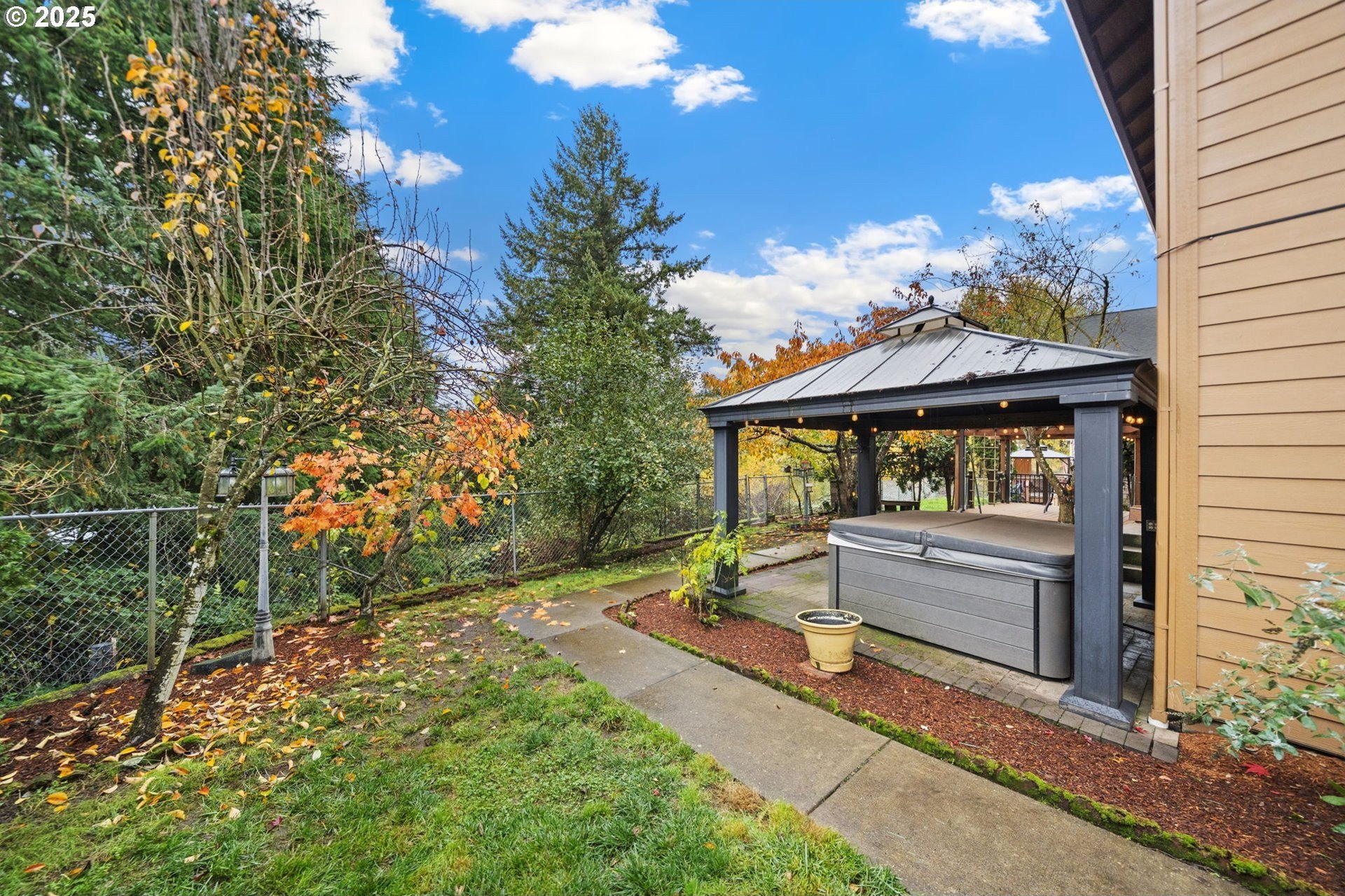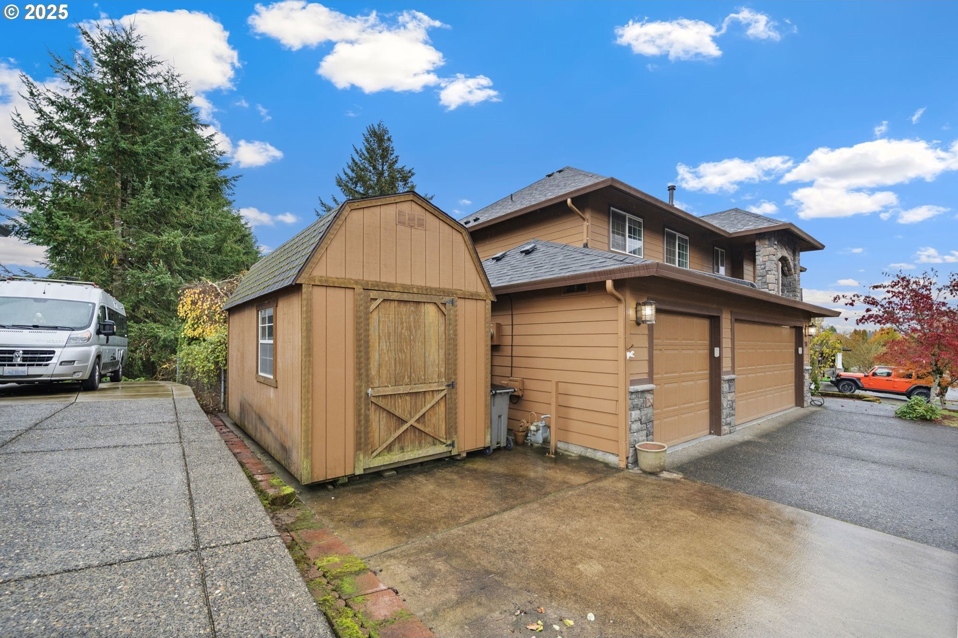 Beautifully maintained Ridgefield home backing to a peaceful greenbelt with no HOA, RV parking, hardwood and tile floors (no carpet), fresh interior paint, and a brand-new roof with transferable warranty. The kitchen features a five-burner gas range, built-in microwave, and an eat-in bar overlooking the tranquil, private greenery—a level of privacy few homes offer at this price point. The main level includes a gas fireplace, formal dining, a kitchen nook with double-door slider to the covered outdoor living area, and a second living room with a granite-tiled wet bar. The backyard offers year-round enjoyment with a covered gazebo, stacked-stone wood-burning fireplace, and covered hot tub. Upstairs are four bedrooms, including a spacious primary suite with a large organized walk-in closet and oversized soaking tub, plus a large bonus room/fourth bedroom ideal for separate living or flexible use. Additional highlights include serviced HVAC, extra-wide streets and sidewalks, downstairs laundry, and a 3-car garage. With two living rooms, two fireplaces, updated systems, and greenbelt views—and no rent-back needed—this home is move-in ready and can be yours for the holidays.