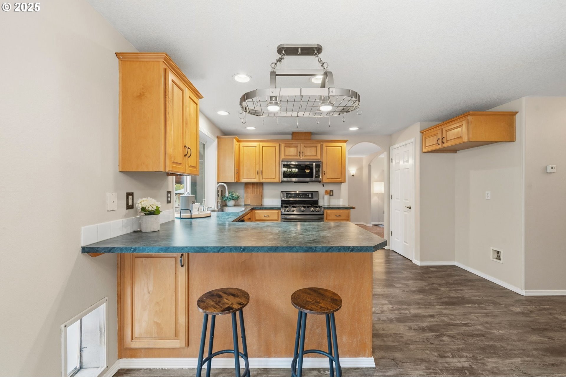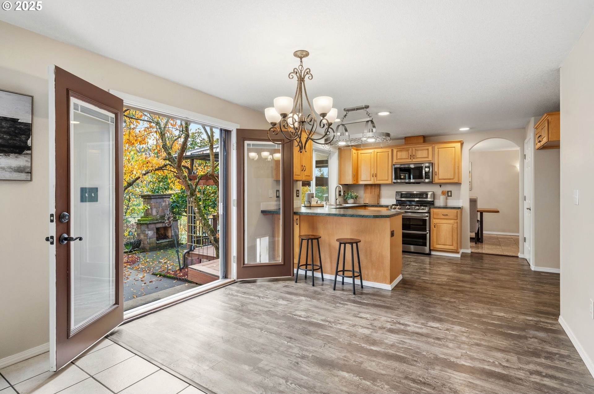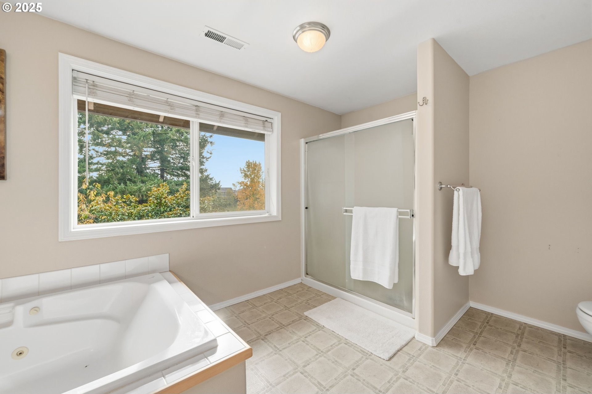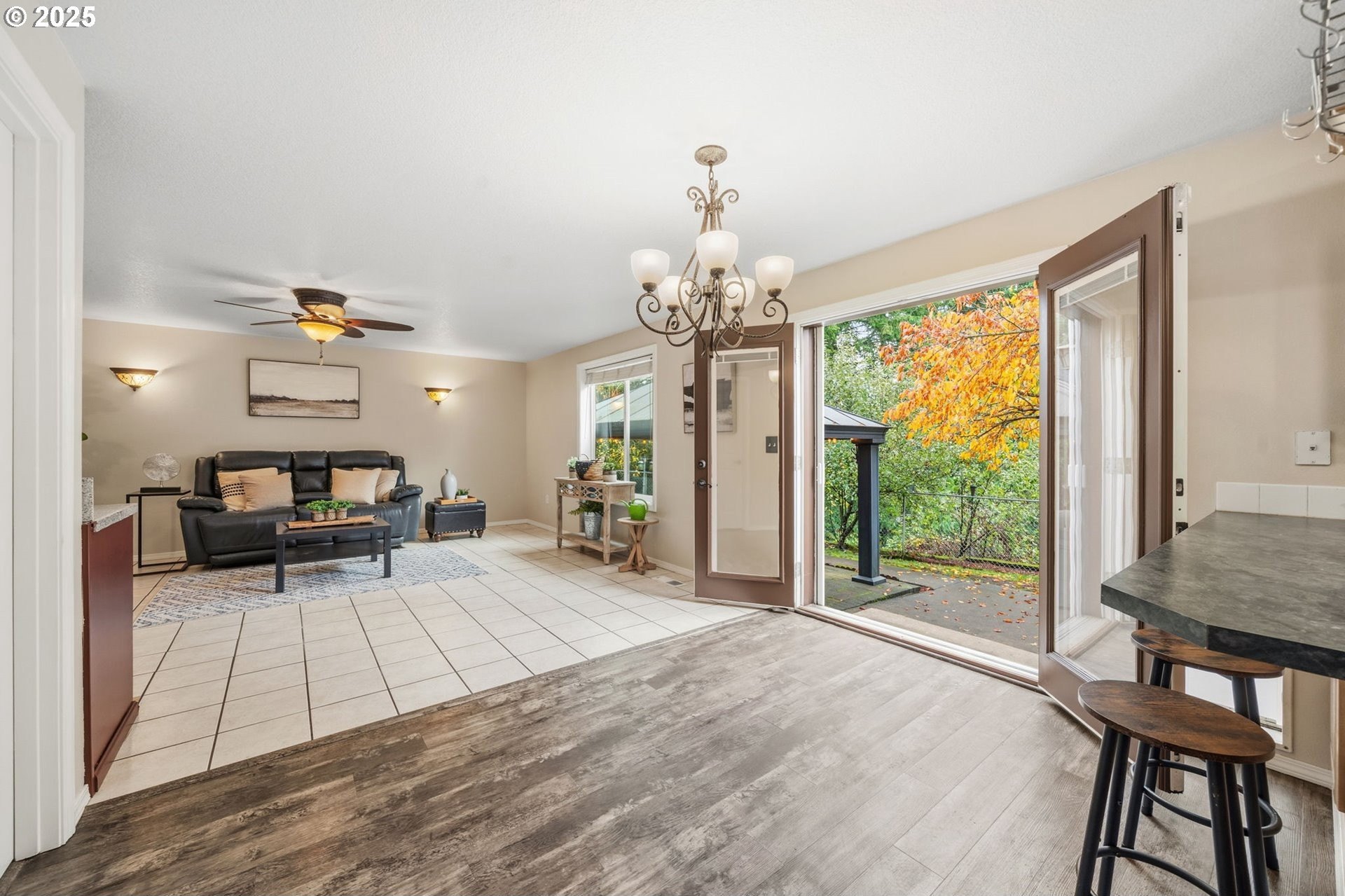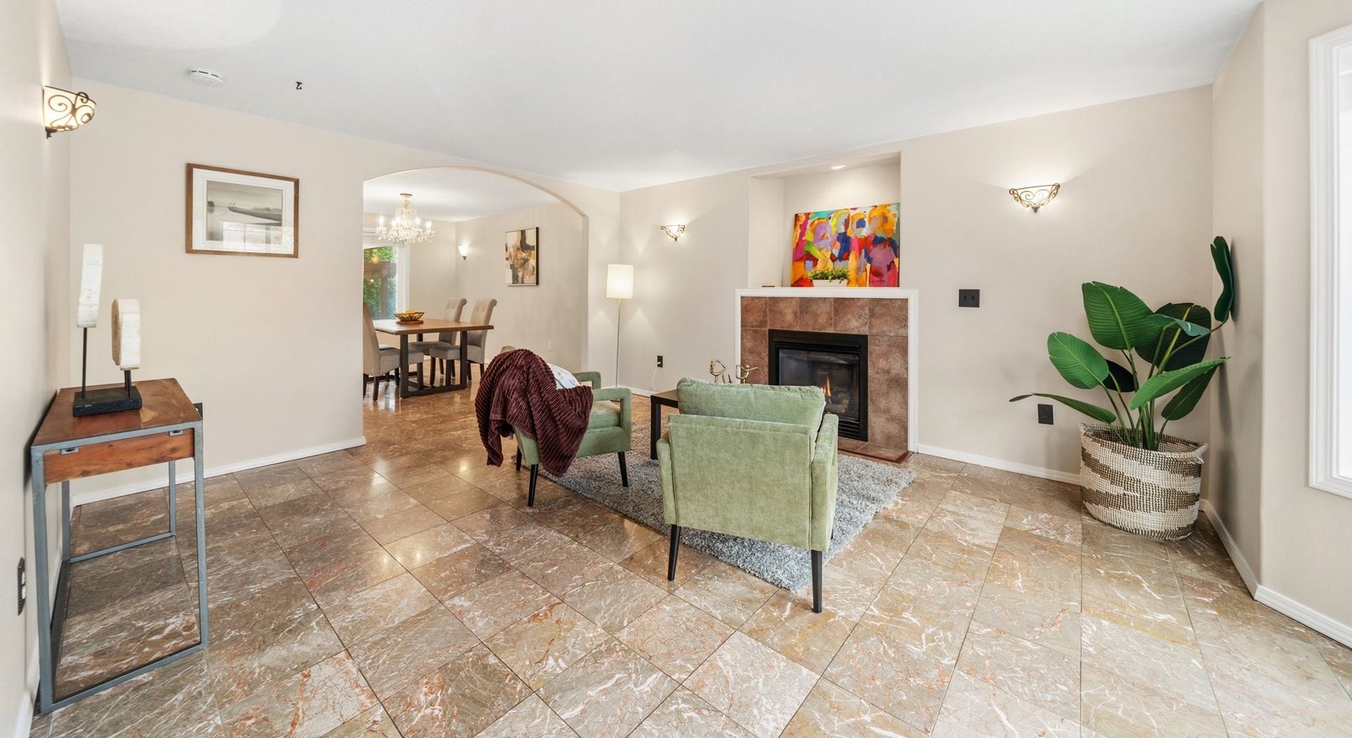 Beautifully maintained Ridgefield home backing to a peaceful greenbelt with no HOA, RV parking, hardwood and tile floors (no carpet), fresh interior paint, and a brand-new roof with transferable warranty. The kitchen features a five-burner gas range, built-in microwave, and an eat-in bar overlooking the tranquil, private greenery—a level of privacy few homes offer at this price point. The main level includes a gas fireplace, formal dining, a kitchen nook with double-door slider to the covered outdoor living area, and a second living room with a granite-tiled wet bar. The backyard offers year-round enjoyment with a covered gazebo, stacked-stone wood-burning fireplace, and covered hot tub. Upstairs are four bedrooms, including a spacious primary suite with a large organized walk-in closet and oversized soaking tub, plus a large bonus room/fourth bedroom ideal for separate living or flexible use. Additional highlights include serviced HVAC, extra-wide streets and sidewalks, downstairs laundry, and a 3-car garage. With two living rooms, two fireplaces, updated systems, and greenbelt views—and no rent-back needed—this home is move-in ready and can be yours for the holidays.