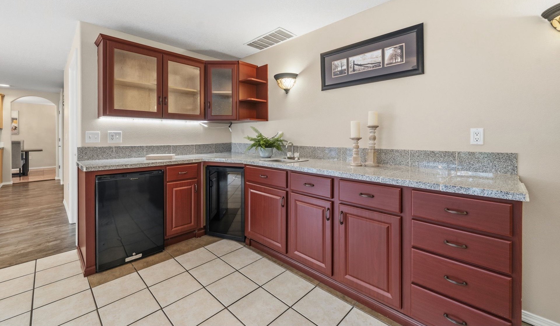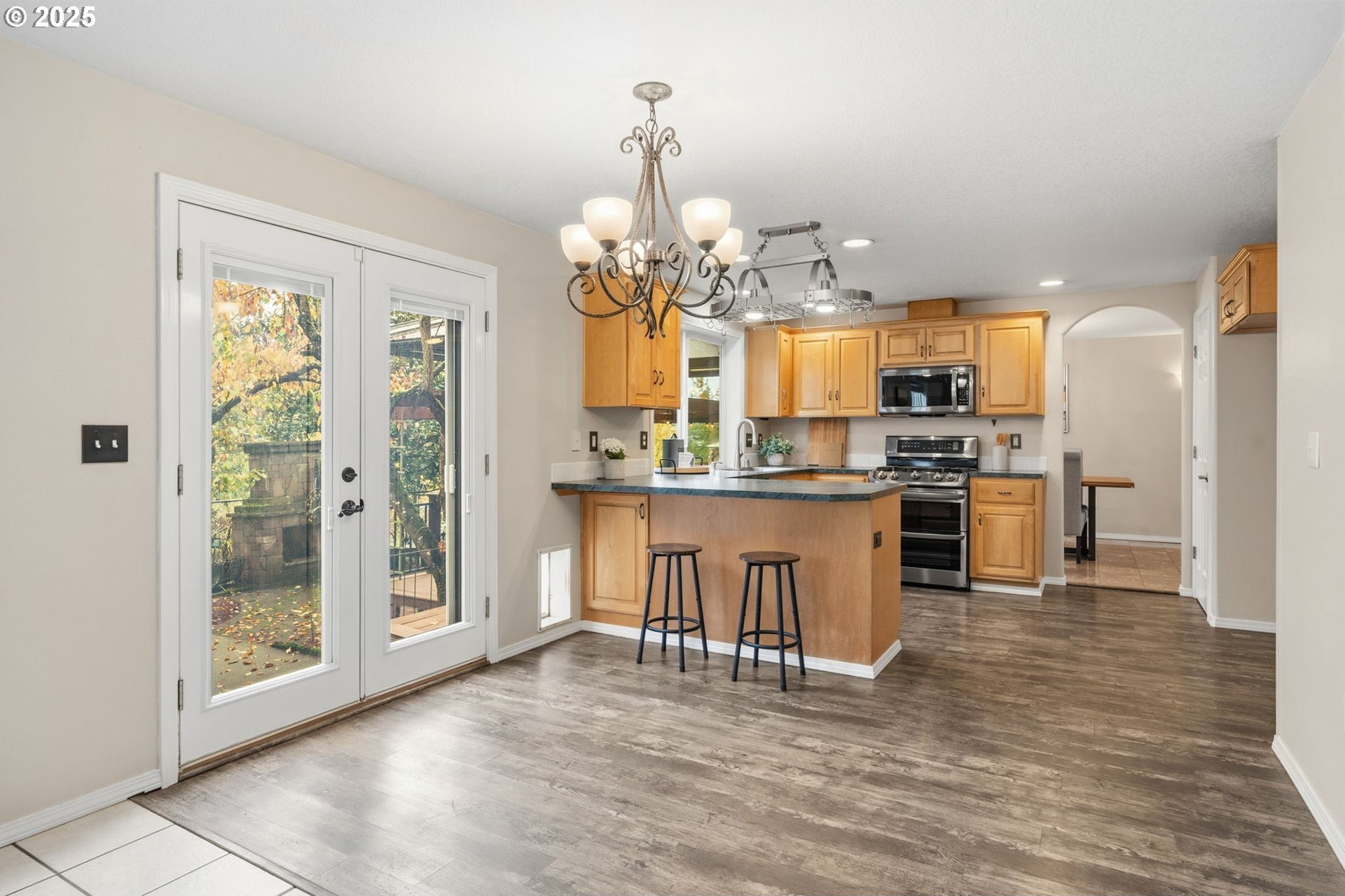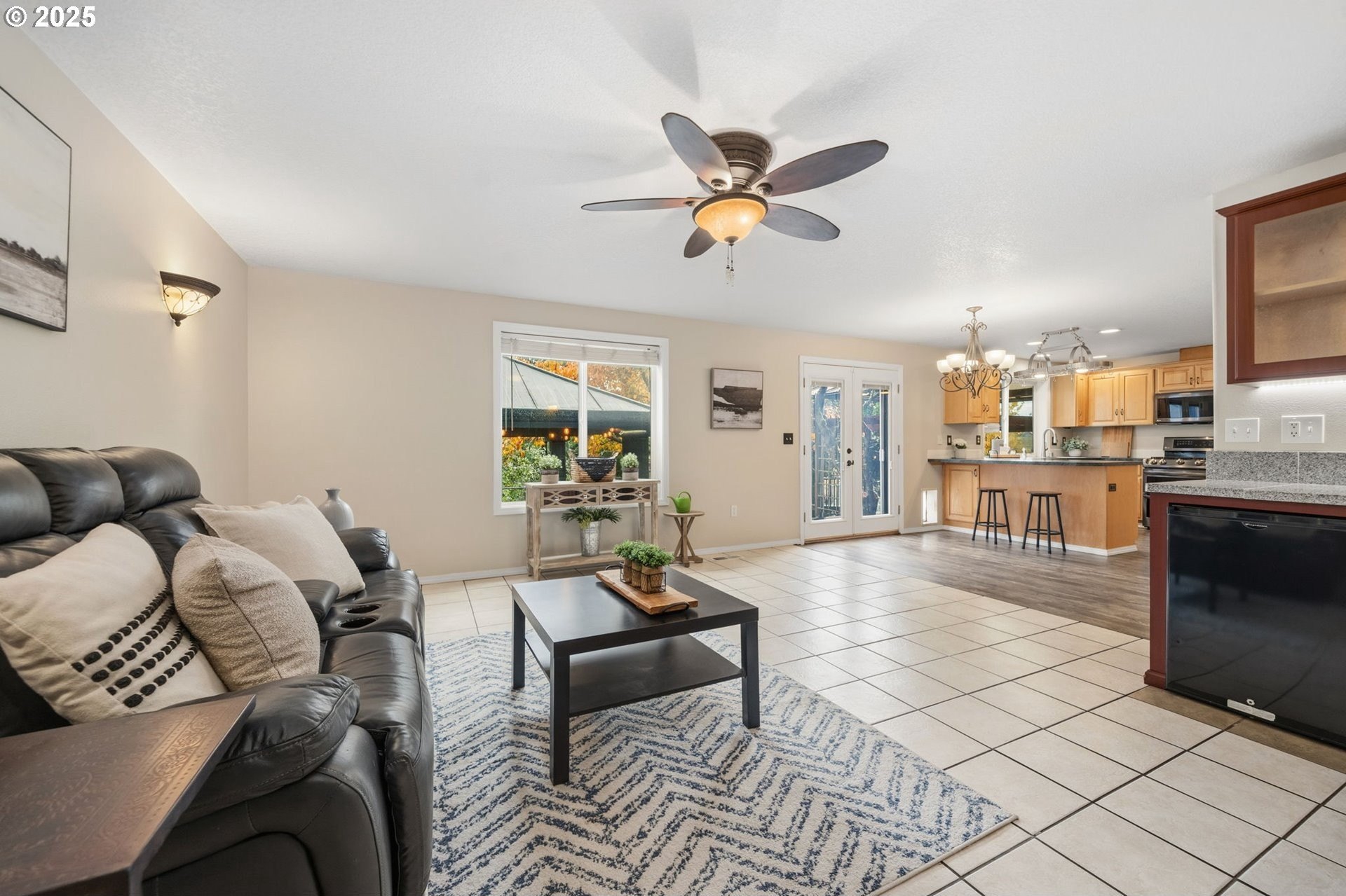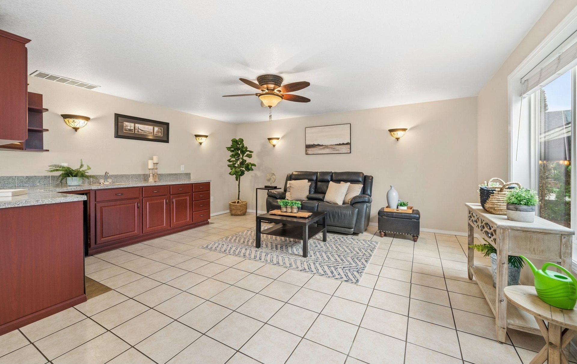 Beautifully maintained Ridgefield home backing to a peaceful greenbelt with no HOA, RV parking, hardwood and tile floors (no carpet), fresh interior paint, and a brand-new roof with transferable warranty. The kitchen features a five-burner gas range, built-in microwave, and an eat-in bar overlooking the tranquil, private greenery—a level of privacy few homes offer at this price point. The main level includes a gas fireplace, formal dining, a kitchen nook with double-door slider to the covered outdoor living area, and a second living room with a granite-tiled wet bar. The backyard offers year-round enjoyment with a covered gazebo, stacked-stone wood-burning fireplace, and covered hot tub. Upstairs are four bedrooms, including a spacious primary suite with a large organized walk-in closet and oversized soaking tub, plus a large bonus room/fourth bedroom ideal for separate living or flexible use. Additional highlights include serviced HVAC, extra-wide streets and sidewalks, downstairs laundry, and a 3-car garage. With two living rooms, two fireplaces, updated systems, and greenbelt views—and no rent-back needed—this home is move-in ready and can be yours for the holidays.