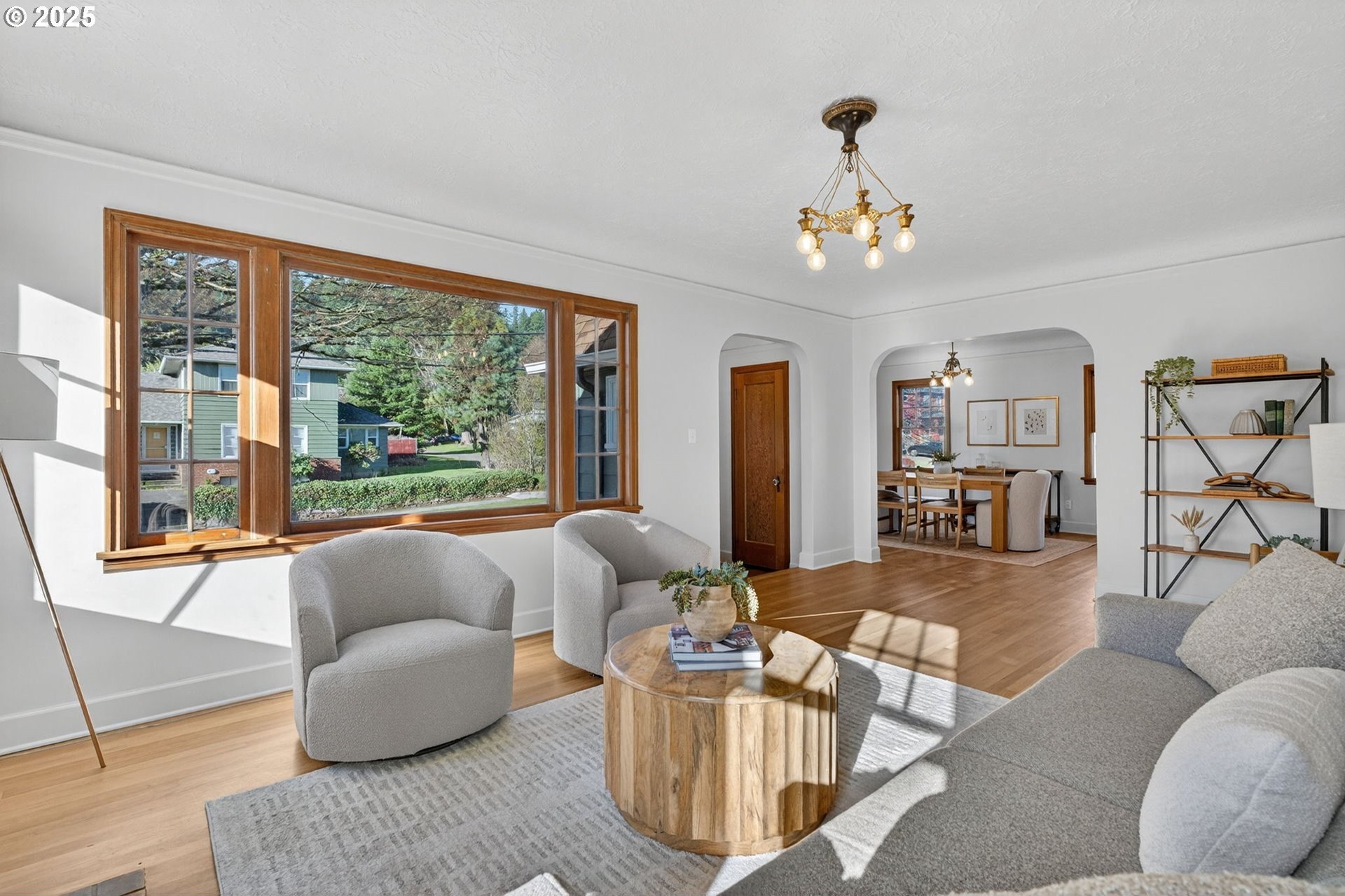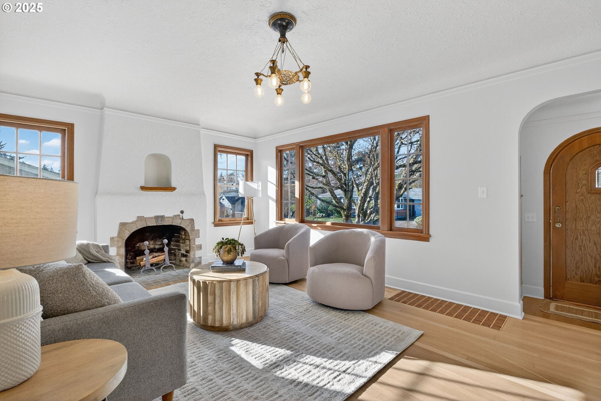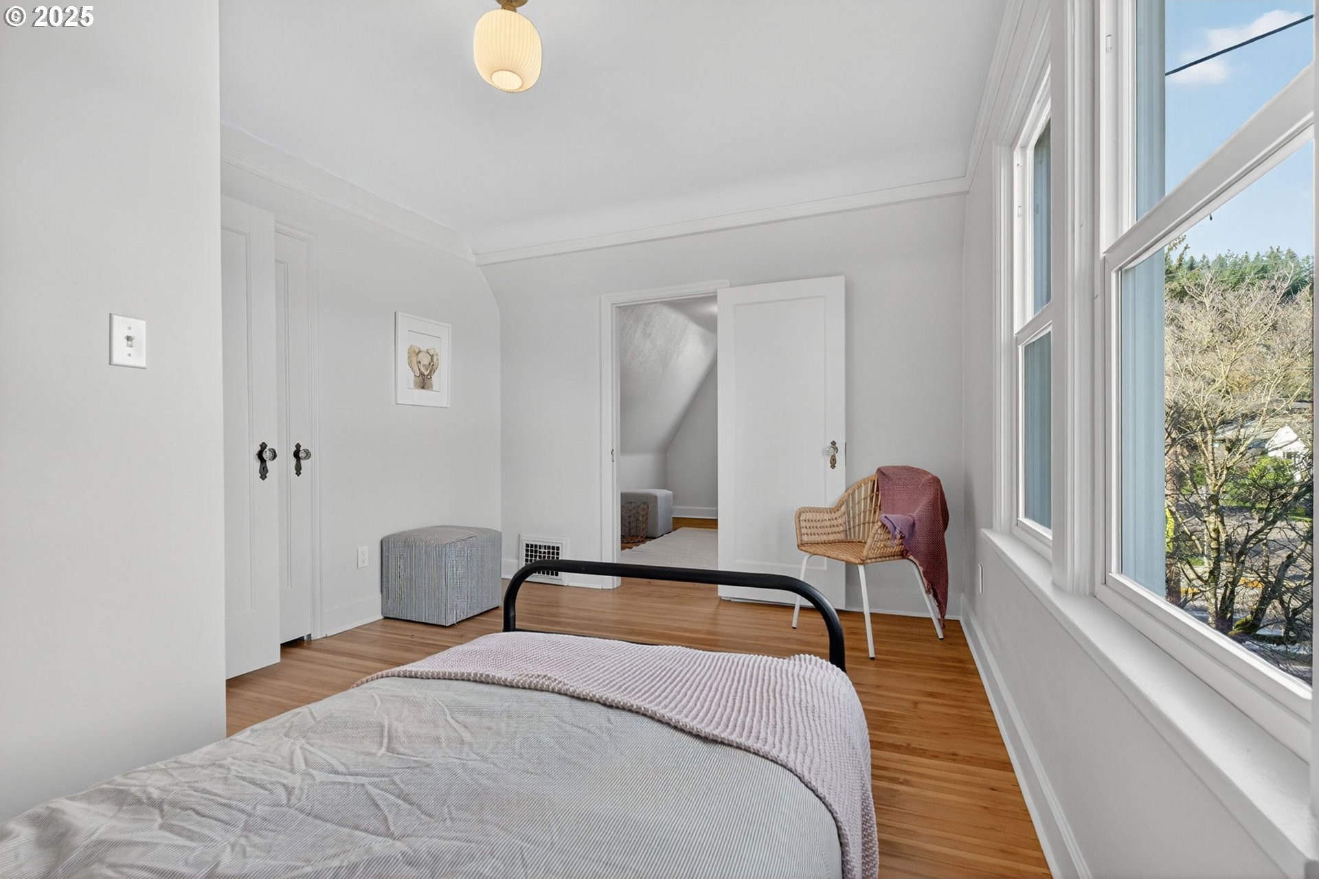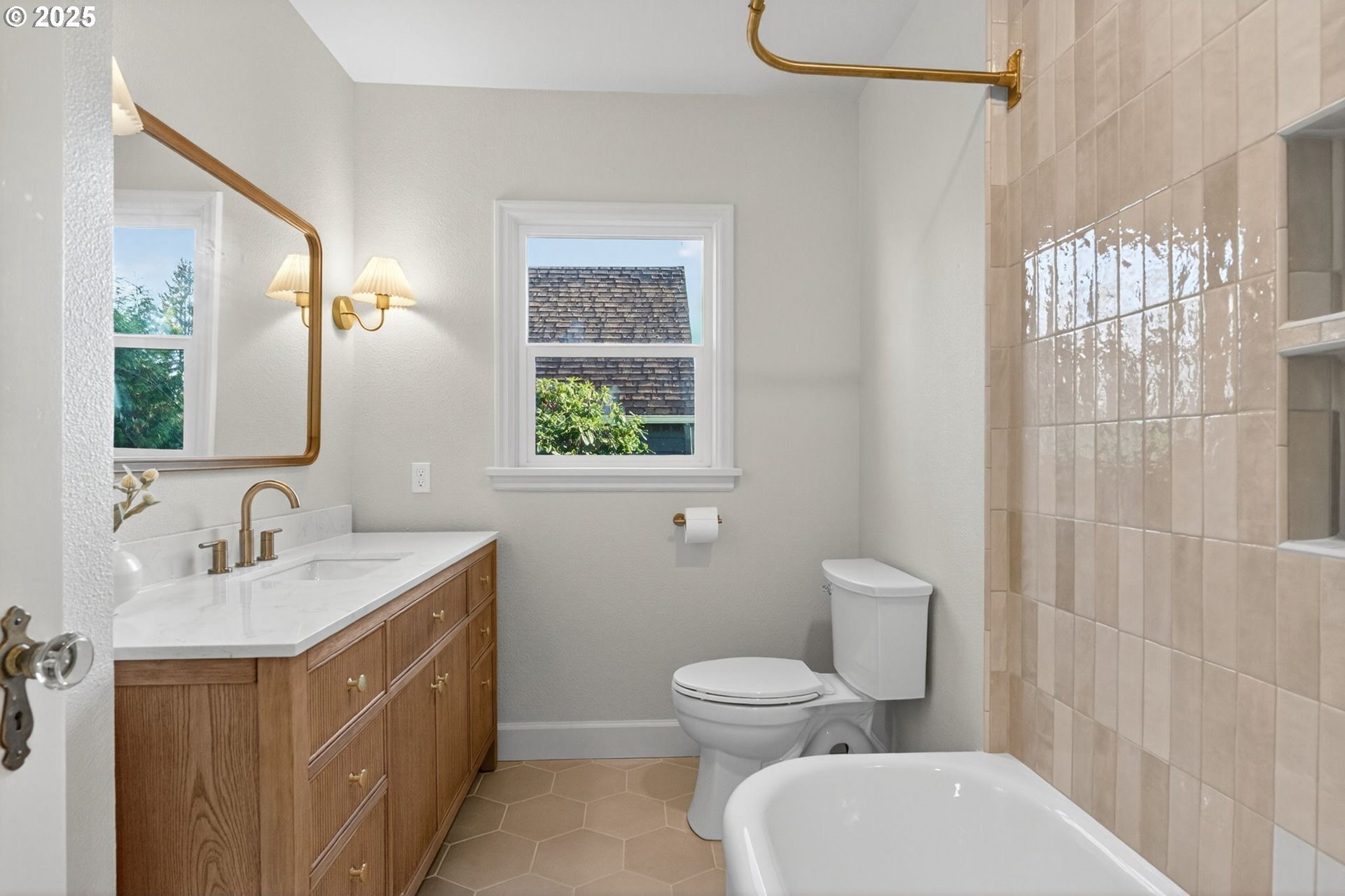 Stunningly remodeled Mt. Tabor Tudor blends modern amenities with original period details. Living room boasts a beautifully preserved fireplace, picture rail molding and wall of wooden windows that fill the space with natural light. Newly remodeled kitchen opens to expansive dining room with more period charm and peek-a-boo views of Mt. Tabor. Large kitchen with peninsula offers quartz countertops, gas stove with custom hood, Bedrosions designer tile, walk-in pantry with open shelving and an abundance of storage. Newly refinished oak and fir floors throughout with a full bedroom and bathroom on main floor. Upstairs features generously sized primary suite with large en-suite bathroom and walk-in closet. 3rd bedroom upstairs with adjoining bonus room that could be a great flex space/office. Full height unfinished basement allows for future expansion possibilities. Large corner lot with two car garage backing to highly rated Bridger Elementary. Conveniently positioned just blocks from iconic Mt. Tabor park, Montavilla shops, farmers market, cafes and restaurants. This is the one!
