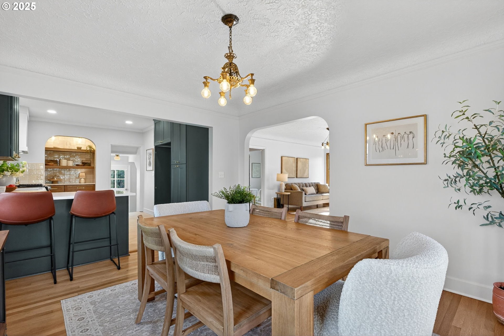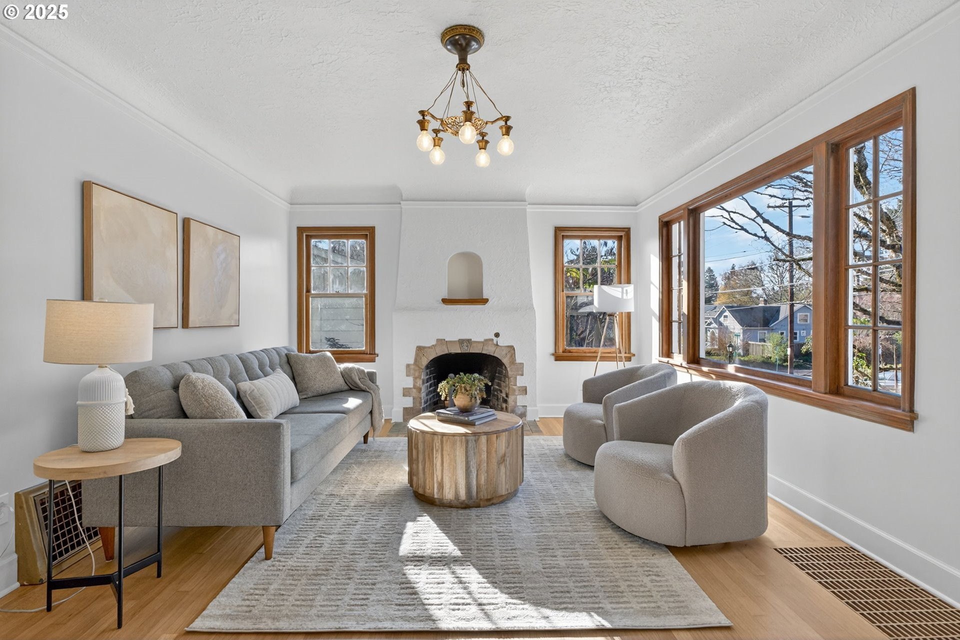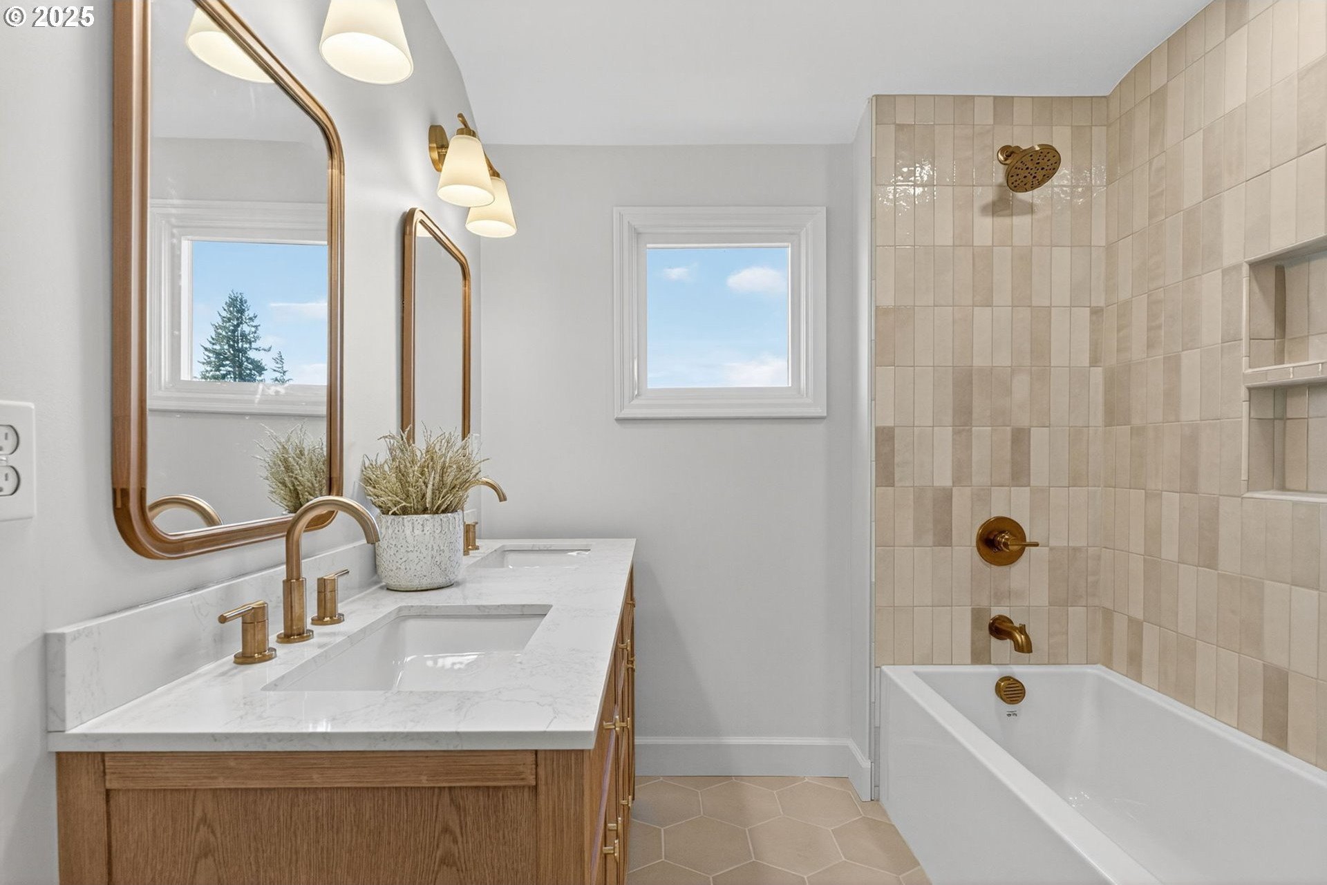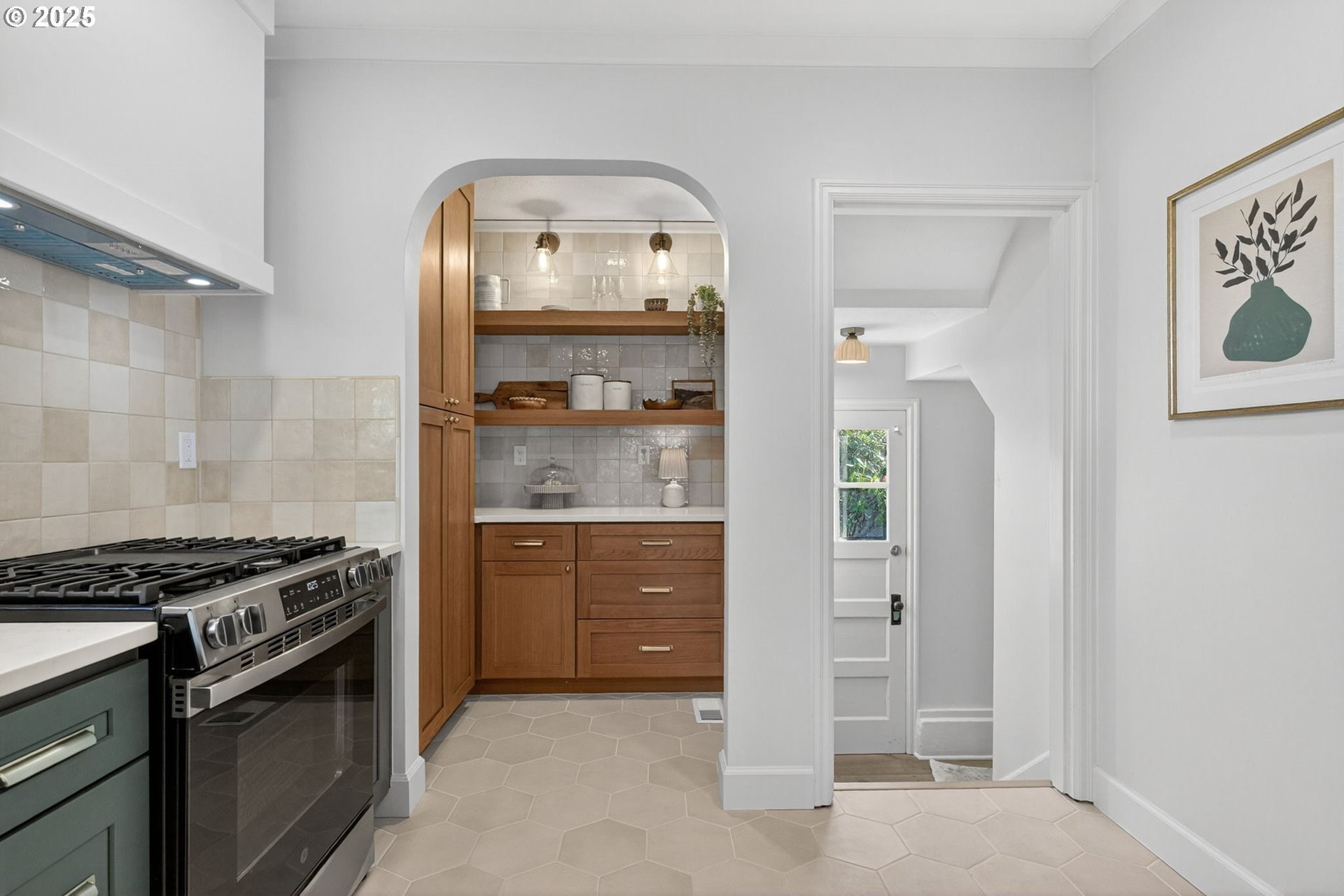 Stunningly remodeled Mt. Tabor Tudor blends modern amenities with original period details. Living room boasts a beautifully preserved fireplace, picture rail molding and wall of wooden windows that fill the space with natural light. Newly remodeled kitchen opens to expansive dining room with more period charm and peek-a-boo views of Mt. Tabor. Large kitchen with peninsula offers quartz countertops, gas stove with custom hood, Bedrosions designer tile, walk-in pantry with open shelving and an abundance of storage. Newly refinished oak and fir floors throughout with a full bedroom and bathroom on main floor. Upstairs features generously sized primary suite with large en-suite bathroom and walk-in closet. 3rd bedroom upstairs with adjoining bonus room that could be a great flex space/office. Full height unfinished basement allows for future expansion possibilities. Large corner lot with two car garage backing to highly rated Bridger Elementary. Conveniently positioned just blocks from iconic Mt. Tabor park, Montavilla shops, farmers market, cafes and restaurants. This is the one!