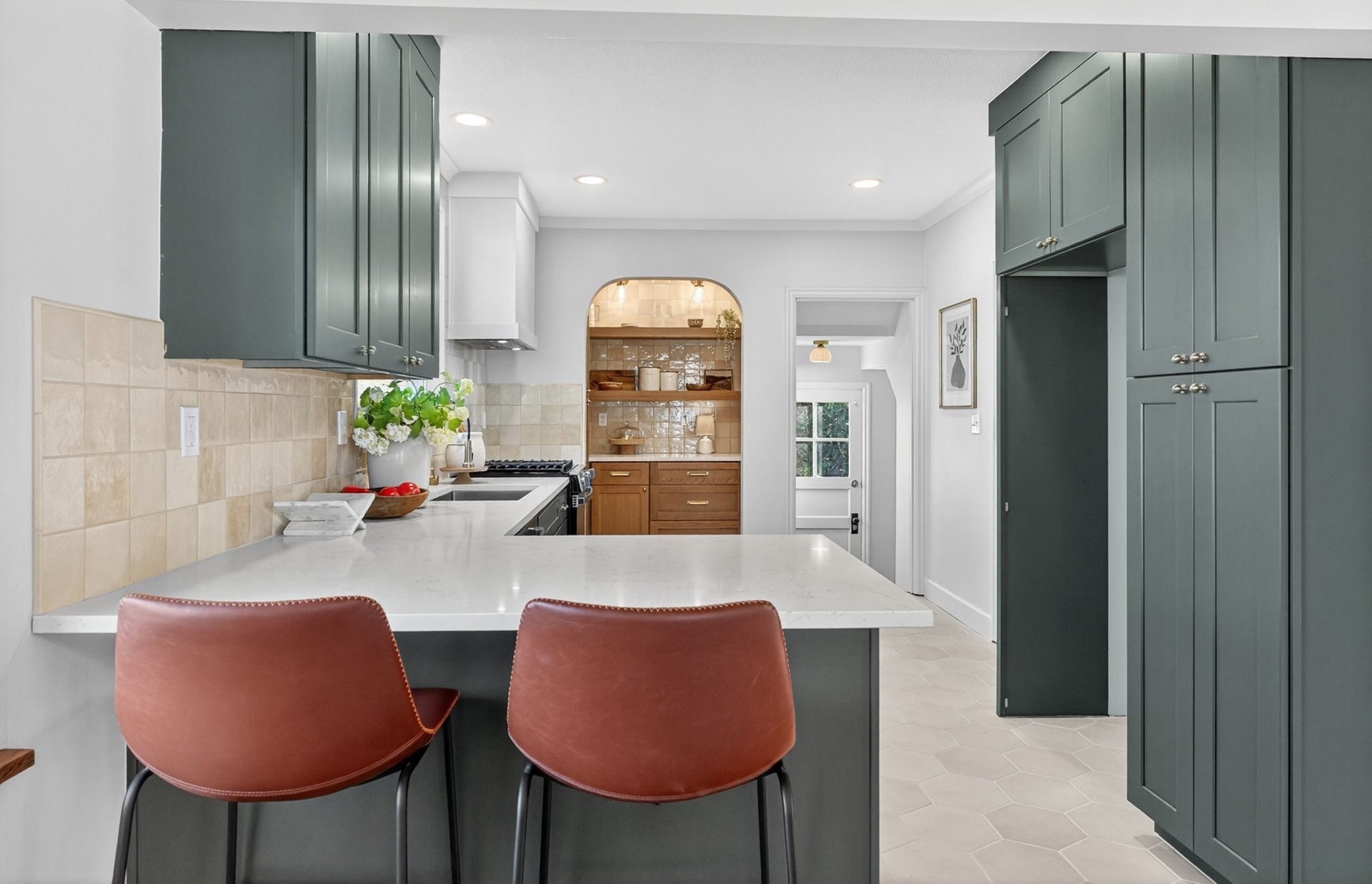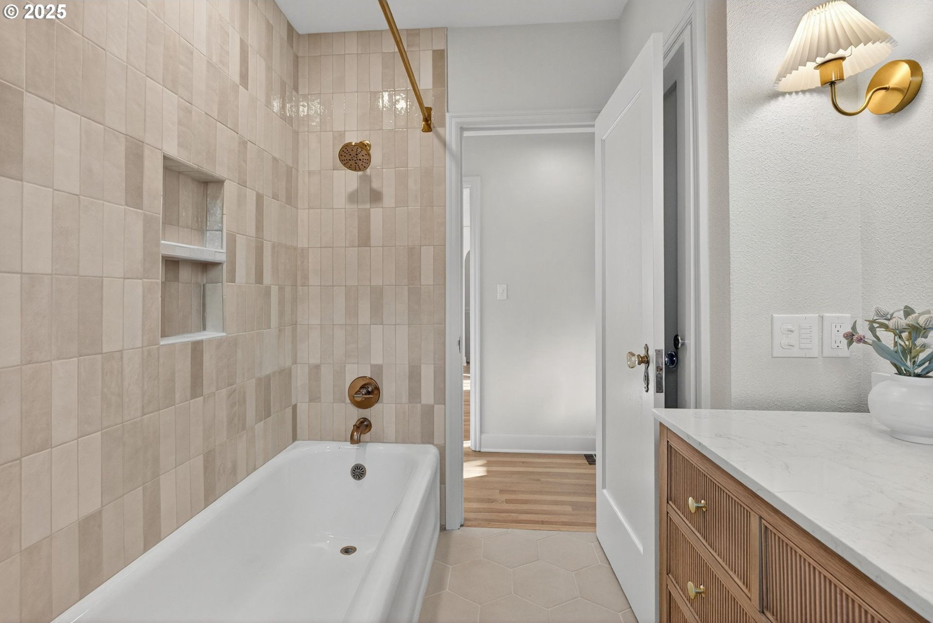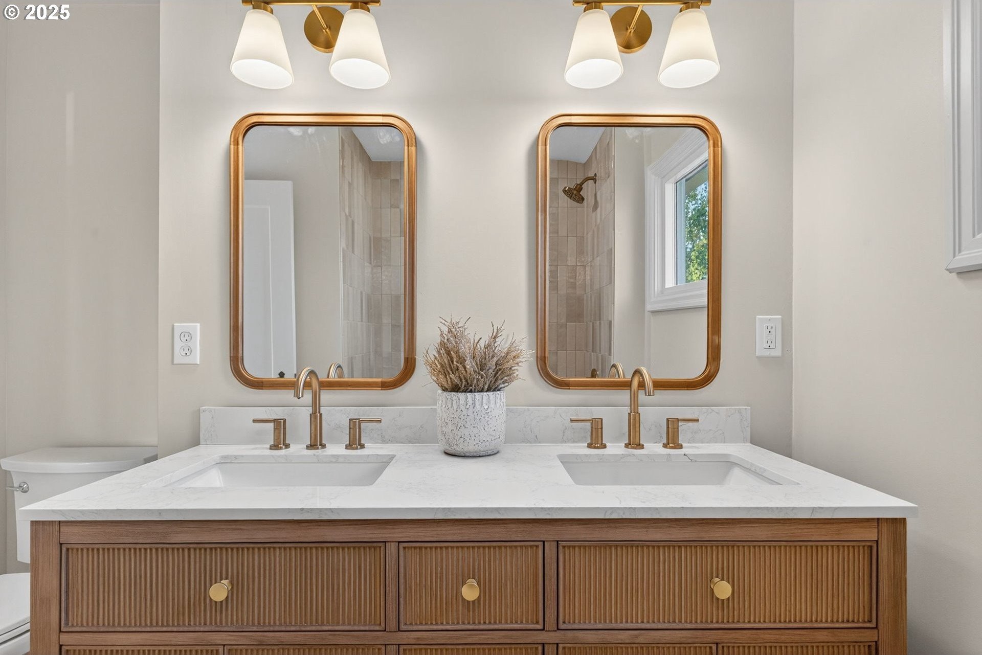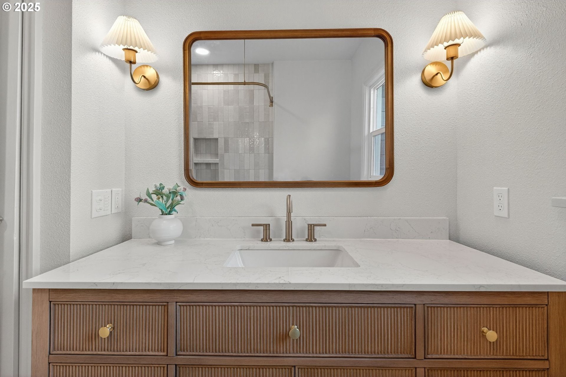 Stunningly remodeled Mt. Tabor Tudor blends modern amenities with original period details. Living room boasts a beautifully preserved fireplace, picture rail molding and wall of wooden windows that fill the space with natural light. Newly remodeled kitchen opens to expansive dining room with more period charm and peek-a-boo views of Mt. Tabor. Large kitchen with peninsula offers quartz countertops, gas stove with custom hood, Bedrosions designer tile, walk-in pantry with open shelving and an abundance of storage. Newly refinished oak and fir floors throughout with a full bedroom and bathroom on main floor. Upstairs features generously sized primary suite with large en-suite bathroom and walk-in closet. 3rd bedroom upstairs with adjoining bonus room that could be a great flex space/office. Full height unfinished basement allows for future expansion possibilities. Large corner lot with two car garage backing to highly rated Bridger Elementary. Conveniently positioned just blocks from iconic Mt. Tabor park, Montavilla shops, farmers market, cafes and restaurants. This is the one!