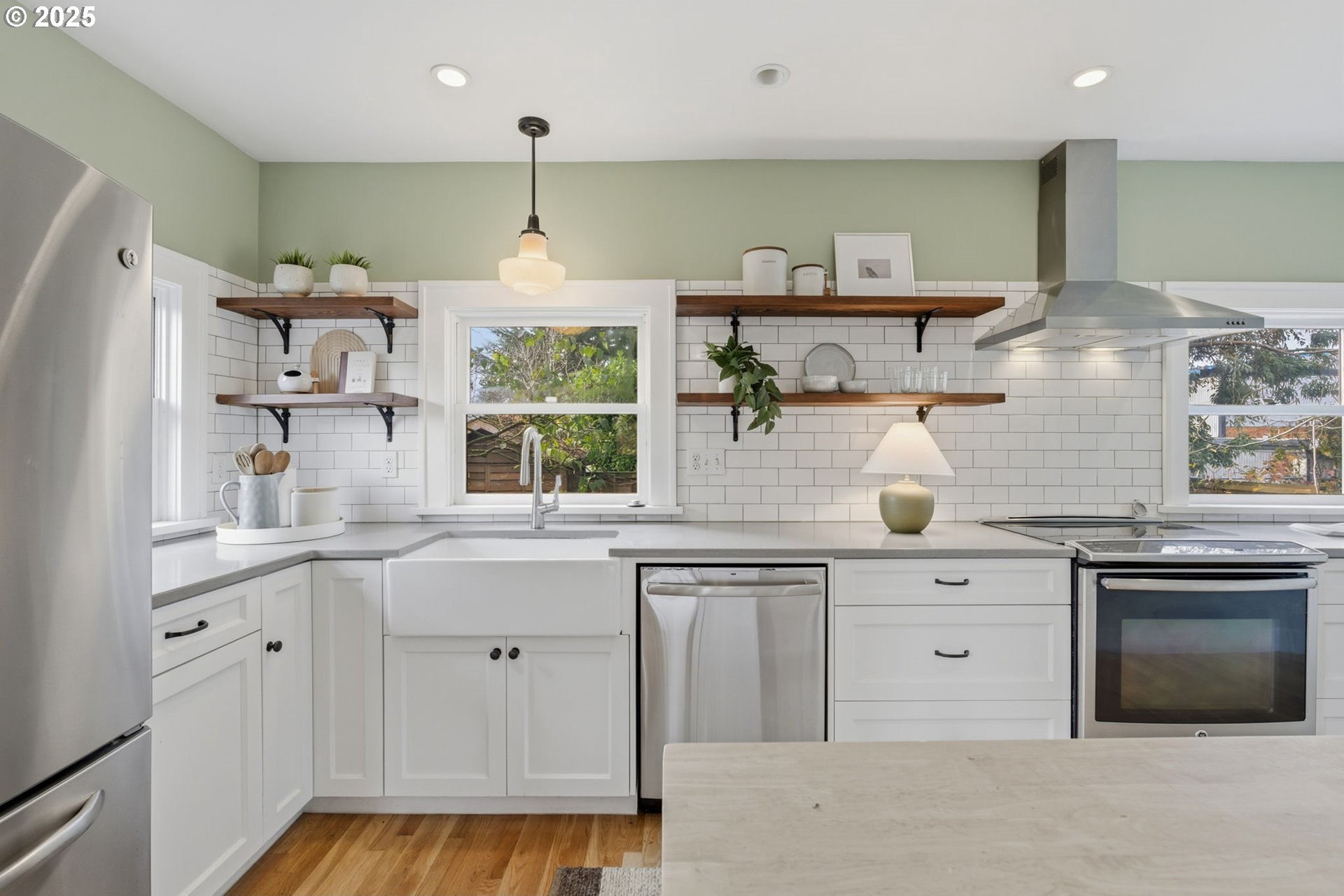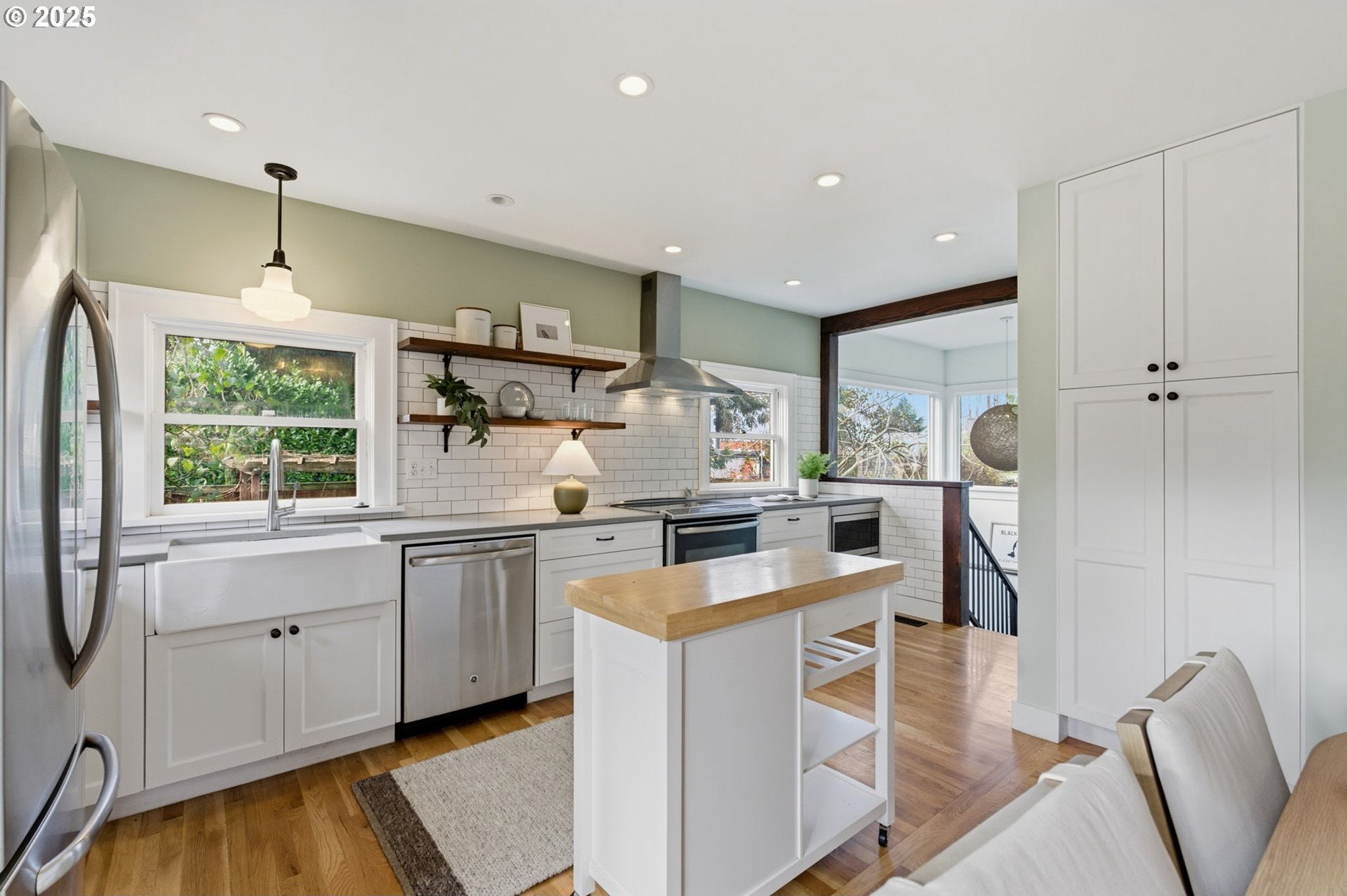 This adorable Alberta Arts bungalow puts you steps from the neighborhood’s best restaurants, shops, and cafés—including favorites like Proud Mary, Salt & Straw, Petite Provence, and the many boutiques along NE Alberta. The versatile two-level layout is ideal for house-sharing or anyone needing separate spaces, with a bedroom and bathroom on each floor. Large updated kitchen opens to dining room and living room with stylish built-in features. Bonus spaces include a charming main-floor nook—perfect for an office or reading spot—and a terrific family room on the finished lower level. Period details like built-ins and hardwood floors add timeless character. Zoned R2.5, this corner-lot property offers excellent potential for future growth and/or development. Outside, enjoy a private backyard that’s the perfect place to play, create, entertain, or relax.