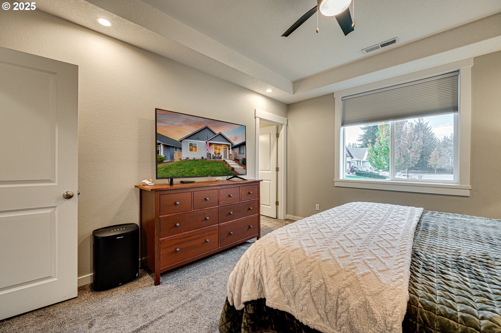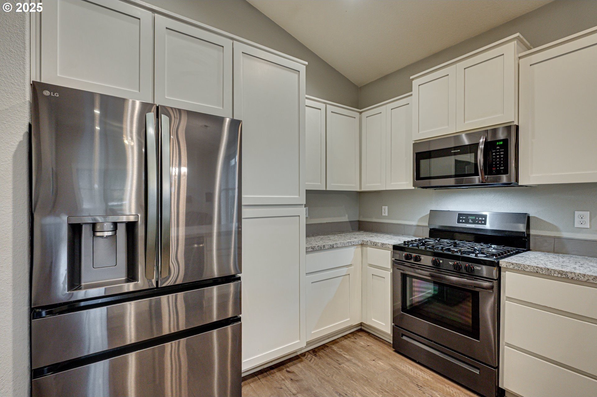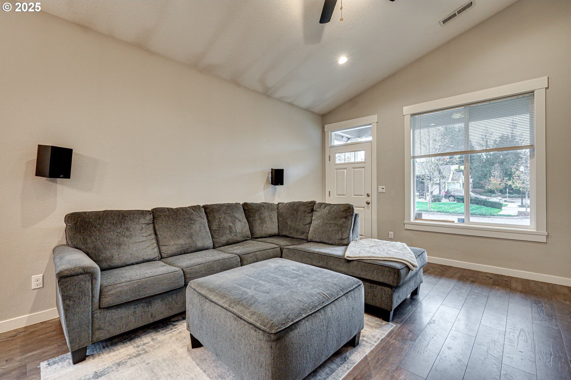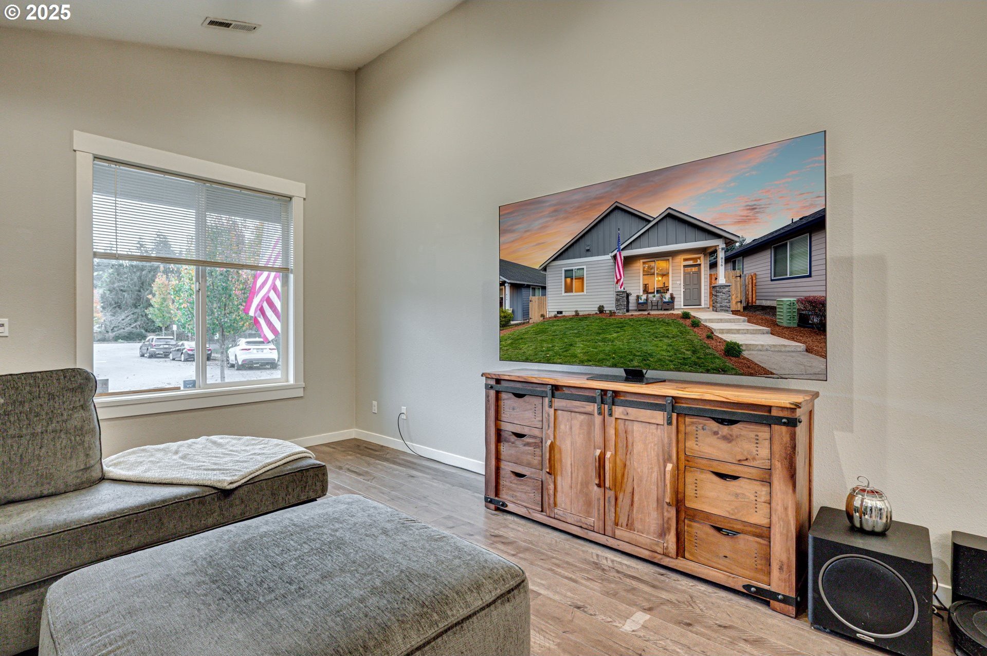 Built in 2019, this 3-bedroom, 2-bath home is well-designed with a vaulted, open great-room layout. The kitchen includes a gas range, stainless-steel appliances, and generous counter and cupboard space. LVP flooring extends through the main living areas, with carpet in the bedrooms for added comfort. A covered back patio and fenced yard with gated alley access offer practical outdoor use. Permanent, programmable roofline lighting sets the perfect atmosphere for holidays and celebrations year-round. Located on a low-maintenance lot in a quiet cul-de-sac just moments from town, within walking distance to downtown shops and restaurants. This home is a solid fit for a first-time buyer or anyone looking to downsize while keeping everyday convenience.