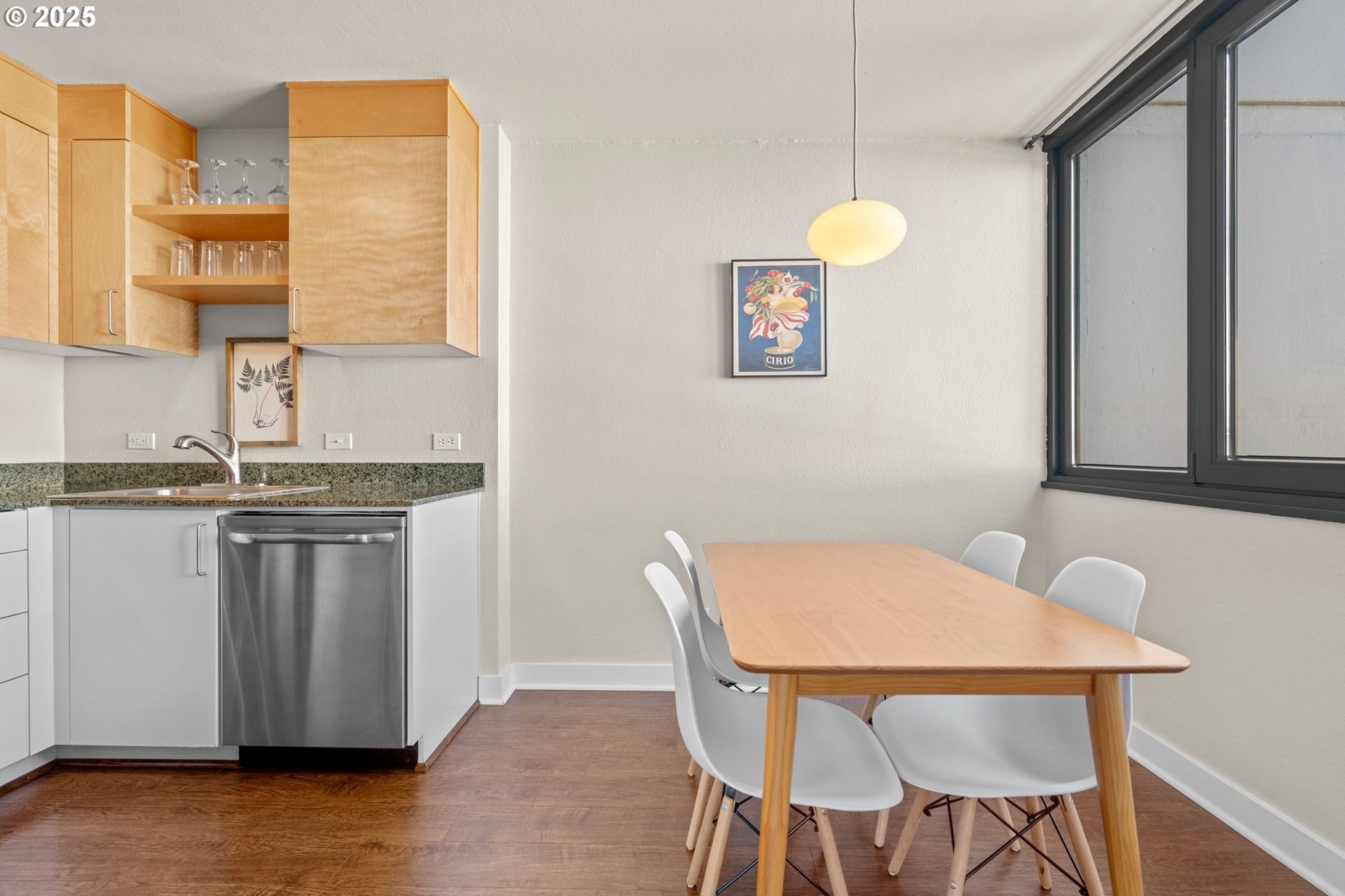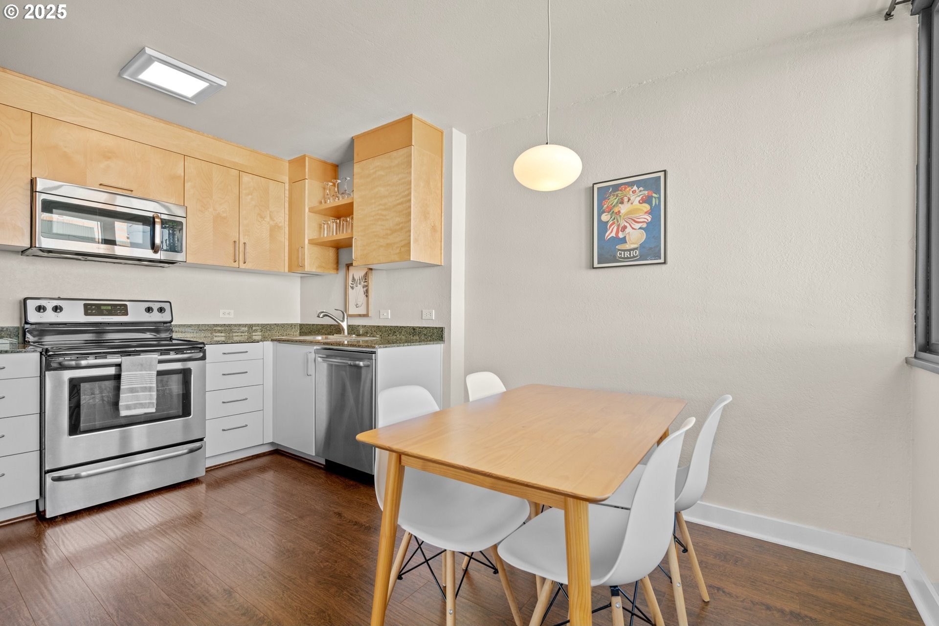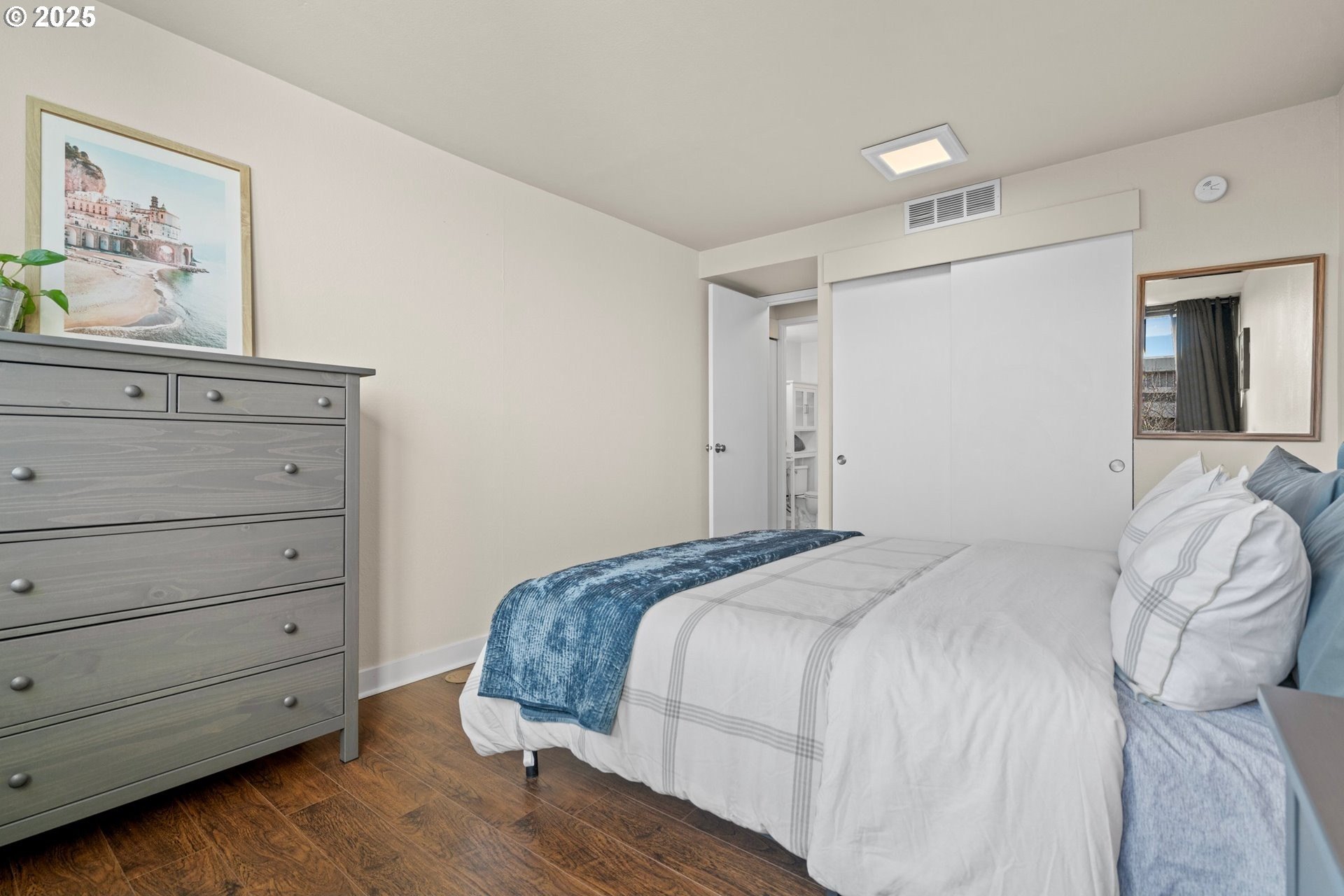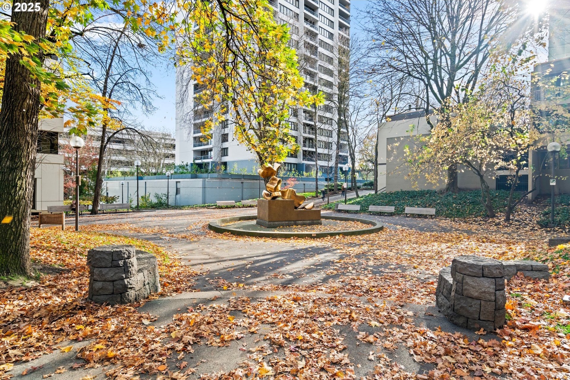 Light and bright one bedroom corner unit with a view! Welcome to downtown Portland's beautiful Harrison East Building. Steeped in Mid-Century architecture this building offers affordable living in a quiet corner of SW Portland. It's move-in ready with all furniture included. The "F" units are a popular layout with more than 700 square set on the corner of the building. Living is comfortable with a large living space that flows outside to the deck. Looking North East you will take in territorial views including the Willamette river and bridges. This unit comes with a storage locker and large deeded parking space. The Harrison building complex boasts free shared laundry, fast wifi internet, a shared sauna and pool! Enjoy downtown living at its best. Walk to local parks, restaurants, cafes, the river, shopping, and local entertainment. Your commute will be a breeze with the street car just outside your door!
