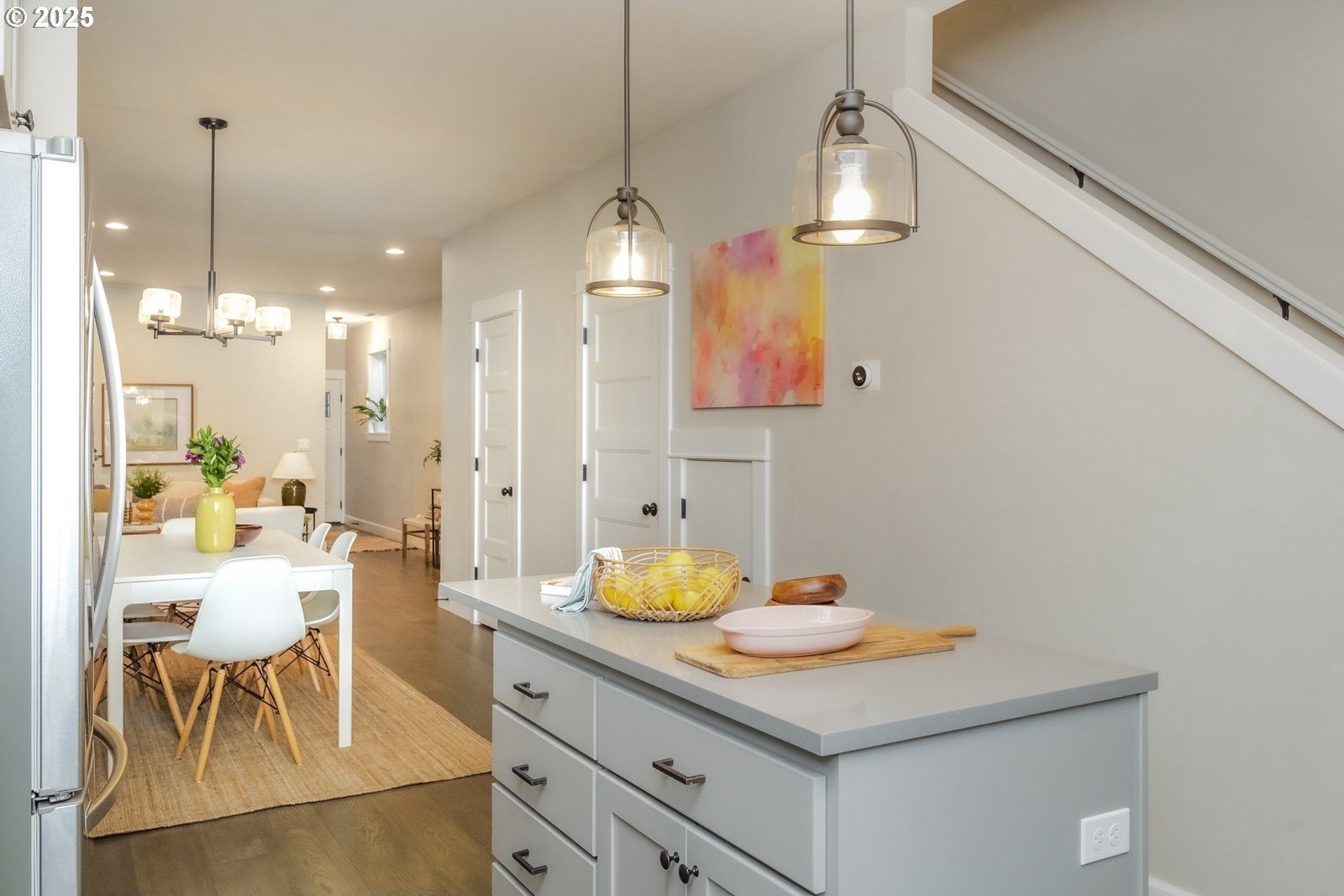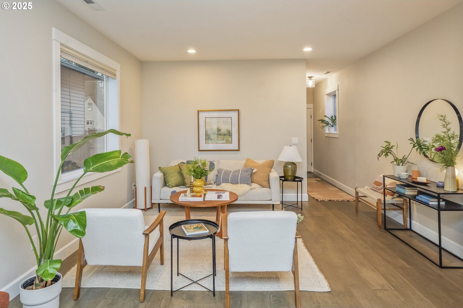 Light, Bright, and Practically Parkside in St. Johns! This contemporary 3-bedroom, 2.5-bath home sits less than 200 feet from iconic Pier Park, giving you instant access to towering evergreens, disc golf, trails, and room to play. Inside, you’ll find a thoughtfully designed, efficient floor plan that makes everyday living comfy and easy. The open-concept main level offers a lovely living room, a dining space perfect for delicious gatherings, and a modern kitchen with plenty of storage. A convenient half bath completes the main floor. Upstairs, you will find three ample bedrooms. The primary suite features its own bathroom and generous closet space, while the additional bedrooms and full bath create flexible options for guests, work-from-home setups, or hobbies. This home is also equipped with owned solar panels, helping reduce utility costs and environmental impact. Located in beloved St. Johns, you’re close to local shops, cafés, seasonal events, making this an exceptionally fun and opportune place to put down roots. If you’re looking for a home that combines a great location, high efficiency, and ease of living—look no further. It’s not just a great place to live—it’s a smart buy in one of Portland’s most character-rich neighborhoods! [Home Energy Score = 10. HES Report at https://rpt.greenbuildingregistry.com/hes/OR10203442]