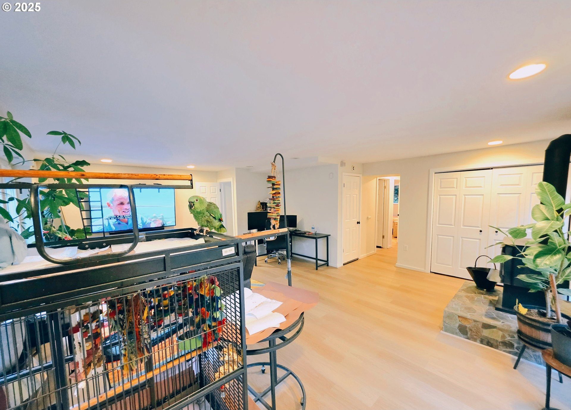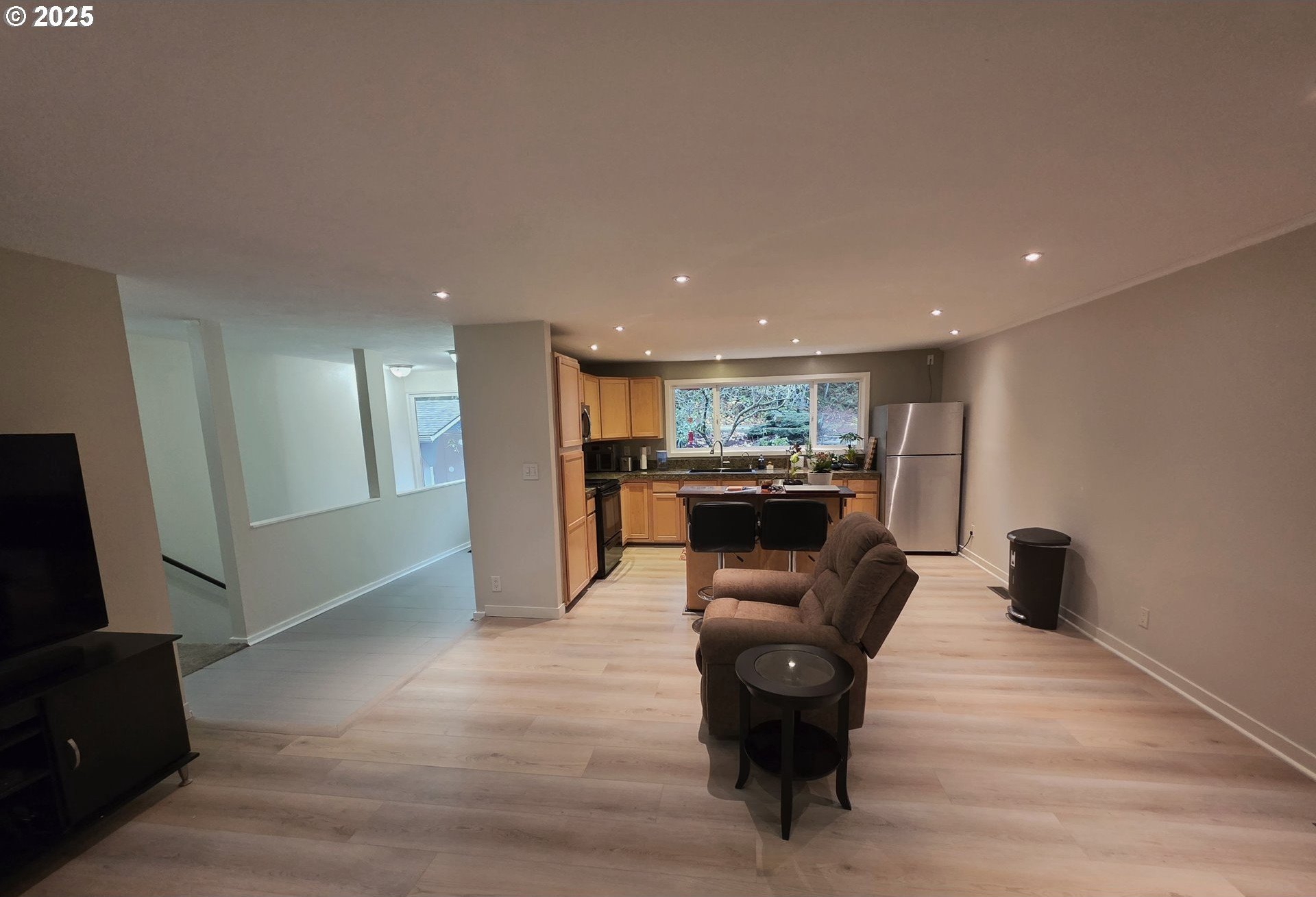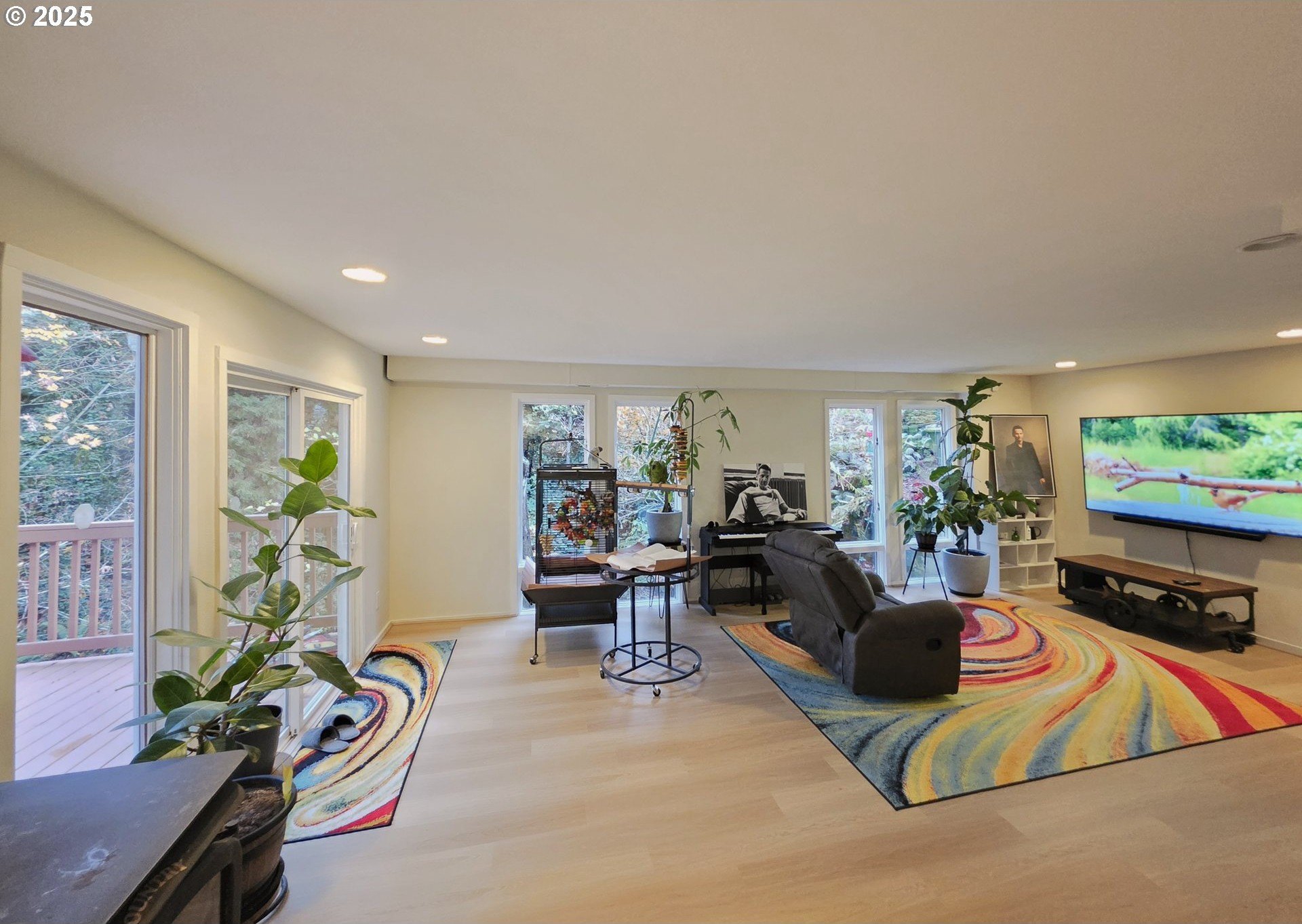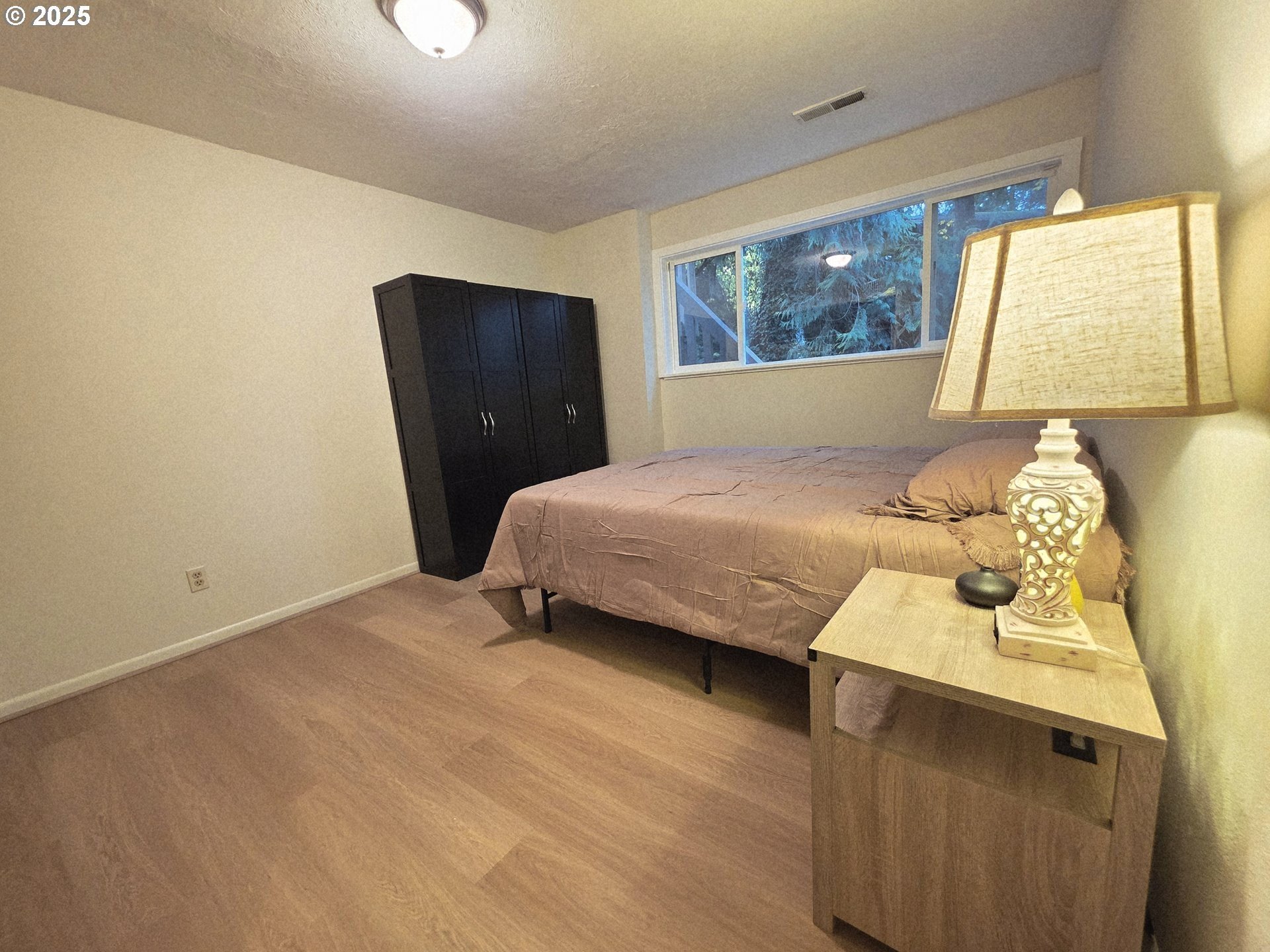 Nestled in a forested setting, this house on Henderson Drive is a sanctuary where architecture and nature exist in poetic harmony. Its design philosophy emphasizes complementing the scenery rather than competing with it, creating a serene, isolated retreat from the modern world. You will feel like you are in a forest, but this house is a couple of minutes from major grocery stores, public transit, and restaurants. The house is a three-story structure, and its lines mirror the forest floor. Large picture windows blur the lines between indoor and outdoor living and welcome views of dense, lush tree canopy. Deep overhangs provide shade and a protected area to enjoy the outdoors in any weather. The atmosphere is one of profound tranquility. The air is often misty in the early mornings, carrying the rich, earthy smell of damp soil and cedar. The dominant sound is the constant, gentle symphony of the natural world: birdsong and the rustle of leaves in the breeze. The property is a haven for wildlife, with deer occasionally grazing at the forested backyard, while songbirds sign on branches. The landscape shifts dramatically with the seasons. In autumn, the surrounding trees explode in a riot of red, yellow, and orange, a dazzling display viewed from the comfort of the living room. In winter, the house becomes a cozy haven, a warm, bright beacon against a backdrop of white snow. Though this house is in a forested setting, the interior offers modern-day amenities: LVC flooring, SPC flooring, stainless steel appliances, washer/dryer, dishwasher, forced air, etc. Imagine yourself baking an apple pie while enjoying hummingbirds that are visiting your feeder from your kitchen's picture window. Imagine yourself relaxing on the deck and no one in sight but trees, birds, rabbits, and deer. Imagine yourself enjoying a movie while occasionally looking outside through your large picture windows. Imagine and live in this peaceful sanctuary. [Home Energy Score = 5. HES Report at https://rpt.greenbuildingregistry.com/hes/OR10235078]