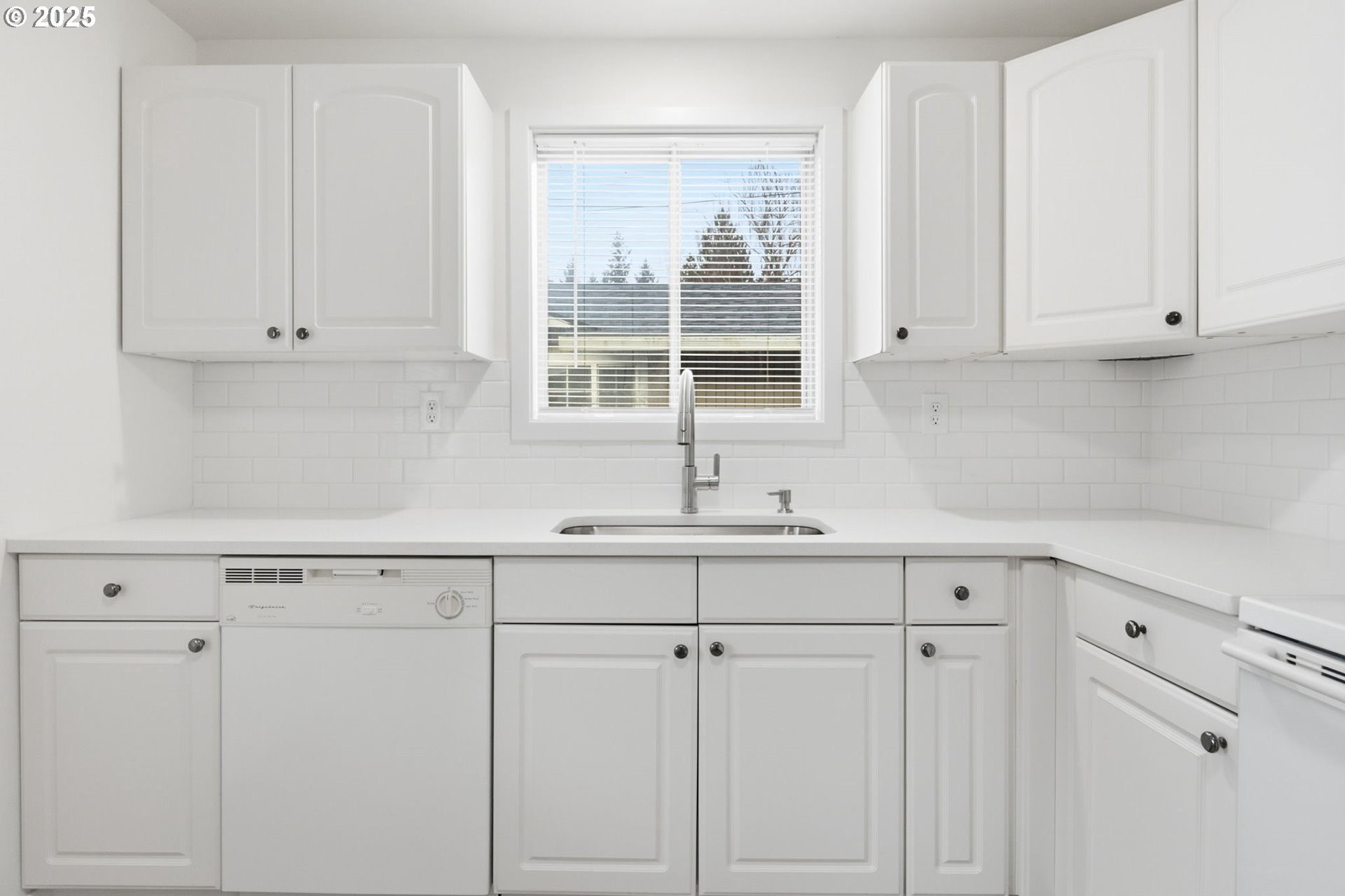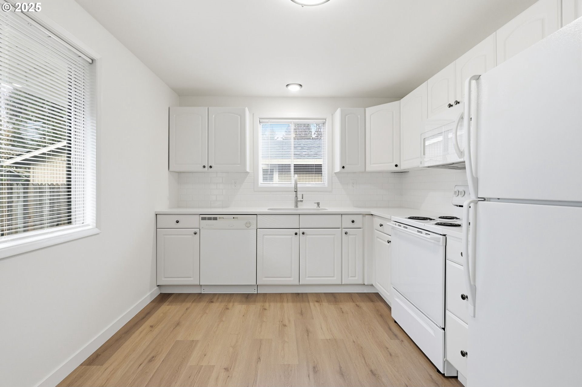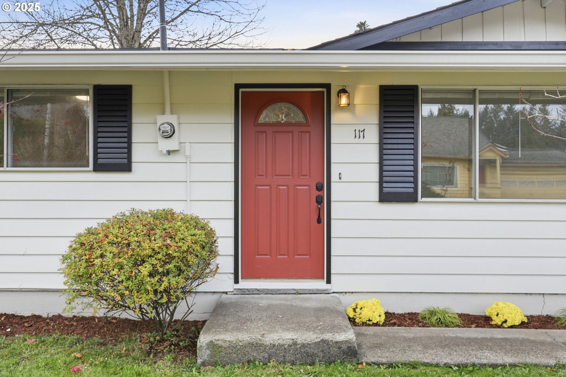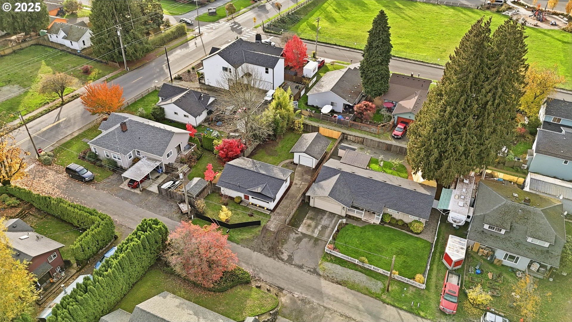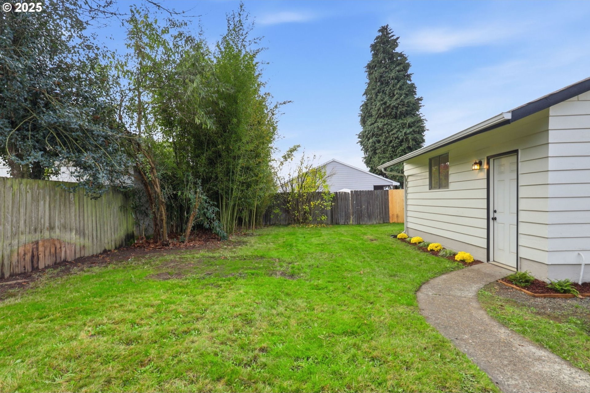 This single-level home welcomes you with durable vinyl plank flooring throughout, a bright white kitchen featuring sleek quartz countertops, deep stainless steel sink, nice subway tile backsplash, and full appliance package including refrigerator, range, and dishwasher. The sparkling bathroom shines with crisp subway tile and modern fixtures. Convenient in-unit laundry includes washer/dryer. A detached 1-car garage offers a finished bonus space in the rear perfect for a workshop, studio, or home gym. The sizeable yard is level and lush, with mature landscaping and plenty of room for gardening or play. Newer roof and fresh paint inside and out ensure low-maintenance living. Ample driveway parking for multiple vehicles. Ideally located just steps from vibrant downtown Ridgefield shops, cafes, parks, and top-rated schools. This move-in-ready gem blends classic charm with modern update. Your perfect Ridgefield retreat awaits!