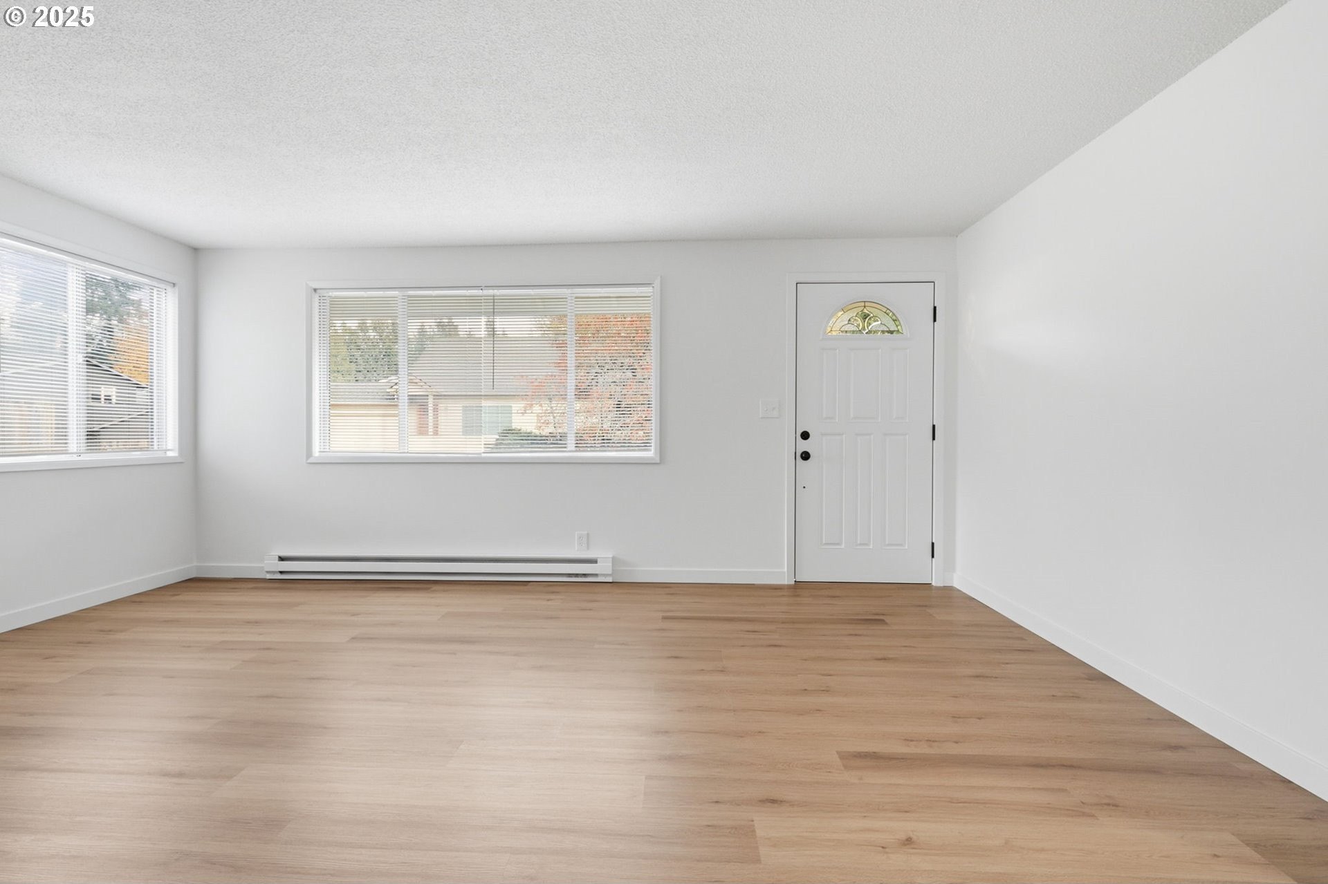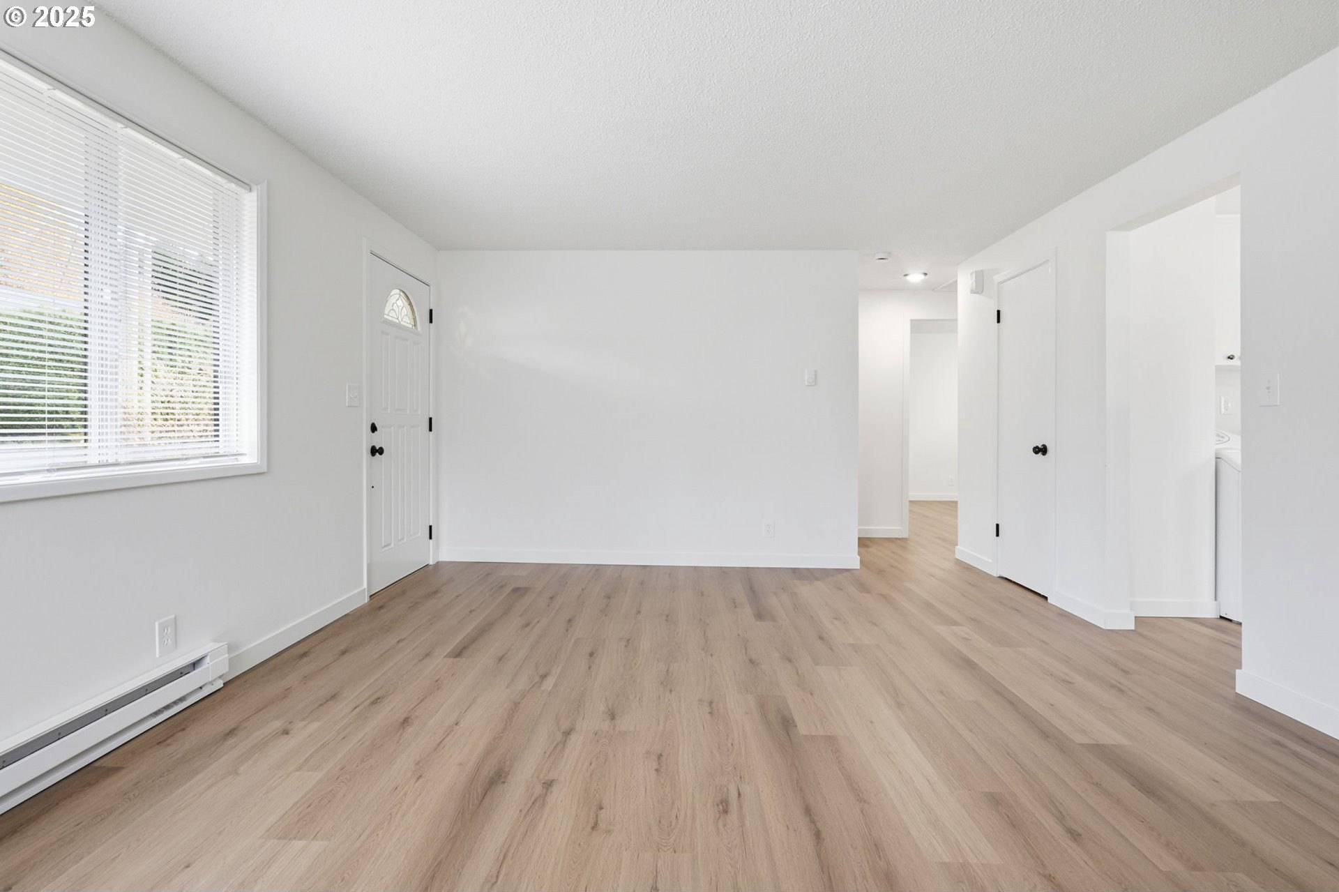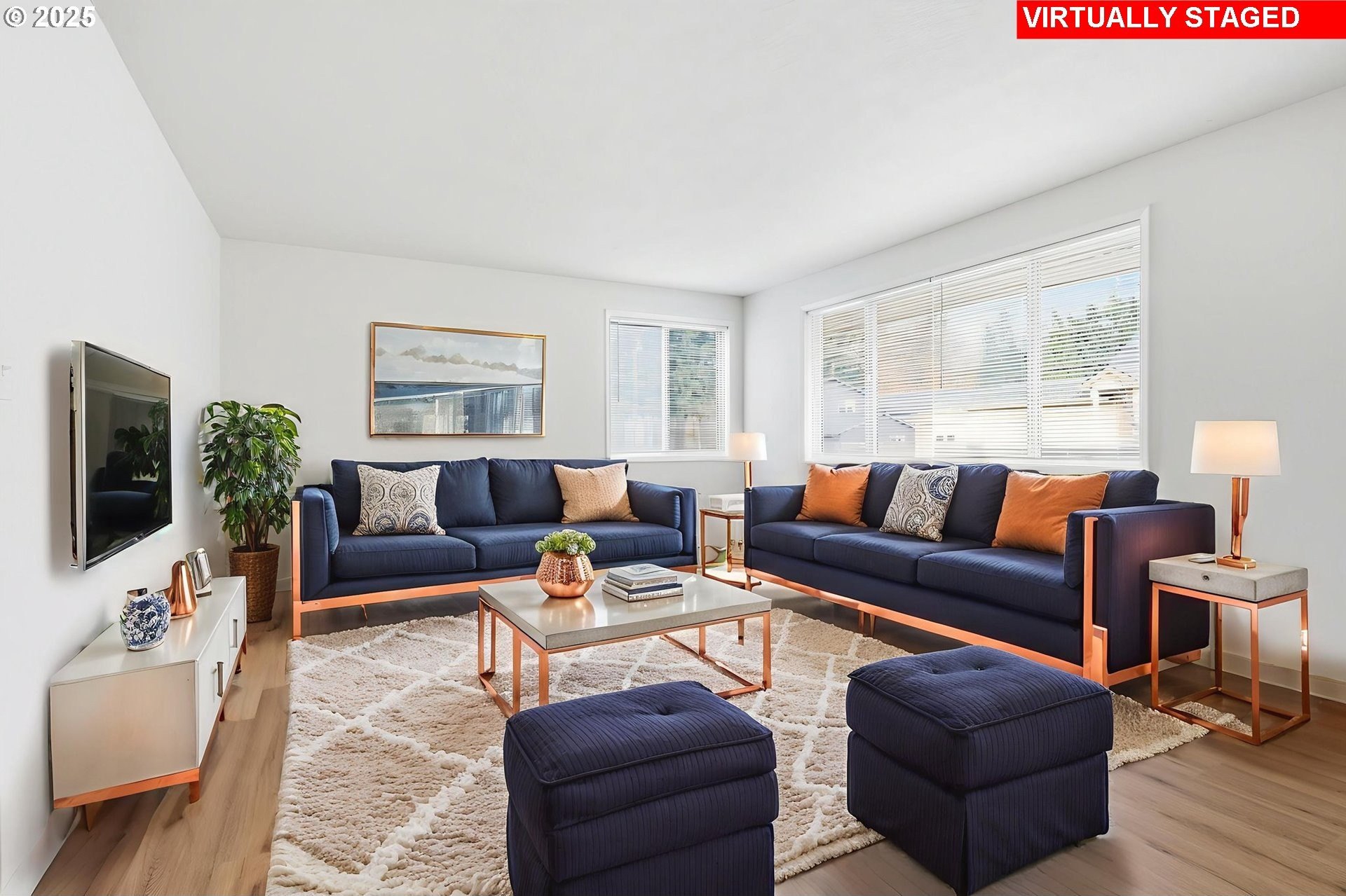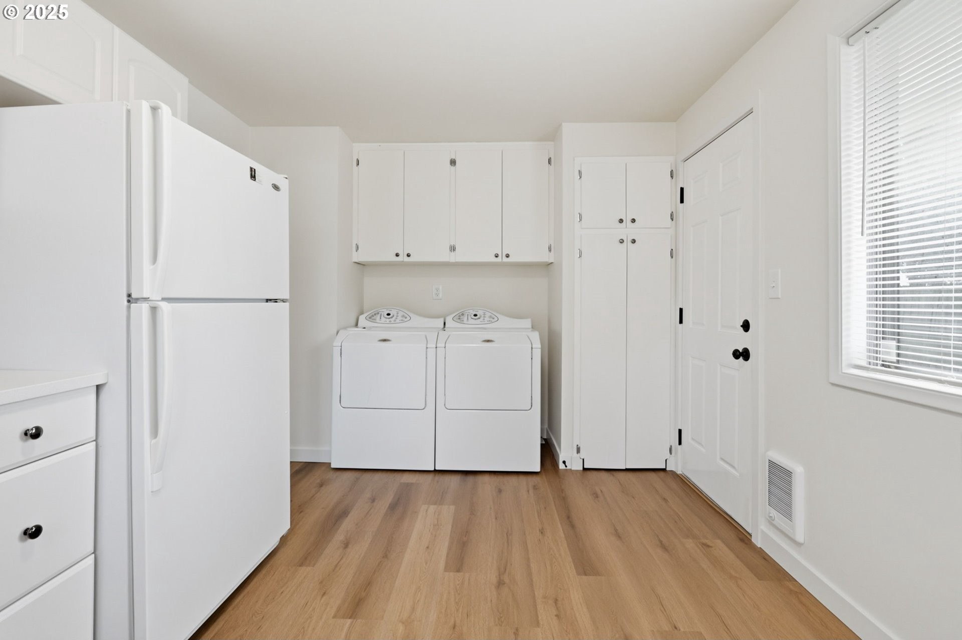 This single-level home welcomes you with durable vinyl plank flooring throughout, a bright white kitchen featuring sleek quartz countertops, deep stainless steel sink, nice subway tile backsplash, and full appliance package including refrigerator, range, and dishwasher. The sparkling bathroom shines with crisp subway tile and modern fixtures. Convenient in-unit laundry includes washer/dryer. A detached 1-car garage offers a finished bonus space in the rear perfect for a workshop, studio, or home gym. The sizeable yard is level and lush, with mature landscaping and plenty of room for gardening or play. Newer roof and fresh paint inside and out ensure low-maintenance living. Ample driveway parking for multiple vehicles. Ideally located just steps from vibrant downtown Ridgefield shops, cafes, parks, and top-rated schools. This move-in-ready gem blends classic charm with modern update. Your perfect Ridgefield retreat awaits!