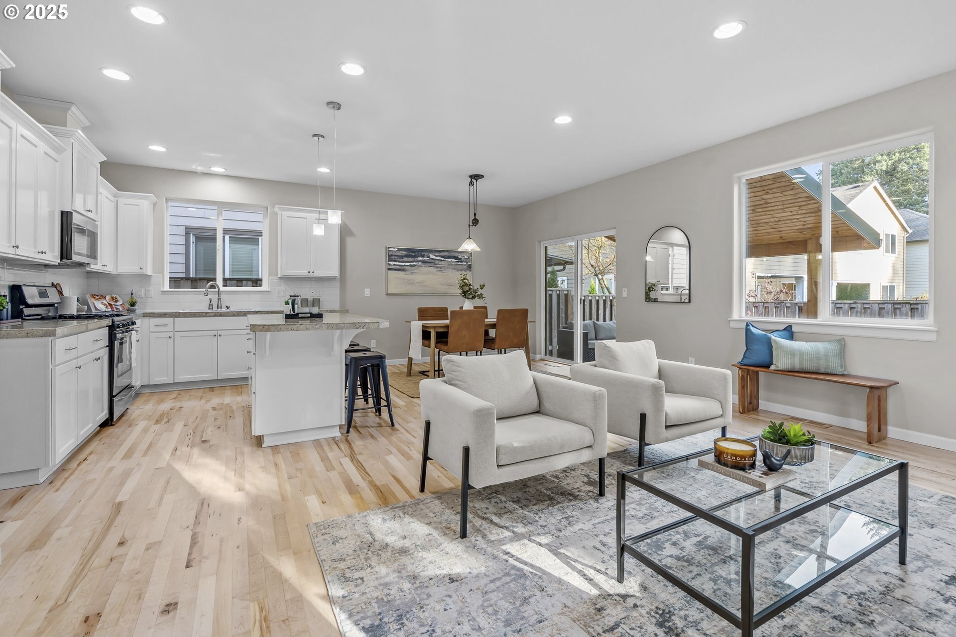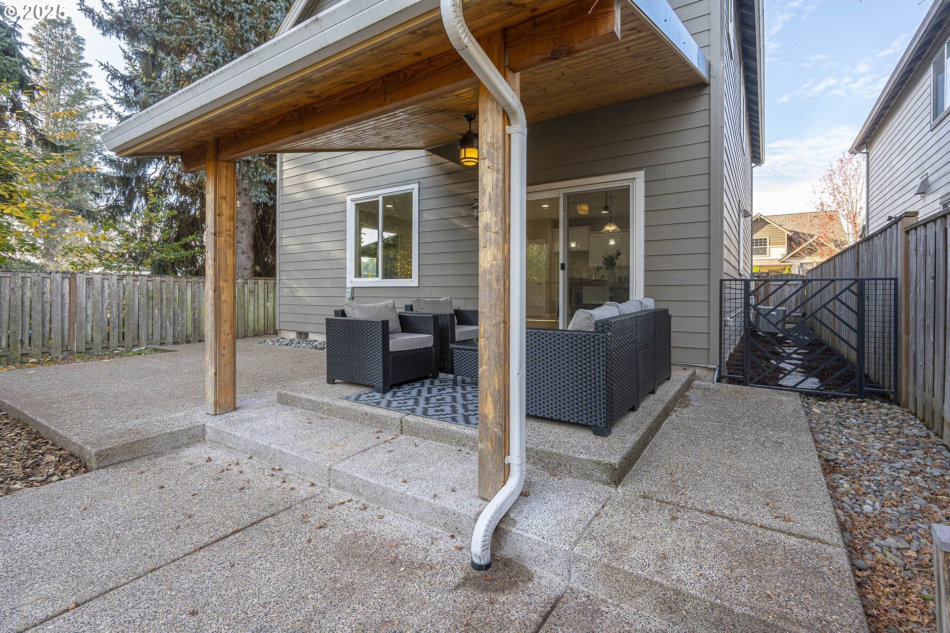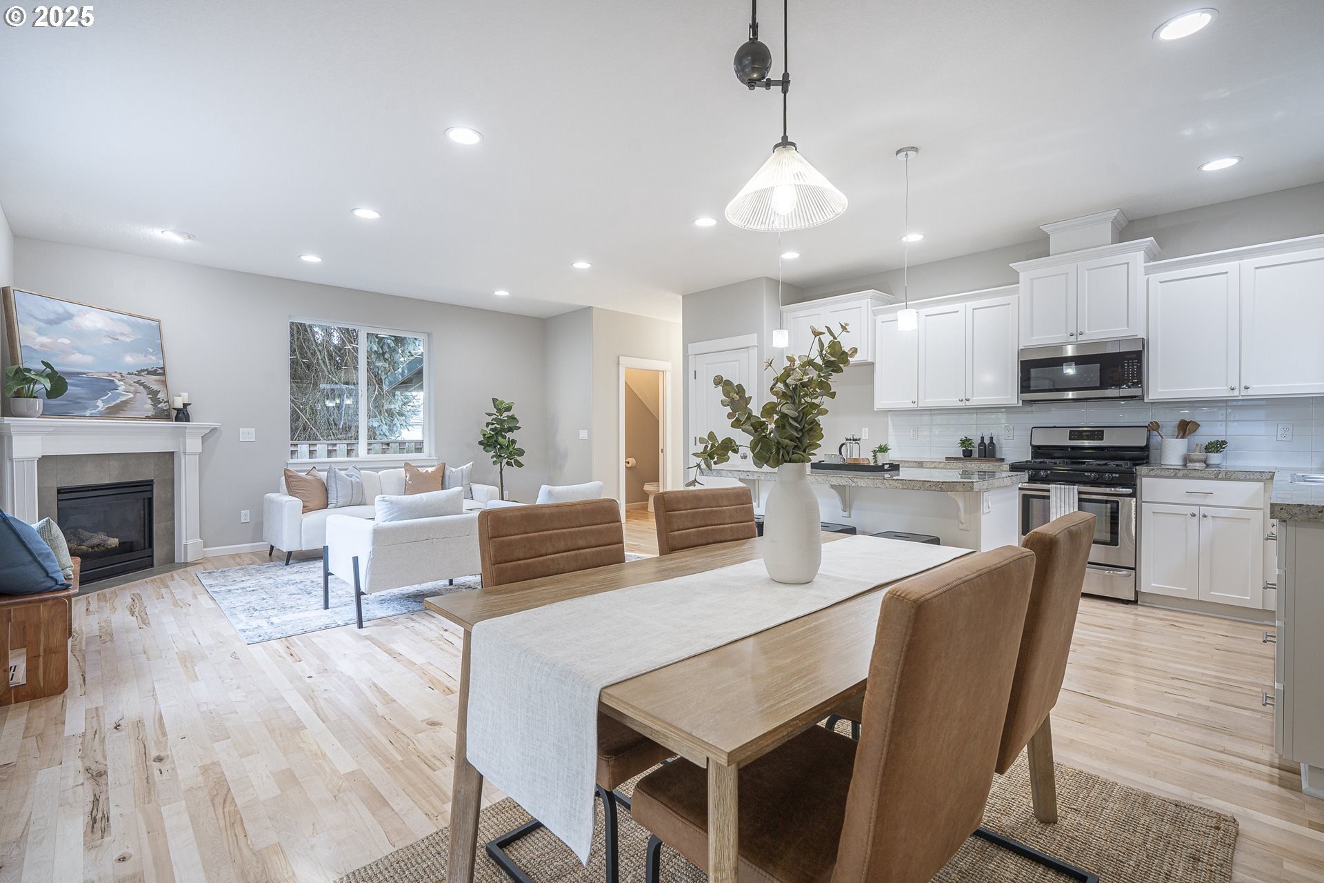 Welcome to this stunning home in the heart of Orenco! Freshly painted interior with brand-new carpet and refinished maple flooring, offers a warm and inviting feel throughout. The great room features a cozy gas fireplace and opens to a well-appointed kitchen with updated stainless steel appliances, granite tile countertops, pantry, and an island with an eat bar. The dining area connects seamlessly to a beautiful covered patio—perfect for entertaining. A guest bath completes the main floor.Upstairs, the vaulted primary suite includes a walk-in closet and en-suite bath with a double vanity. Two additional bedrooms, one of which is spacious and vaulted, share a full bath. The laundry room completes the upper floor.An attached outdoor shed provides extra storage along with the fully fenced yard. All this is located just blocks from Orenco Station’s restaurants, shopping, MAX light rail, Intel, parks, and more!Open House: Saturday & Sunday, Nov. 22 & 23, 12–3pm (if still available). [Home Energy Score = 5. HES Report at https://rpt.greenbuildingregistry.com/hes/OR10242788]