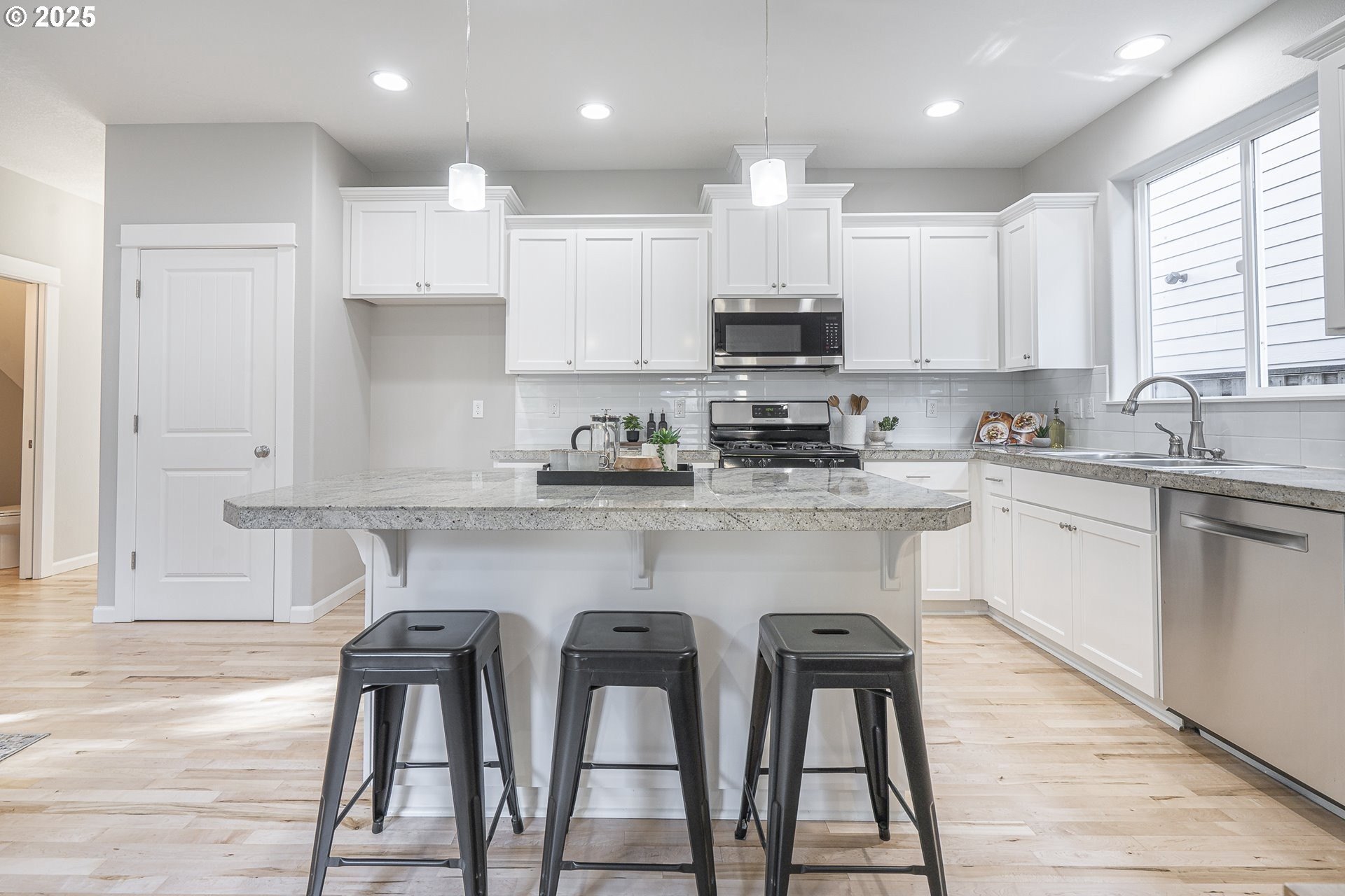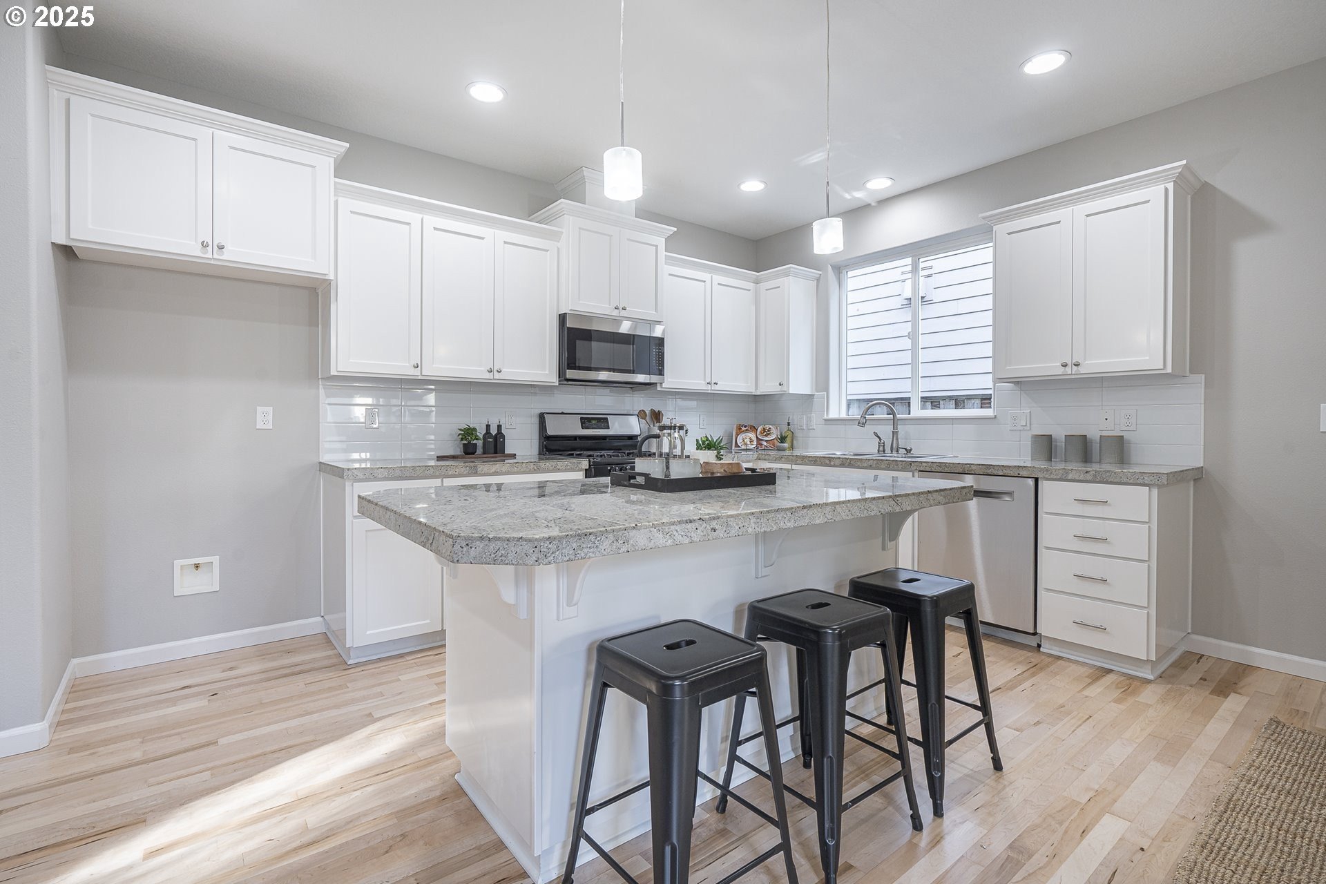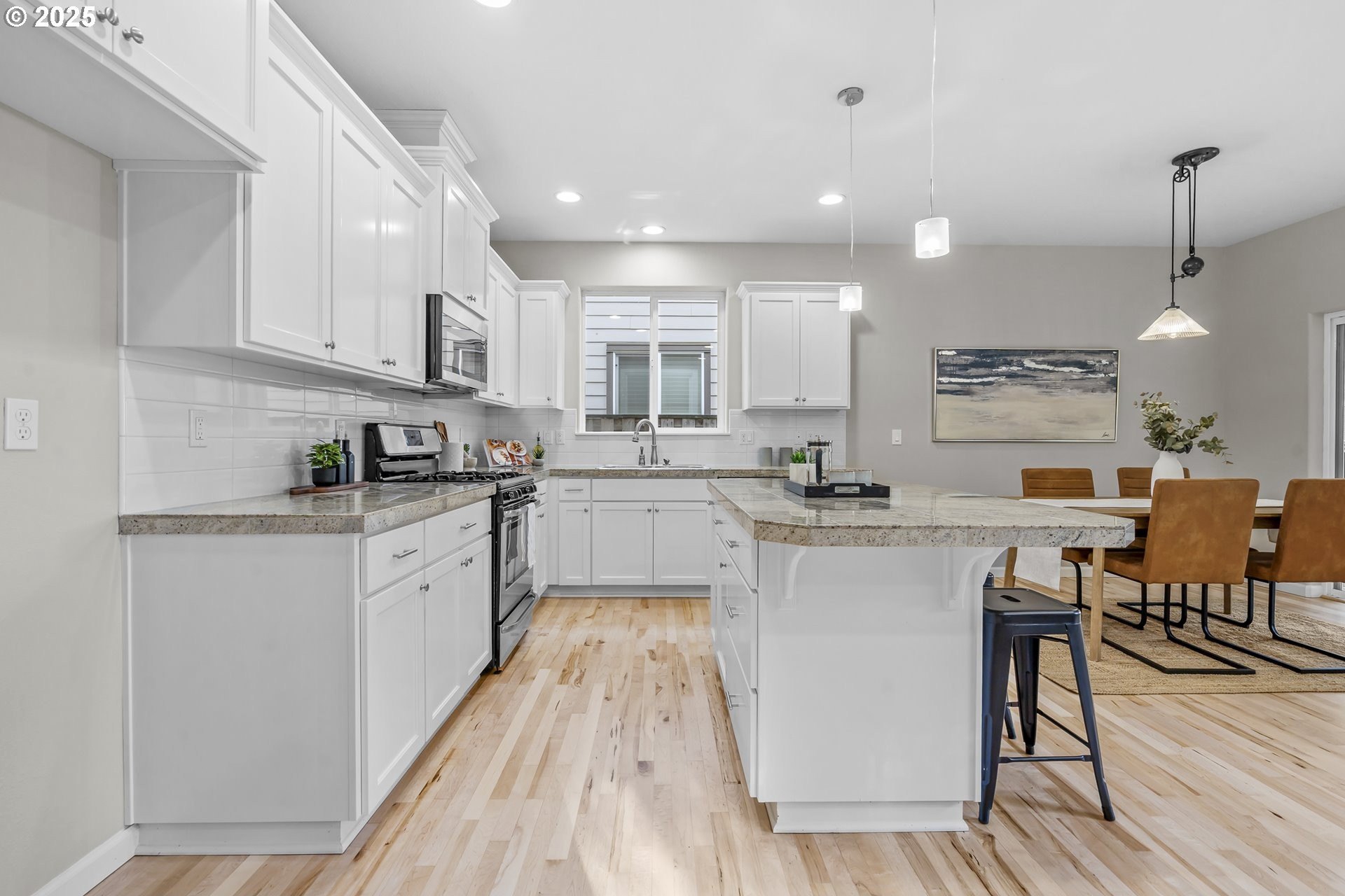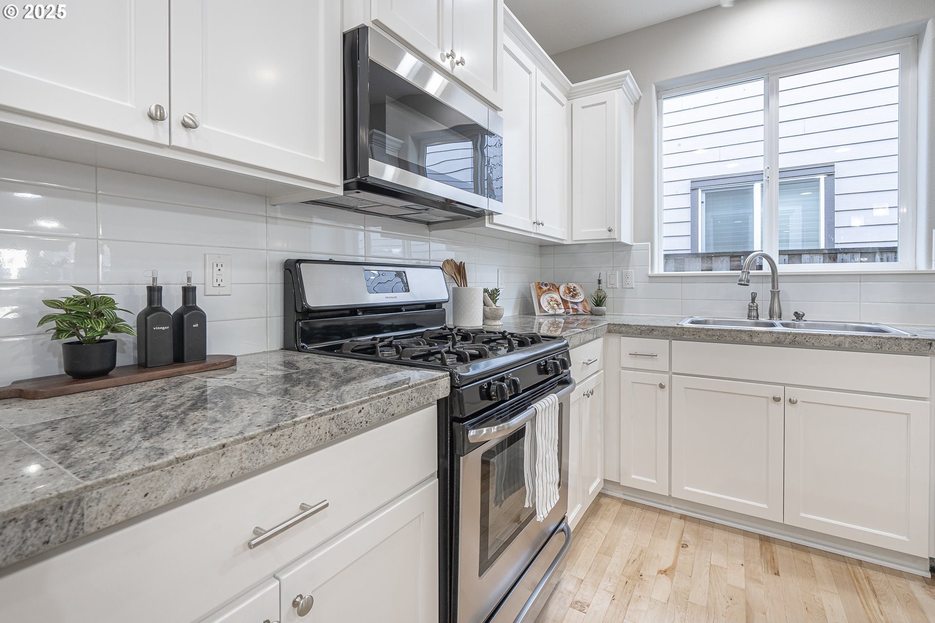 Welcome to this stunning home in the heart of Orenco! Freshly painted interior with brand-new carpet and refinished maple flooring, offers a warm and inviting feel throughout. The great room features a cozy gas fireplace and opens to a well-appointed kitchen with updated stainless steel appliances, granite tile countertops, pantry, and an island with an eat bar. The dining area connects seamlessly to a beautiful covered patio—perfect for entertaining. A guest bath completes the main floor.Upstairs, the vaulted primary suite includes a walk-in closet and en-suite bath with a double vanity. Two additional bedrooms, one of which is spacious and vaulted, share a full bath. The laundry room completes the upper floor.An attached outdoor shed provides extra storage along with the fully fenced yard. All this is located just blocks from Orenco Station’s restaurants, shopping, MAX light rail, Intel, parks, and more!Open House: Saturday & Sunday, Nov. 22 & 23, 12–3pm (if still available). [Home Energy Score = 5. HES Report at https://rpt.greenbuildingregistry.com/hes/OR10242788]