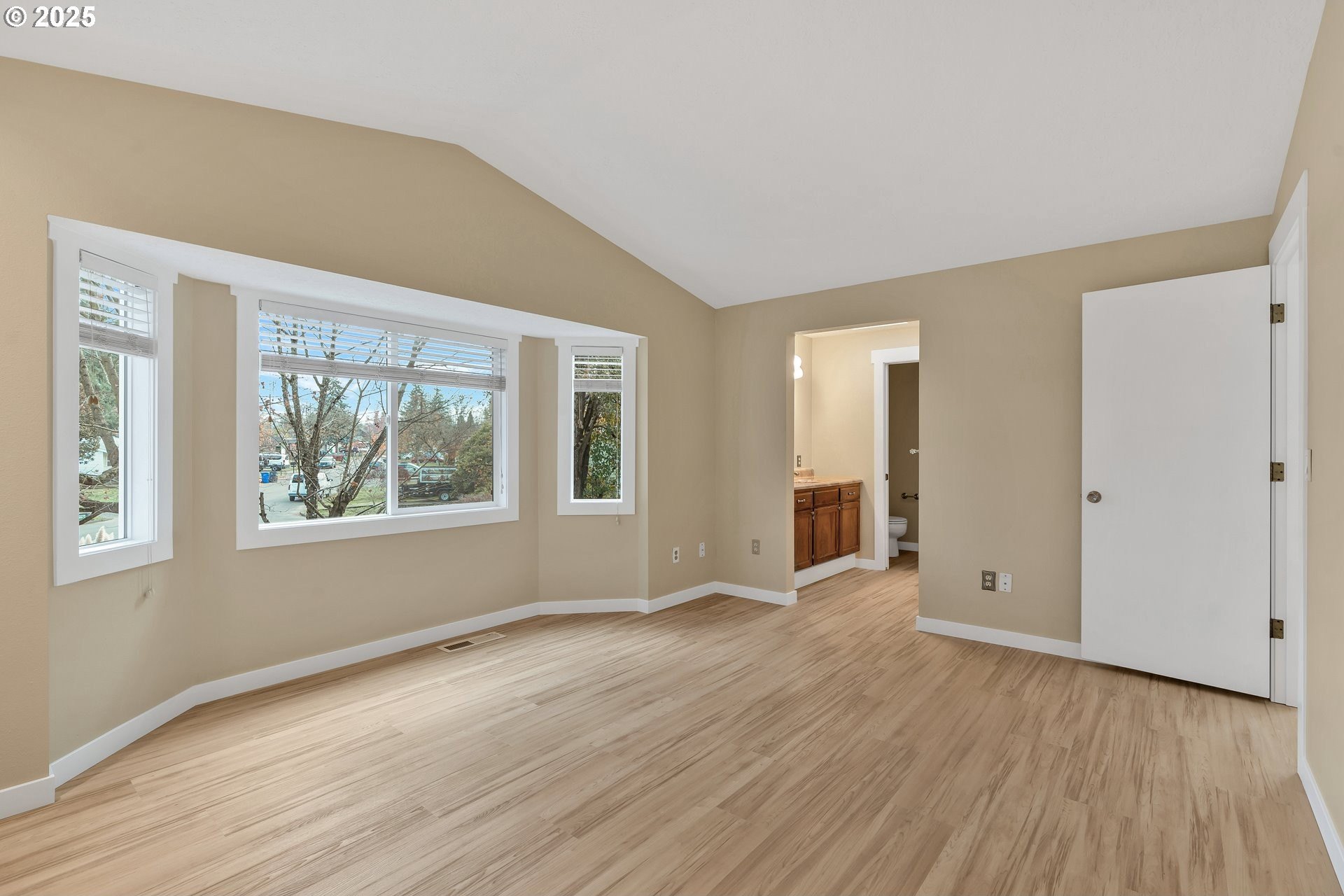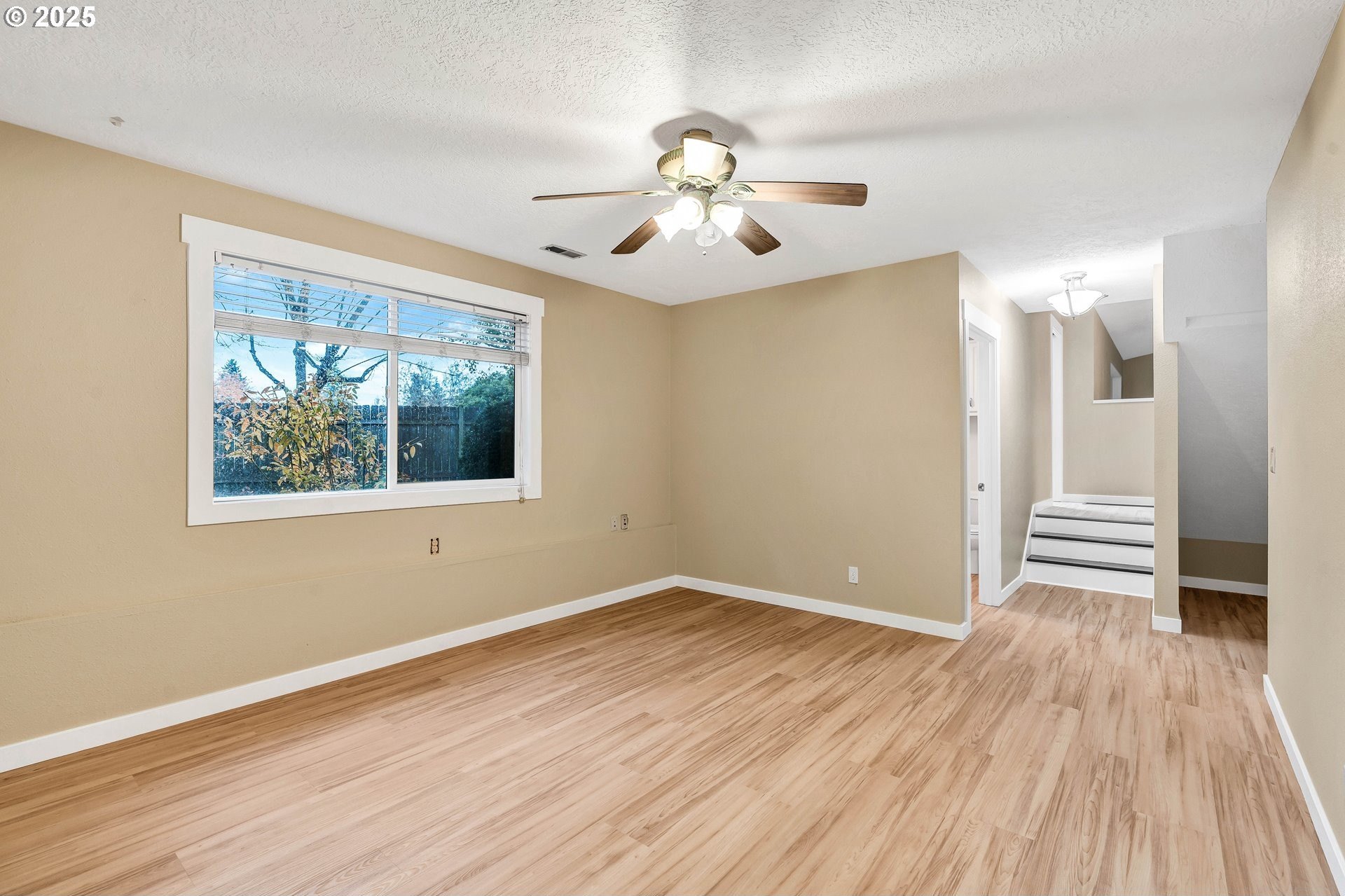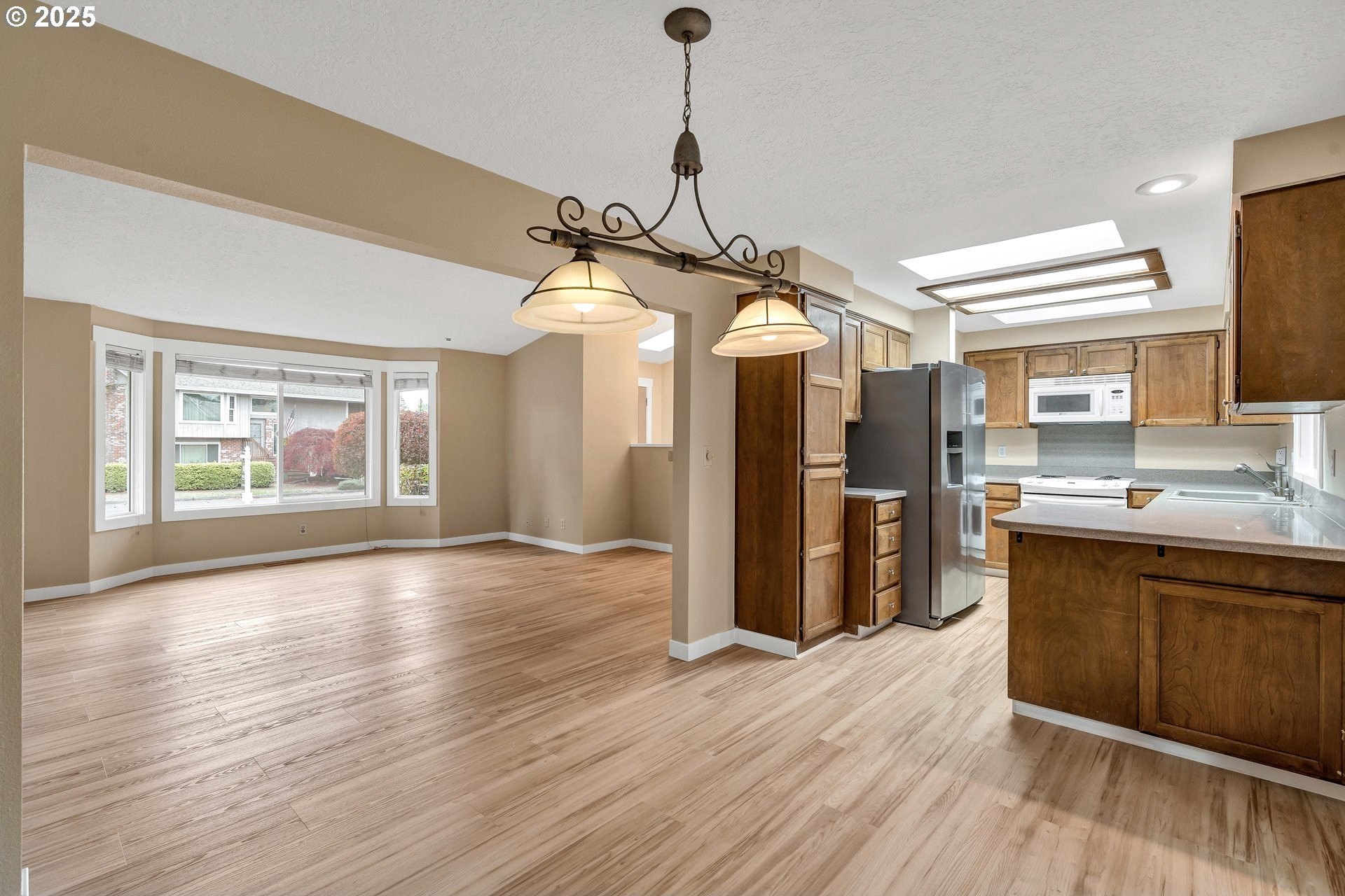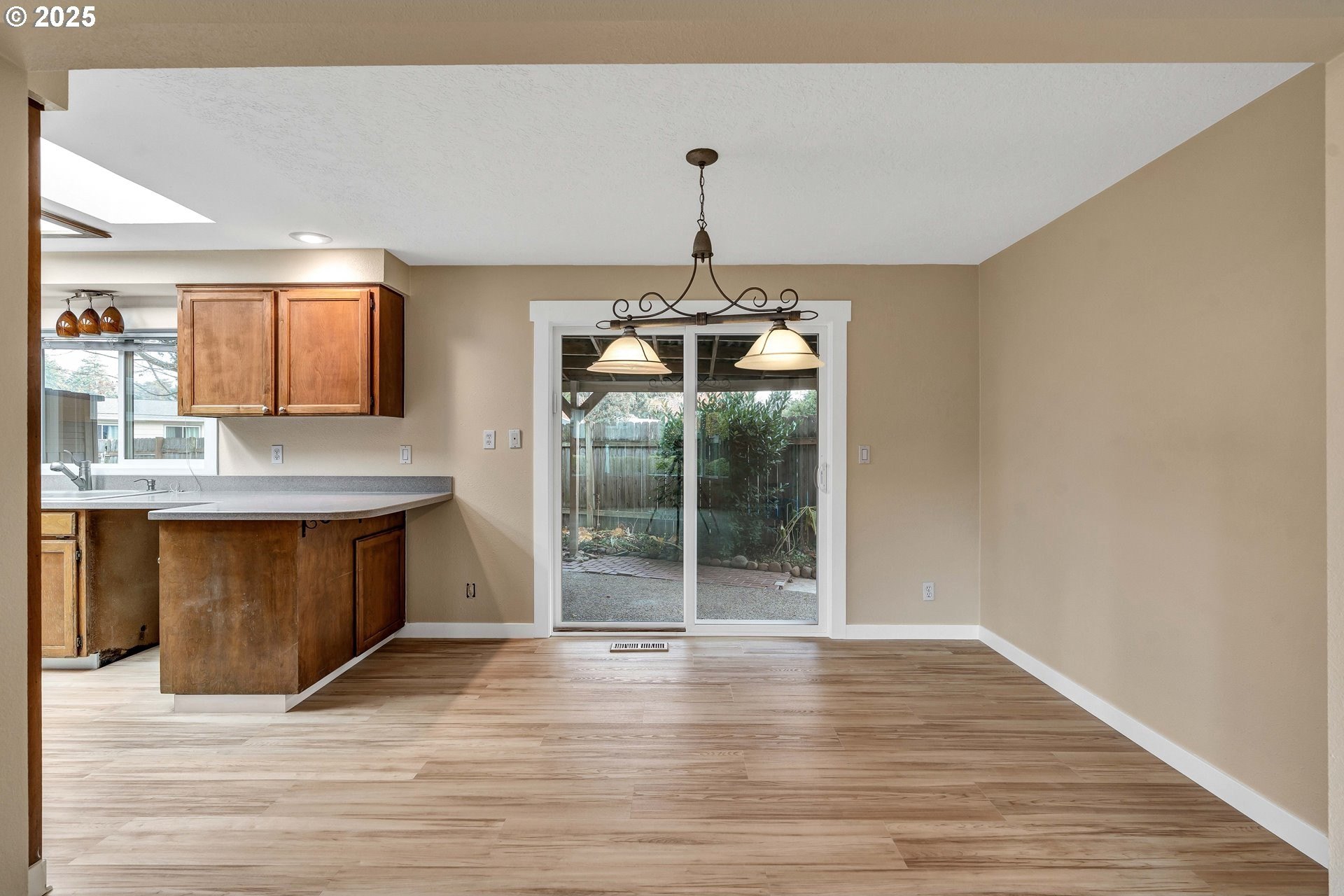 Seller to purchase new stainless steel appliances with an accepted offer for this beautiful 2-Level Home – 3 Bedrooms, 2.5 Bathrooms. Step into this bright and spacious home featuring brand new LVP flooring throughout and high vaulted ceilings that create an open, airy feel. The living room is filled with natural light from bay windows and is centered around a cozy fireplace, perfect for gatherings.The primary bedroom boasts a large bay window and an ensuite bathroom with a walk-in shower. Two additional bedrooms share a well-appointed bathroom, while a half bath provides convenience for guests.The dining room opens through sliding doors to a beautiful, oversized backyard, fully fenced and filled with lush greenery and mature trees, offering privacy and space for outdoor entertaining or play.With an additional living room or storage space, this home perfectly blends comfort, functionality, and natural light in a serene, private setting.