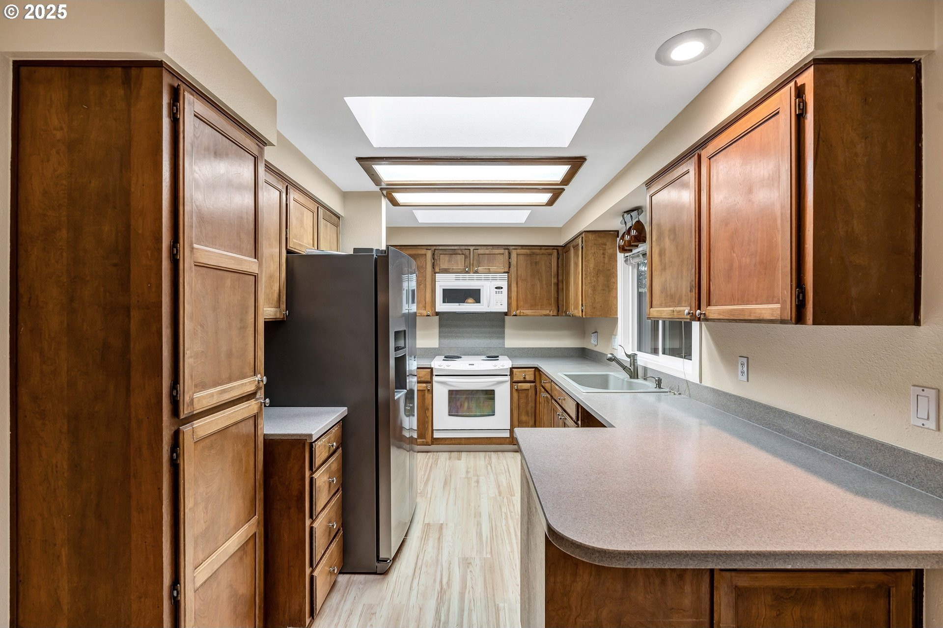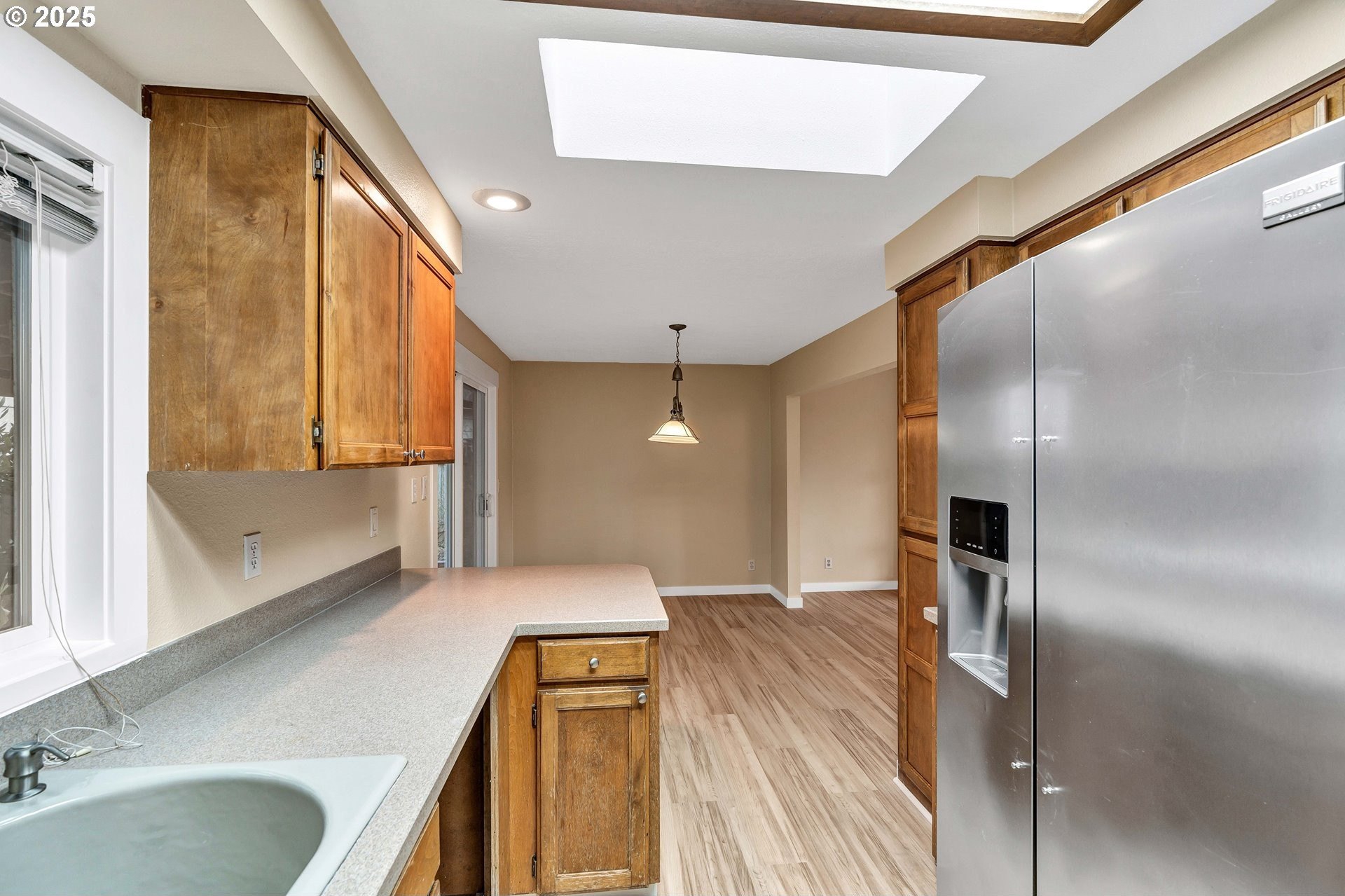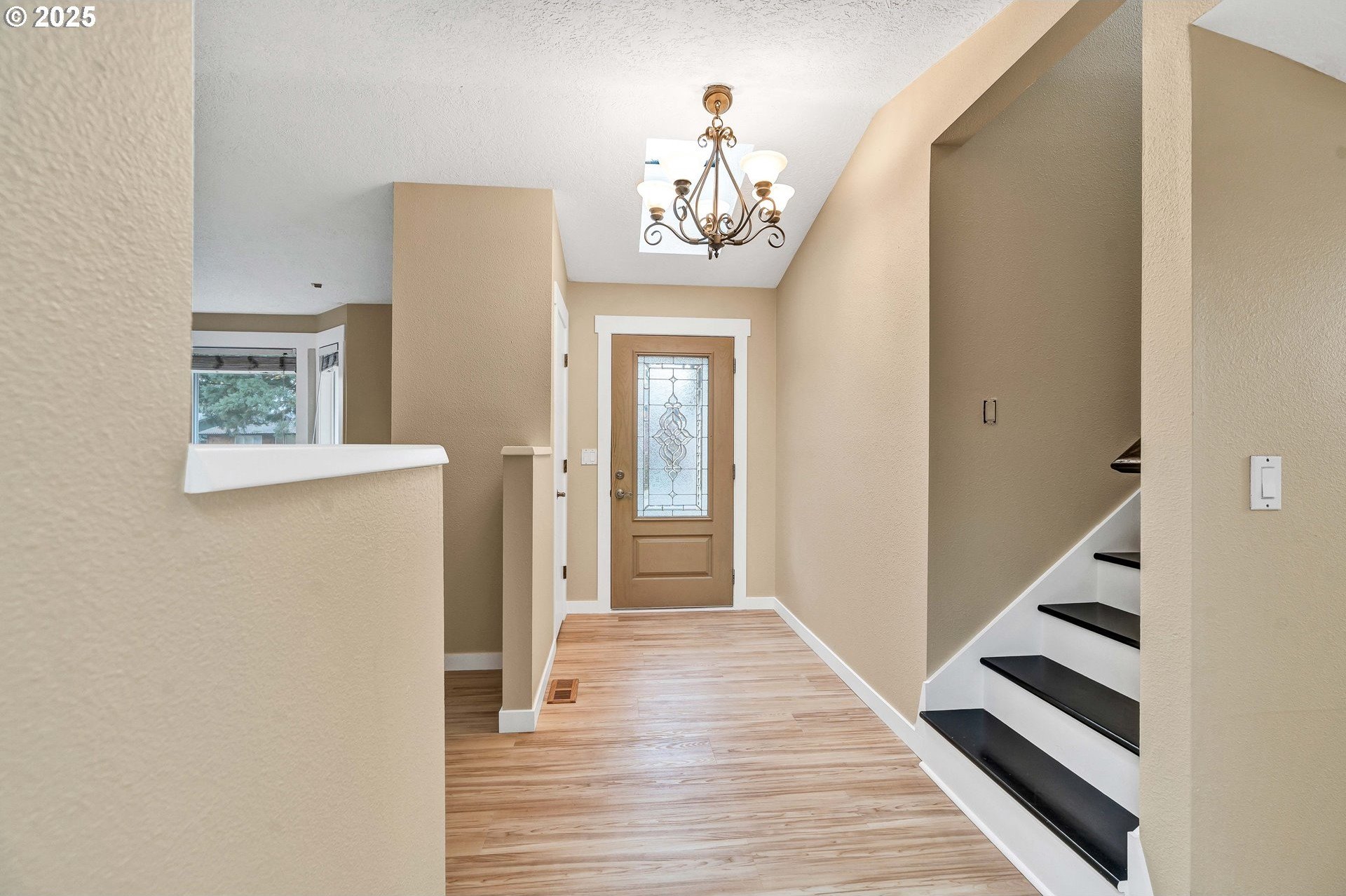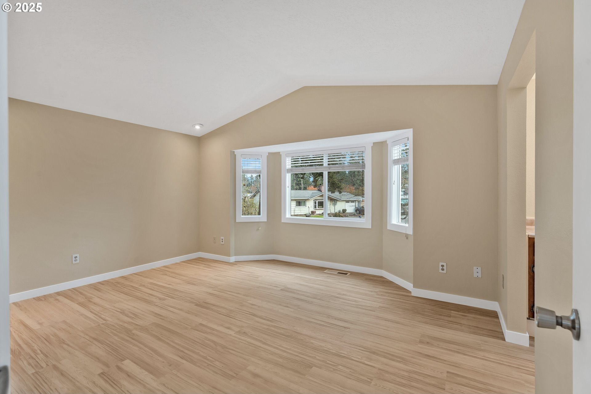 Seller to purchase new stainless steel appliances with an accepted offer for this beautiful 2-Level Home – 3 Bedrooms, 2.5 Bathrooms. Step into this bright and spacious home featuring brand new LVP flooring throughout and high vaulted ceilings that create an open, airy feel. The living room is filled with natural light from bay windows and is centered around a cozy fireplace, perfect for gatherings.The primary bedroom boasts a large bay window and an ensuite bathroom with a walk-in shower. Two additional bedrooms share a well-appointed bathroom, while a half bath provides convenience for guests.The dining room opens through sliding doors to a beautiful, oversized backyard, fully fenced and filled with lush greenery and mature trees, offering privacy and space for outdoor entertaining or play.With an additional living room or storage space, this home perfectly blends comfort, functionality, and natural light in a serene, private setting.