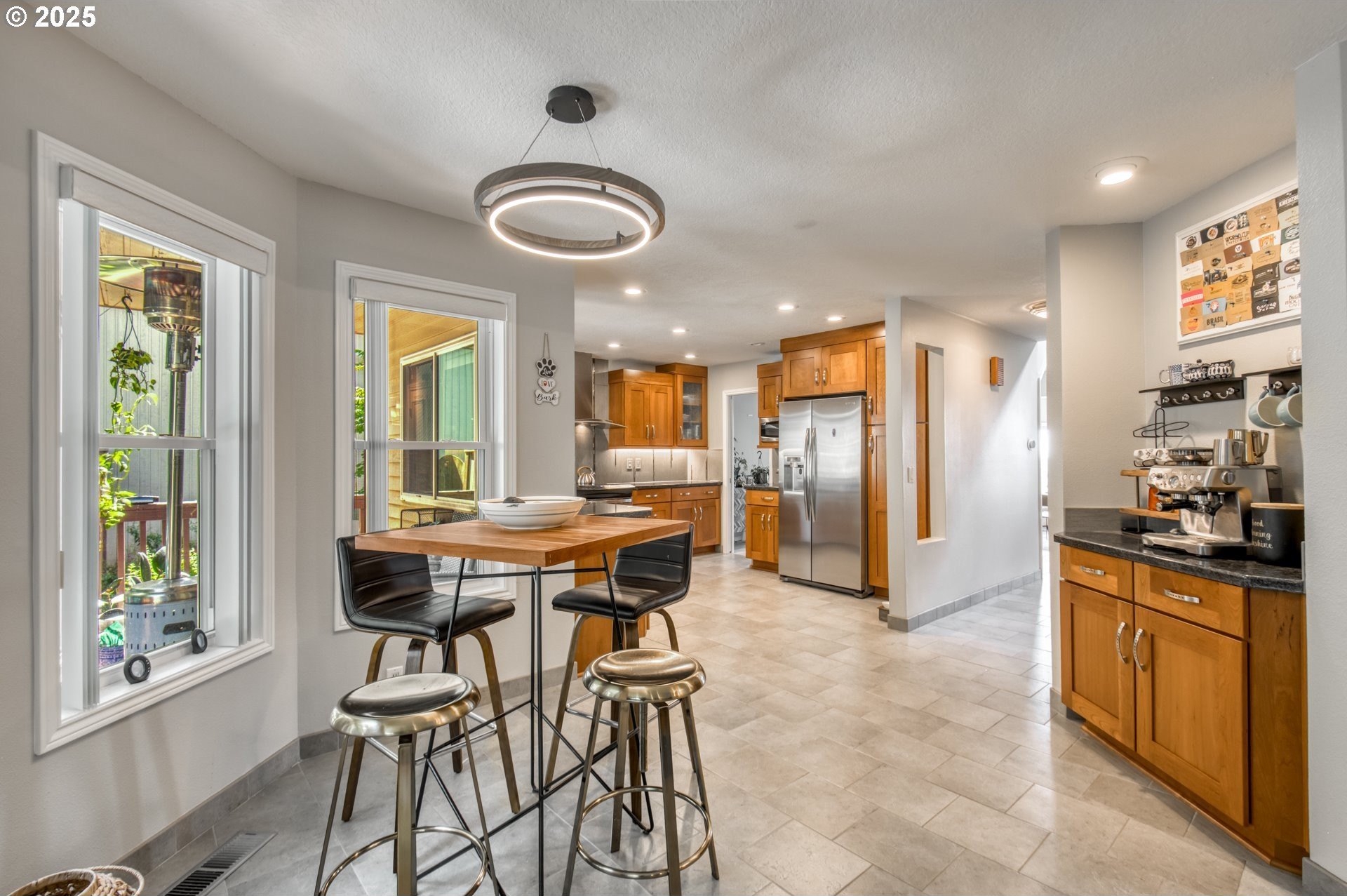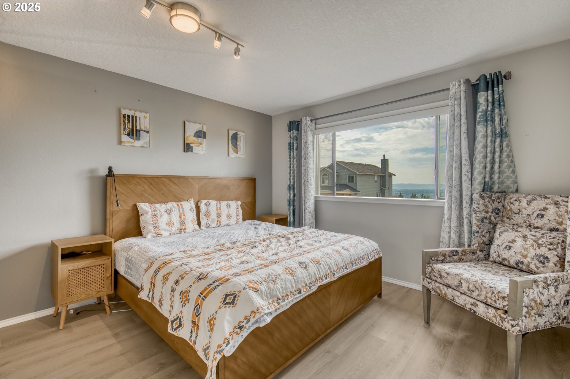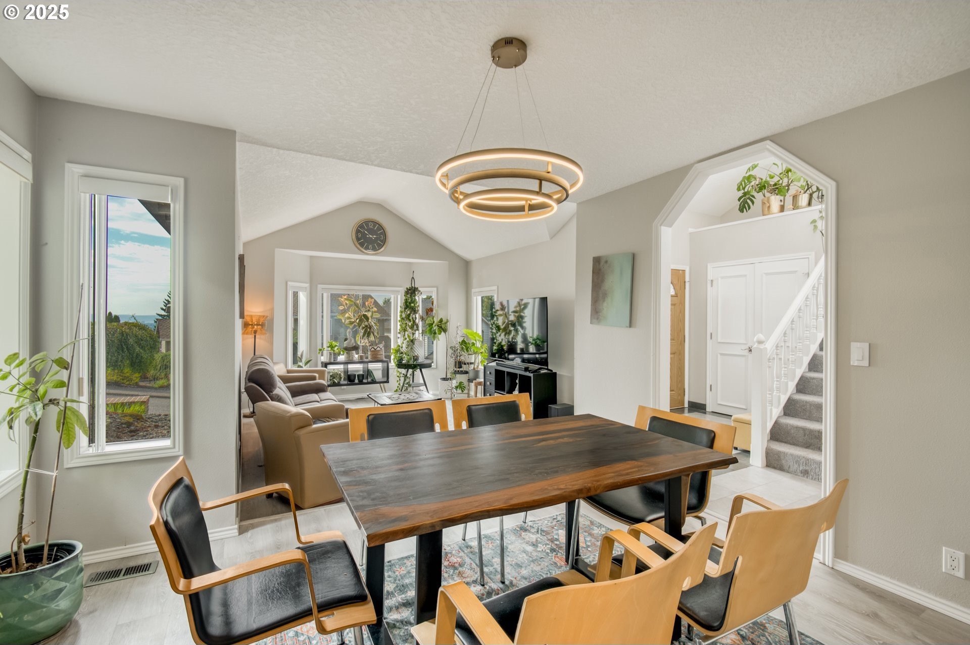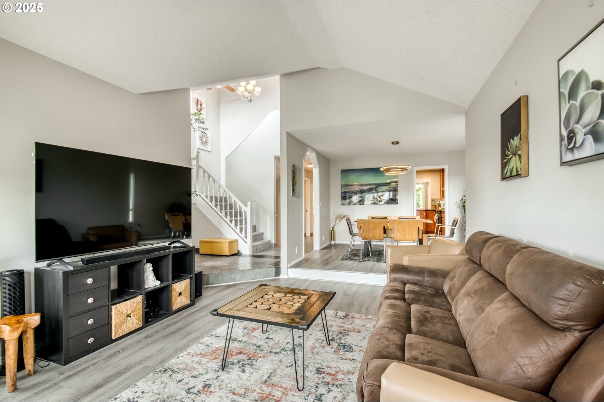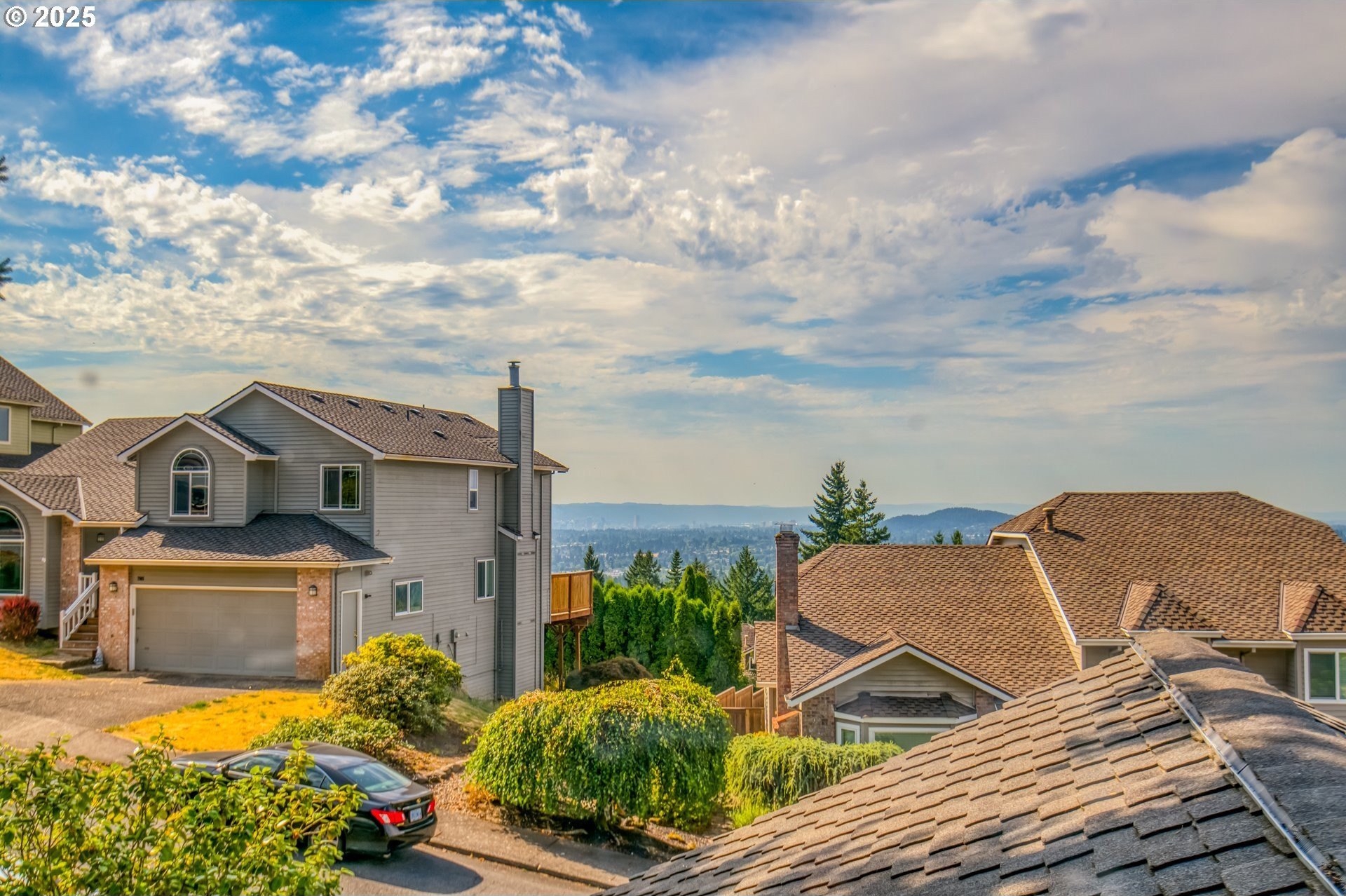 Perched above the city in a safe, quiet neighborhood, this spacious 4 bed, 2.5 bath home offers sweeping western views and backs to dedicated green space for unmatched privacy and a forest-like feel. Enjoy a refreshed kitchen with granite countertops, tile floors, and vinyl windows throughout. A main-level bedroom/office provides flexibility and storage, while upstairs features newer carpet and luxury vinyl plank flooring. Relax on the Trex back deck, cozy up by the gas fireplace, or enjoy the large backyard just seconds from Eastridge Park, Happy Valley Park, trails, and local amenities. Additional highlights include a 50-year Presidential roof, newer furnace, two-car garage, and ample storage. Move-in ready with long-term comfort in a highly desirable location.