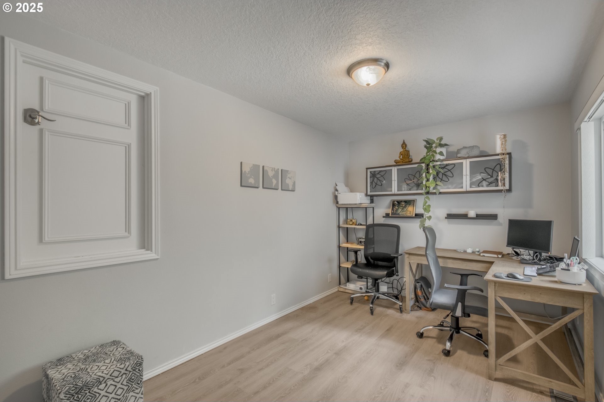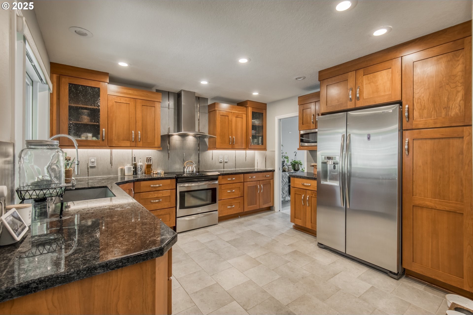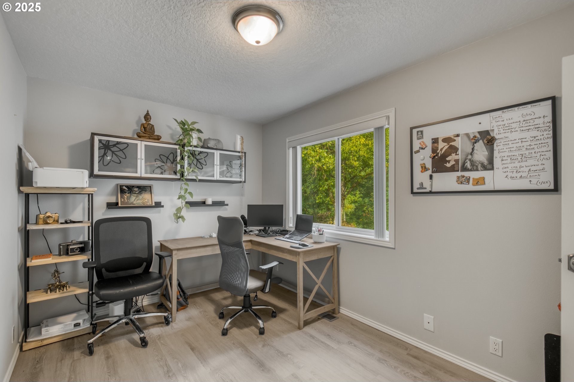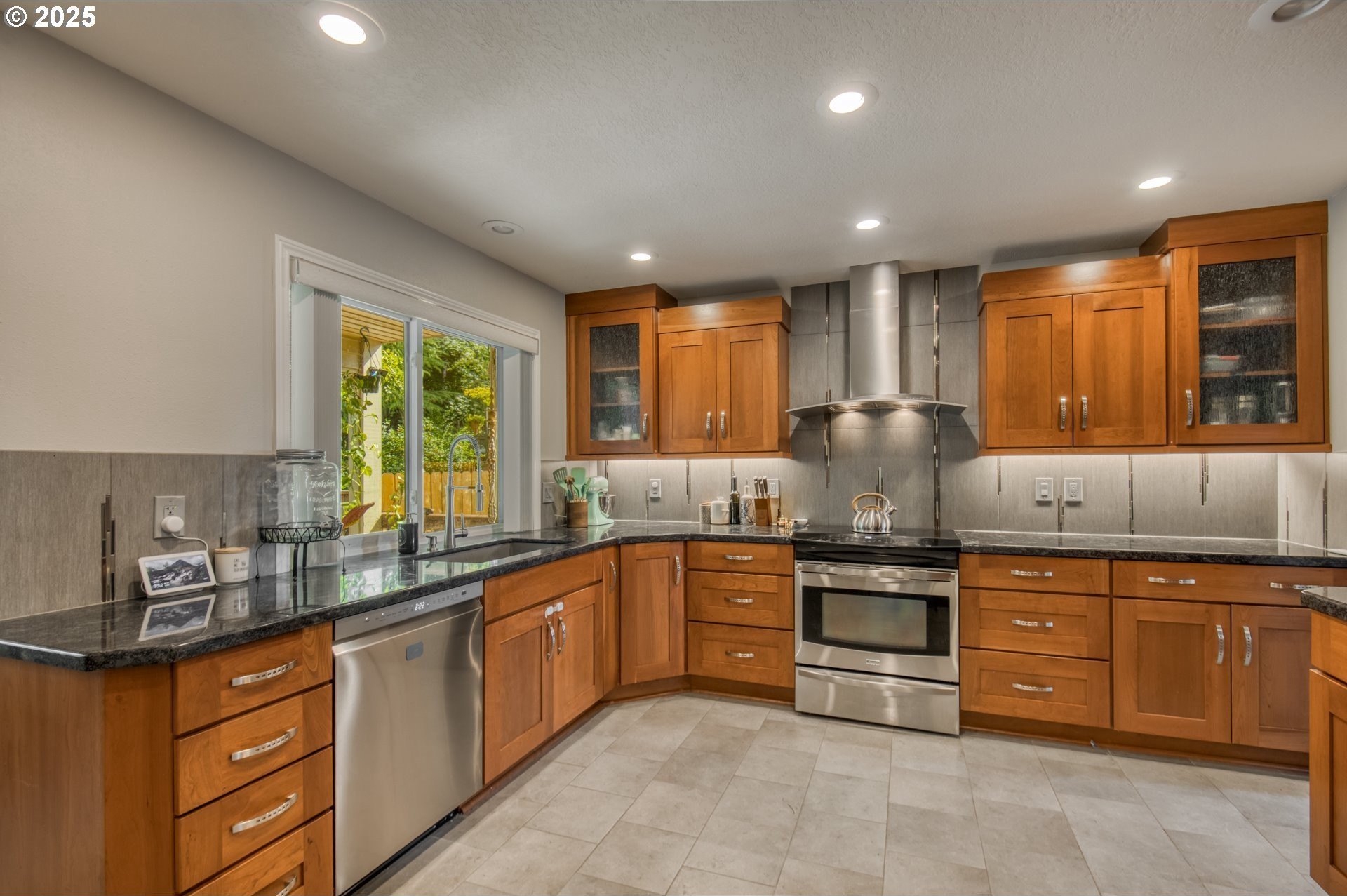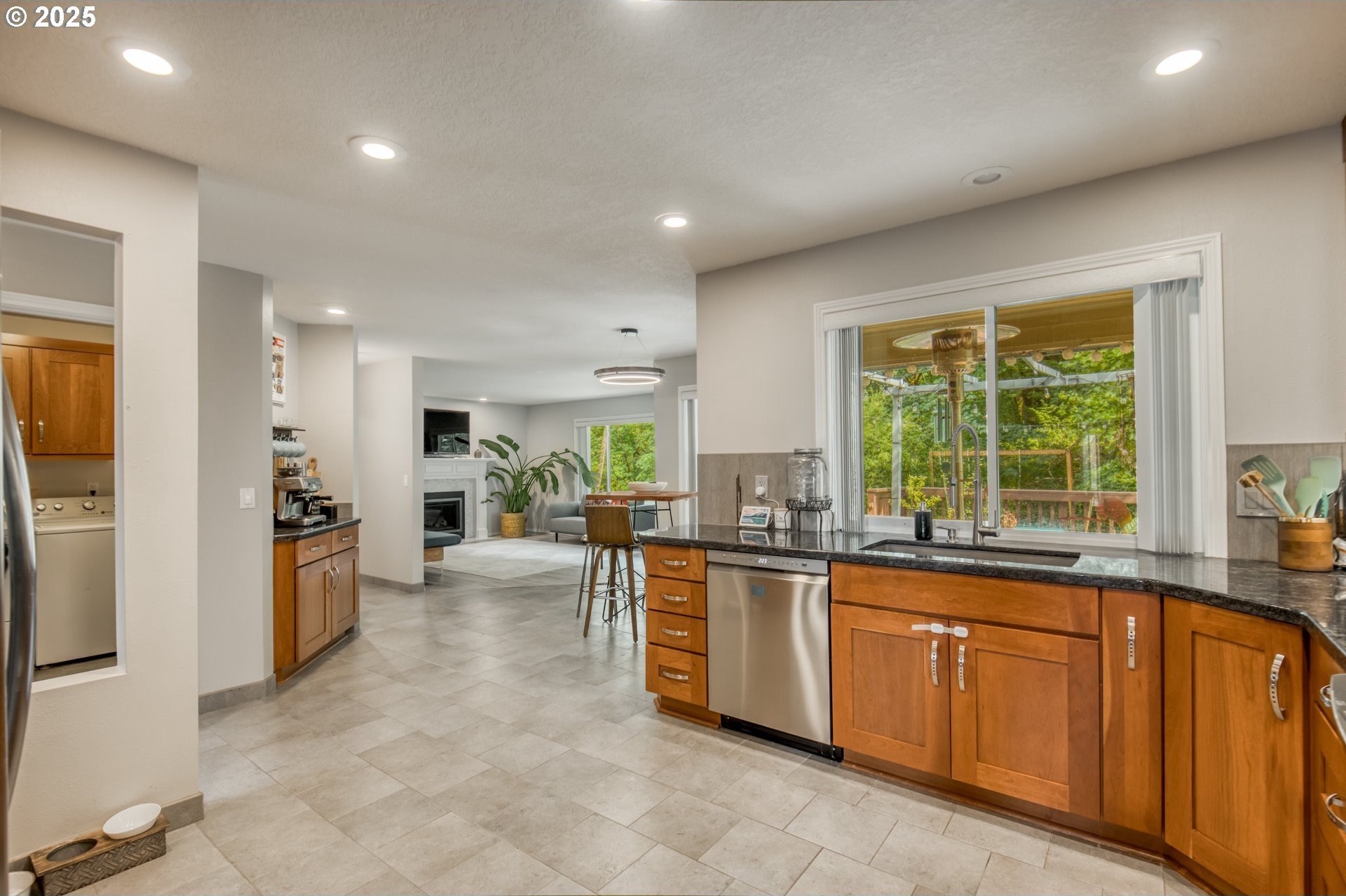 Perched above the city in a safe, quiet neighborhood, this spacious 4 bed, 2.5 bath home offers sweeping western views and backs to dedicated green space for unmatched privacy and a forest-like feel. Enjoy a refreshed kitchen with granite countertops, tile floors, and vinyl windows throughout. A main-level bedroom/office provides flexibility and storage, while upstairs features newer carpet and luxury vinyl plank flooring. Relax on the Trex back deck, cozy up by the gas fireplace, or enjoy the large backyard just seconds from Eastridge Park, Happy Valley Park, trails, and local amenities. Additional highlights include a 50-year Presidential roof, newer furnace, two-car garage, and ample storage. Move-in ready with long-term comfort in a highly desirable location.