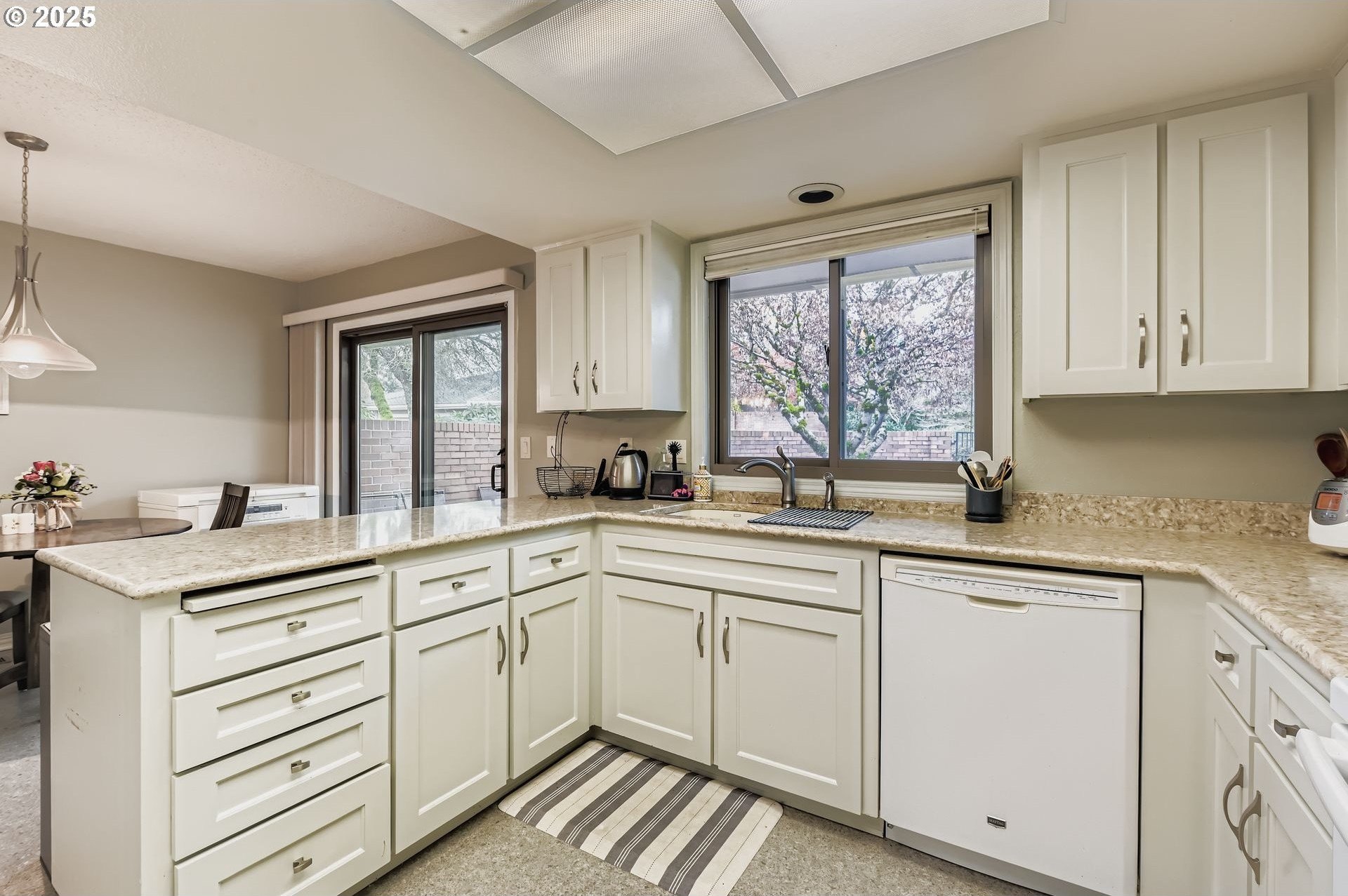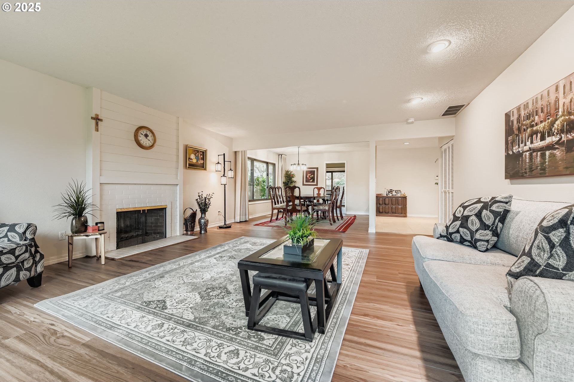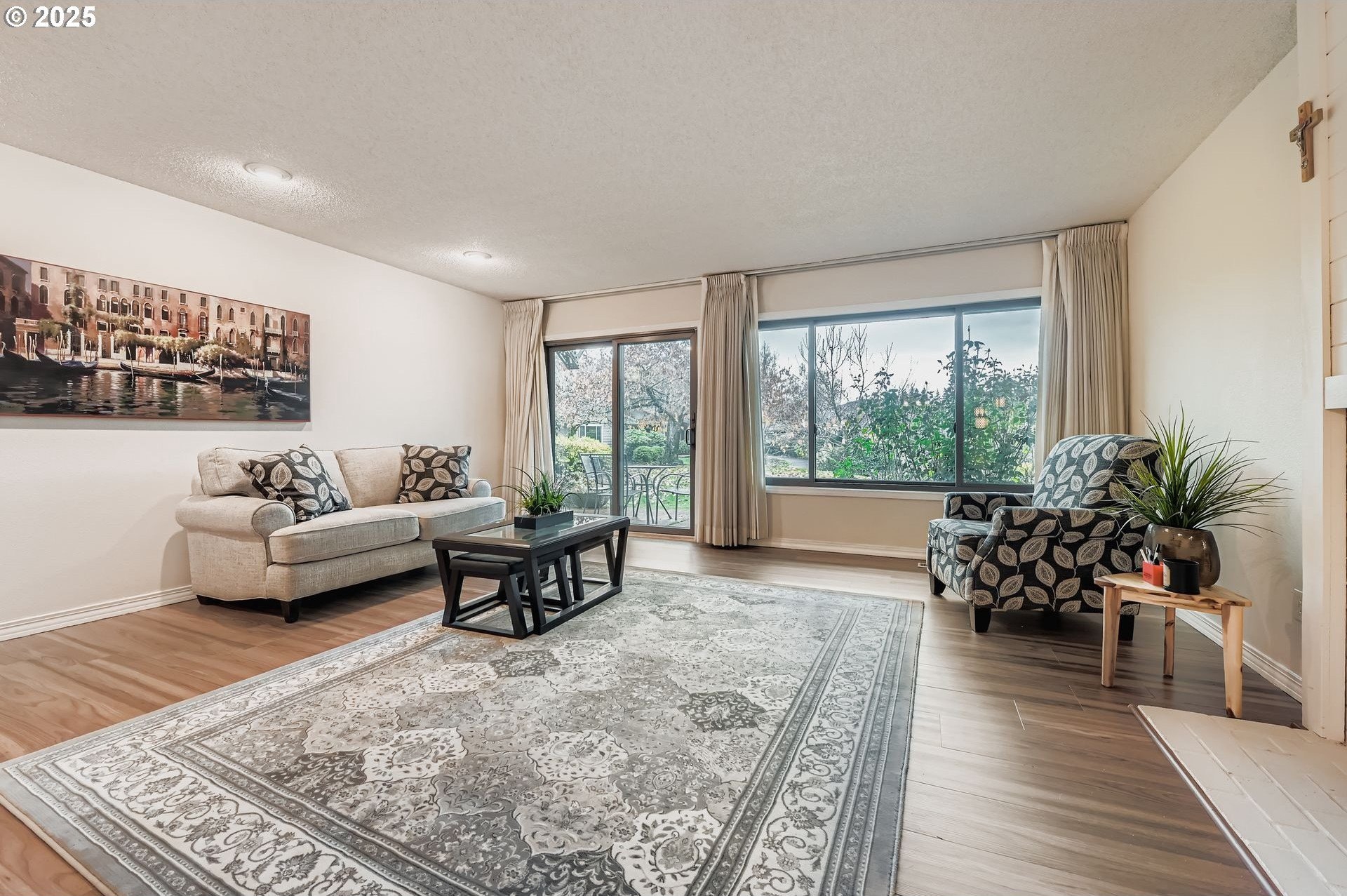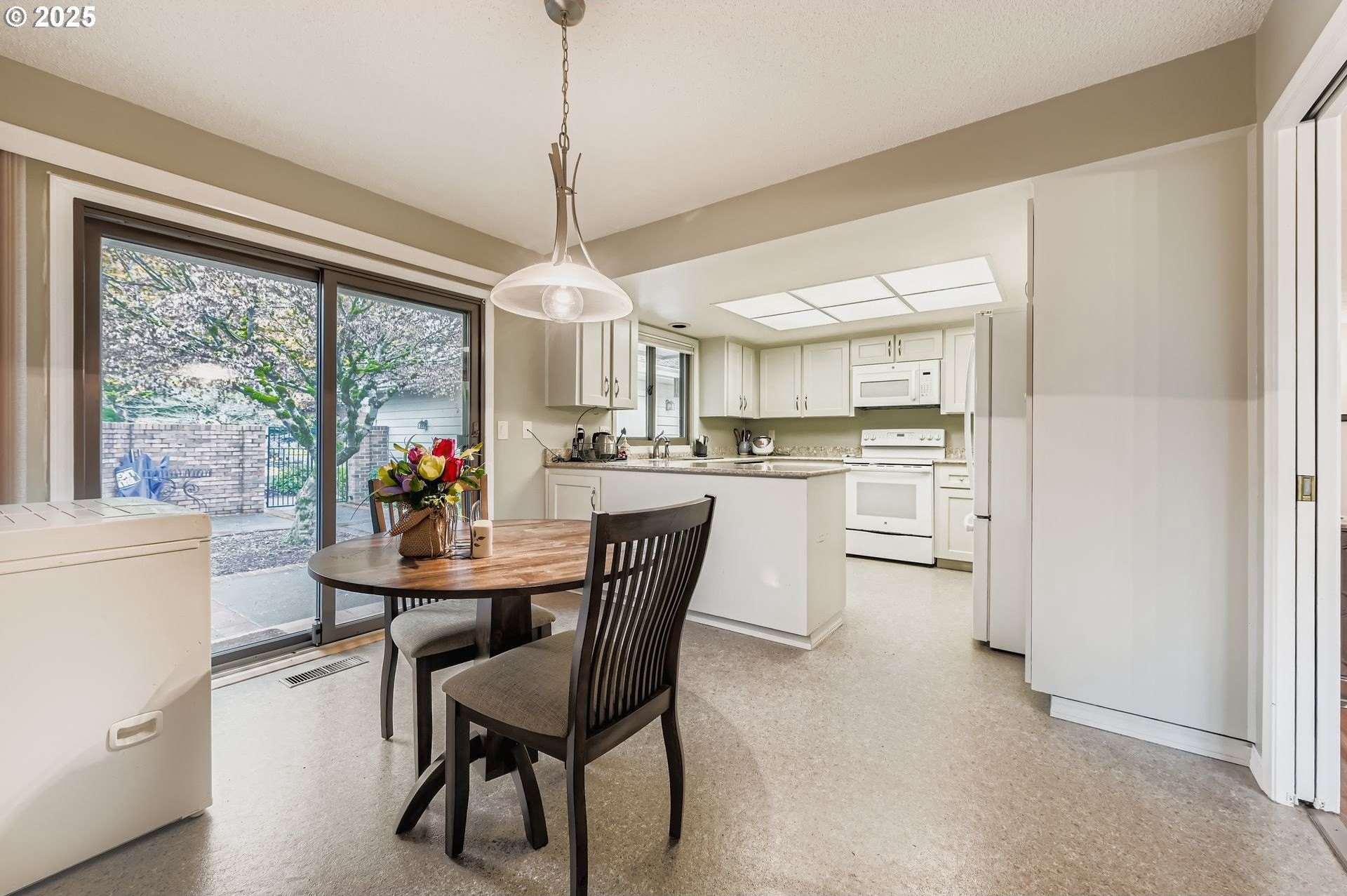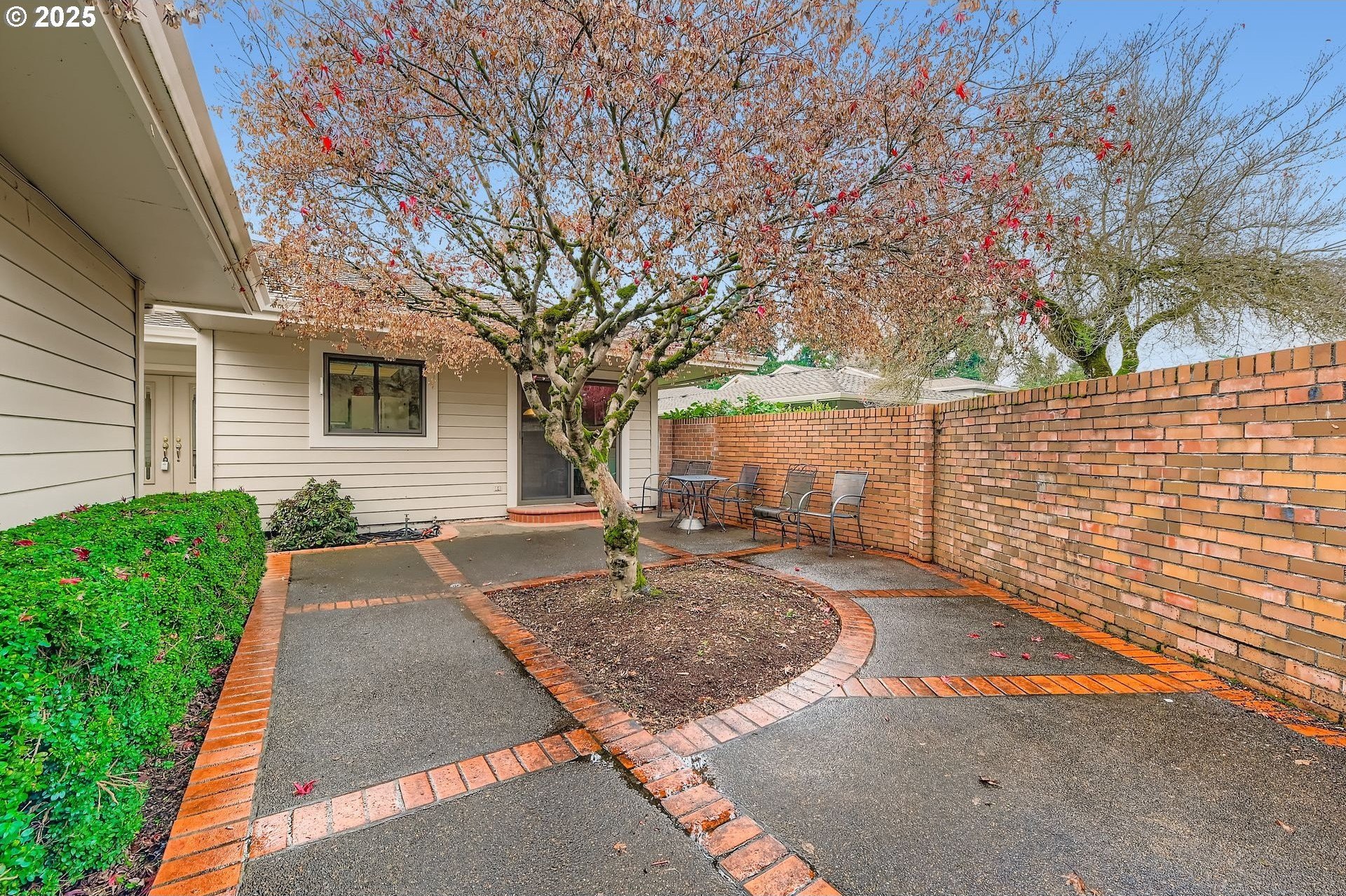 Experience single-level living in the heart of Charbonneau, a resort-style community surrounded by a 27-hole golf course, clubhouse amenities, dining and year-round activities. Tucked at the end of a quiet cul-de-sac, this home offers generous indoor/outdoor living spaces and peaceful views of the community greenspace. A private, gated front courtyard welcomes you in with stamped concrete pathways and multiple seating areas, an ideal spot for morning coffee or evening relaxation. Inside, the layout opens to a spacious living and dining area with newer laminate flooring, large picture windows and a slider leading to the back patio overlooking the greenspace and community pool. Enjoy effortless indoor-outdoor flow and a calm, park-like backdrop all year long. The kitchen features a built-in microwave, granite countertops, a wide window over the sink and an adjacent breakfast nook with direct courtyard access. The primary suite includes a deep window bench, two closets and an ensuite with a soaking tub, walk-in shower and expanded vanity. The second bedroom is perfect for guests or a home office. Additional highlights include a full hall bathroom with lots of storage, dedicated laundry room and a two-car garage. Living in Charbonneau means access to tennis, pickleball, walking paths, community events, parks, a restaurant, bakery and more, all just minutes from I-5 and local conveniences. A rare opportunity to enjoy resort-style living with the comfort of a well-designed single-level home.