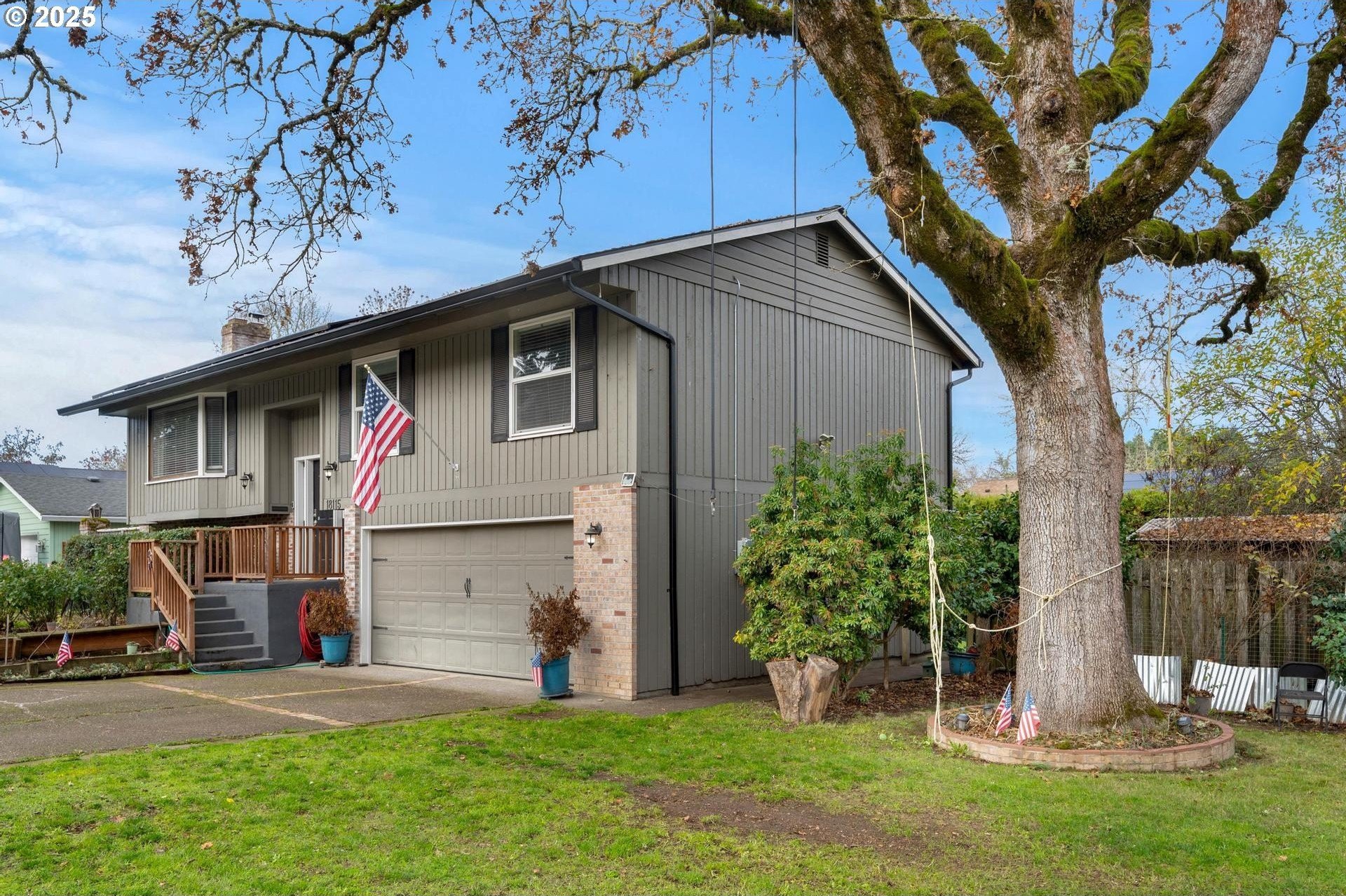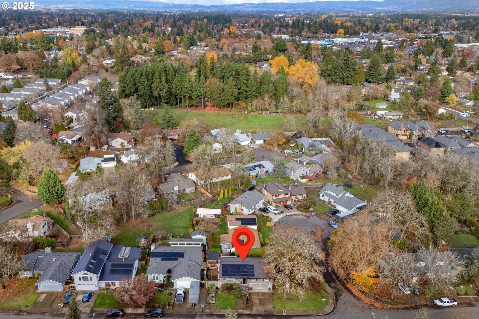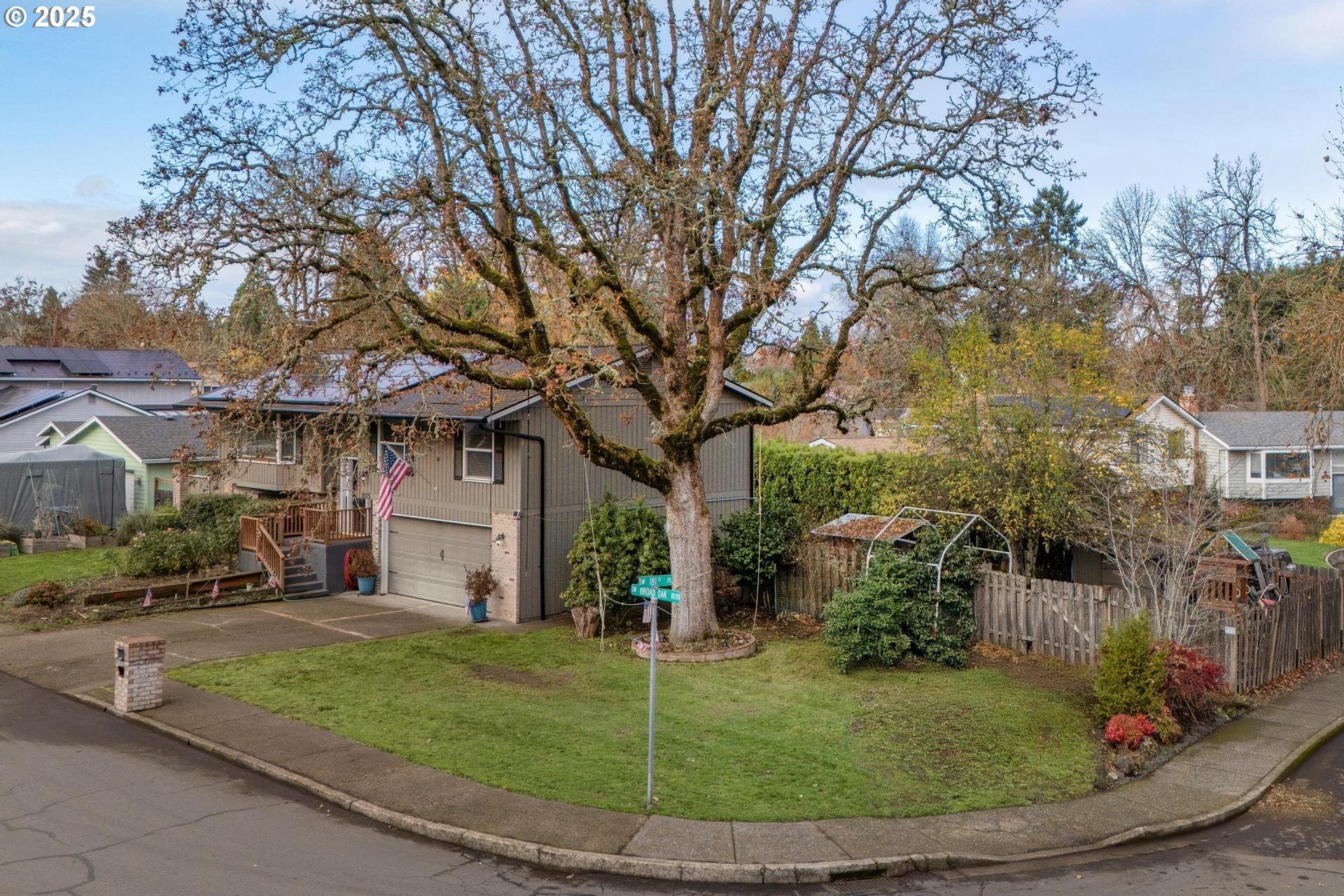 Located in a great neighborhood close to shopping, parks, and schools, this cheery corner lot three bedroom, 2.1 bathroom home has gleaming Brazilian Cherry hardwoods in the living room, dining room, kitchen, and informal eating area. The kitchen is equipped with stainless steel appliances, a free standing refrigerator, granite counters, and an eating area for informal dining. Adjacent is a formal dining room with a slider to a back deck, and a living room with a cozy gas fireplace and bay window. Three spacious bedrooms upstairs, including a large primary suite with a private bathroom. Downstairs has a huge family room with a slider to a back patio, utility room / half bathroom, and additional storage under the stairs. Central AC and a gas furnace bring all season comfort. Fully fenced backyard is complete with a toasty sauna for relaxation, shed, patio, chicken coop, and RV plug in. Check out the newer solar panels that reduce monthly electricity bills and are on a transferable lease. New tear off roof in 2022 and electrical panel recently updated. All this with an attached two car garage, close to Nike and Intel, and no HOA! Welcome home!