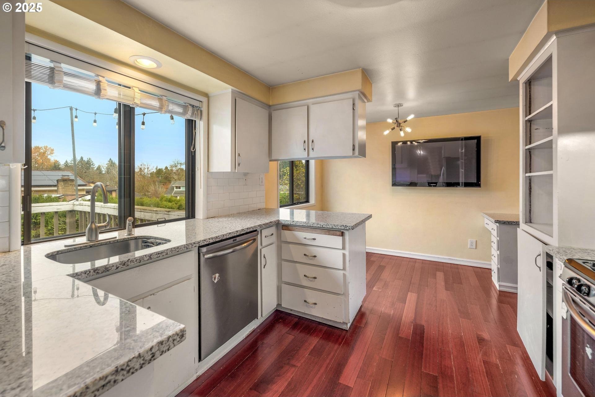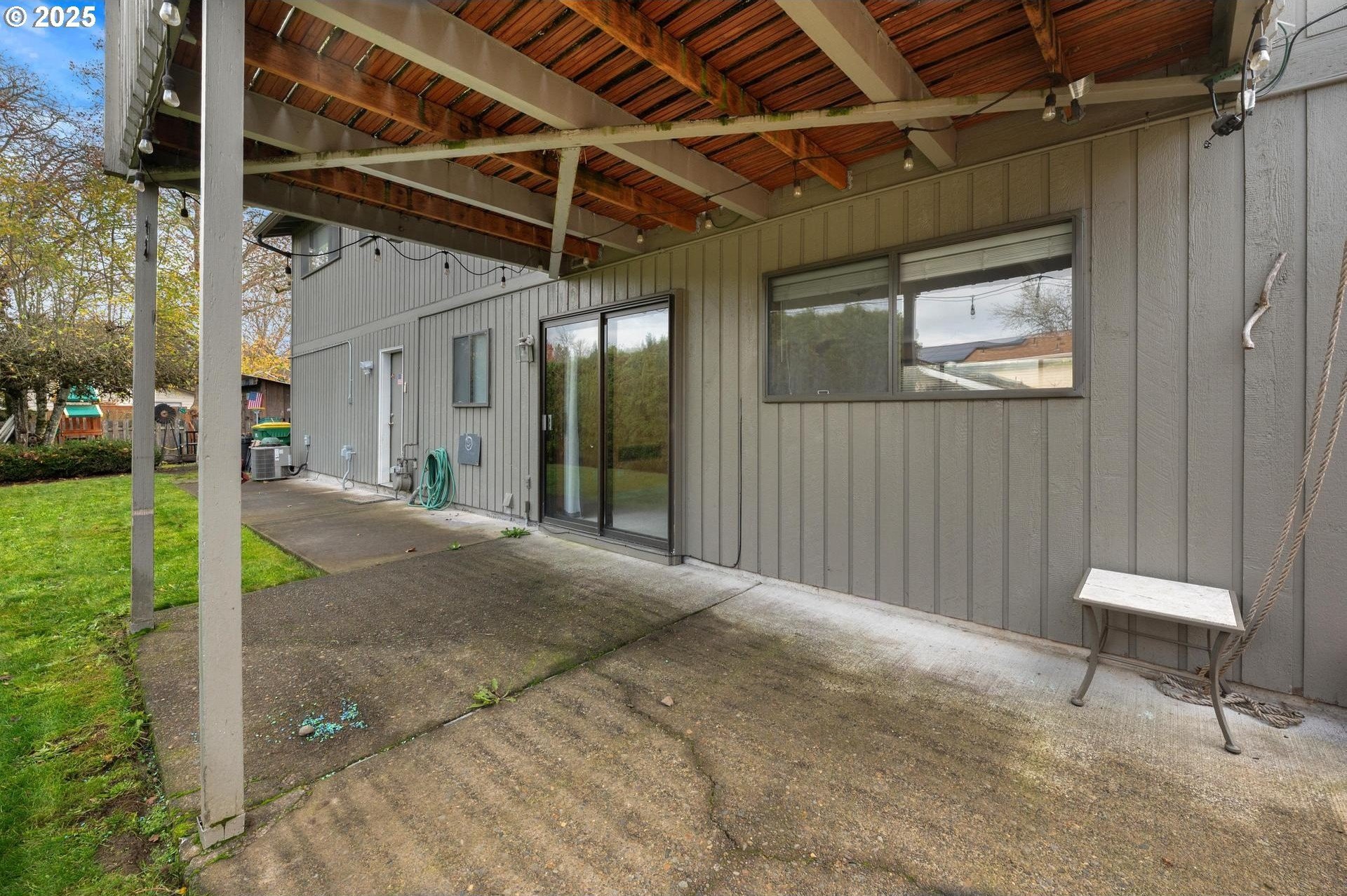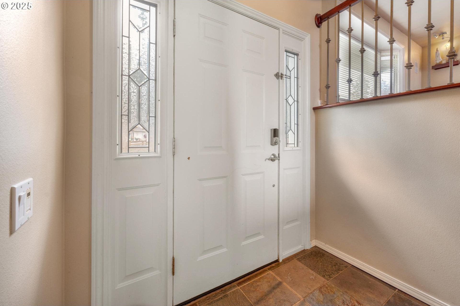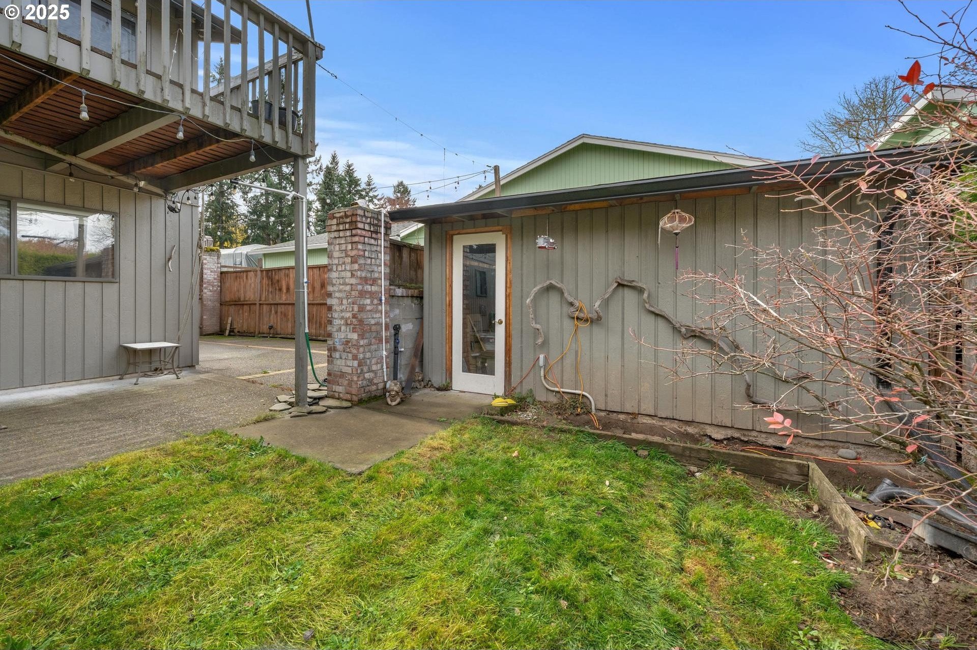 Located in a great neighborhood close to shopping, parks, and schools, this cheery corner lot three bedroom, 2.1 bathroom home has gleaming Brazilian Cherry hardwoods in the living room, dining room, kitchen, and informal eating area. The kitchen is equipped with stainless steel appliances, a free standing refrigerator, granite counters, and an eating area for informal dining. Adjacent is a formal dining room with a slider to a back deck, and a living room with a cozy gas fireplace and bay window. Three spacious bedrooms upstairs, including a large primary suite with a private bathroom. Downstairs has a huge family room with a slider to a back patio, utility room / half bathroom, and additional storage under the stairs. Central AC and a gas furnace bring all season comfort. Fully fenced backyard is complete with a toasty sauna for relaxation, shed, patio, chicken coop, and RV plug in. Check out the newer solar panels that reduce monthly electricity bills and are on a transferable lease. New tear off roof in 2022 and electrical panel recently updated. All this with an attached two car garage, close to Nike and Intel, and no HOA! Welcome home!