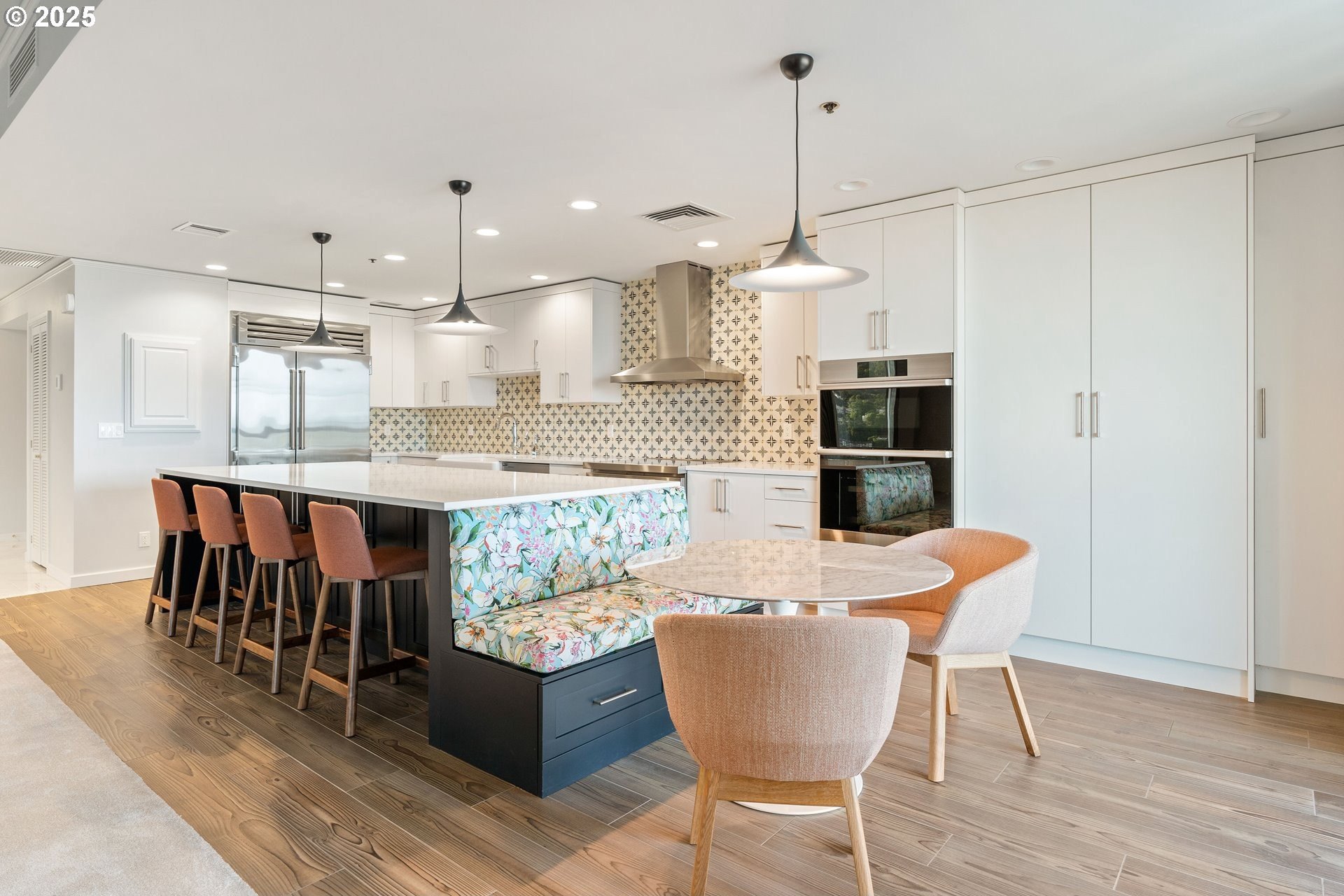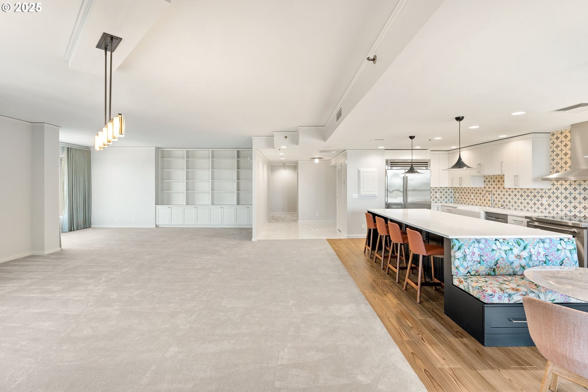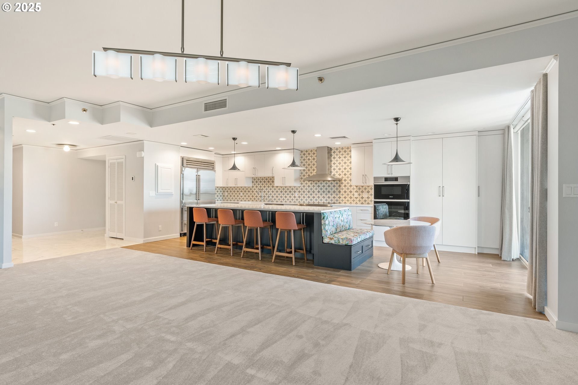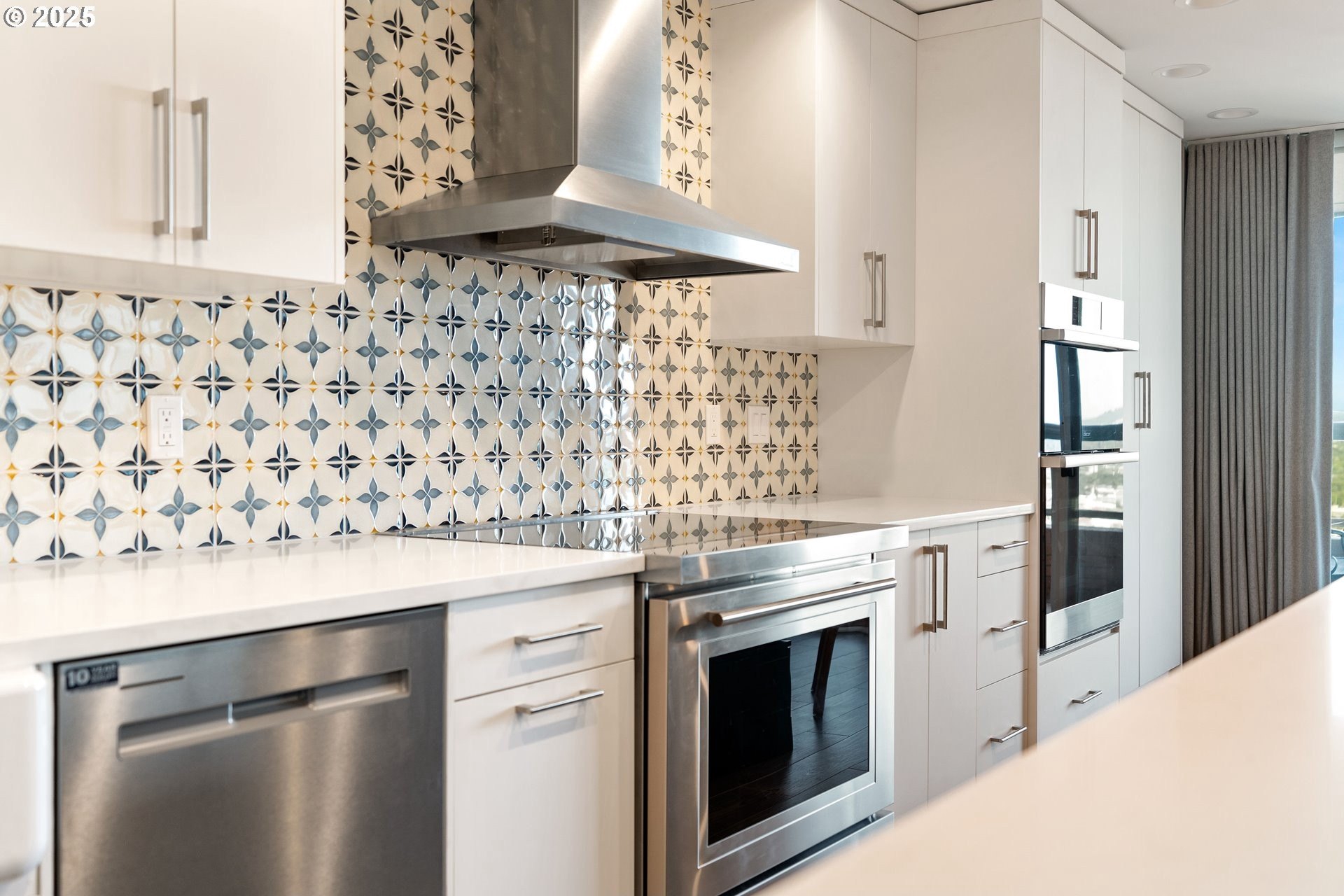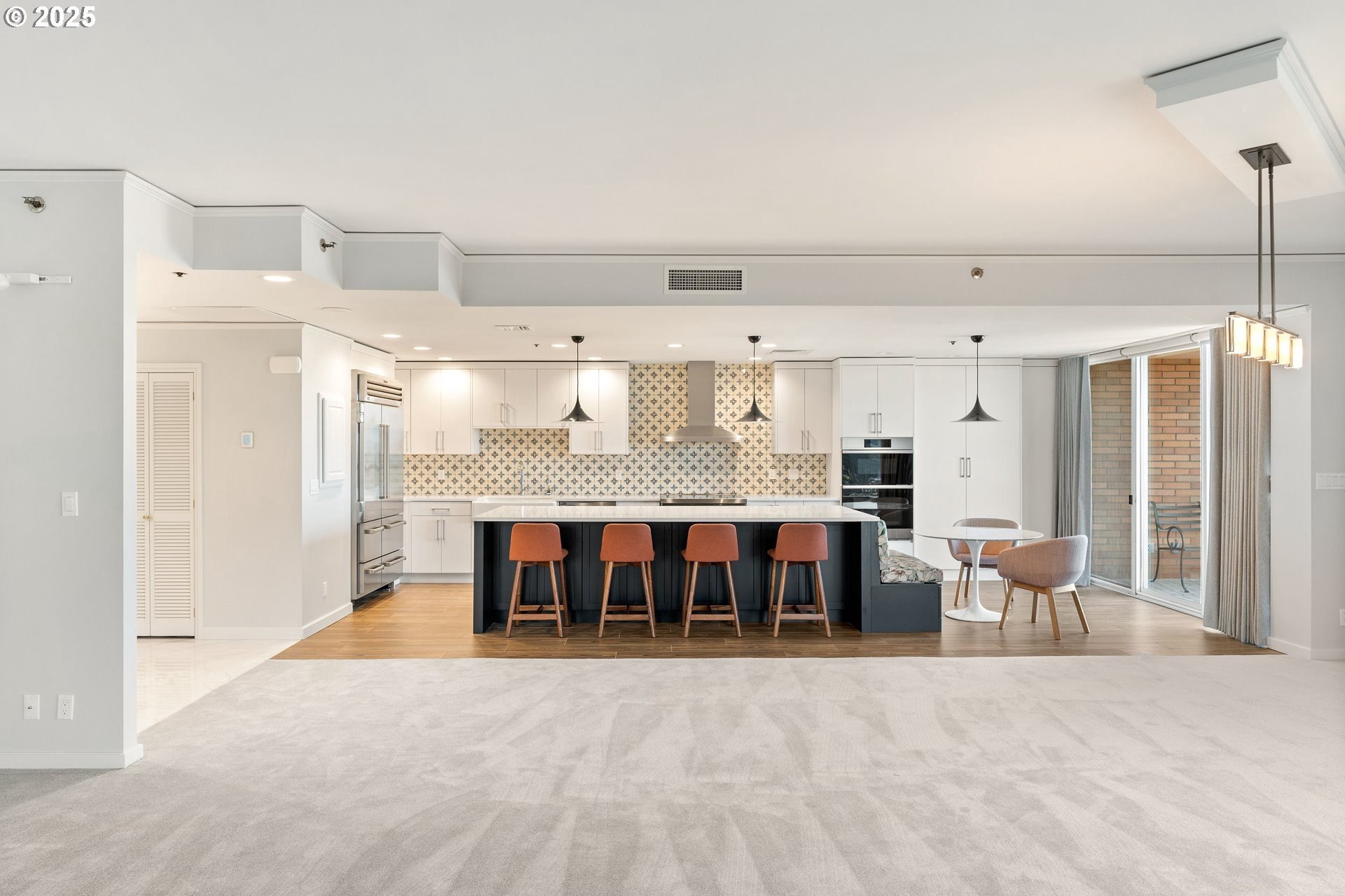 Perched high in the iconic KOIN Tower at Fountain Plaza, this extraordinary condominium offers an unparalleled sanctuary of refined luxury and breathtaking vistas. By day, gaze eastward to the majestic silhouette of Mt. Hood, where the sun rises in a symphony of golden hues, casting a radiant glow across the landscape. To the south, the serene Willamette River unfurls like a ribbon of liquid sapphire, its gentle currents reflecting the city's vibrant energy. As twilight descends, the scene transforms into a mesmerizing nightly view, with the Tilikum Crossing Bridge adorned in twinkling lights that dance upon the water like scattered diamonds.No expense has been spared in this meticulous full remodel-a pristine residence that has never been lived in since, awaiting its inaugural occupant. The kitchen stands as a masterpiece of culinary excellence, equipped with a 30" Dacor built-in oven, a commanding 48" Pro Sub-Zero refrigerator, and a precision-engineered 36" Wolf induction cooktop and extensive venting system. Exquisite fixtures elevate every detail: Kohler, Hubbardton Forge, and Victoria + Albert appointments grace the space with timeless sophistication. Plush upgraded carpeting underfoot and sumptuous wool draperies frame the expansive windows, ensuring both comfort and elegance.Residing within this secure concierge building evokes the prestige of a New York-style doorman enclave, where personalized service and unwavering privacy define the lifestyle. This is more than a home; it is an elevated realm of sophistication and serenity.