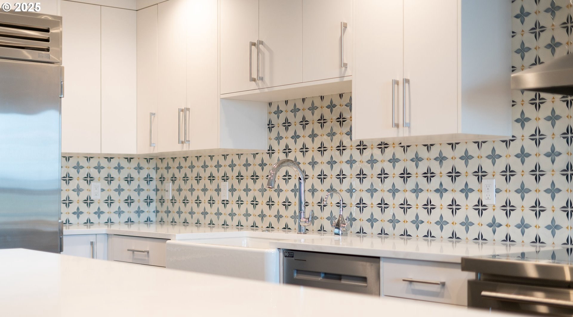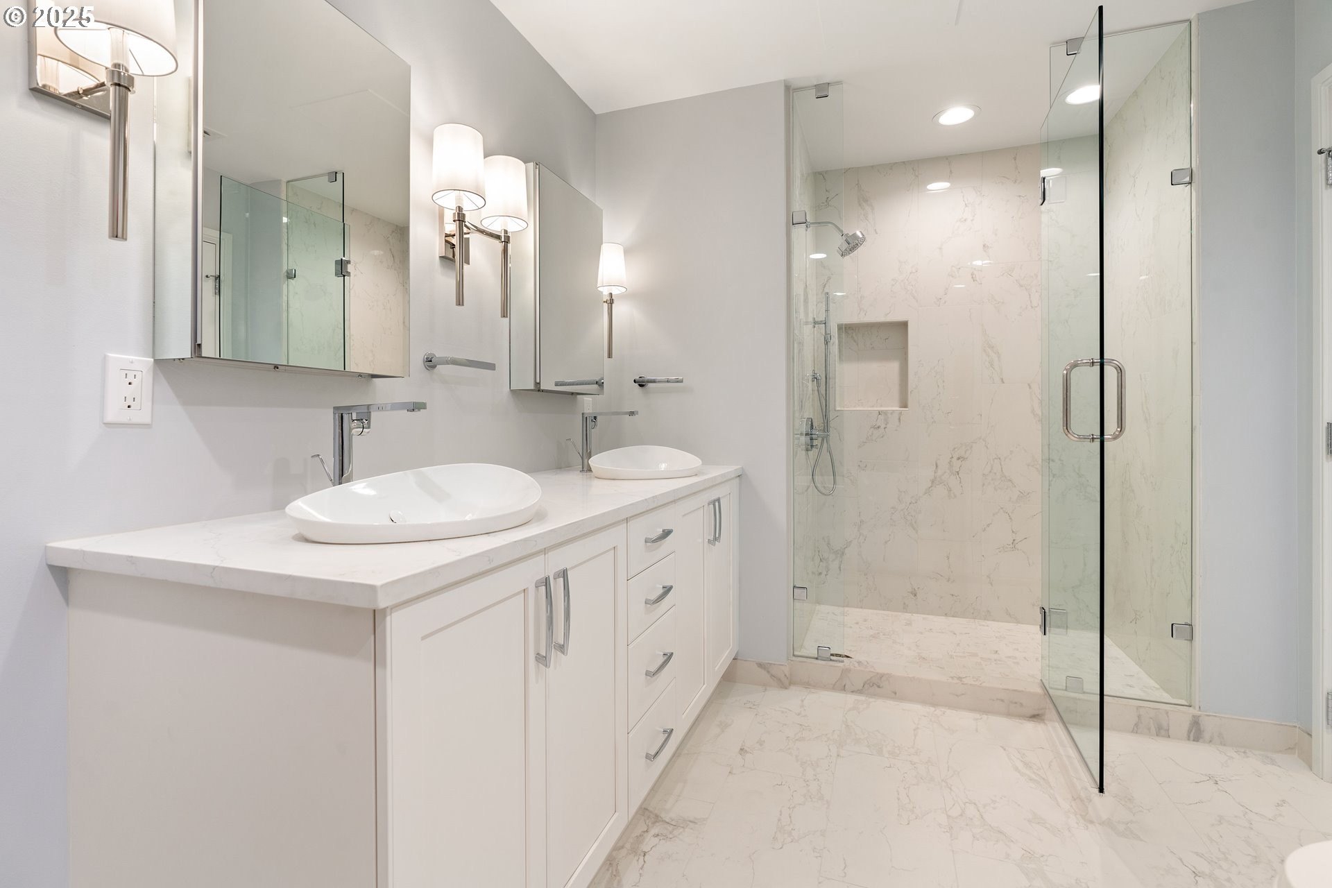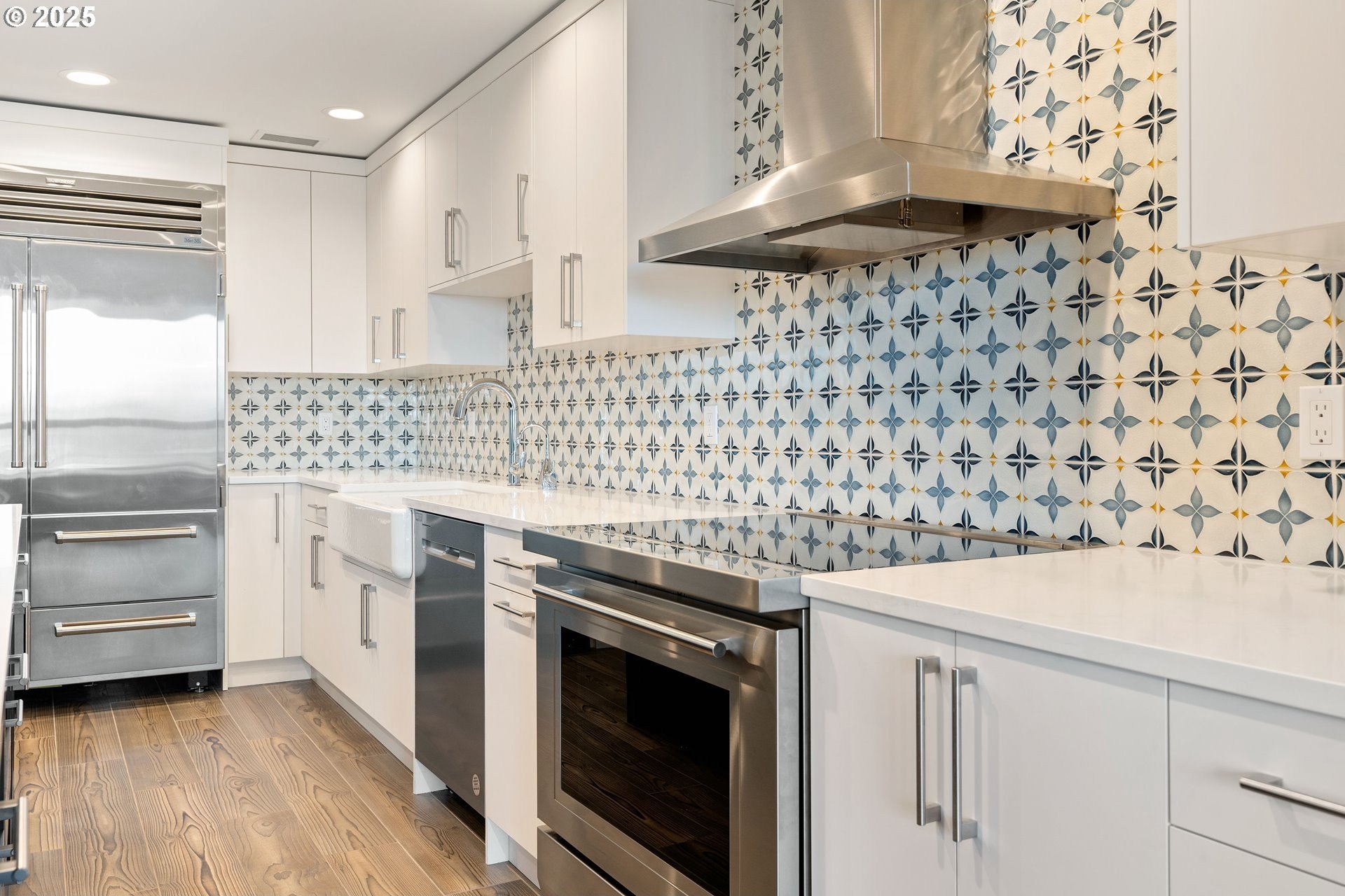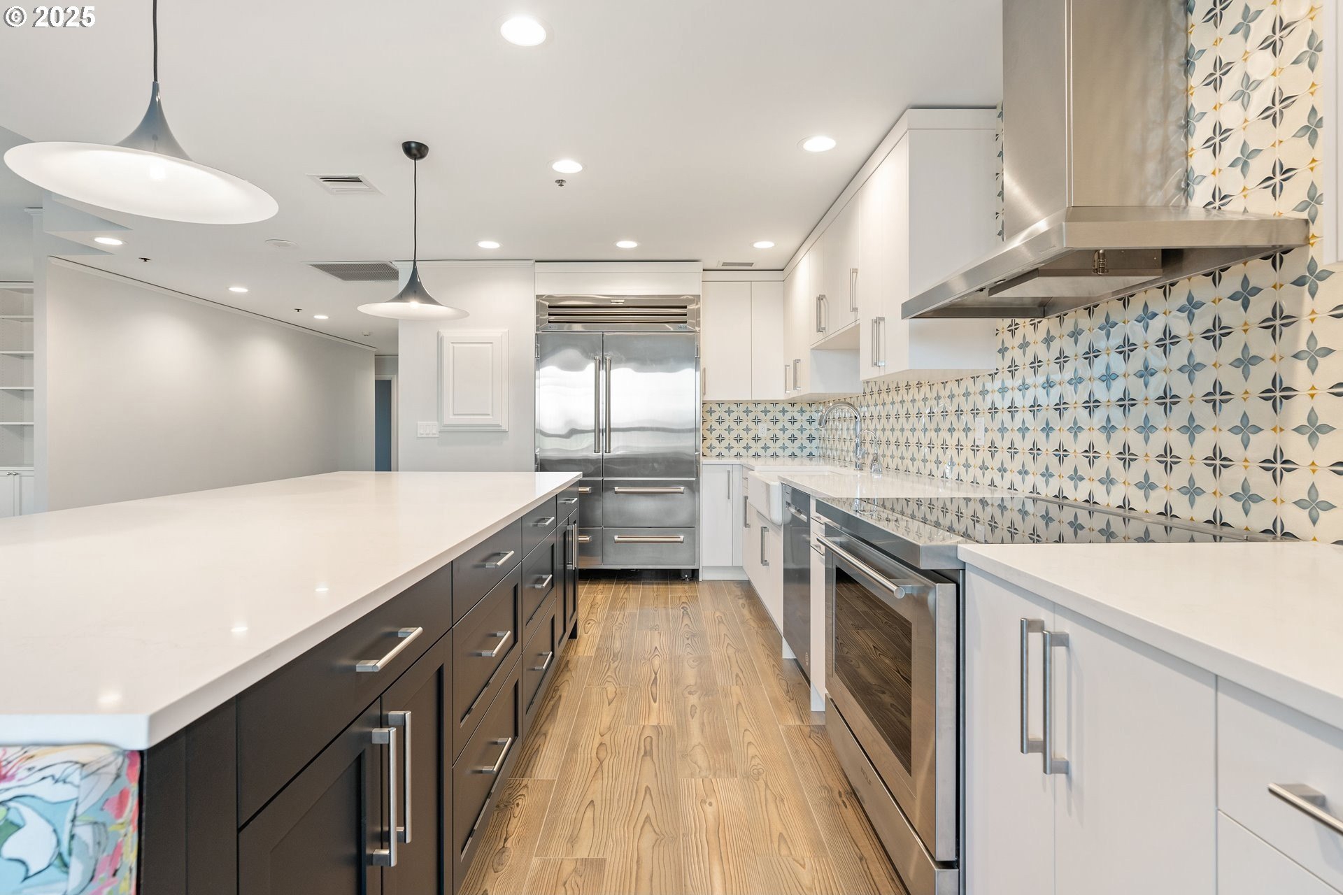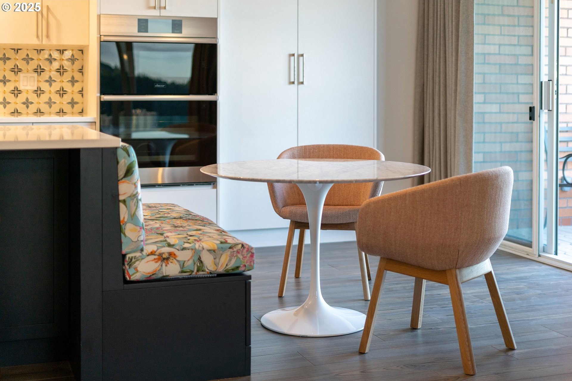 Perched high in the iconic KOIN Tower at Fountain Plaza, this extraordinary condominium offers an unparalleled sanctuary of refined luxury and breathtaking vistas. By day, gaze eastward to the majestic silhouette of Mt. Hood, where the sun rises in a symphony of golden hues, casting a radiant glow across the landscape. To the south, the serene Willamette River unfurls like a ribbon of liquid sapphire, its gentle currents reflecting the city's vibrant energy. As twilight descends, the scene transforms into a mesmerizing nightly view, with the Tilikum Crossing Bridge adorned in twinkling lights that dance upon the water like scattered diamonds.No expense has been spared in this meticulous full remodel-a pristine residence that has never been lived in since, awaiting its inaugural occupant. The kitchen stands as a masterpiece of culinary excellence, equipped with a 30" Dacor built-in oven, a commanding 48" Pro Sub-Zero refrigerator, and a precision-engineered 36" Wolf induction cooktop and extensive venting system. Exquisite fixtures elevate every detail: Kohler, Hubbardton Forge, and Victoria + Albert appointments grace the space with timeless sophistication. Plush upgraded carpeting underfoot and sumptuous wool draperies frame the expansive windows, ensuring both comfort and elegance.Residing within this secure concierge building evokes the prestige of a New York-style doorman enclave, where personalized service and unwavering privacy define the lifestyle. This is more than a home; it is an elevated realm of sophistication and serenity.