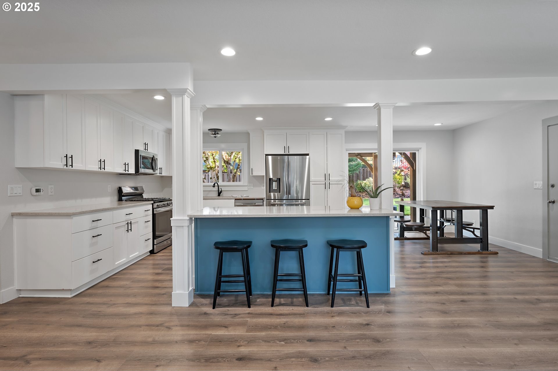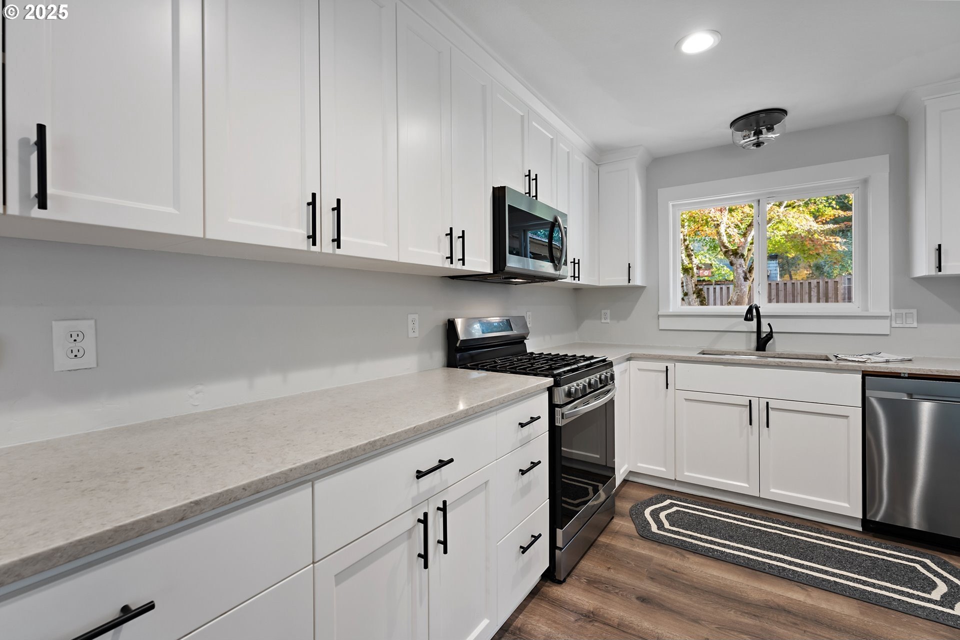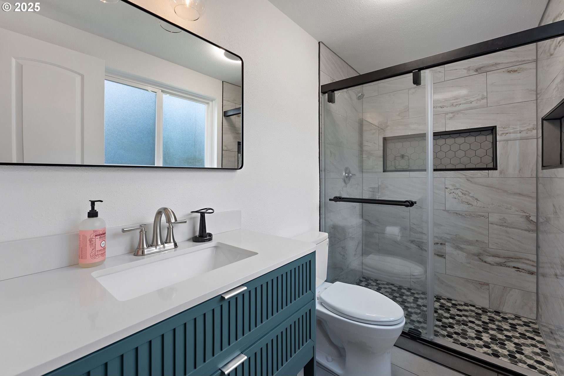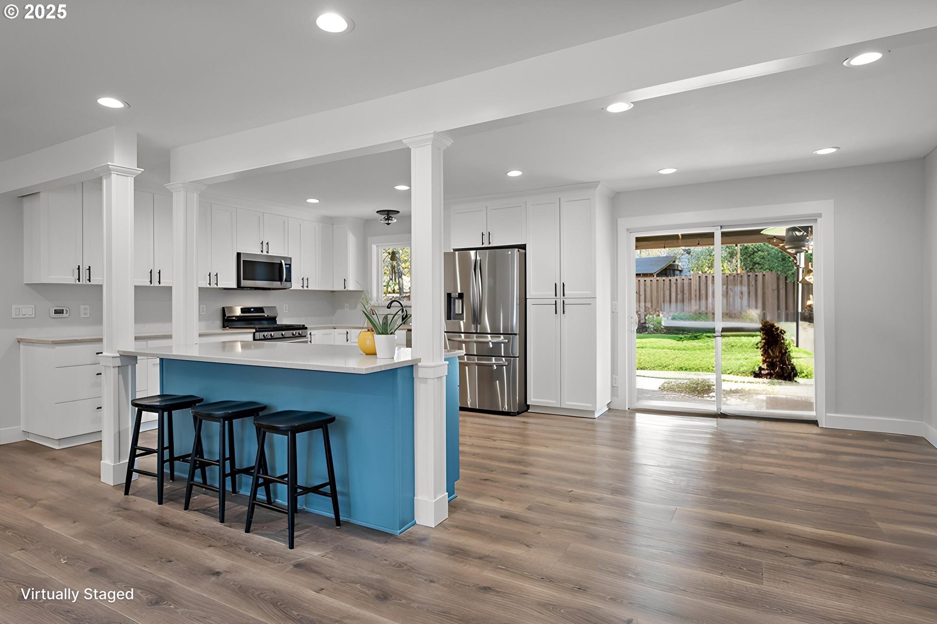 This beautifully updated home sits on a wonderful large fully fenced lot in VERY desirable Hyland Hills. Looking for ALL the updates to have been done already...You are Here! Large Great-Room with Open Plan Living/Dining & Kitchen flooded with natural light. Fully remodeled Kitchen w/Center Island, Loads of cabinets with a ton of storage & newer SS Appliances. Living Rm has wood burning fire, Dining has Big Slider to fabulous Gazebo Covered Patio...Perfect for outdoor entertaining. A few stairs up from main level to Primary Bedroom with lovely updated efficient attached bathroom, 2 further Bedrooms (Total of 3 up) & a beautiful, updated Guest Bathroom with Combo Tub/Shower. A few stairs down from main level to LARGE Family/Bonus Room, 4th Bedroom, Laundry & Full 3rd Bathroom. This level would make great Guest Suite or even multi-generation living as it has its own Entry/Exit door on to private patio. You will LOVE the fully fenced, level, landscaped backyard...perfect for summer entertaining, playing and restoration.Large level gravel paved RV/Trailer/Extra Park area is right off the Front Driveway. Garage is oversized and extra deep with built-in cabinets.LOVE where you live and LOVE your home and Neighborhood. This home and property will not disappoint...grab your Realtor and View today.