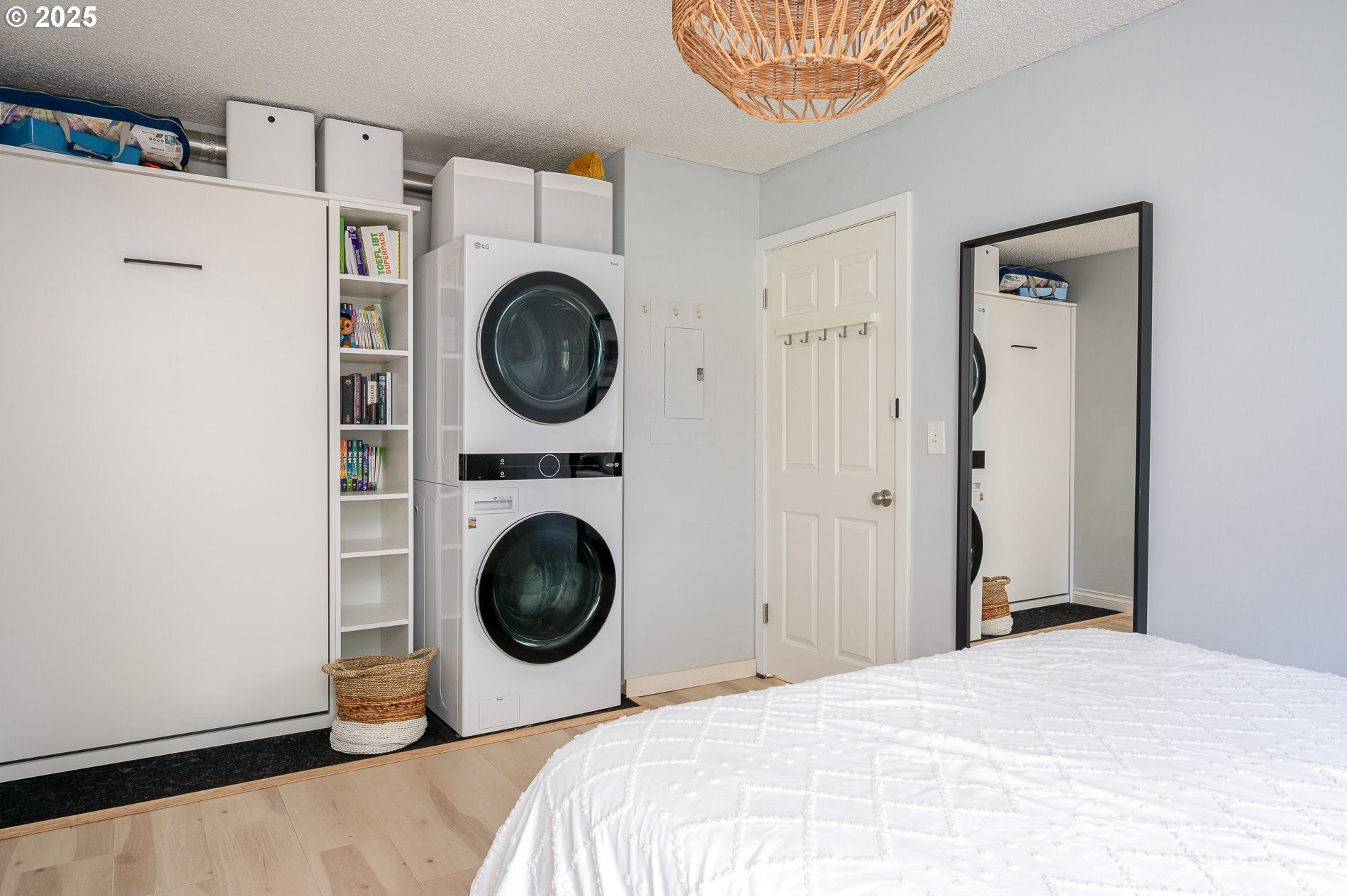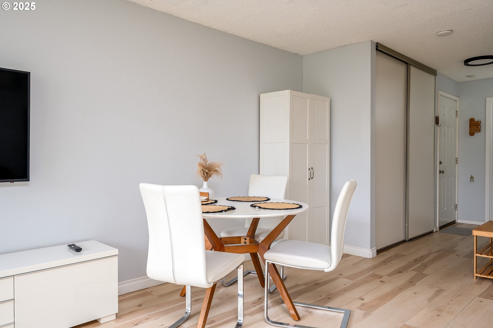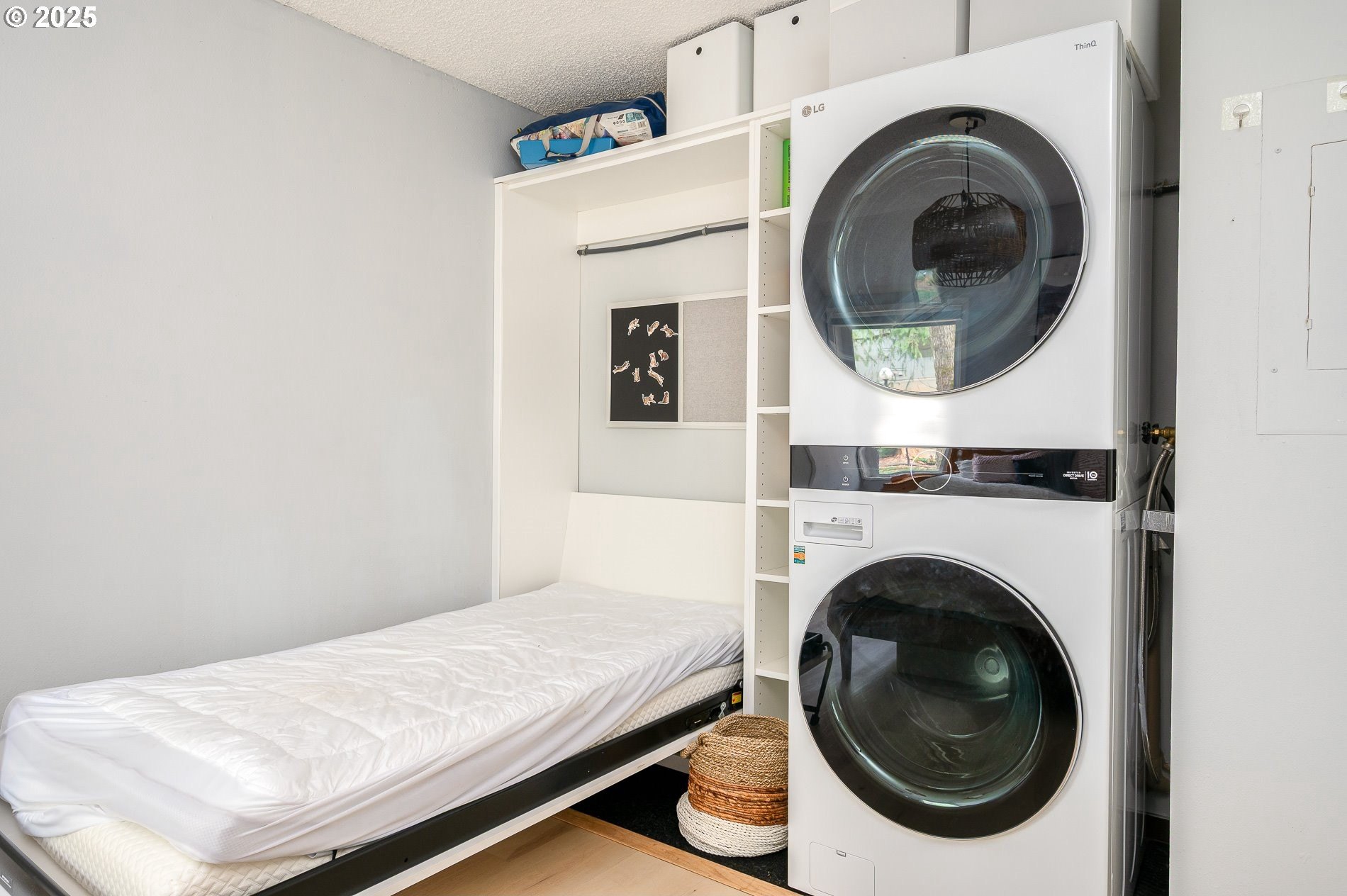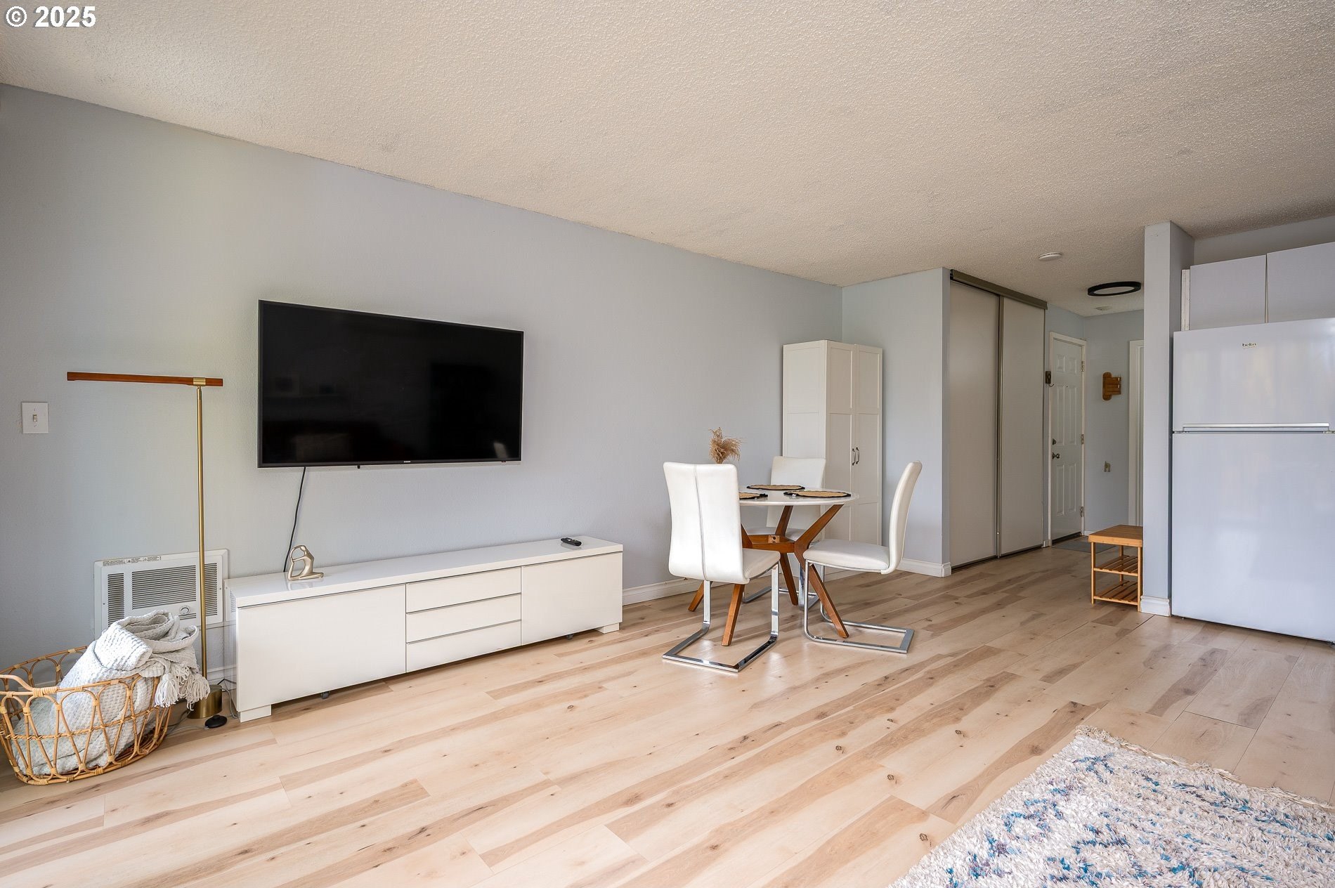 Building C - Unit 19 is a completely remodeled home featuring a brand-new kitchen with updated cabinets, quartz countertops, and backsplash, fresh interior paint, new plumbing, wide-plank laminate flooring throughout (no carpet), and a fully renovated bathroom. The bedroom includes a built-in Murphy bed, and this fresh, clean second-level unit offers direct street-level access with no stairs. A full wall of windows opens to a spacious balcony overlooking trees and green space. Enjoy all the Mt. Park amenities, including the Mt. Park Recreation Center, miles of walking trails, the Racquet Club, pools, a weight room, and a playground. The HOA has completed major exterior upgrades such as new windows, siding, paint, repaved parking lots, new walkways, and new railings, and the common areas have also been updated. 1 Carport is assigned to the unit, there is a monthly HOA, additional special assessment and a MT Park semi anual fee of $280.