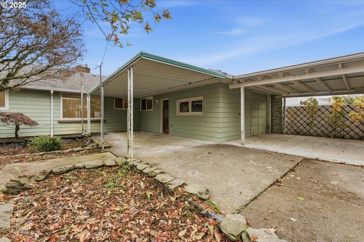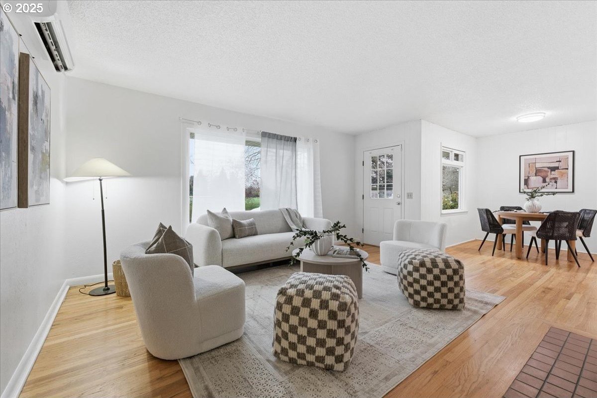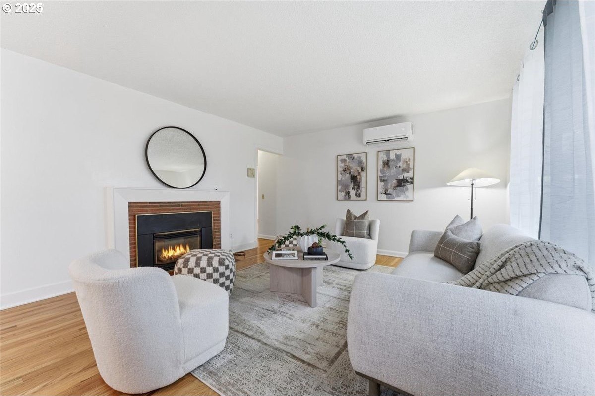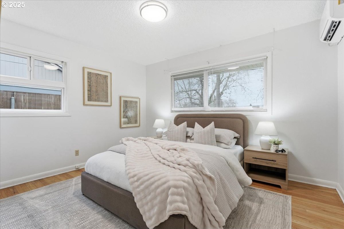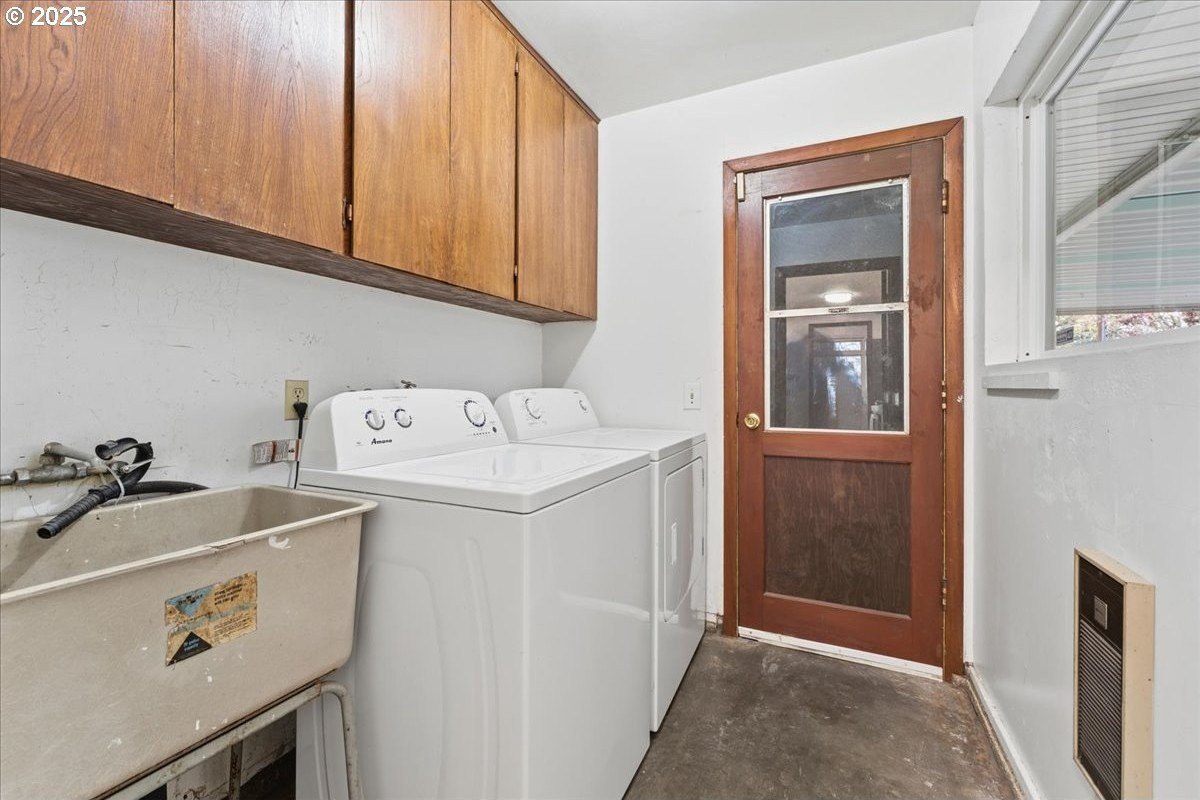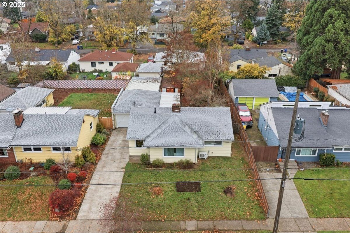 This cutie-pie 1953 one-level Bungalow is ready for your finishing touches and offers smart updates and character. Enjoy a refreshed galley kitchen with newly painted cabinetry, a brand-new fridge. Energy efficient mini-splits provide both heat and cooling, new light fixtures and double-pane vinyl windows throughout, and tankless hot water heater (energy score of 9/10!) Classic features like oak hardwood floors, a cozy wood-burning fireplace and original solid-core doors add charm. A separate laundry room with washer and dryer - included - keeps household noise out of your living space. The unique, DOUBLE OVERHEAD door garage to the backyard offers versatility for hobbyists and adventurers: complete with cabinets and shop space for art projects, car tinkering, camping gear, kayaks, or year-round indoor/outdoor entertaining. Outside, two covered patios, mature trees, and a fully fenced private yard are perfect for social gatherings year round. Located just 1 mile from hip restaurants, bars, boutiques, and Asian markets, and with bus service a quick 3-block stroll away, you'll love the convenience of Montavilla living. Come take a peek soon! [Home Energy Score = 9. HES Report