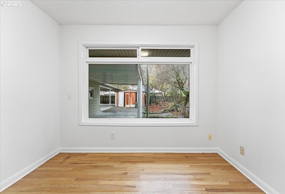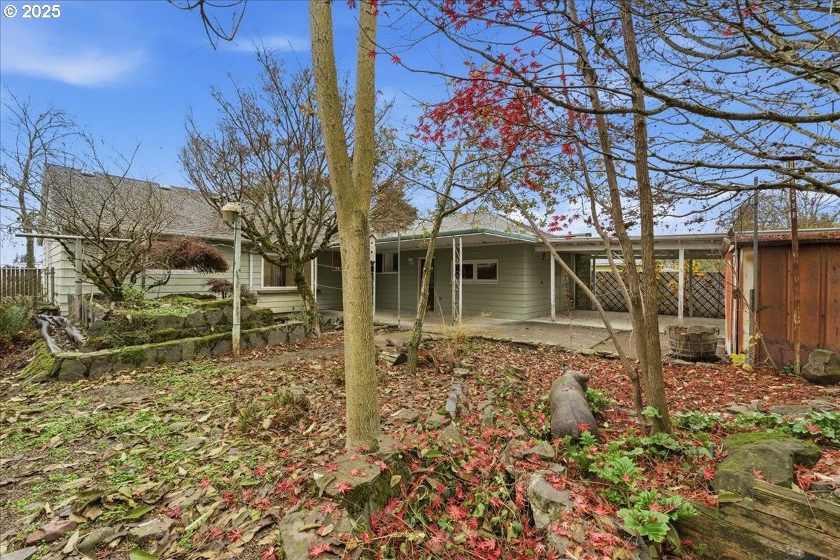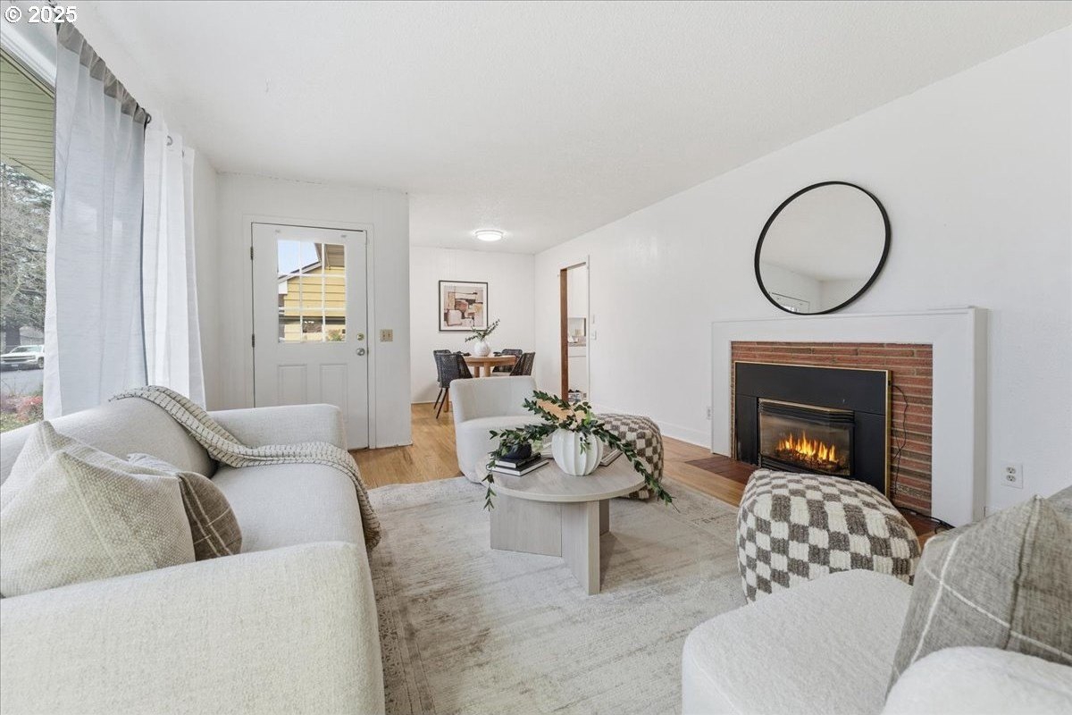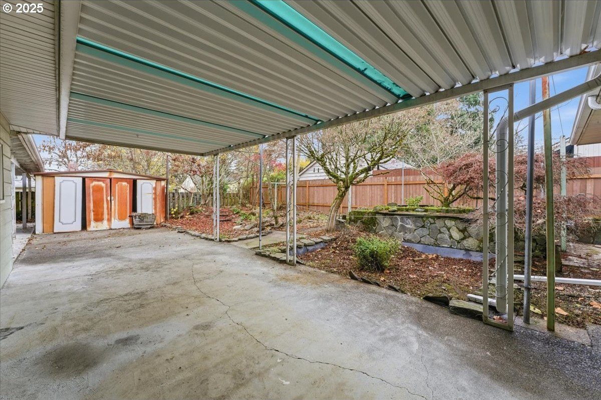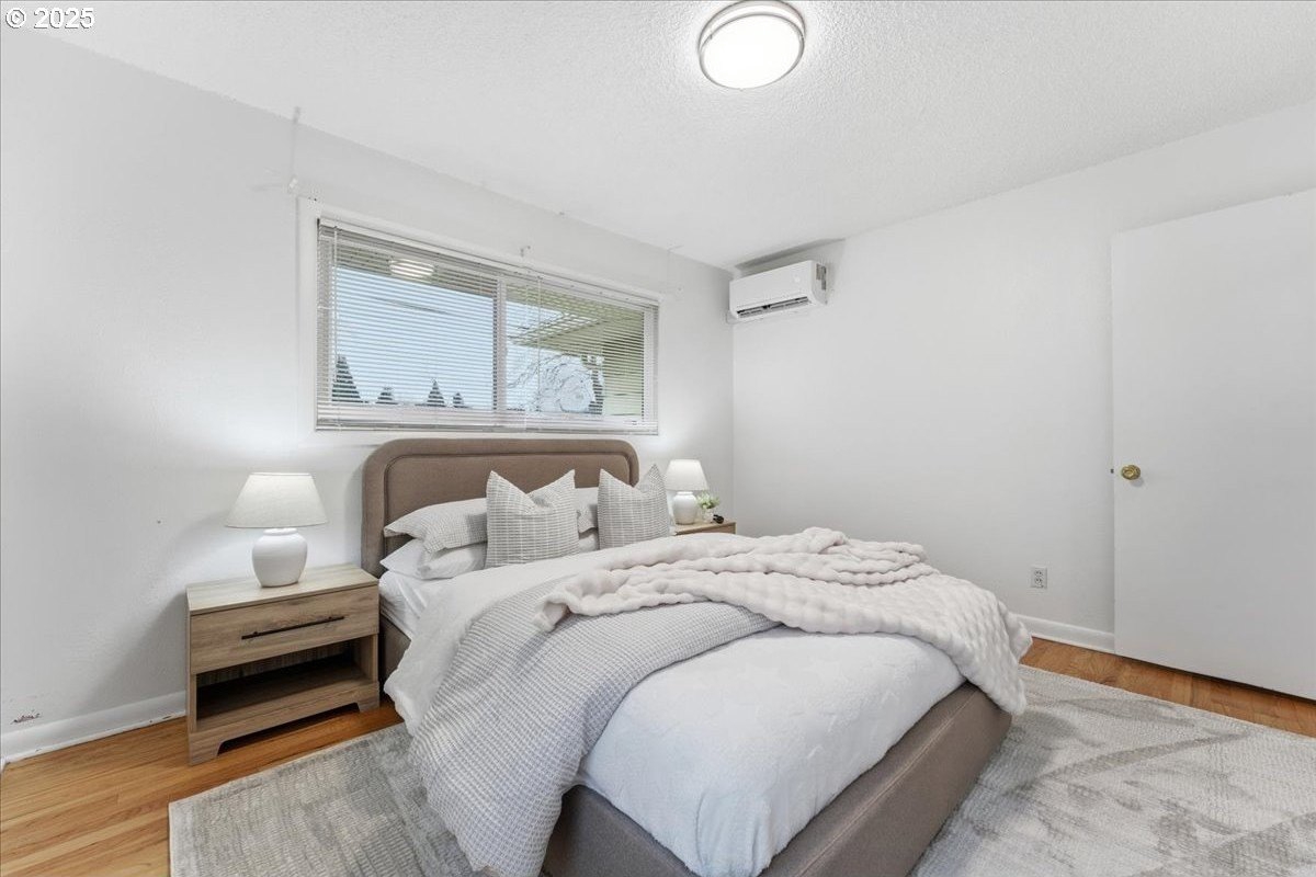 This cutie-pie 1953 one-level Bungalow is ready for your finishing touches and offers smart updates and character. Enjoy a refreshed galley kitchen with newly painted cabinetry, a brand-new fridge. Energy efficient mini-splits provide both heat and cooling, new light fixtures and double-pane vinyl windows throughout, and tankless hot water heater (energy score of 9/10!) Classic features like oak hardwood floors, a cozy wood-burning fireplace and original solid-core doors add charm. A separate laundry room with washer and dryer - included - keeps household noise out of your living space. The unique, DOUBLE OVERHEAD door garage to the backyard offers versatility for hobbyists and adventurers: complete with cabinets and shop space for art projects, car tinkering, camping gear, kayaks, or year-round indoor/outdoor entertaining. Outside, two covered patios, mature trees, and a fully fenced private yard are perfect for social gatherings year round. Located just 1 mile from hip restaurants, bars, boutiques, and Asian markets, and with bus service a quick 3-block stroll away, you'll love the convenience of Montavilla living. Come take a peek soon! [Home Energy Score = 9. HES Report