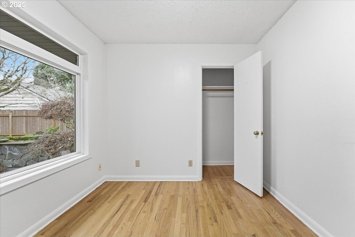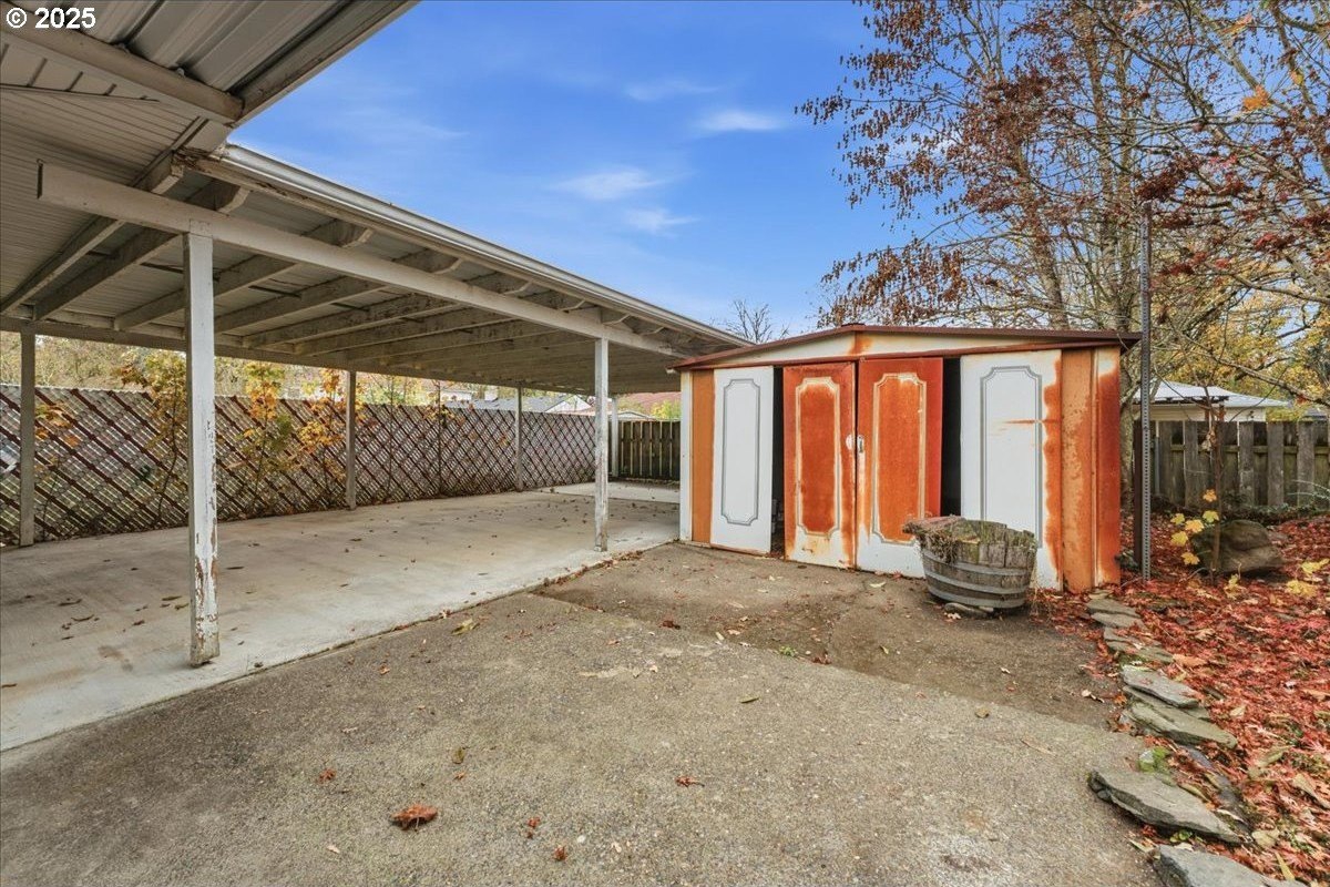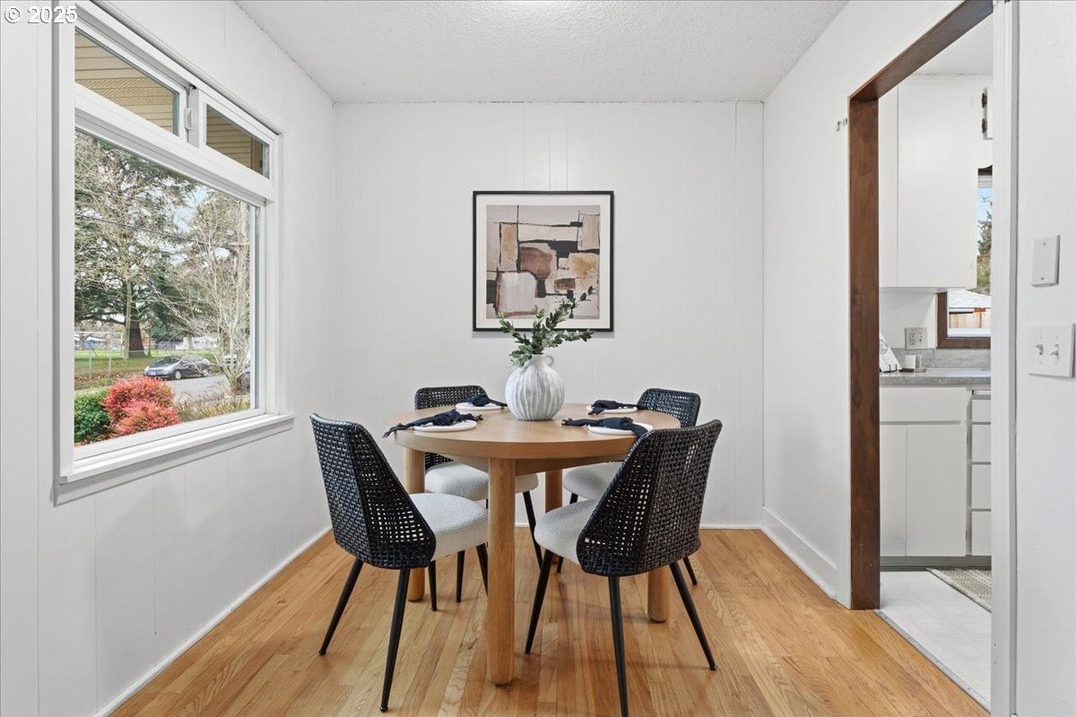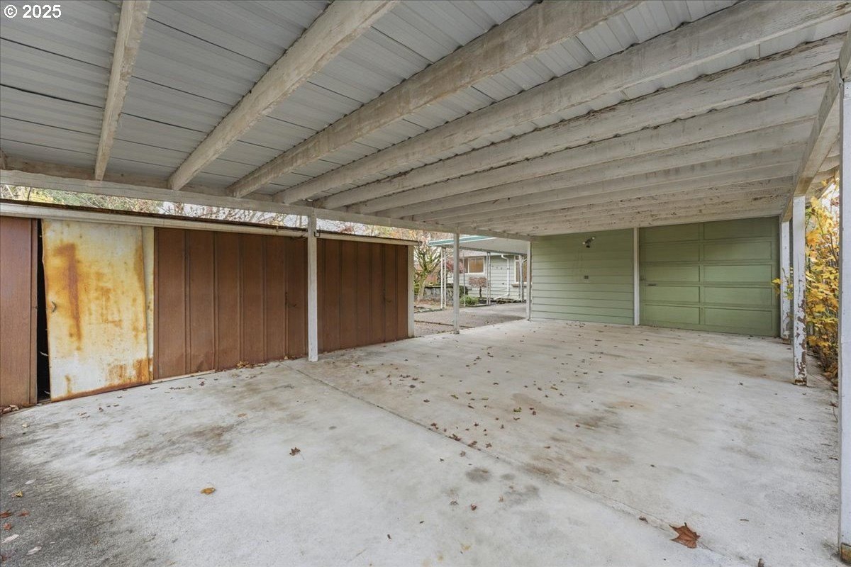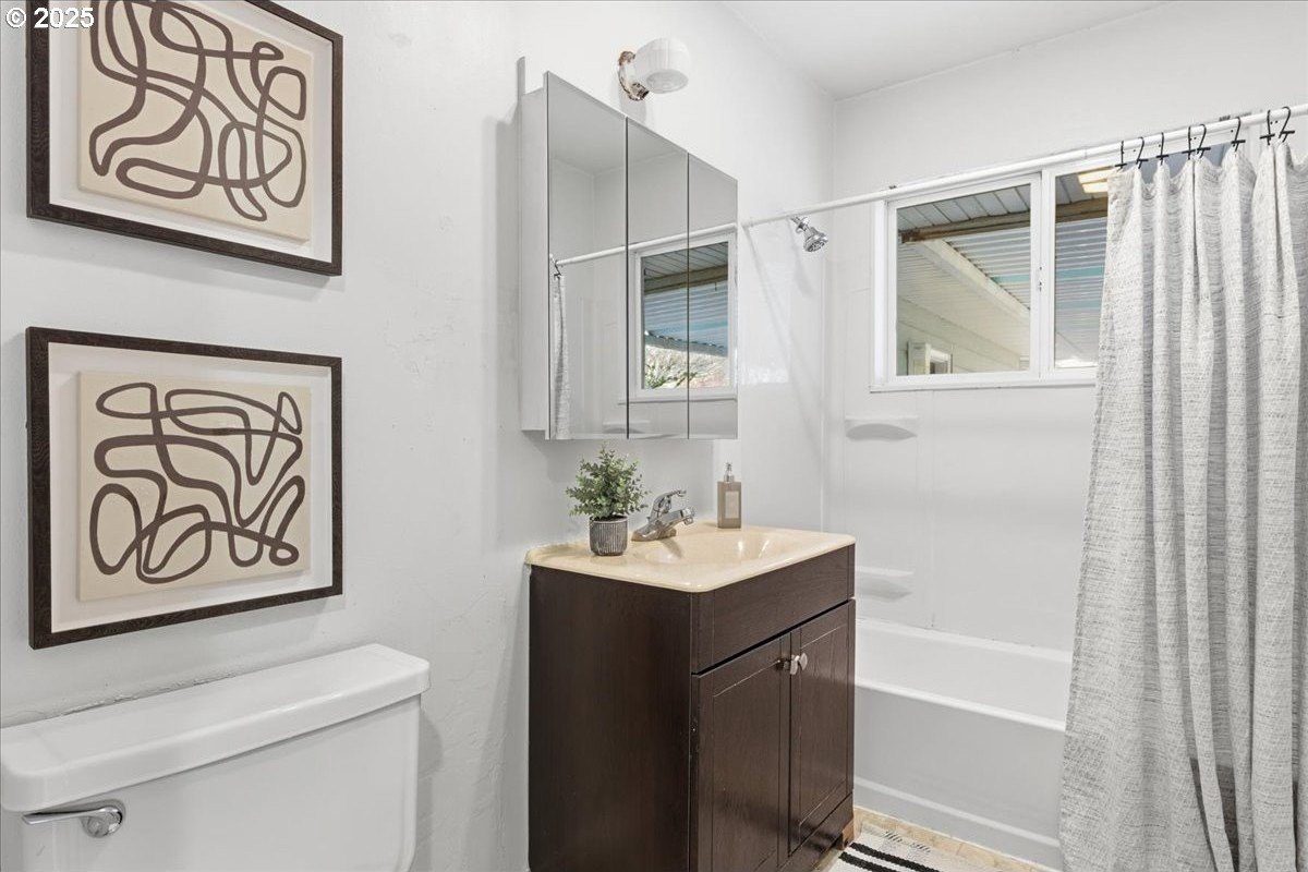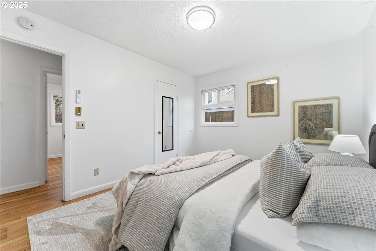 This cutie-pie 1953 one-level Bungalow is ready for your finishing touches and offers smart updates and character. Enjoy a refreshed galley kitchen with newly painted cabinetry, a brand-new fridge. Energy efficient mini-splits provide both heat and cooling, new light fixtures and double-pane vinyl windows throughout, and tankless hot water heater (energy score of 9/10!) Classic features like oak hardwood floors, a cozy wood-burning fireplace and original solid-core doors add charm. A separate laundry room with washer and dryer - included - keeps household noise out of your living space. The unique, DOUBLE OVERHEAD door garage to the backyard offers versatility for hobbyists and adventurers: complete with cabinets and shop space for art projects, car tinkering, camping gear, kayaks, or year-round indoor/outdoor entertaining. Outside, two covered patios, mature trees, and a fully fenced private yard are perfect for social gatherings year round. Located just 1 mile from hip restaurants, bars, boutiques, and Asian markets, and with bus service a quick 3-block stroll away, you'll love the convenience of Montavilla living. Come take a peek soon! [Home Energy Score = 9. HES Report