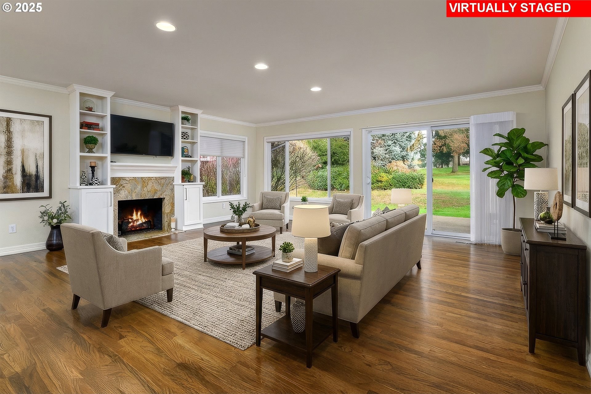 Beautifully updated single-level home in the heart of Charbonneau, offering an inviting open floor plan and thoughtfully designed living spaces. The spacious great room features a custom built-in fireplace system, ample room for both entertaining and everyday living, and expansive windows that capture stunning views of the golf course. The custom-designed kitchen is a true showpiece-complete with extensive built-in cabinetry, pantry, oversized granite island and buffet, high-end appliances, and a wine cooler. It flows seamlessly to the dining and living areas, making hosting effortless. Wake up each morning to serene golf course views from the great room or primary suite, which also offers generous closet. Both bedrooms are oversized and offer excellent storage, while additional closets throughout the home provide even more flexibility. The detached 2-car garage includes an additional designated golf cart garage, and ample guest parking is conveniently close by. Enjoy two fantastic outdoor living areas off the great room-perfect for relaxing, dining, or entertaining-along with a private front courtyard accessible through a slider from the breakfast nook. This home truly embodies the ease and comfortable living in Charbonneau.