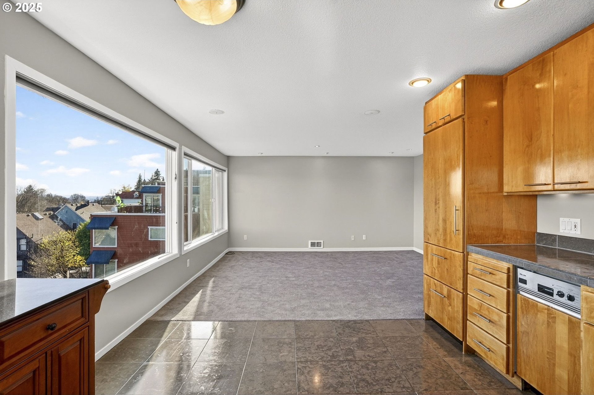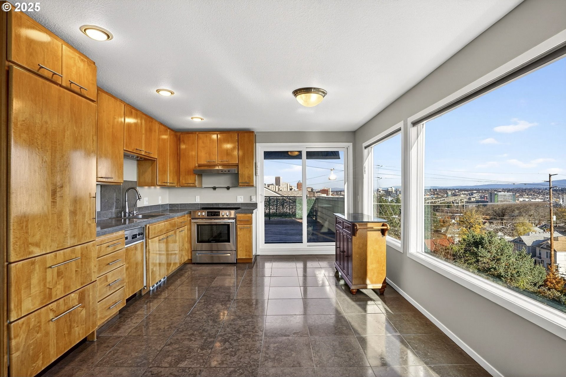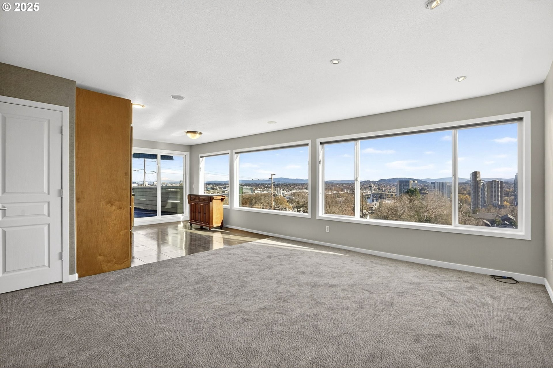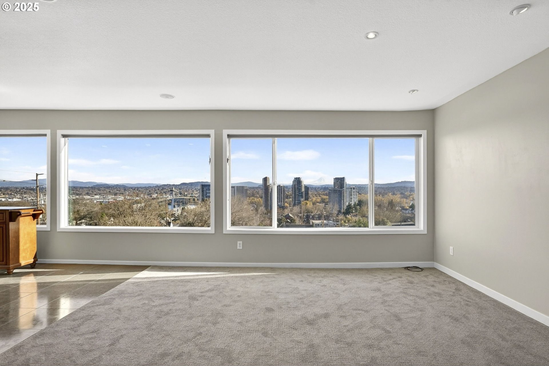Live your best Portland life in this cozy condo nestled in a wooded hillside with breathtaking views of downtown, Southeast Portland, the Cascade mountain range, and the Willamette river! Watch the sunrise from your living room and then step outside your door to explore all of the outdoor amenities that the Homestead/Lair Hill area offers. Discover old growth forests and city views by hiking or biking the trails of the Terwilliger Parkway and Marquam Nature Park. Entertain friends and family on your private 384 square foot deck with one of the best views in the city. The open floor plan with lots of windows allows you to fully immerse yourself in this spectacular setting. This unit has fresh paint, new carpeting, and a stacking washer/dryer unit that provides much-needed convenience. The kitchen features slate flooring, a built-in Subzero refrigerator, a Miele dishwasher and a stainless-steel range. Play your favorite beats on the Bose speakers in the ceiling and an additional speaker on the deck. The complex has recently undergone a complete exterior renovation including new siding, exterior paint, vinyl windows and doors. The HOA is currently in the process of replacing the decks and awnings and this unit is on the replacement list. This condo includes an assigned parking spot and a storage unit. Fantastic location just minutes from OHSU, the South Waterfront, downtown, and quick access to I-5, 405, and highway 26. Walk score of 73 and bike score of 69.