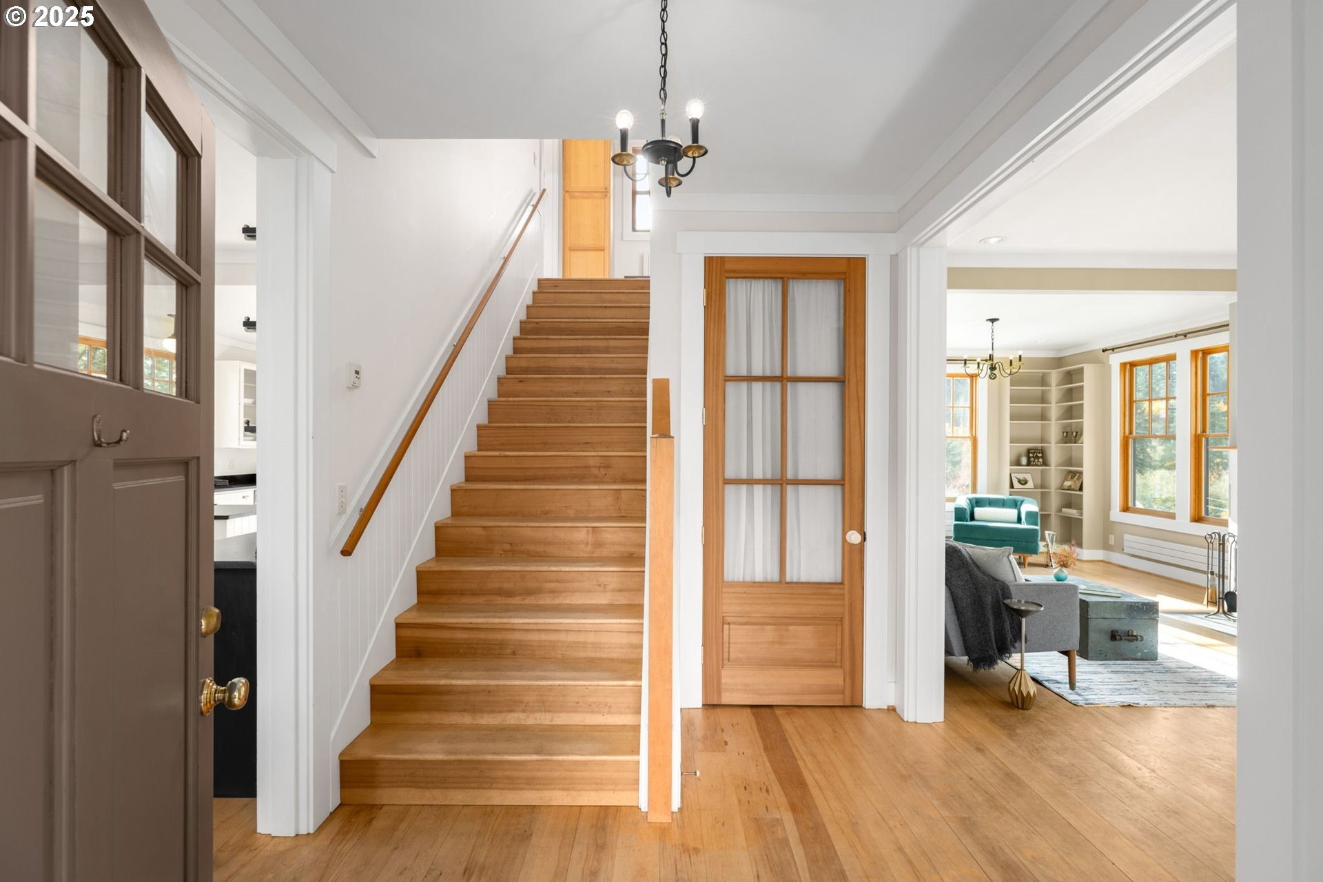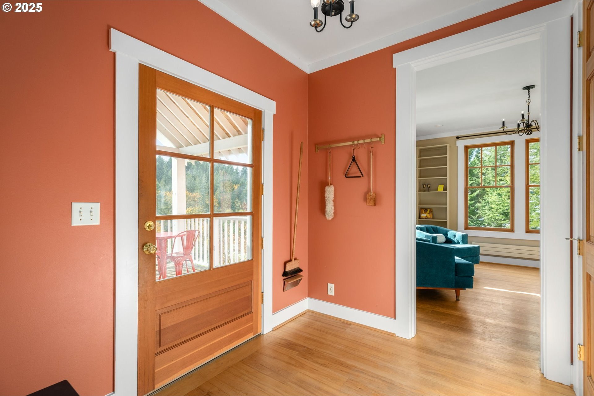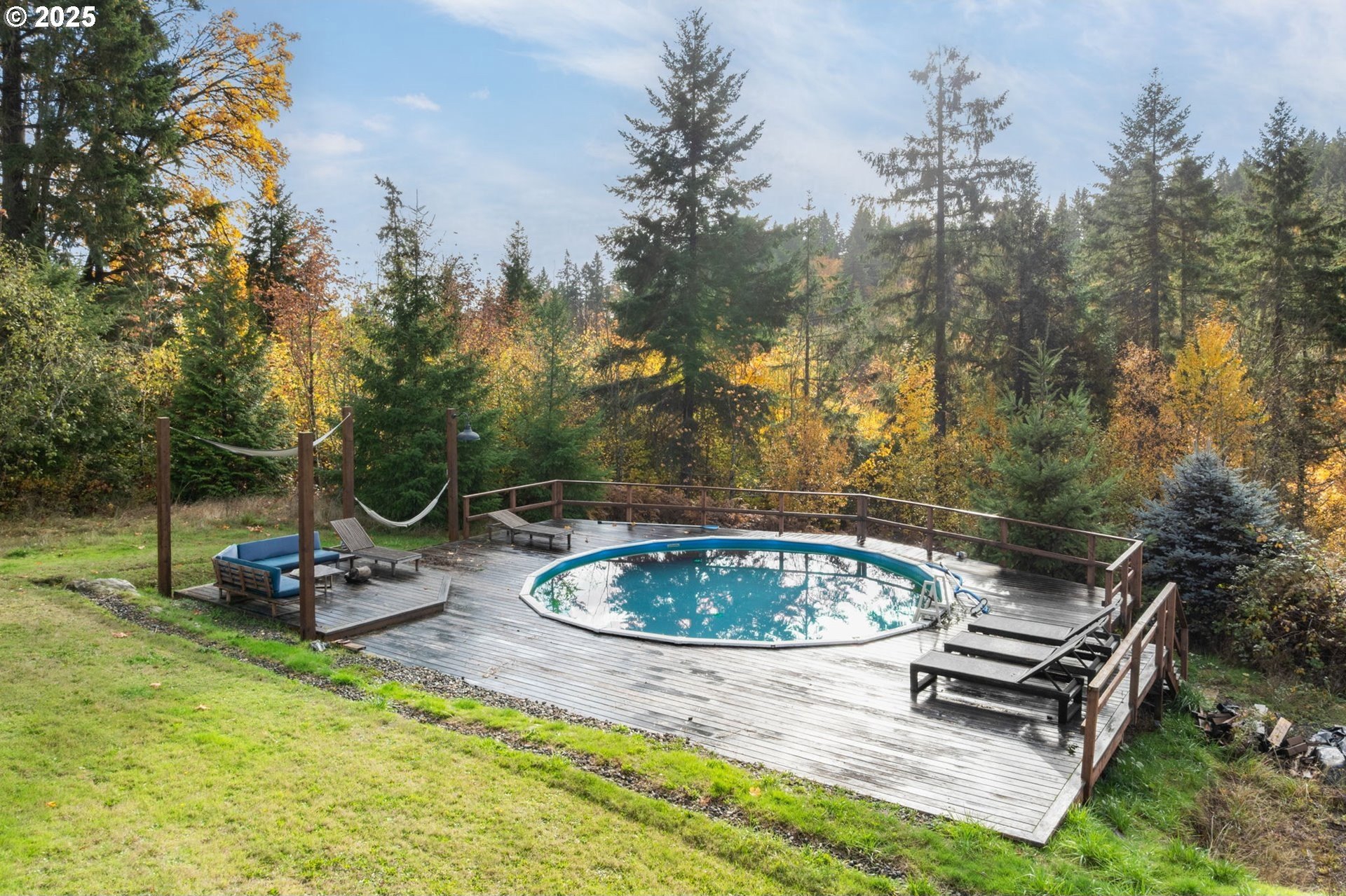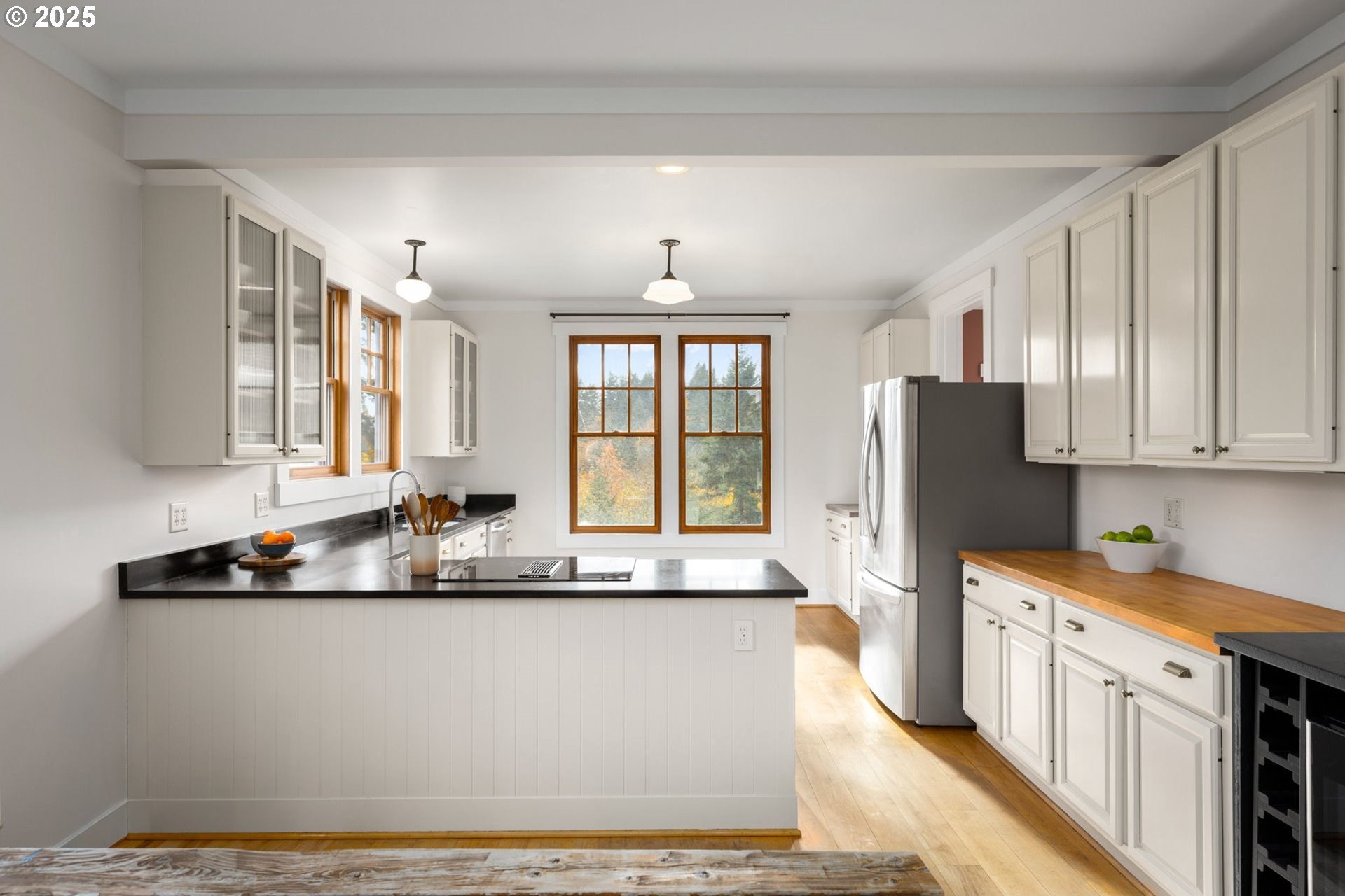 Custom designed, New England style farmhouse perfectly positioned on two acres with tranquil view of gorgeous rolling country hills. This stunning home features wide plank hardwood floors, high ceilings, heated floors, and radiant heat. Kitchen features combination of butcher block and granite counters. Dining room adjacent to kitchen could also function as a family room. Wood burning fireplace in the living room with floor to ceiling bookshelves. Upstairs are three generously sized bedrooms with lovely high ceilings. Primary suite with clawfoot tub, walk-in shower, and double sinks. Downstairs is the perfect all purpose room! Painted concrete floors make for multi-purpose space... set up a family room, office area, or work out room. The park-like yard features a deer-proof garden area (because there are always deer nearby), large pool with deck, storage shed, and more! MUST SEE!