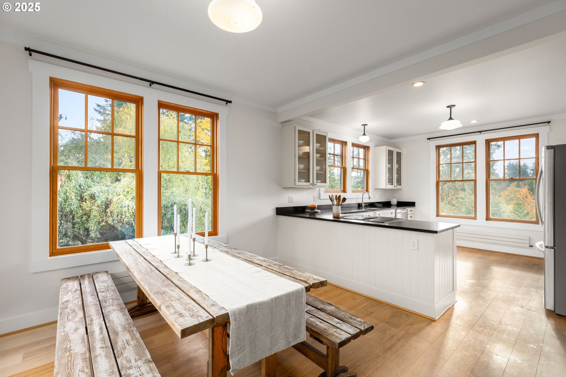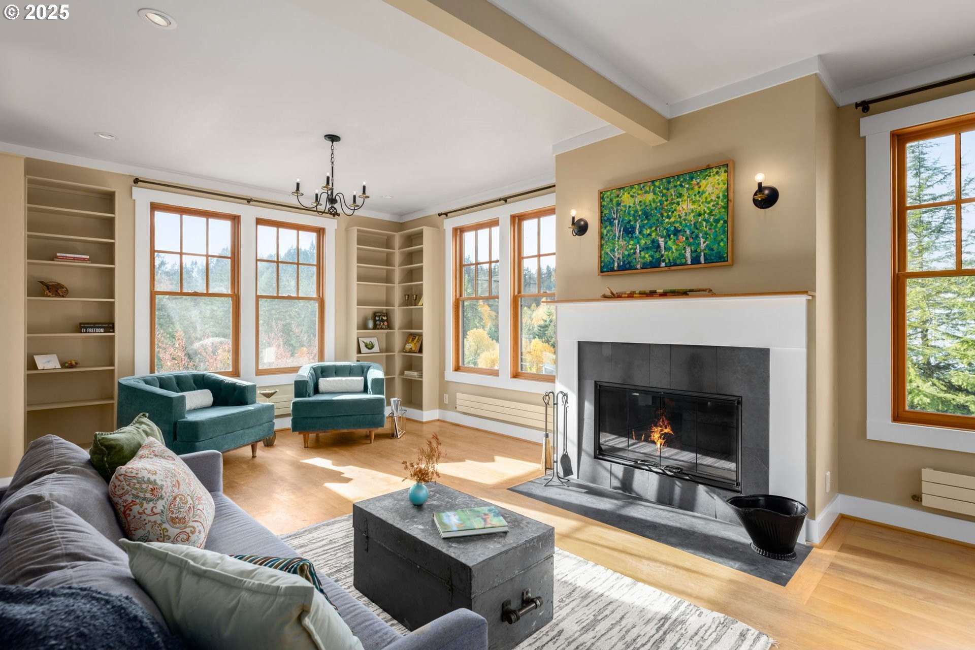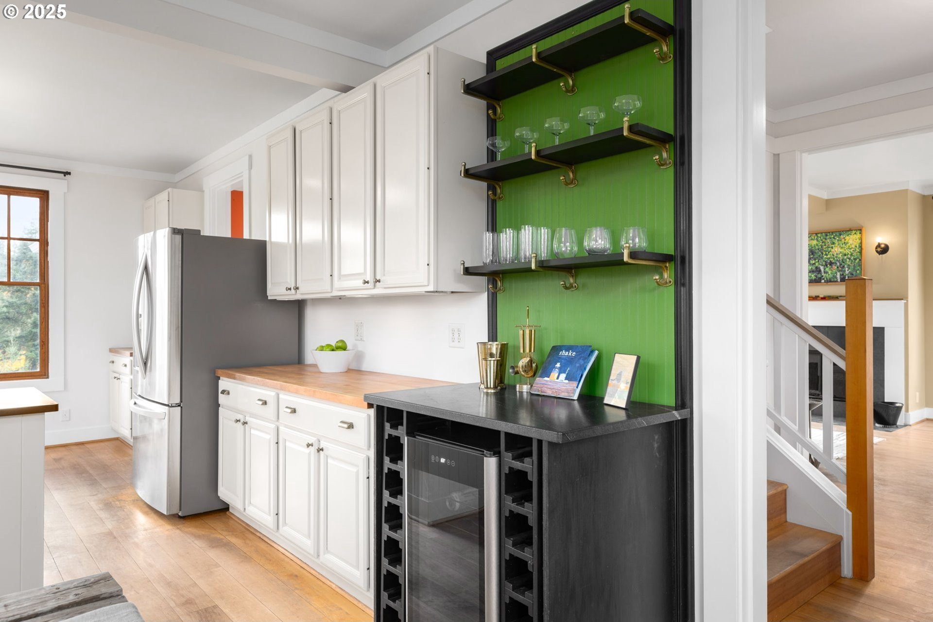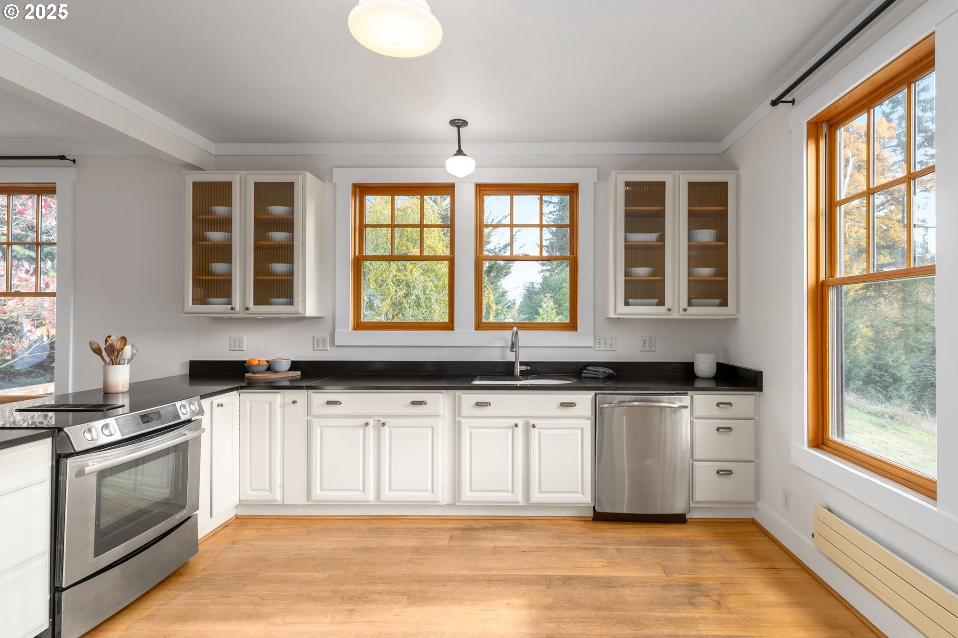Custom designed, New England style farmhouse perfectly positioned on two acres with tranquil view of gorgeous rolling country hills. This stunning home features wide plank hardwood floors, high ceilings, heated floors, and radiant heat. Kitchen features combination of butcher block and granite counters. Dining room adjacent to kitchen could also function as a family room. Wood burning fireplace in the living room with floor to ceiling bookshelves. Upstairs are three generously sized bedrooms with lovely high ceilings. Primary suite with clawfoot tub, walk-in shower, and double sinks. Downstairs is the perfect all purpose room! Painted concrete floors make for multi-purpose space... set up a family room, office area, or work out room. The park-like yard features a deer-proof garden area (because there are always deer nearby), large pool with deck, storage shed, and more! MUST SEE!