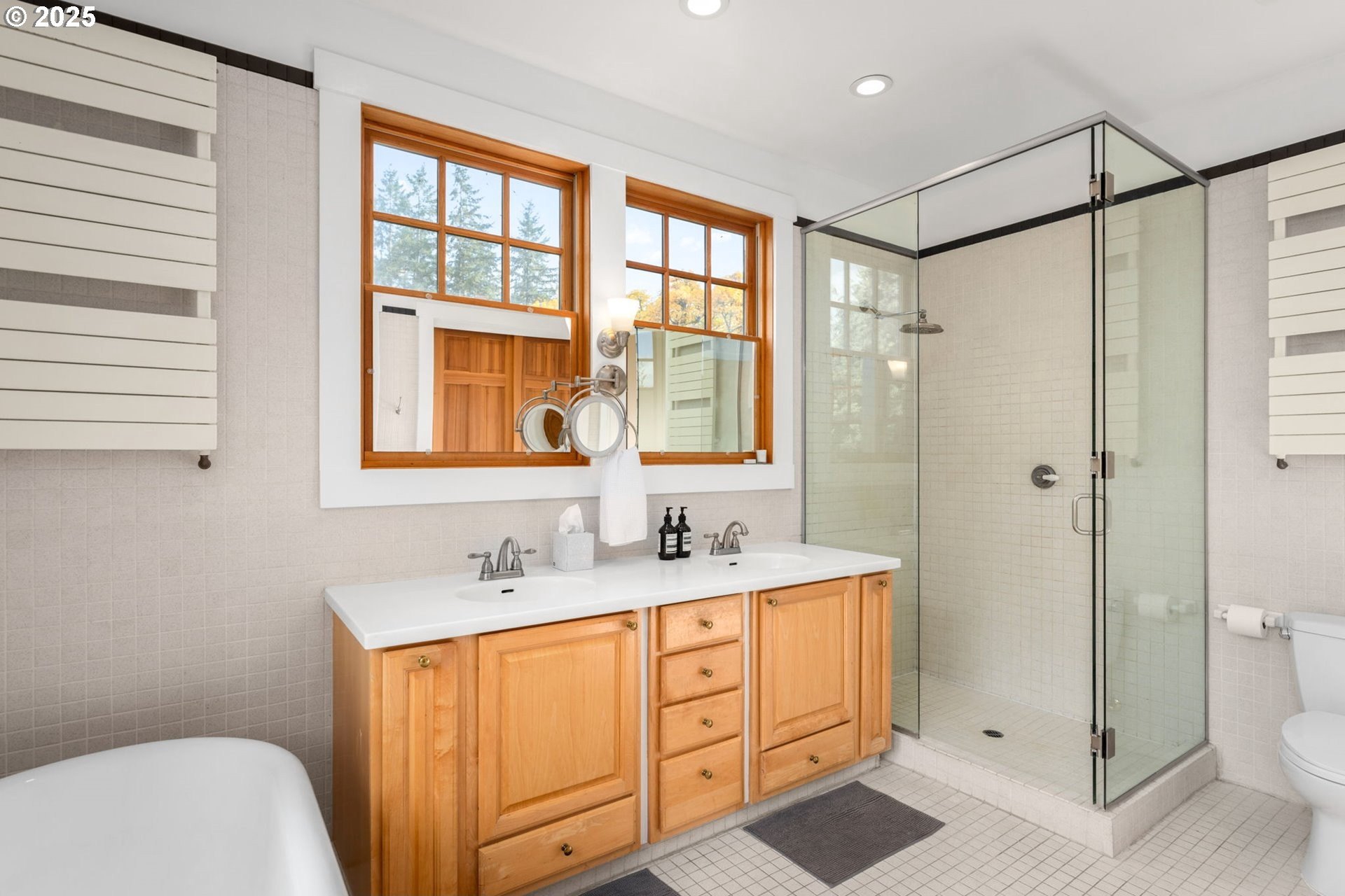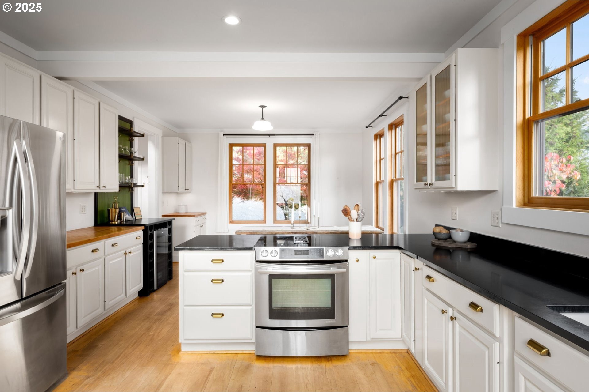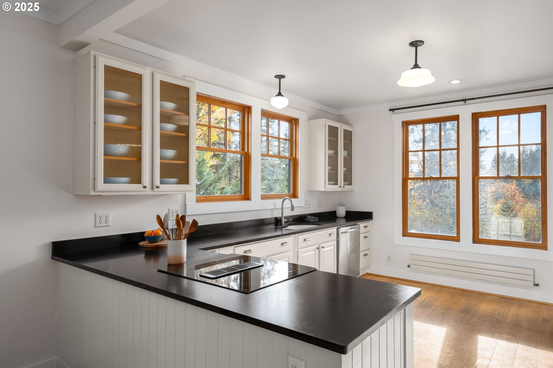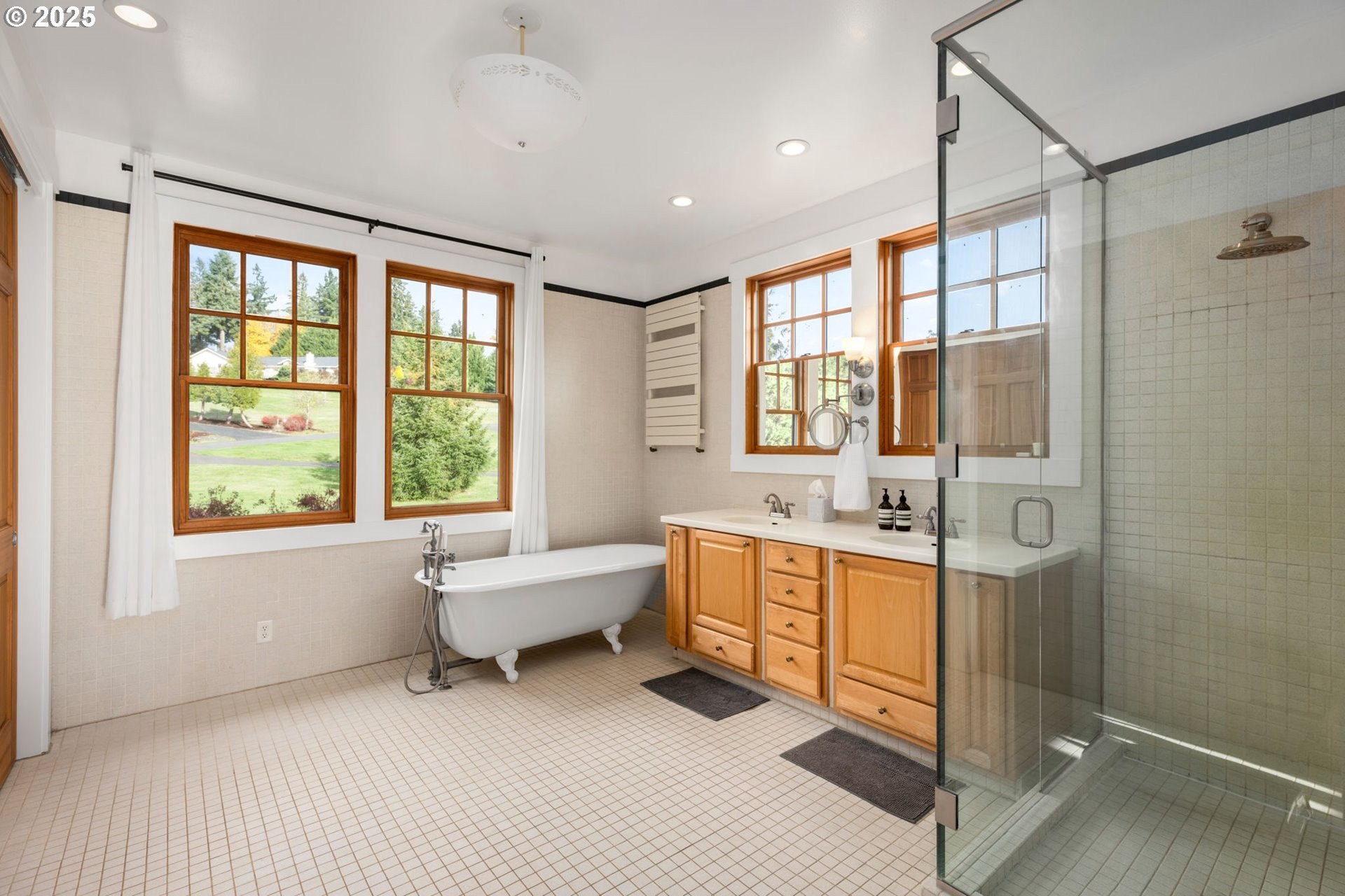 Custom designed, New England style farmhouse perfectly positioned on two acres with tranquil view of gorgeous rolling country hills. This stunning home features wide plank hardwood floors, high ceilings, heated floors, and radiant heat. Kitchen features combination of butcher block and granite counters. Dining room adjacent to kitchen could also function as a family room. Wood burning fireplace in the living room with floor to ceiling bookshelves. Upstairs are three generously sized bedrooms with lovely high ceilings. Primary suite with clawfoot tub, walk-in shower, and double sinks. Downstairs is the perfect all purpose room! Painted concrete floors make for multi-purpose space... set up a family room, office area, or work out room. The park-like yard features a deer-proof garden area (because there are always deer nearby), large pool with deck, storage shed, and more! MUST SEE!