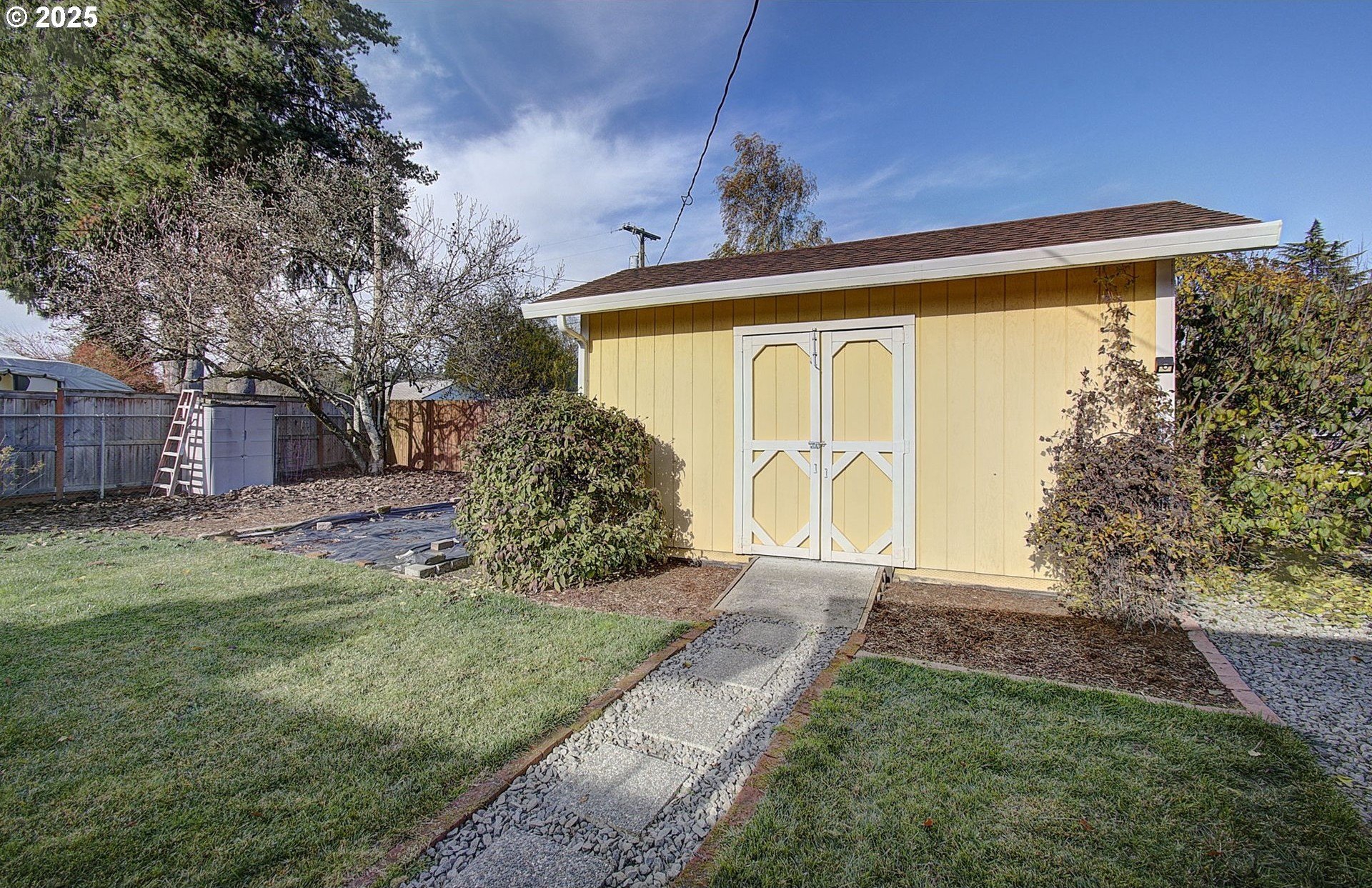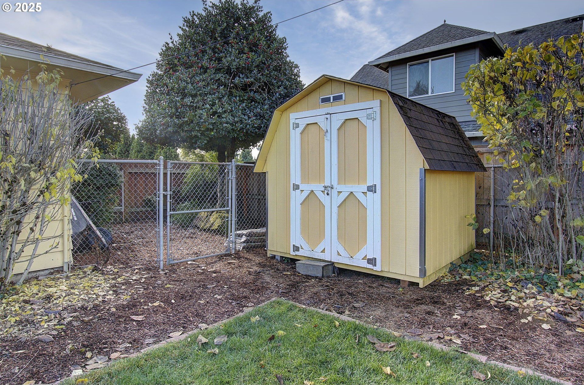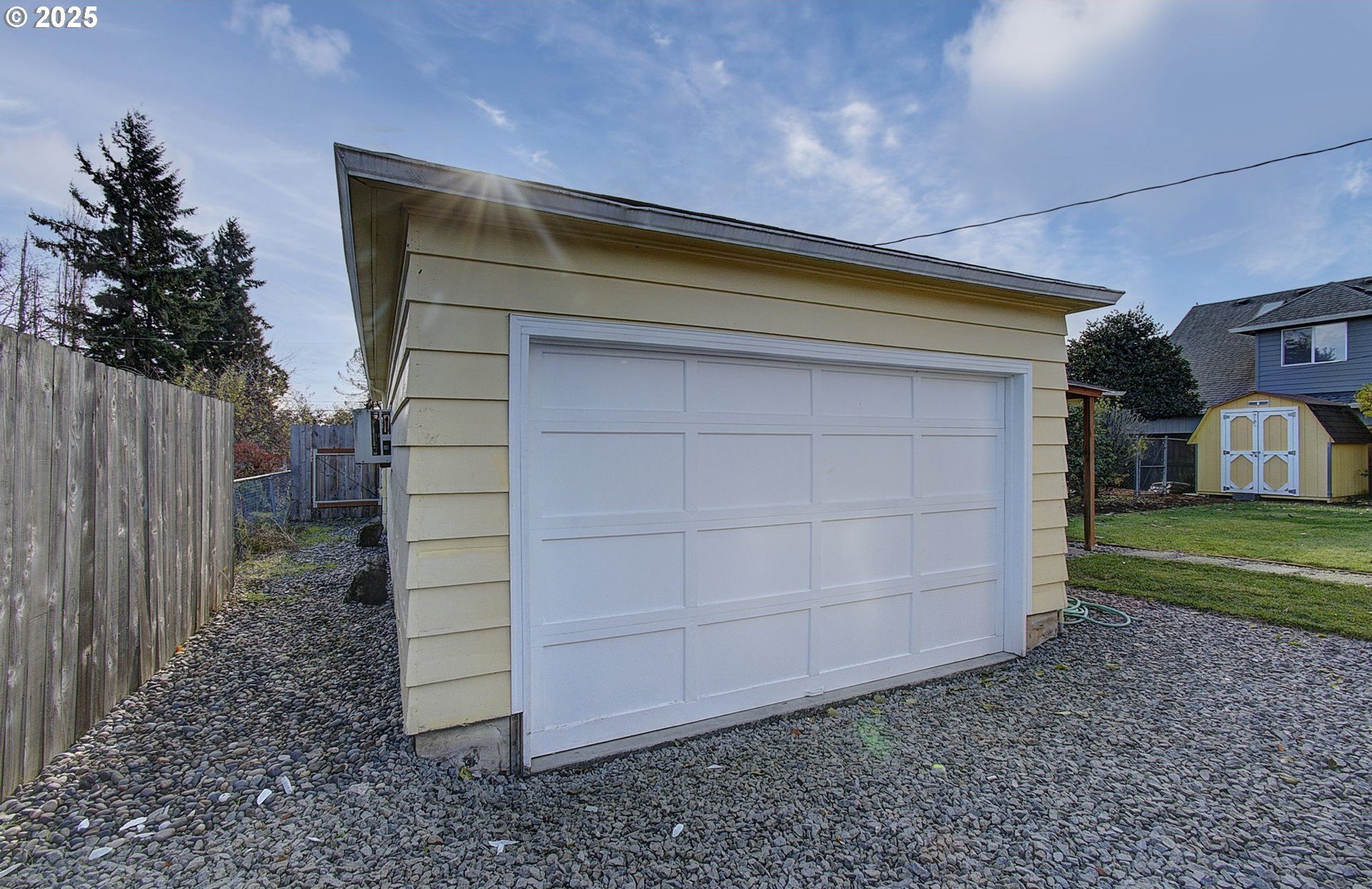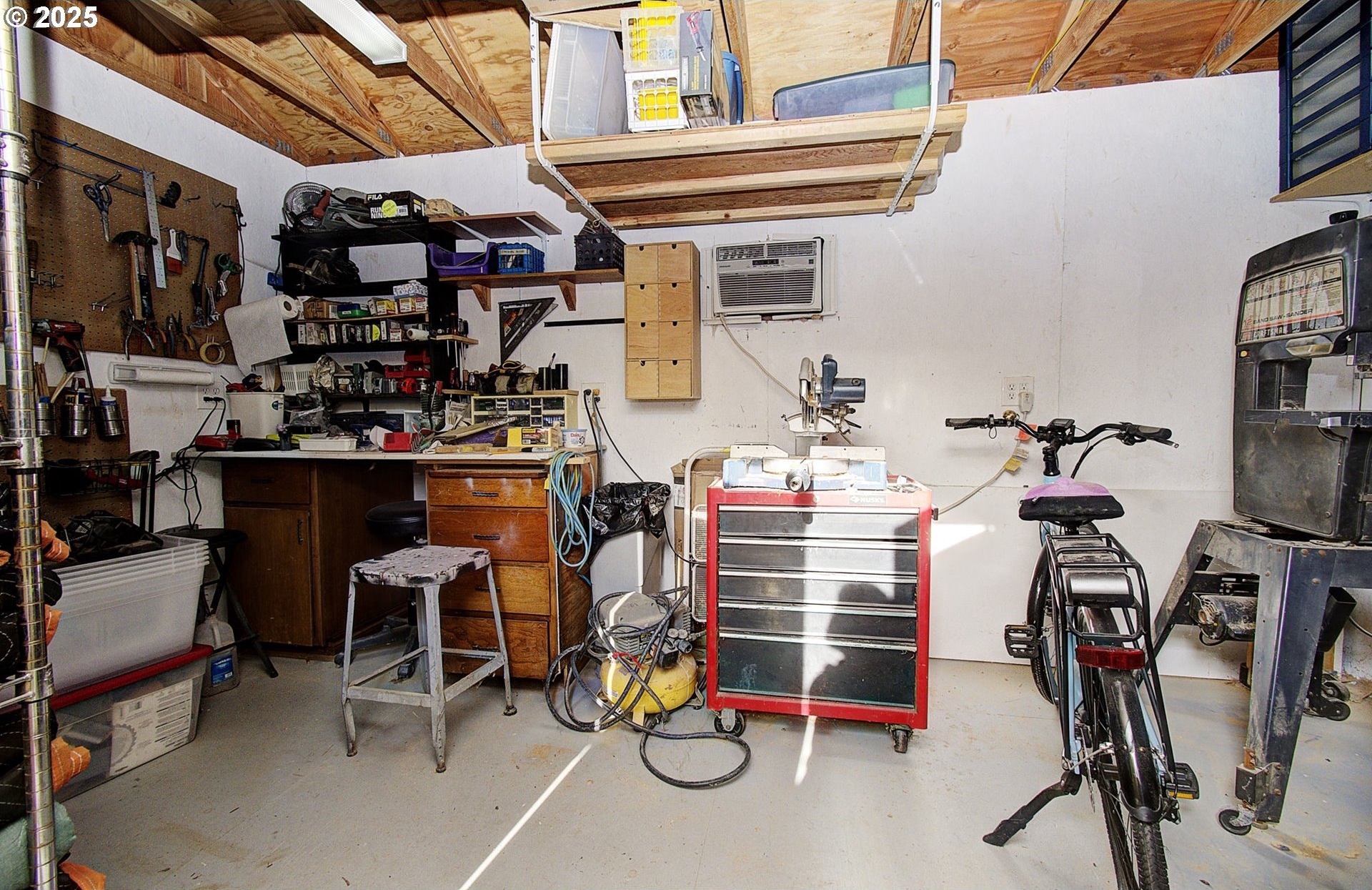 This great home is a hidden gem! Its large windows provide lots of natural light and there are beautiful hardwood floors throughout the main floor. It features granite counters in kitchen, remodeled bathroom, electric upgraded and panel replaced, house replumbed, roof replaced and freshly painted kitchen. Finished basement includes family room with wood burning fireplace, 3rd bedroom, bathroom with shower, laundry room and plenty of storage area. Great sized, fully fenced backyard with dog run. 2.5 tandem garage with insulated walls & ceiling,forced air heat, A/C unit and convenient dual doors. 5' x 8' storage unit. The 12' x 16' workshop has insulated walls, A/C unit & electric sub-panel and is limited only by your imagination and could be the perfect workshop, office, craft or workout room.