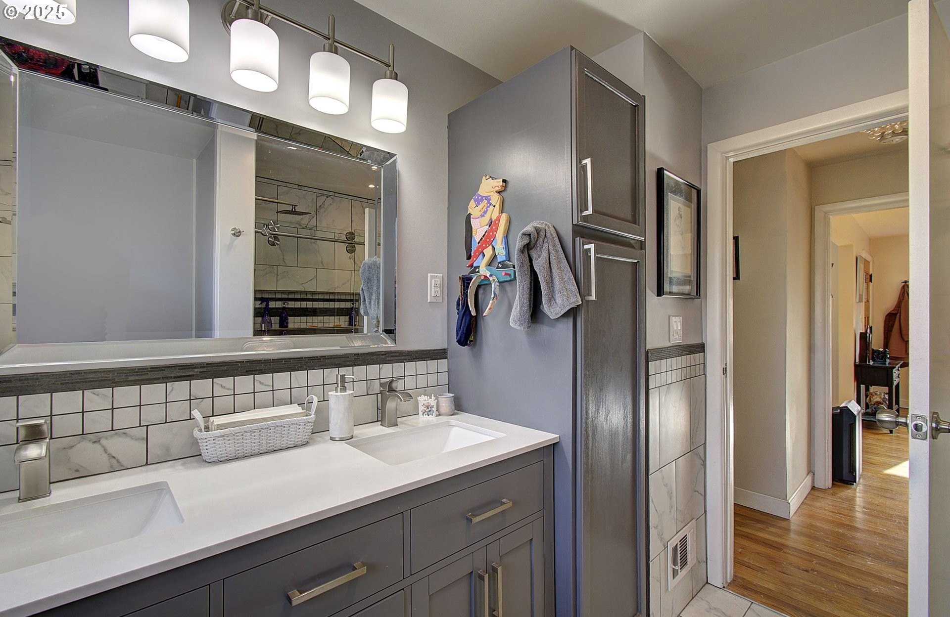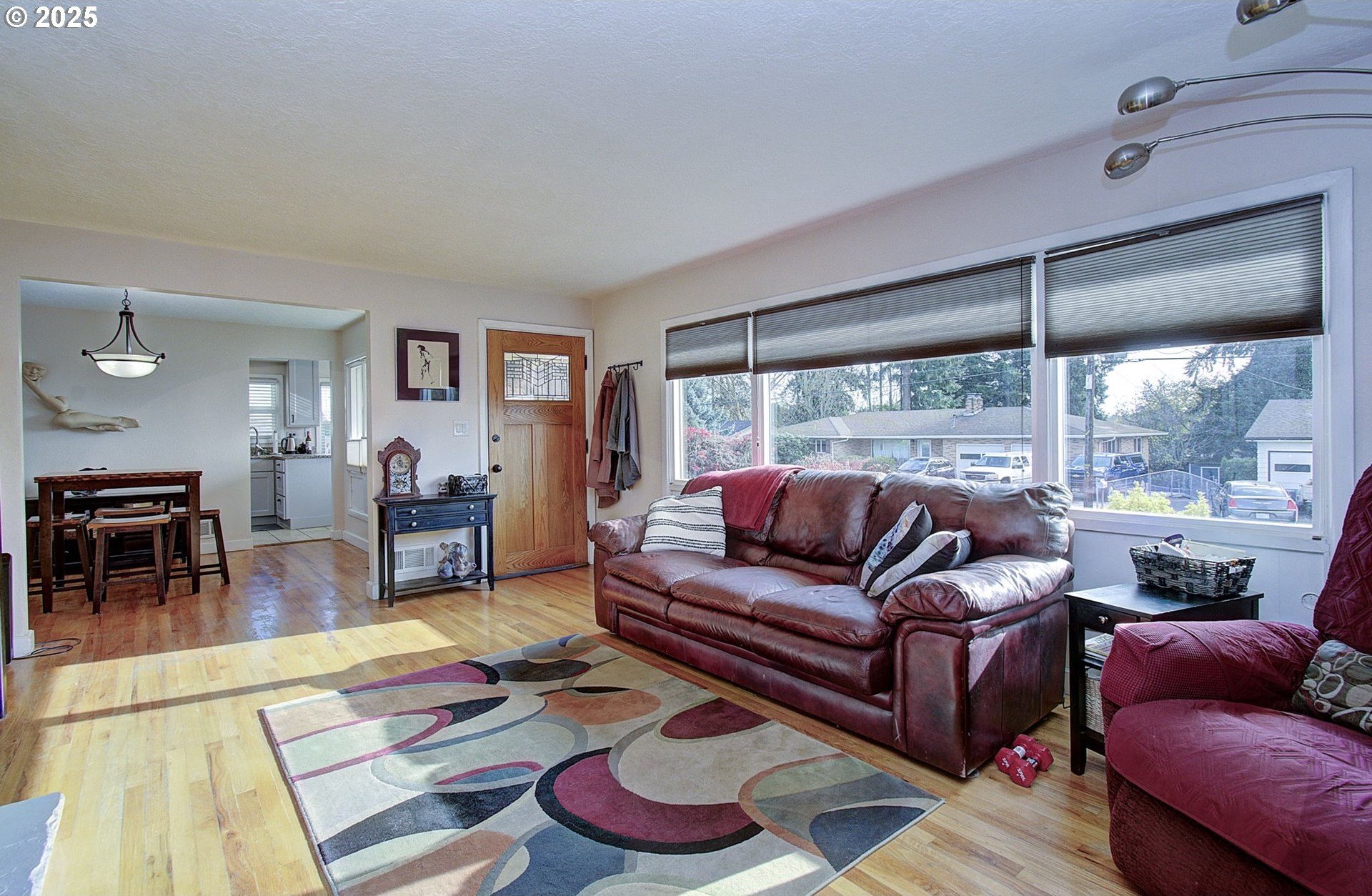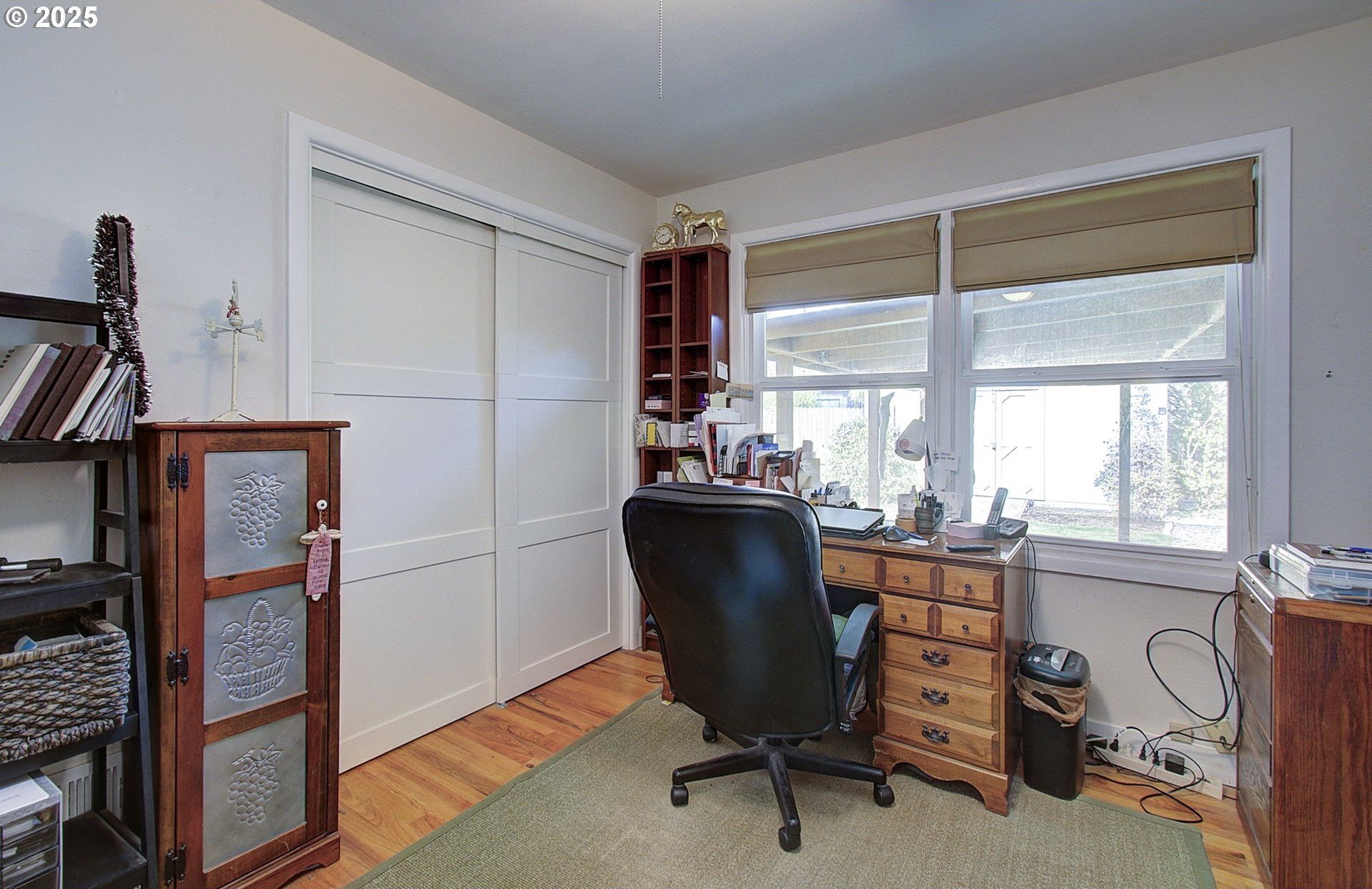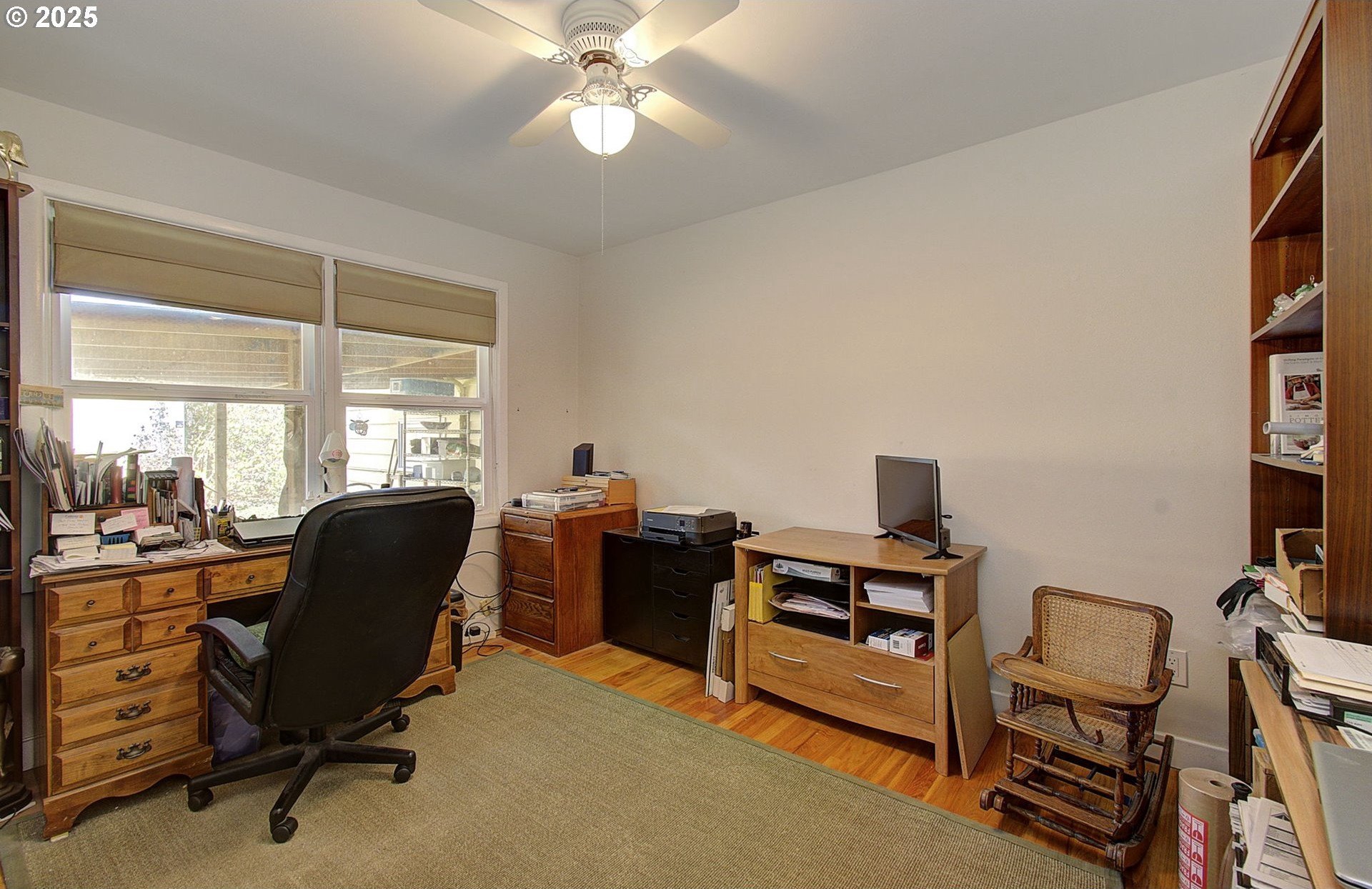 This great home is a hidden gem! Its large windows provide lots of natural light and there are beautiful hardwood floors throughout the main floor. It features granite counters in kitchen, remodeled bathroom, electric upgraded and panel replaced, house replumbed, roof replaced and freshly painted kitchen. Finished basement includes family room with wood burning fireplace, 3rd bedroom, bathroom with shower, laundry room and plenty of storage area. Great sized, fully fenced backyard with dog run. 2.5 tandem garage with insulated walls & ceiling,forced air heat, A/C unit and convenient dual doors. 5' x 8' storage unit. The 12' x 16' workshop has insulated walls, A/C unit & electric sub-panel and is limited only by your imagination and could be the perfect workshop, office, craft or workout room.